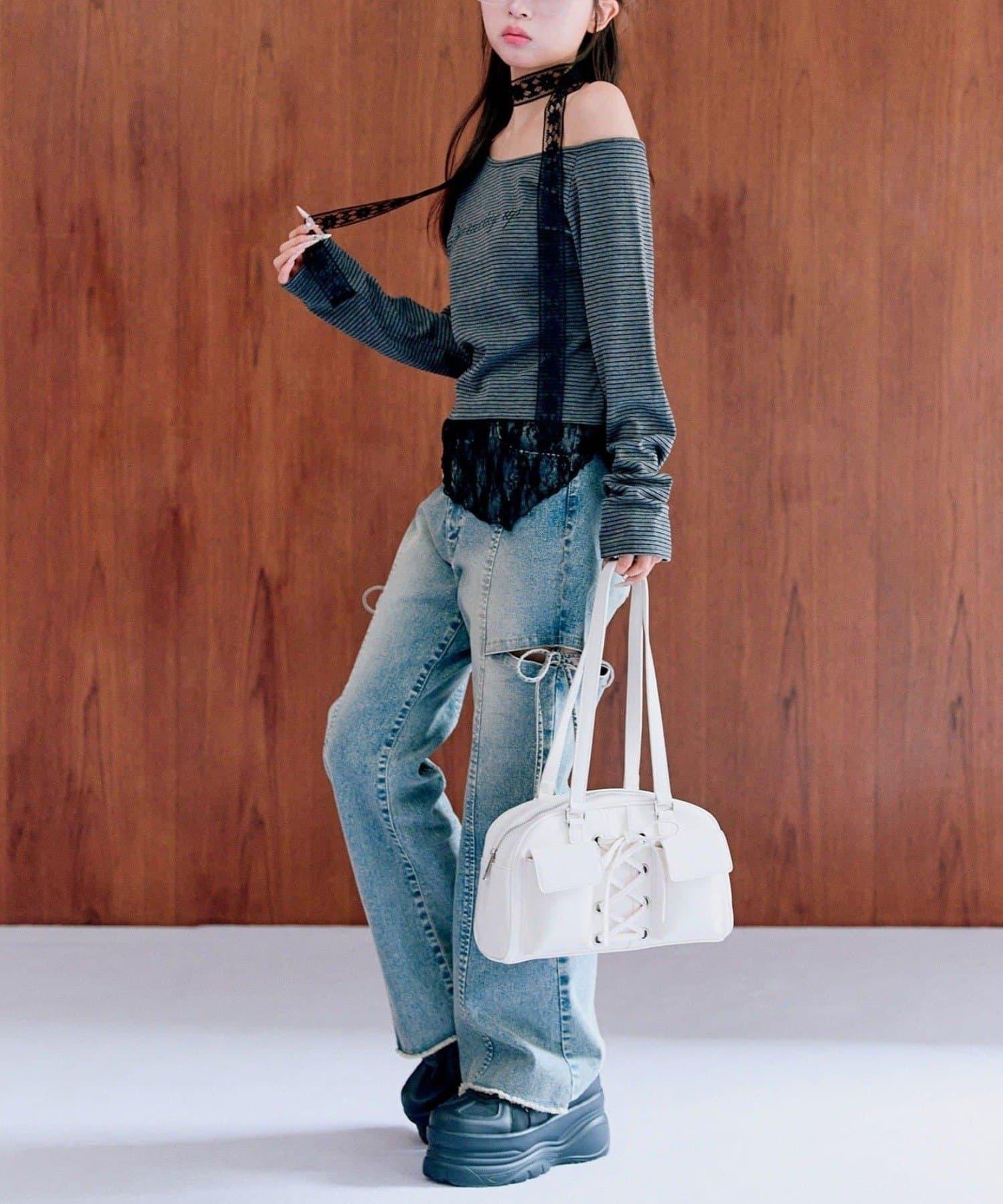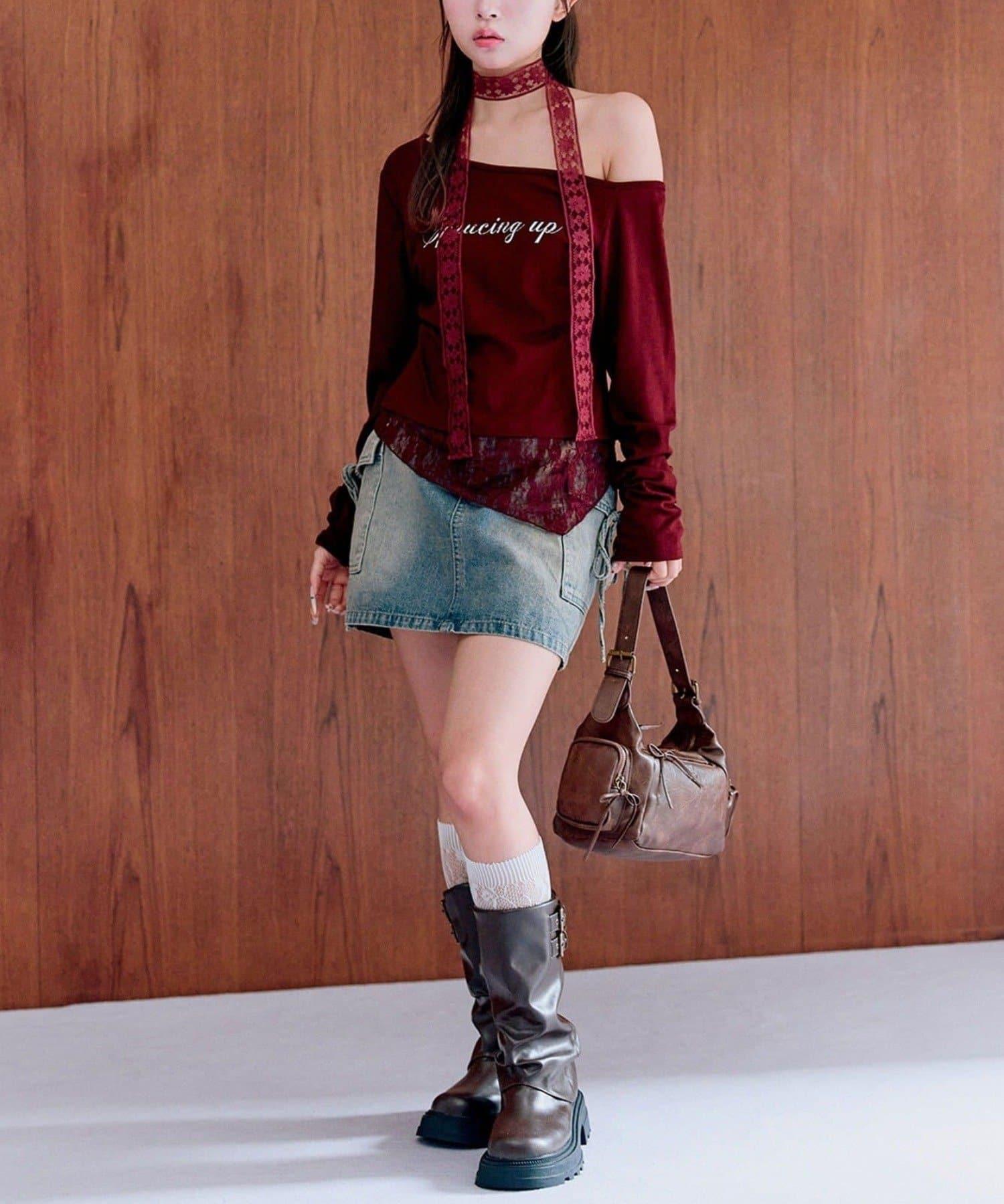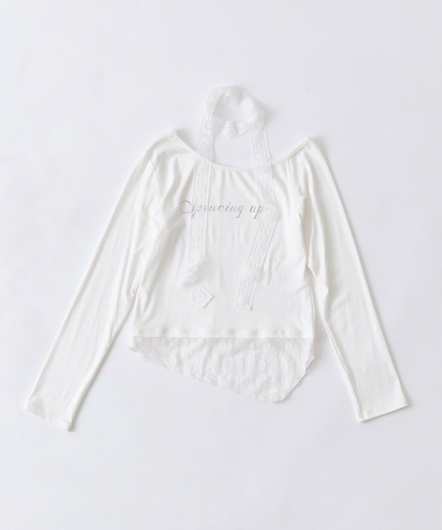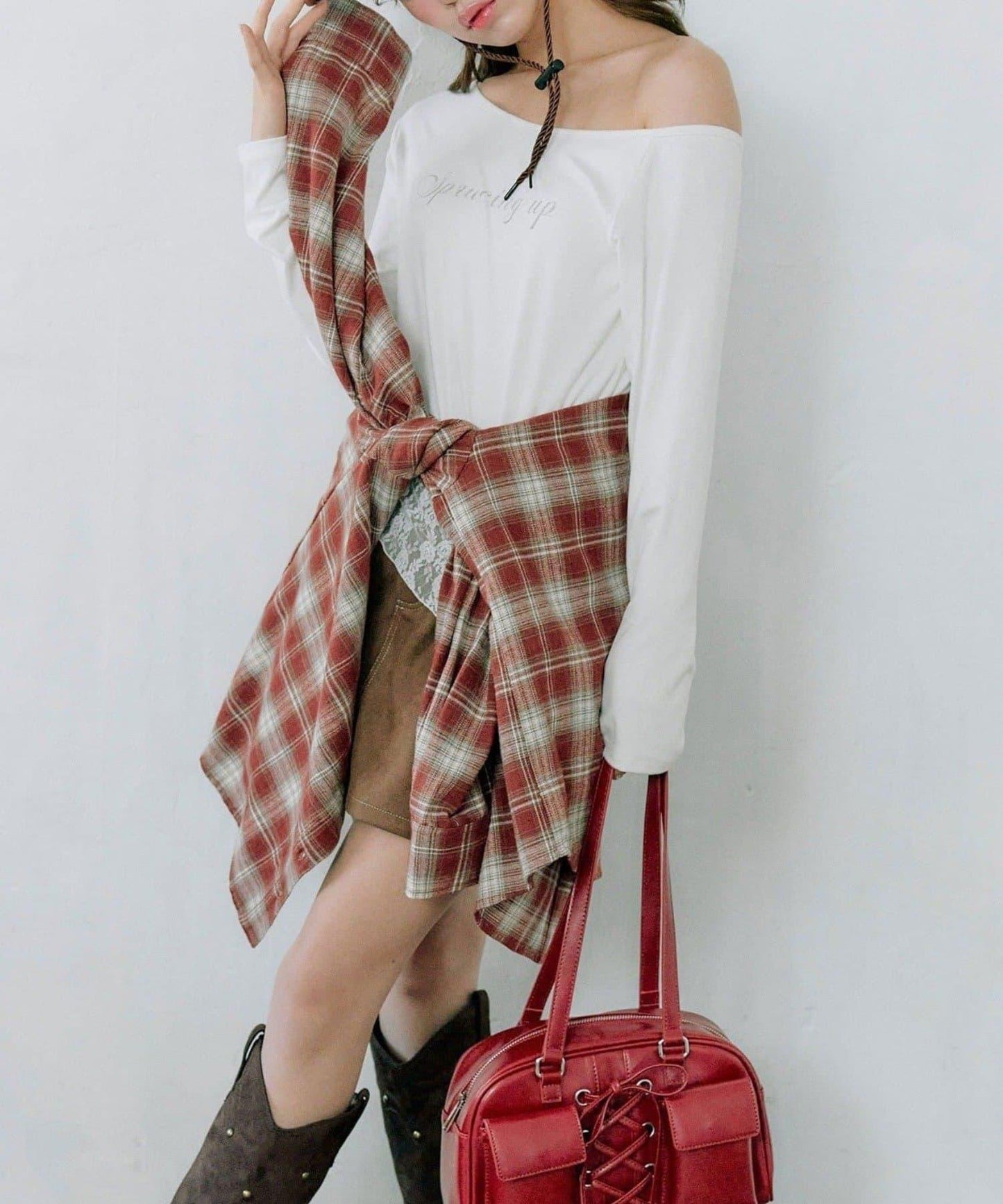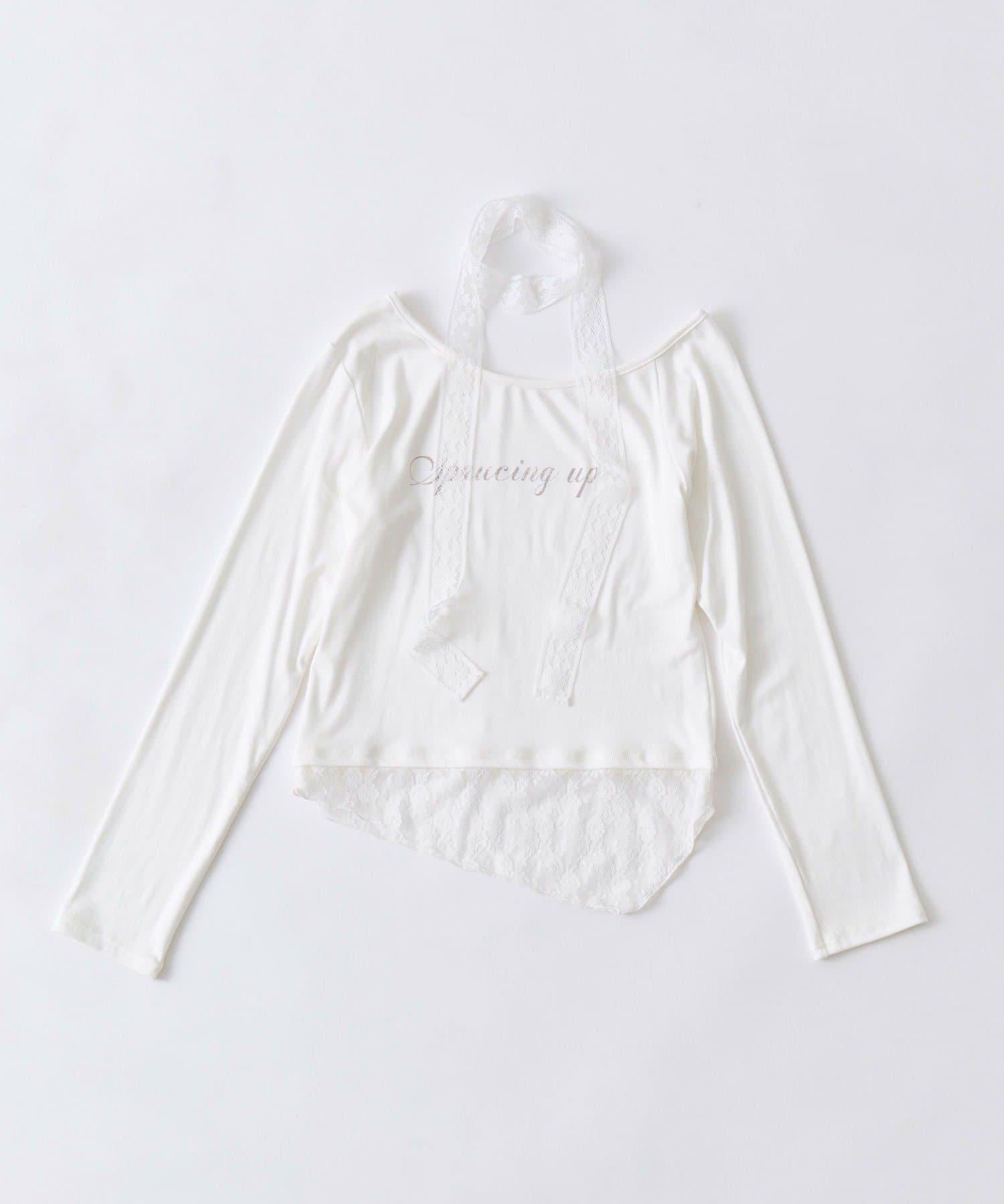 蕾絲繫帶可自由擺放!單肩上衣,露出肌膚,打造氣質!