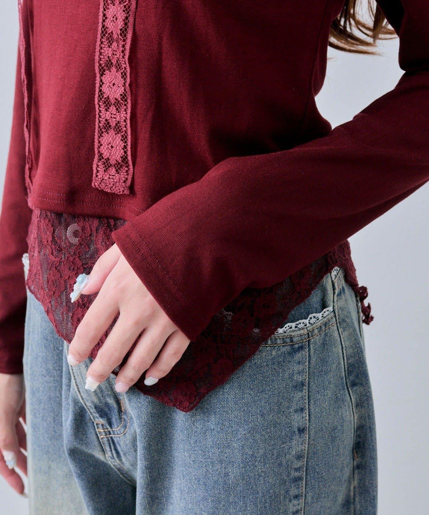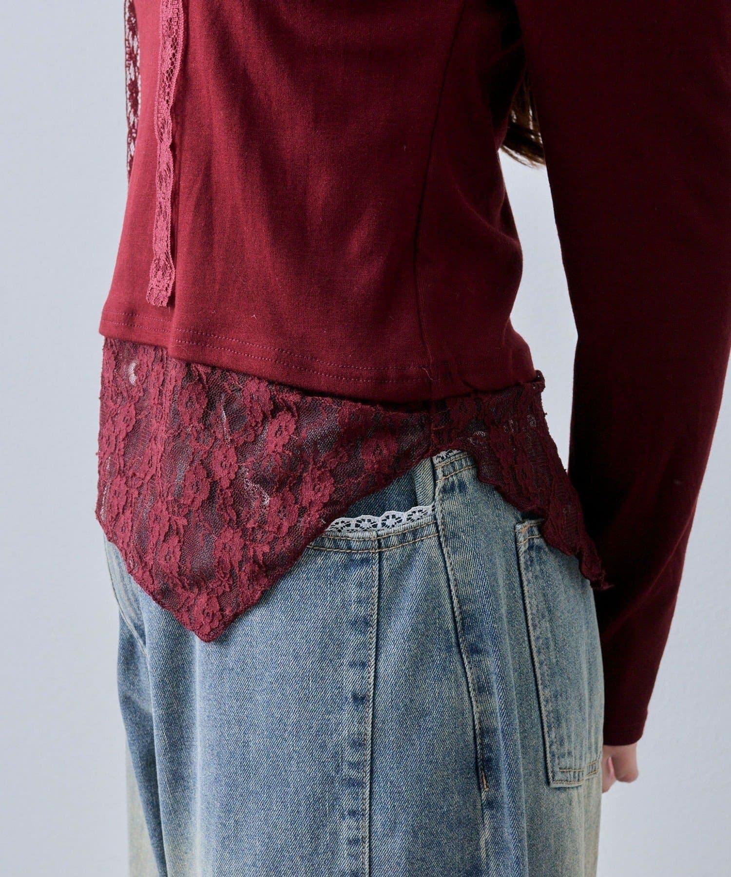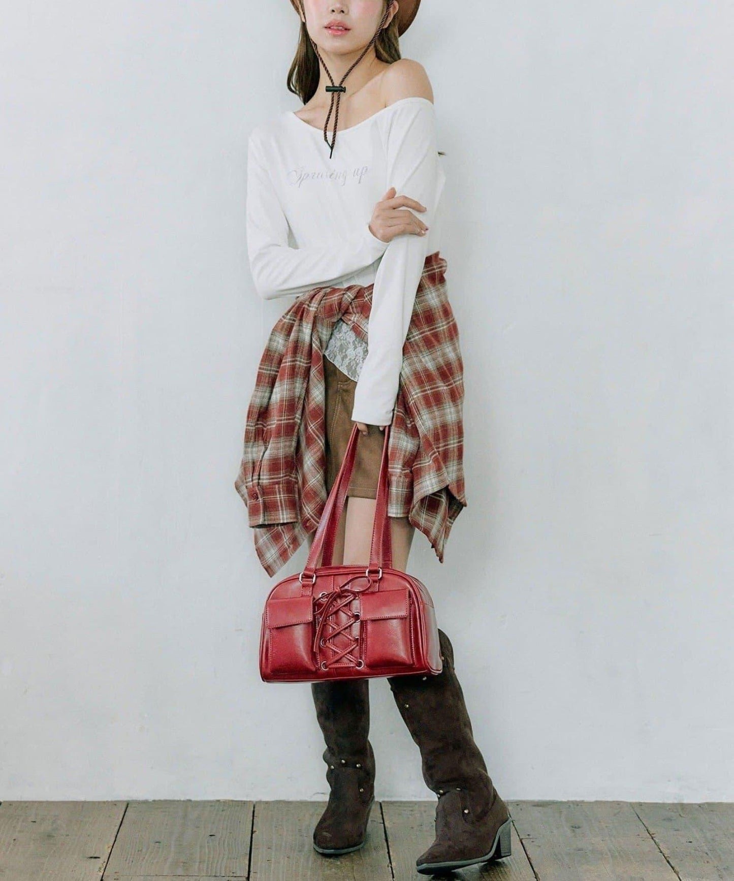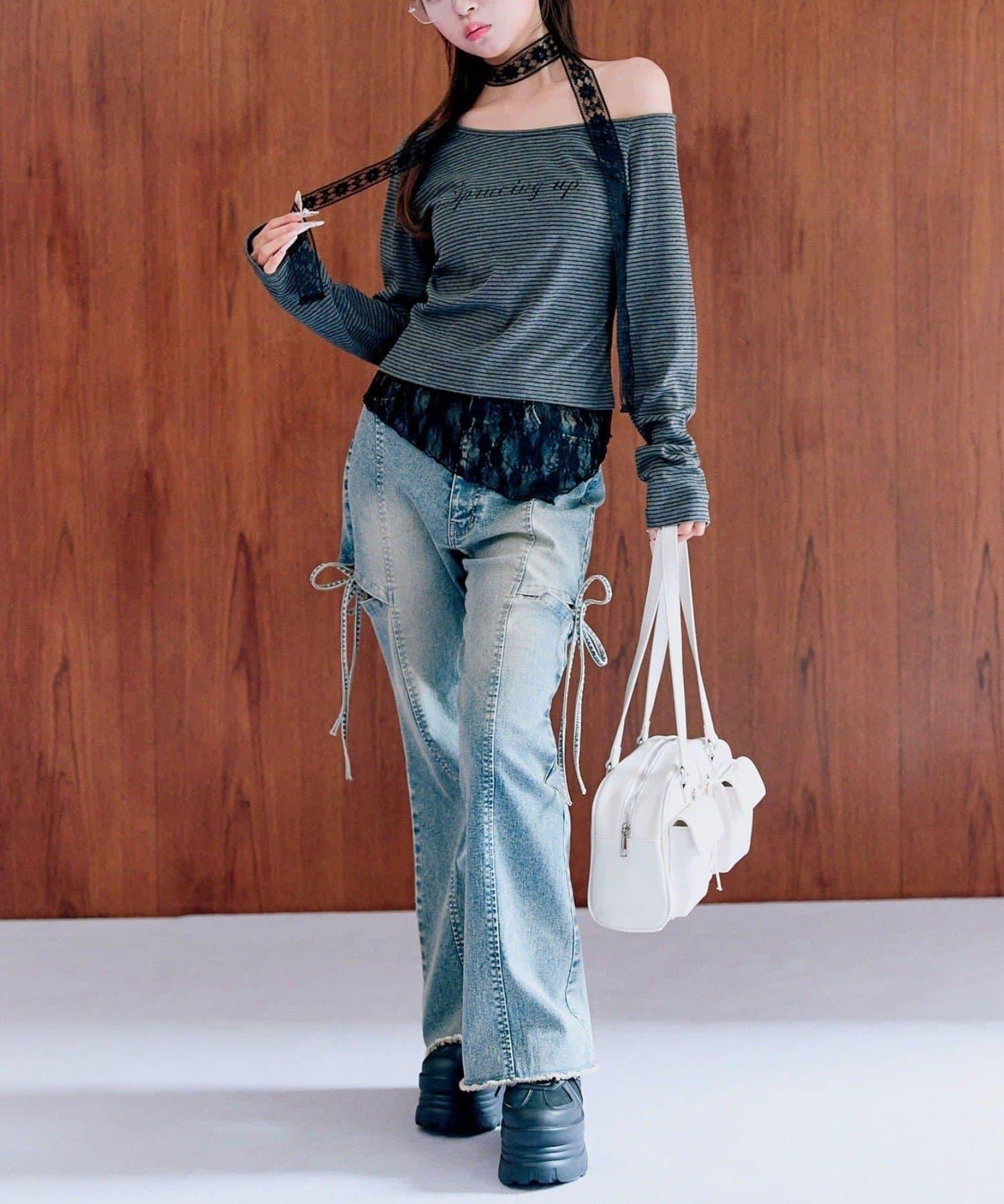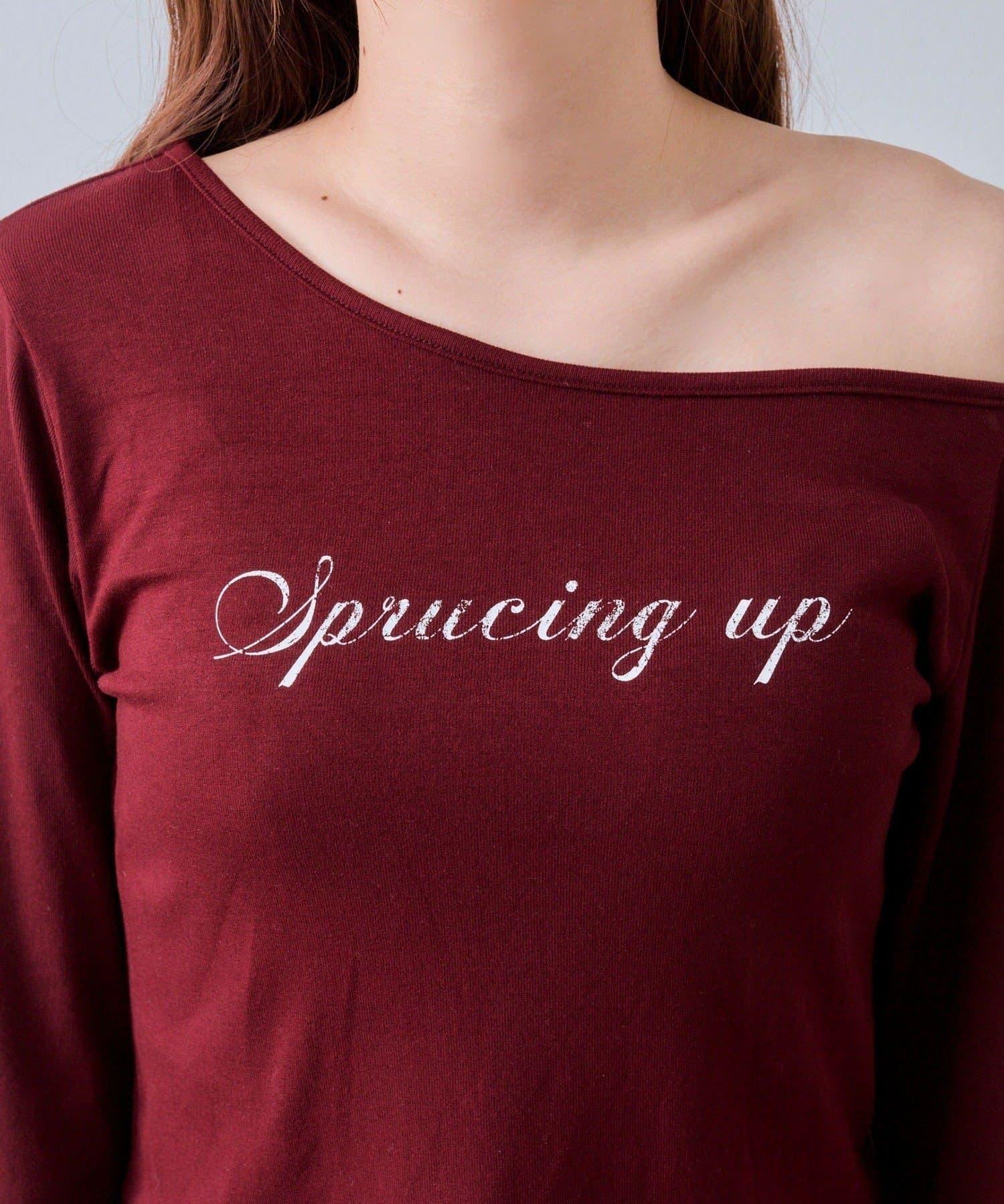 蕾絲繫帶可自由擺放!單肩上衣,露出肌膚,打造氣質!