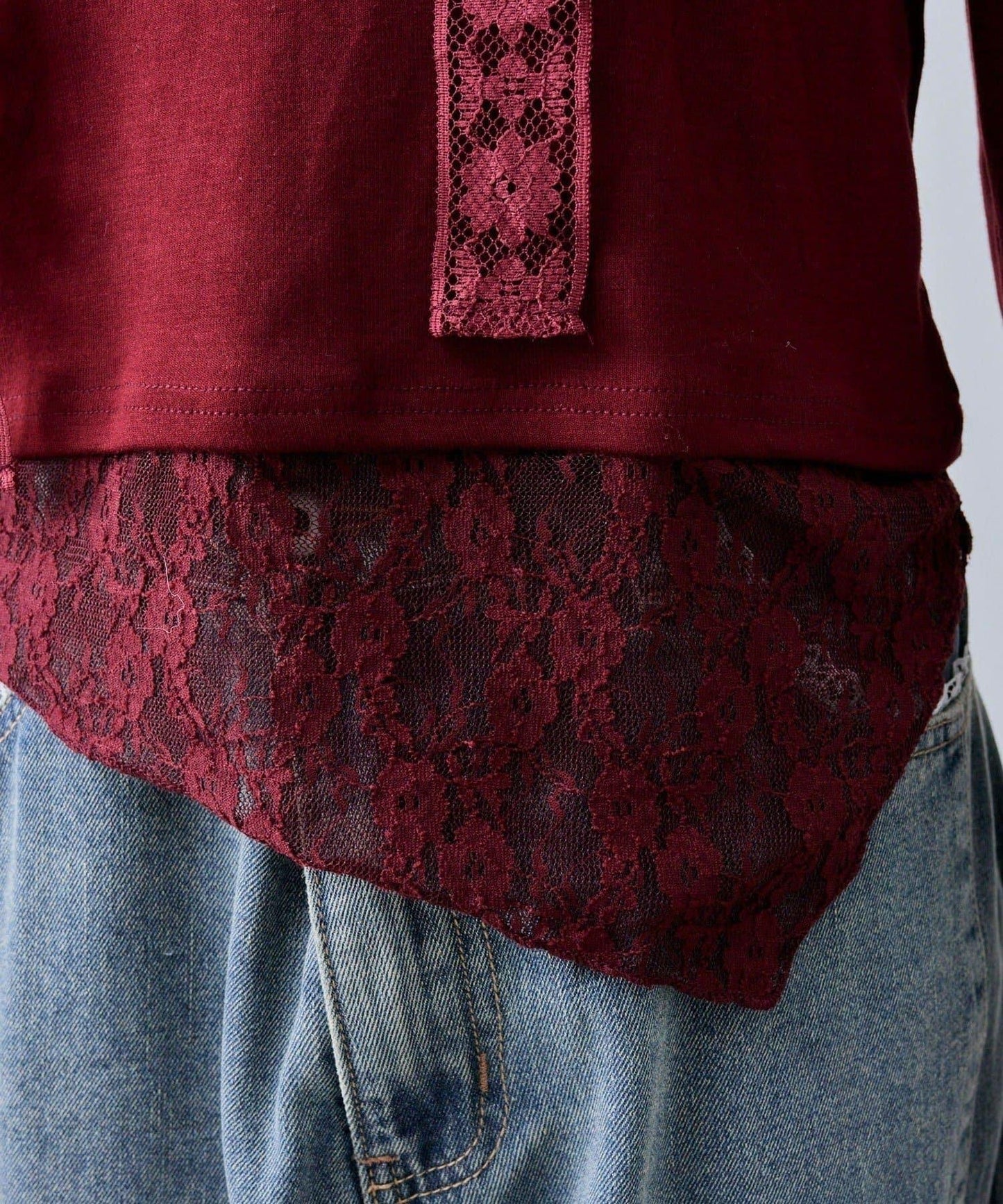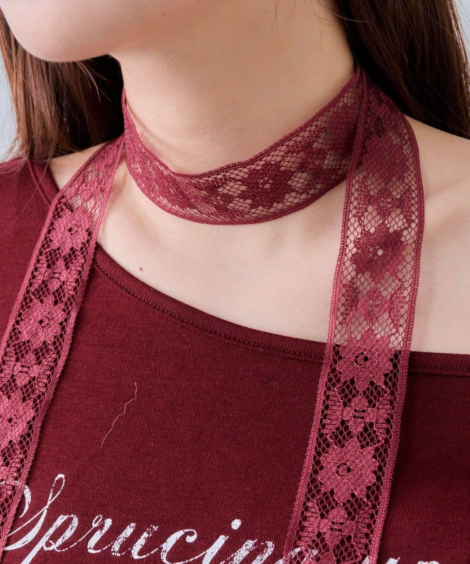 蕾絲領帶可以像choker一樣纏繞,也可以用絲帶繫住。