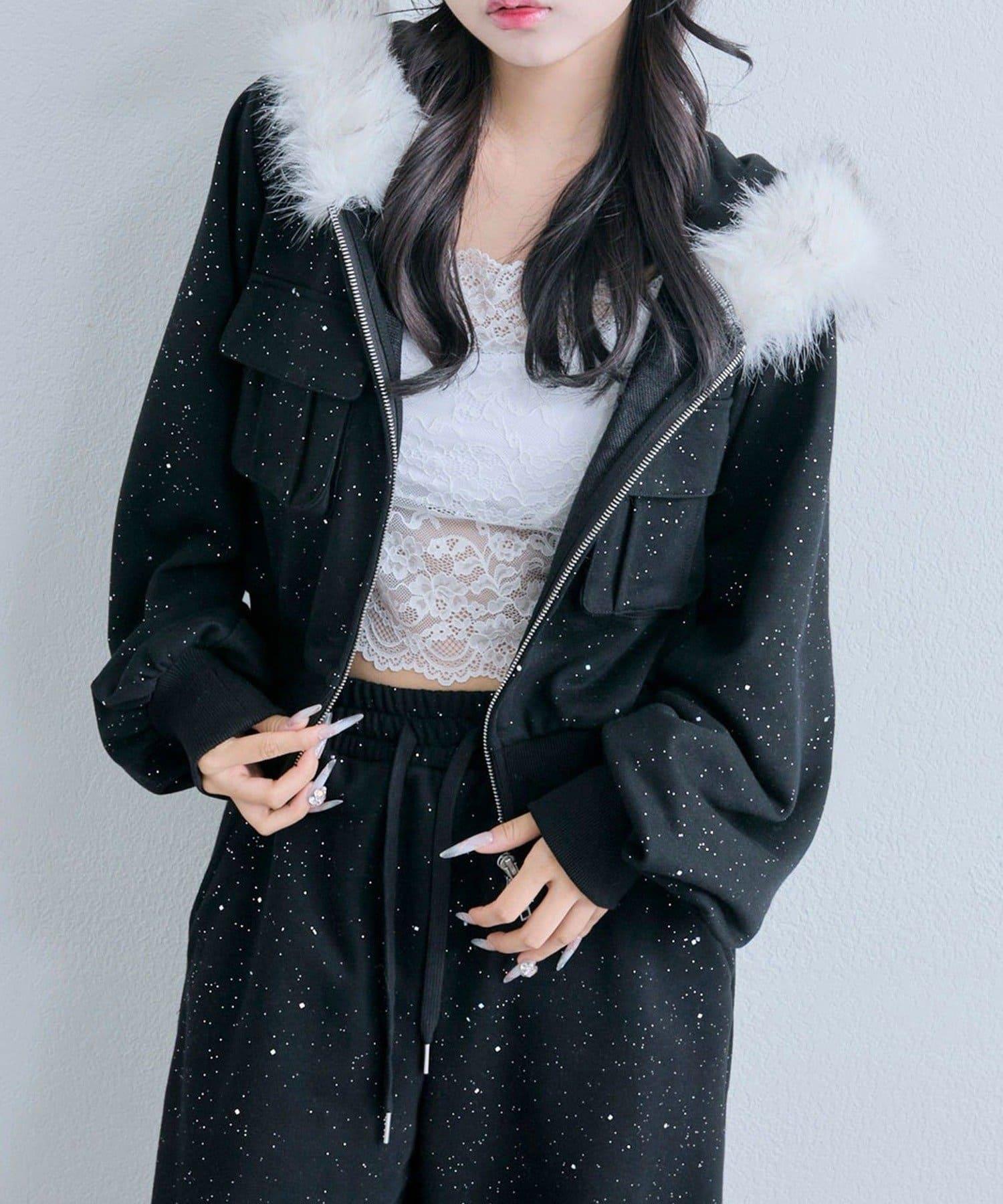 這款單品雖然是休閒單品,但蓬鬆的皮草為其增添了少女般的甜美。