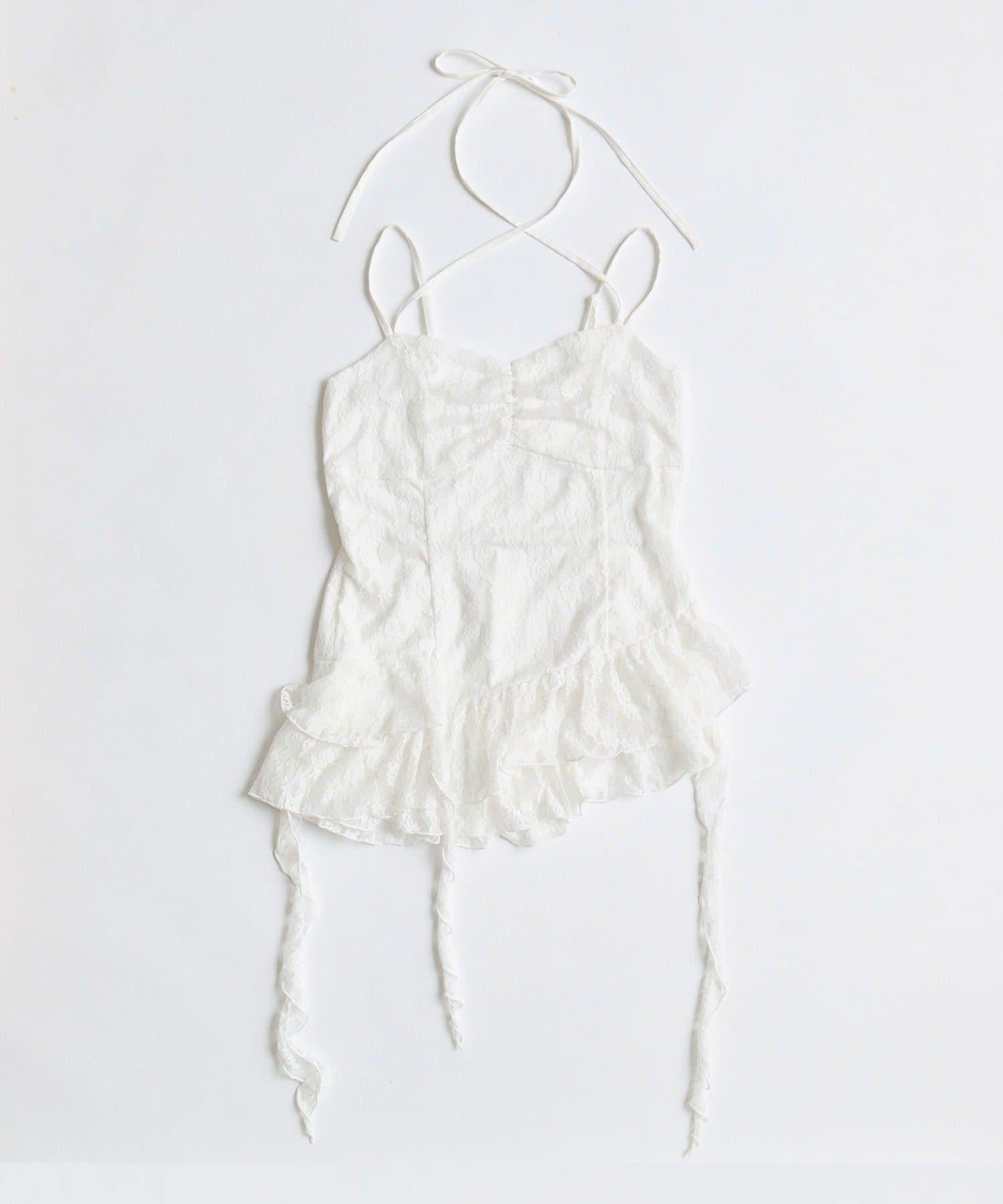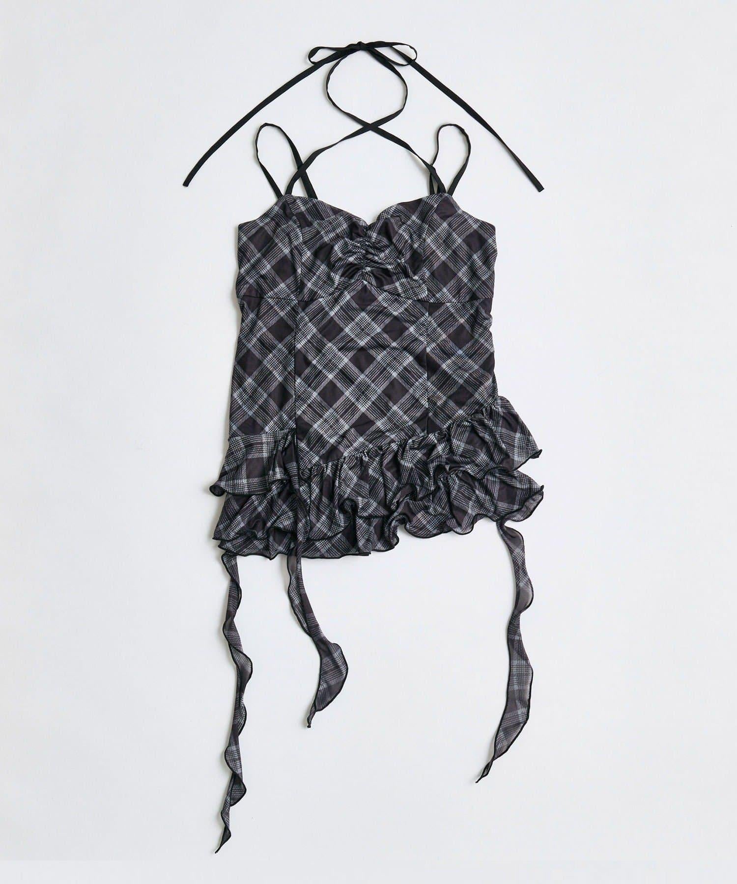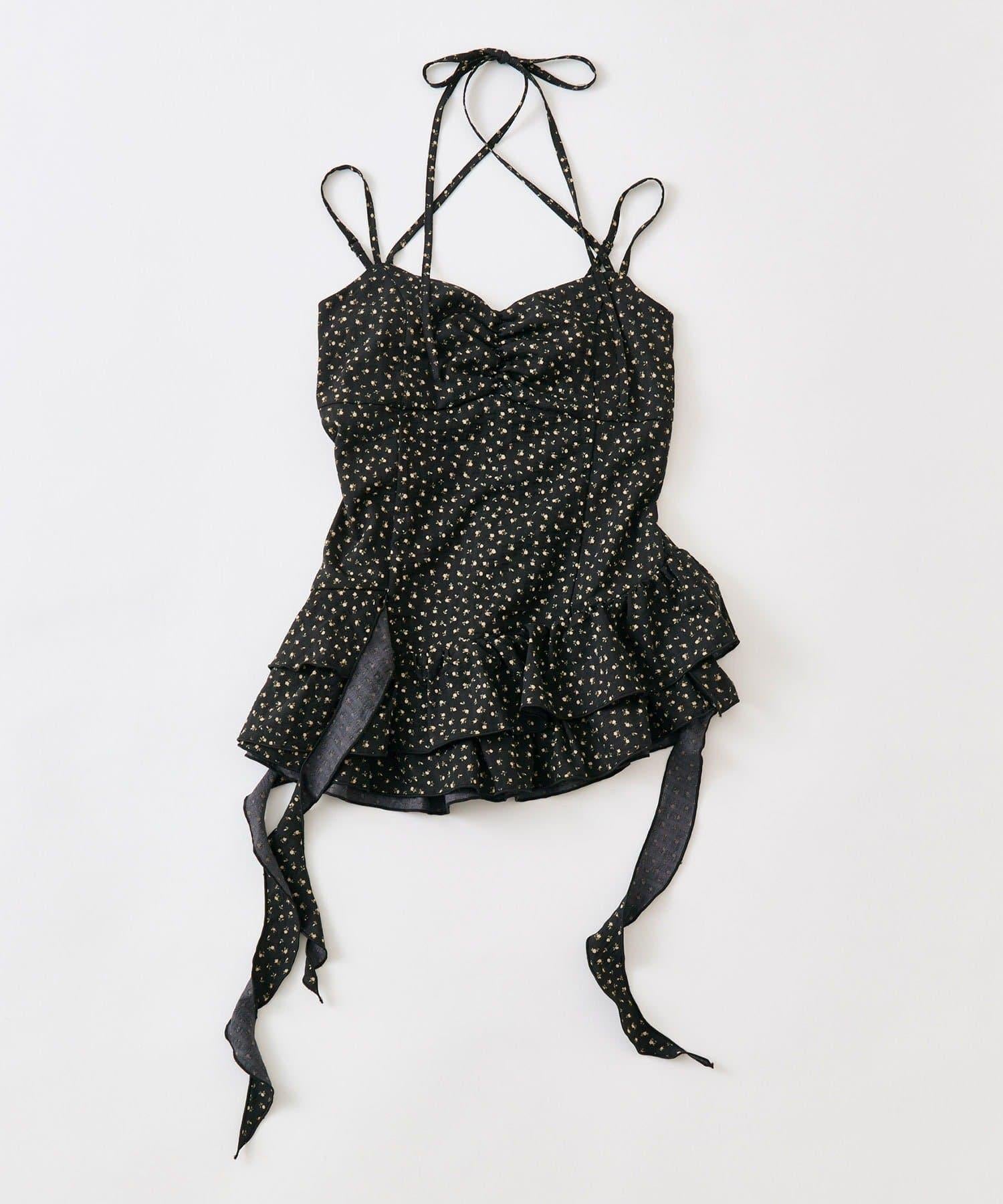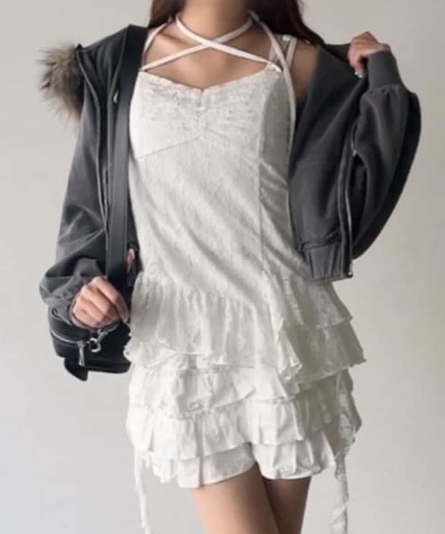 這款吊帶外衣的下襬設計有大量荷葉邊,從各個角度看都很可愛,同時還能遮住身材。