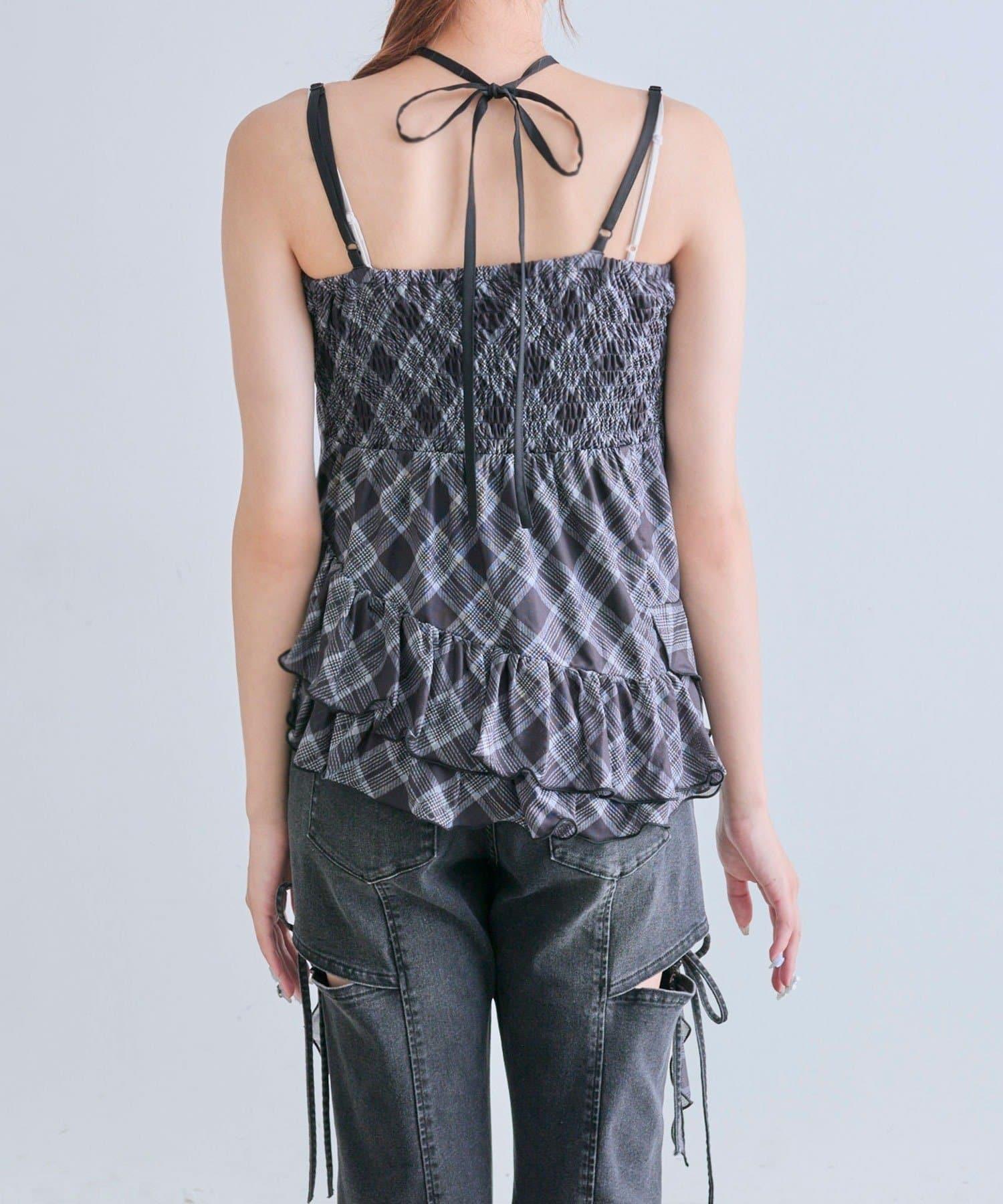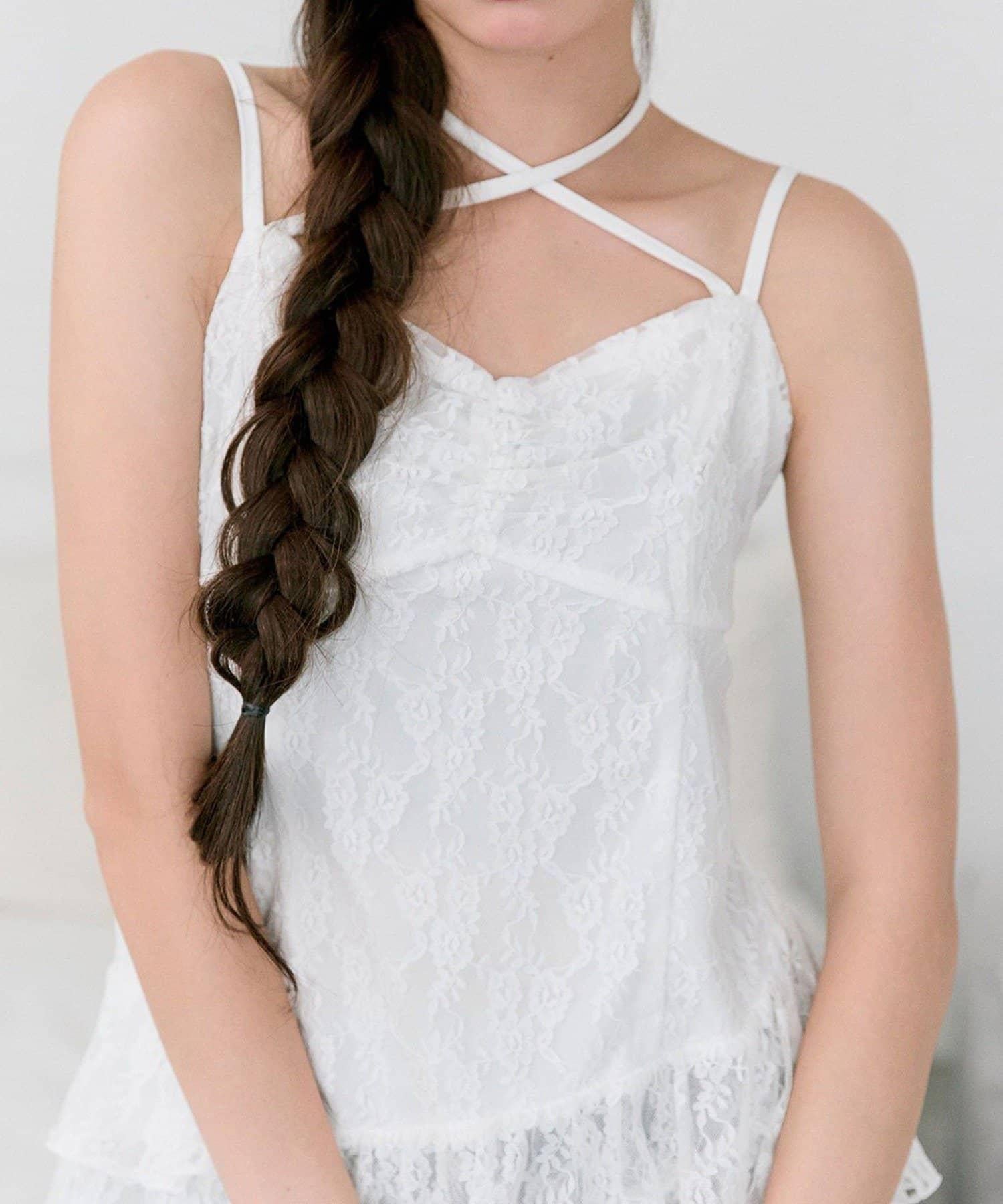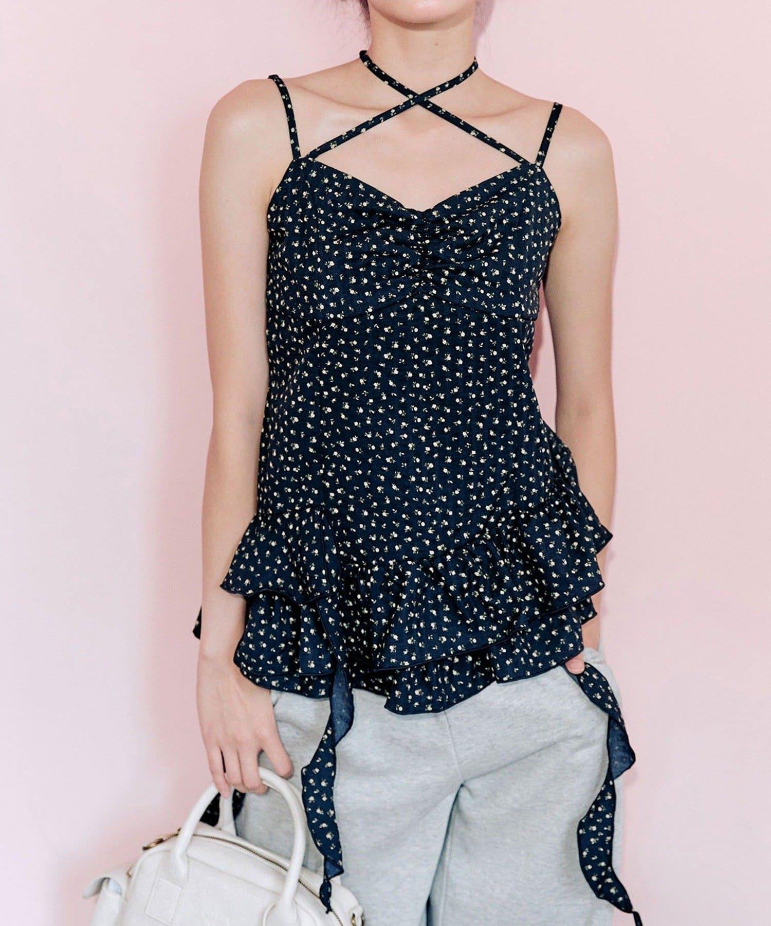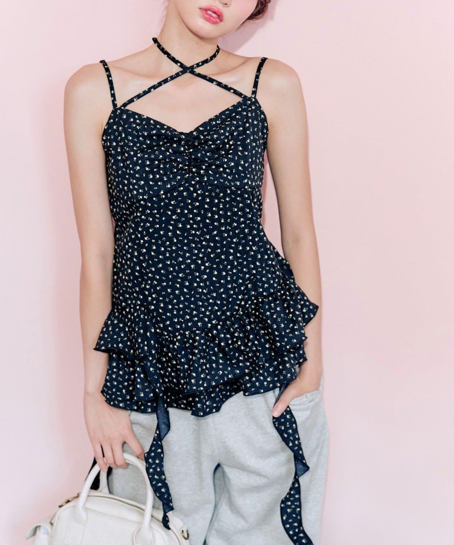 這款吊帶外衣的下襬設計有大量荷葉邊,從各個角度看都很可愛,同時還能遮住身材。