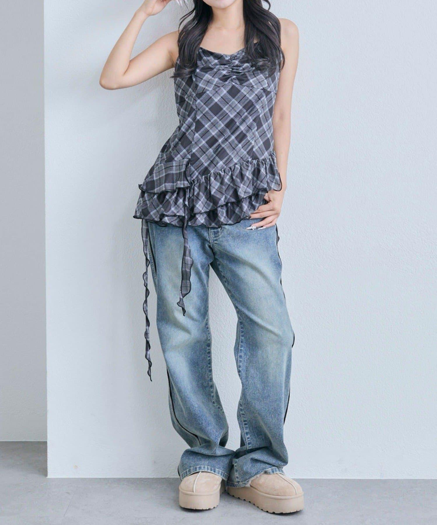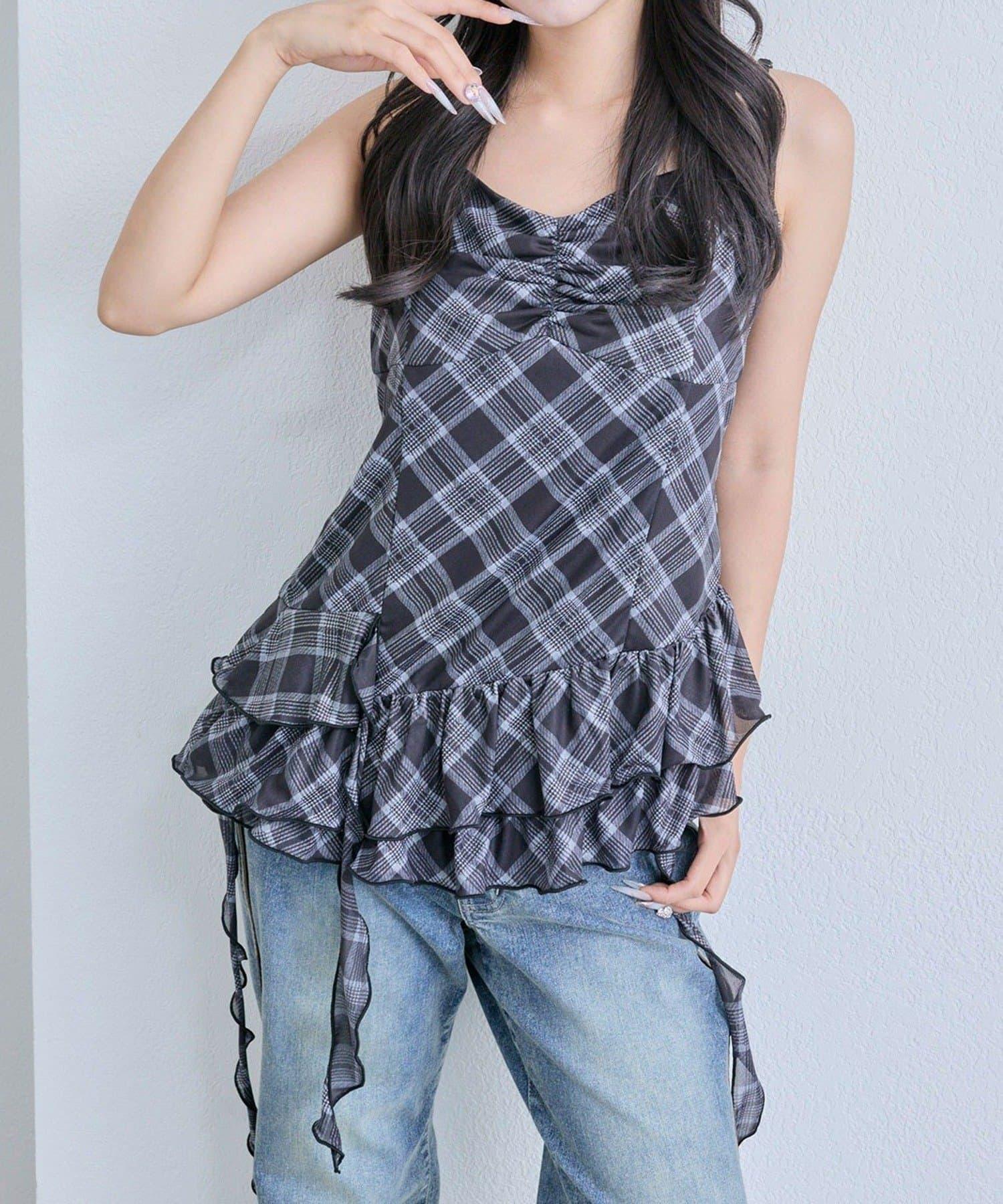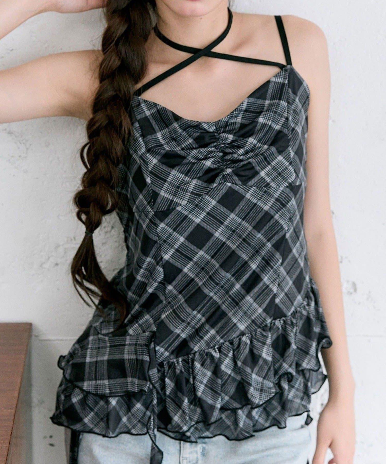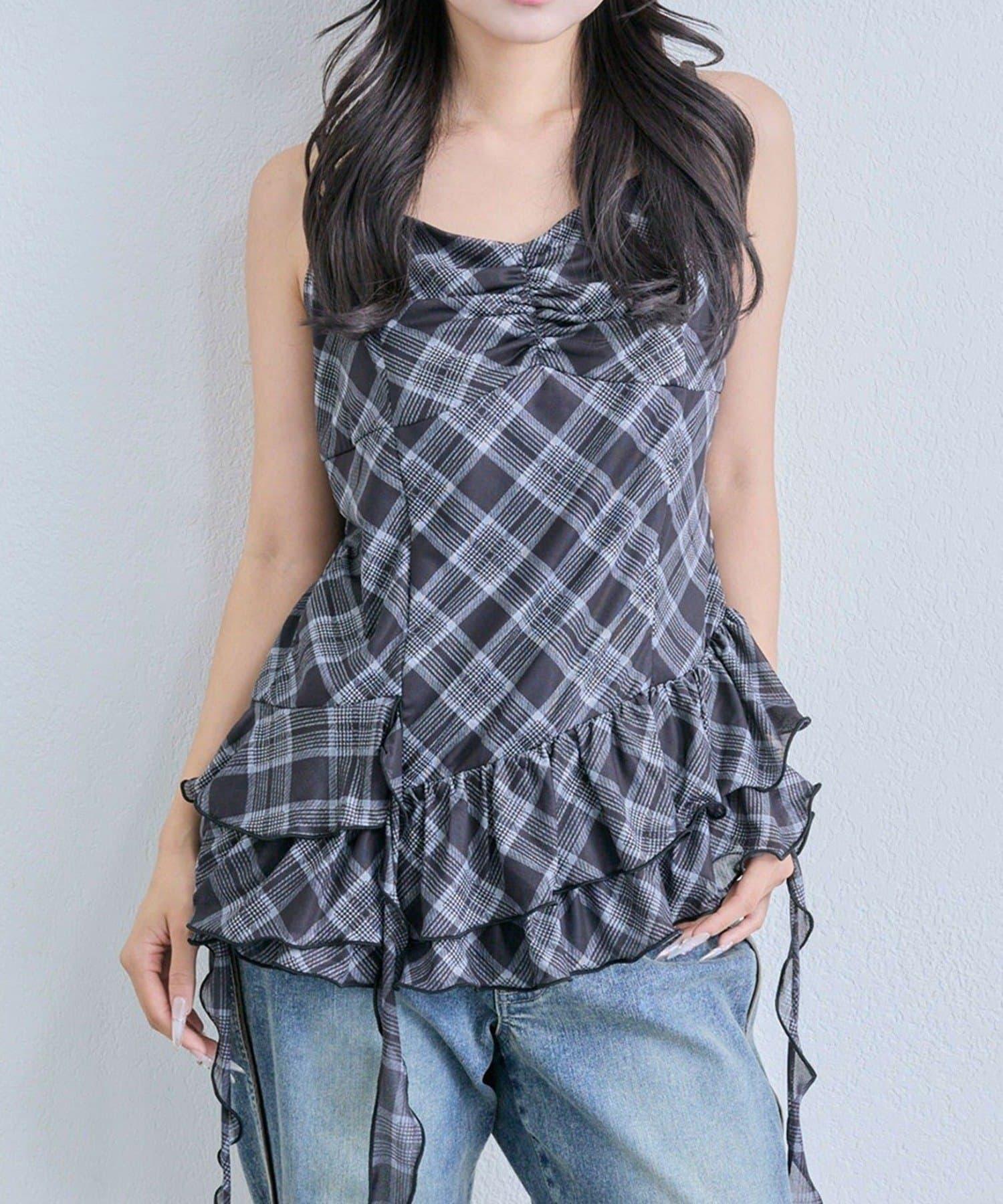 這款吊帶外衣的下襬設計有大量荷葉邊,從各個角度看都很可愛,同時還能遮住身材。