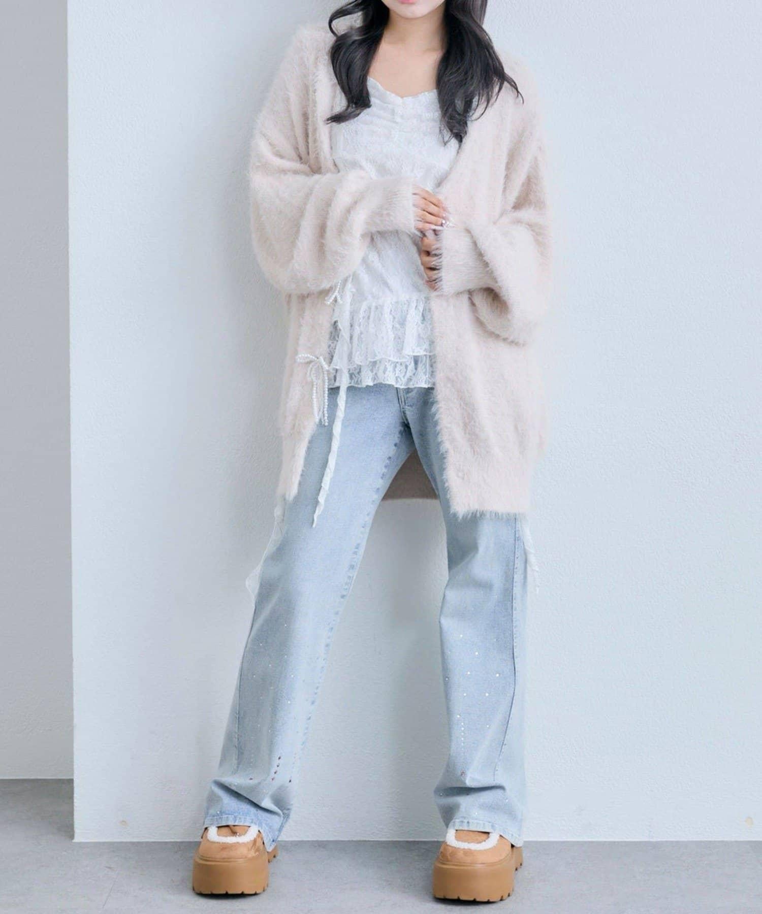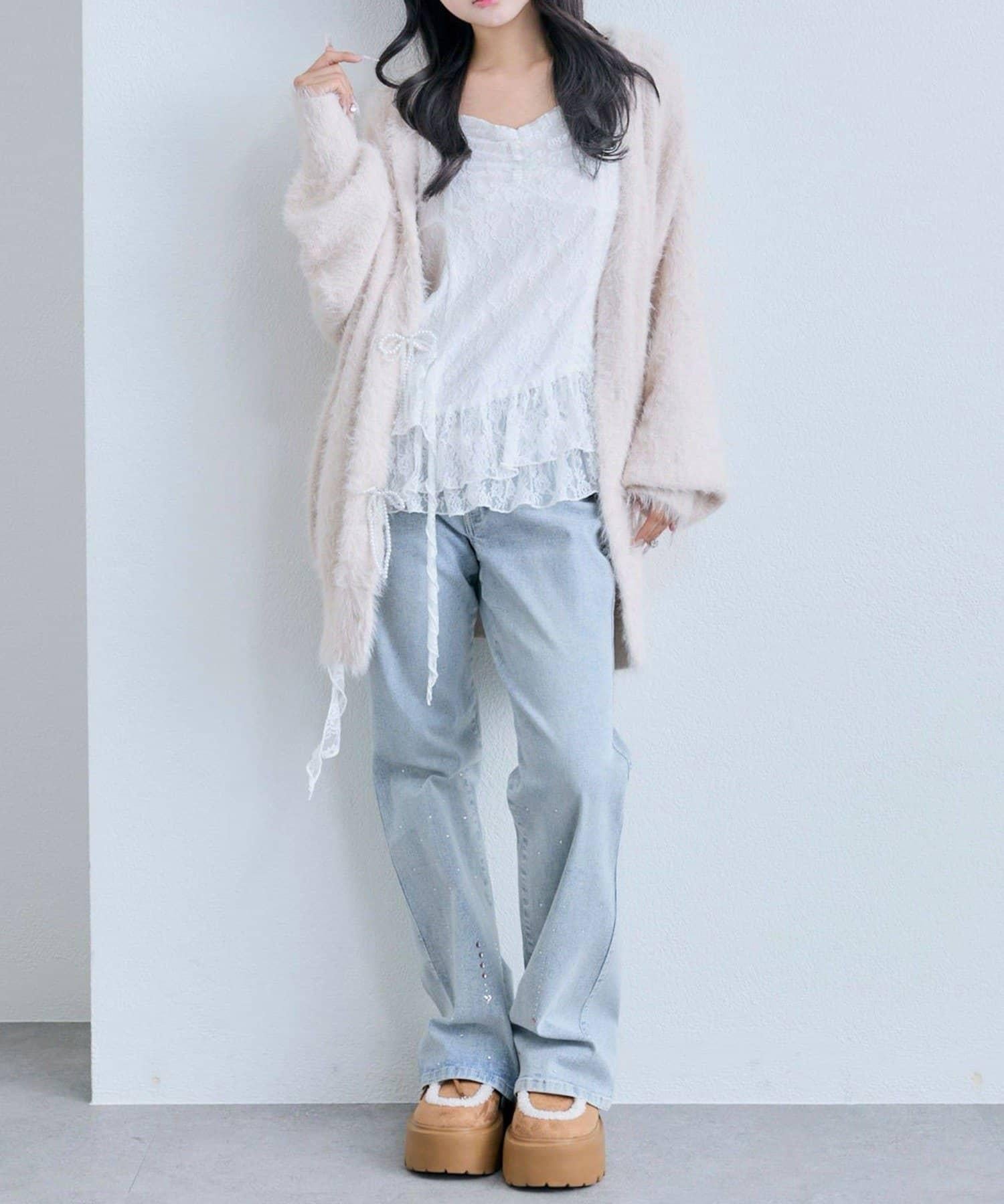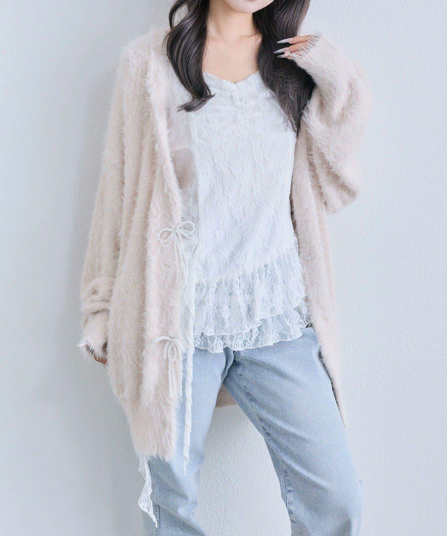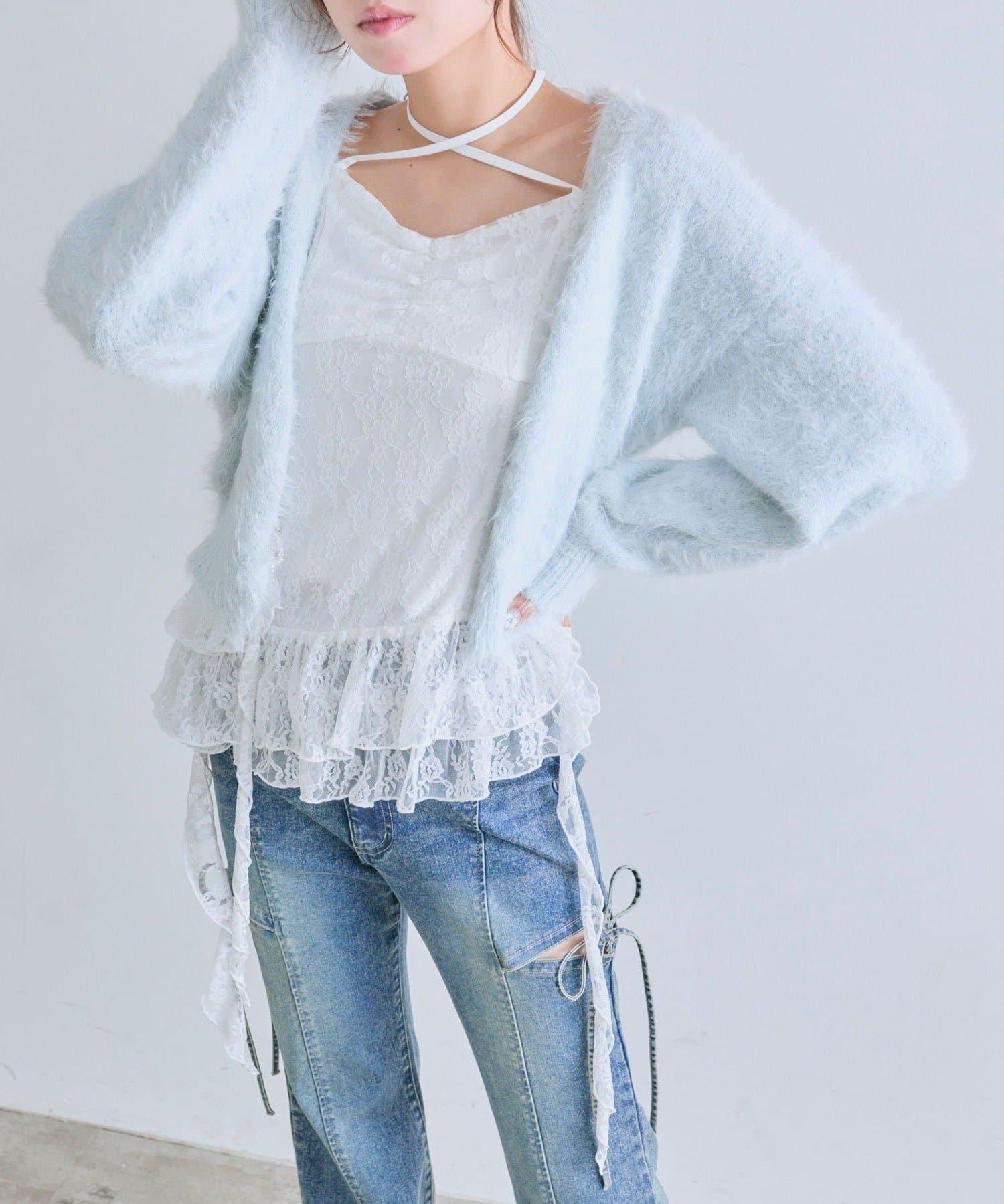 這款吊帶外衣的下襬設計有大量荷葉邊,從各個角度看都很可愛,同時還能遮住身材。