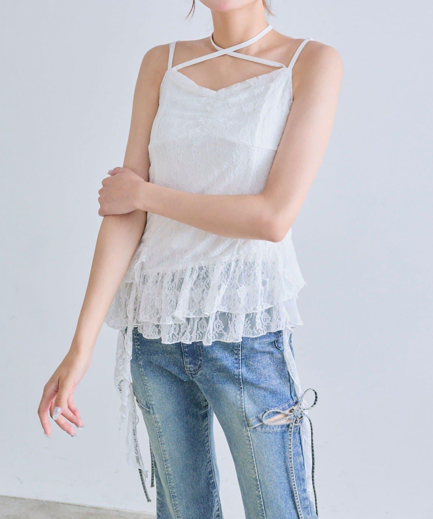 【OLIVE des OLIVE】荷葉邊長款吊帶背心