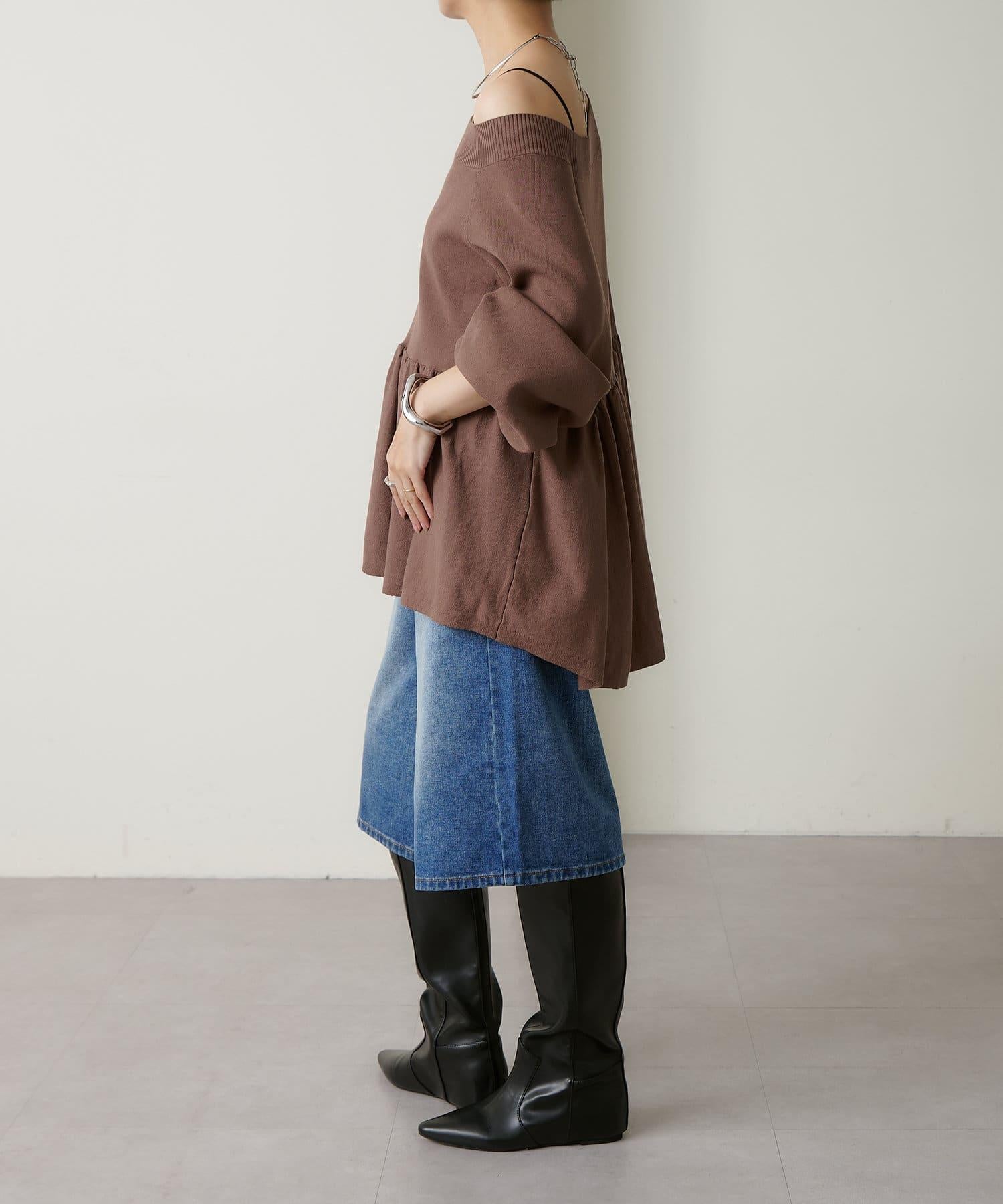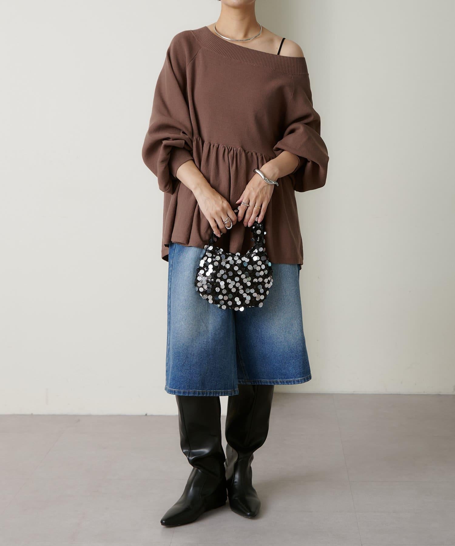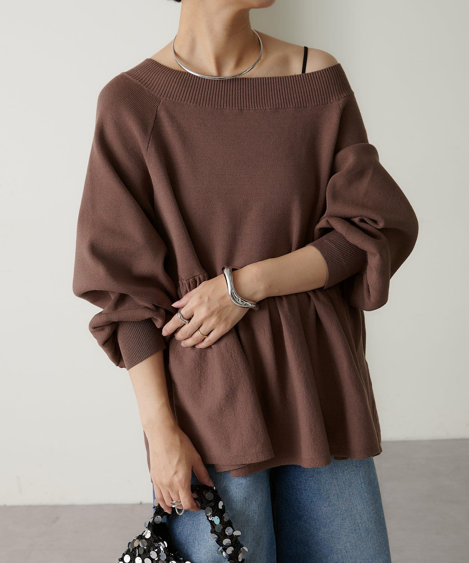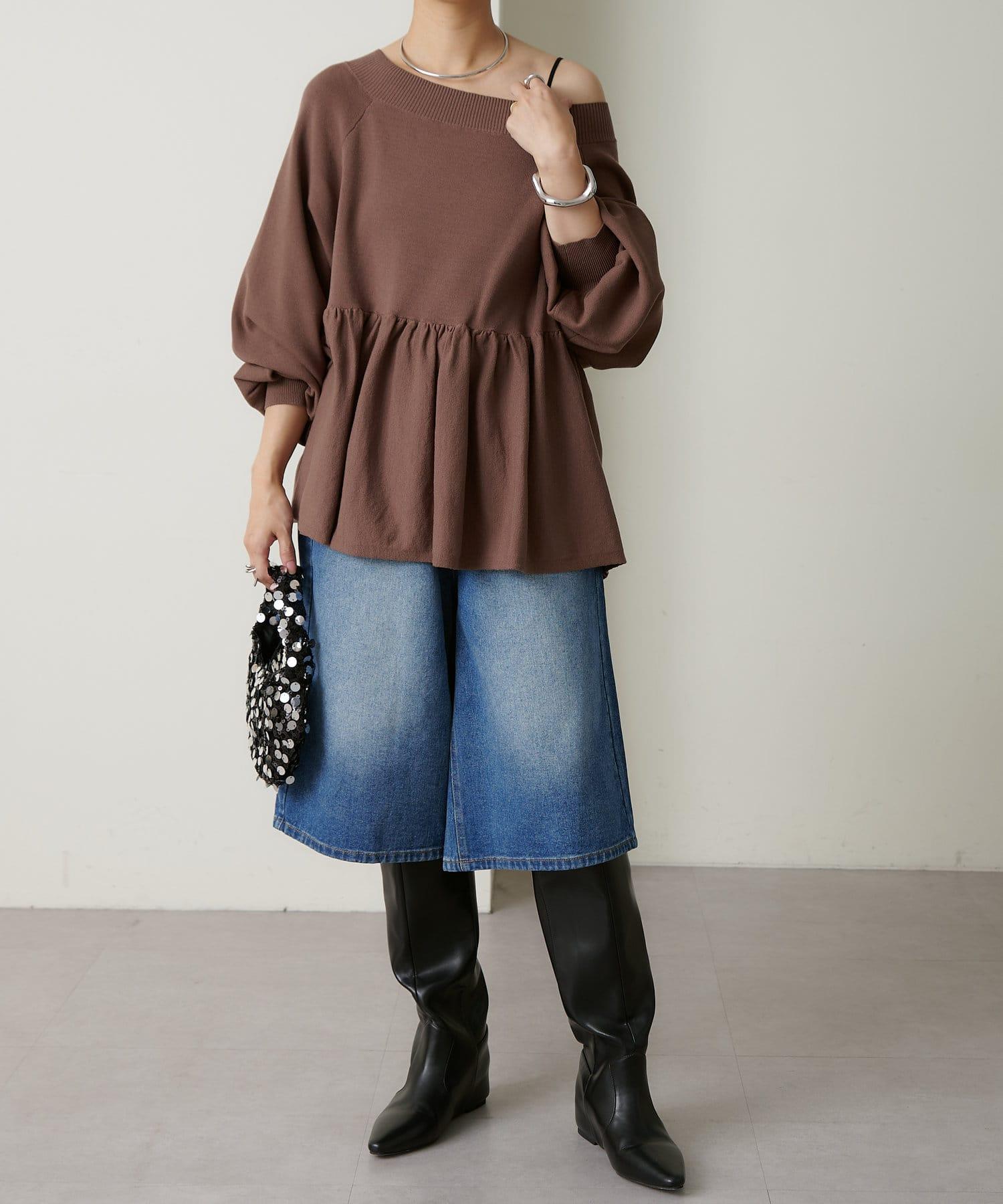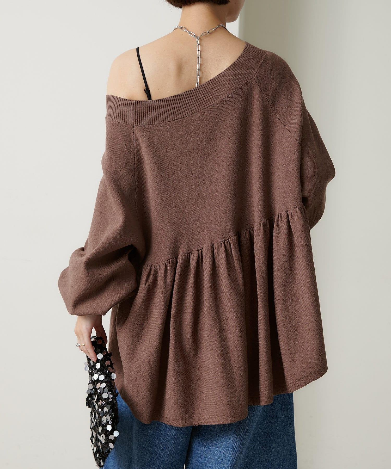 【Omekashi】全針織一字肩荷葉邊針織衫