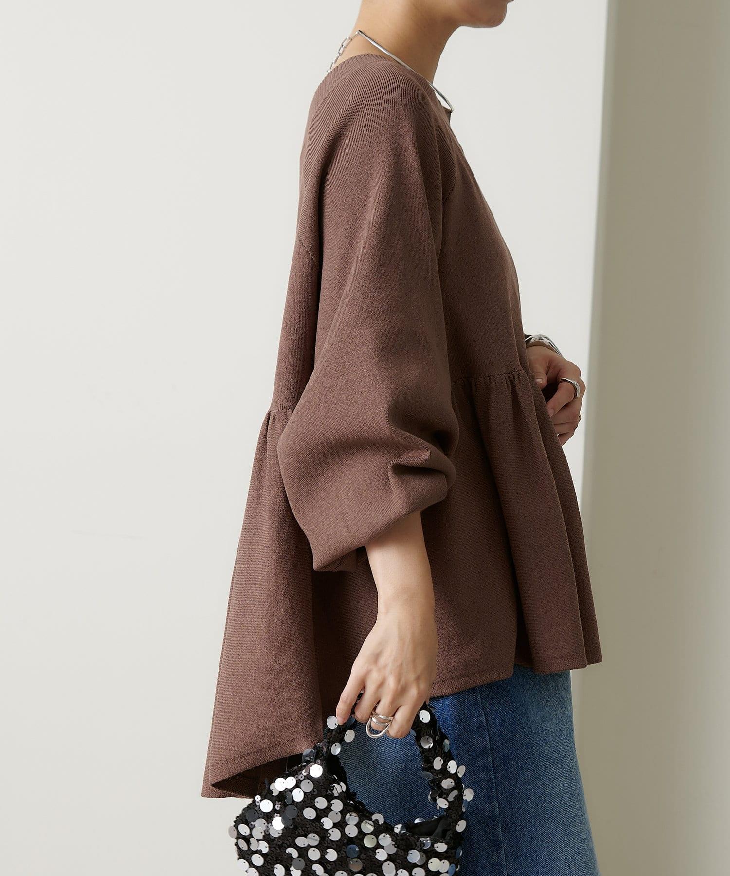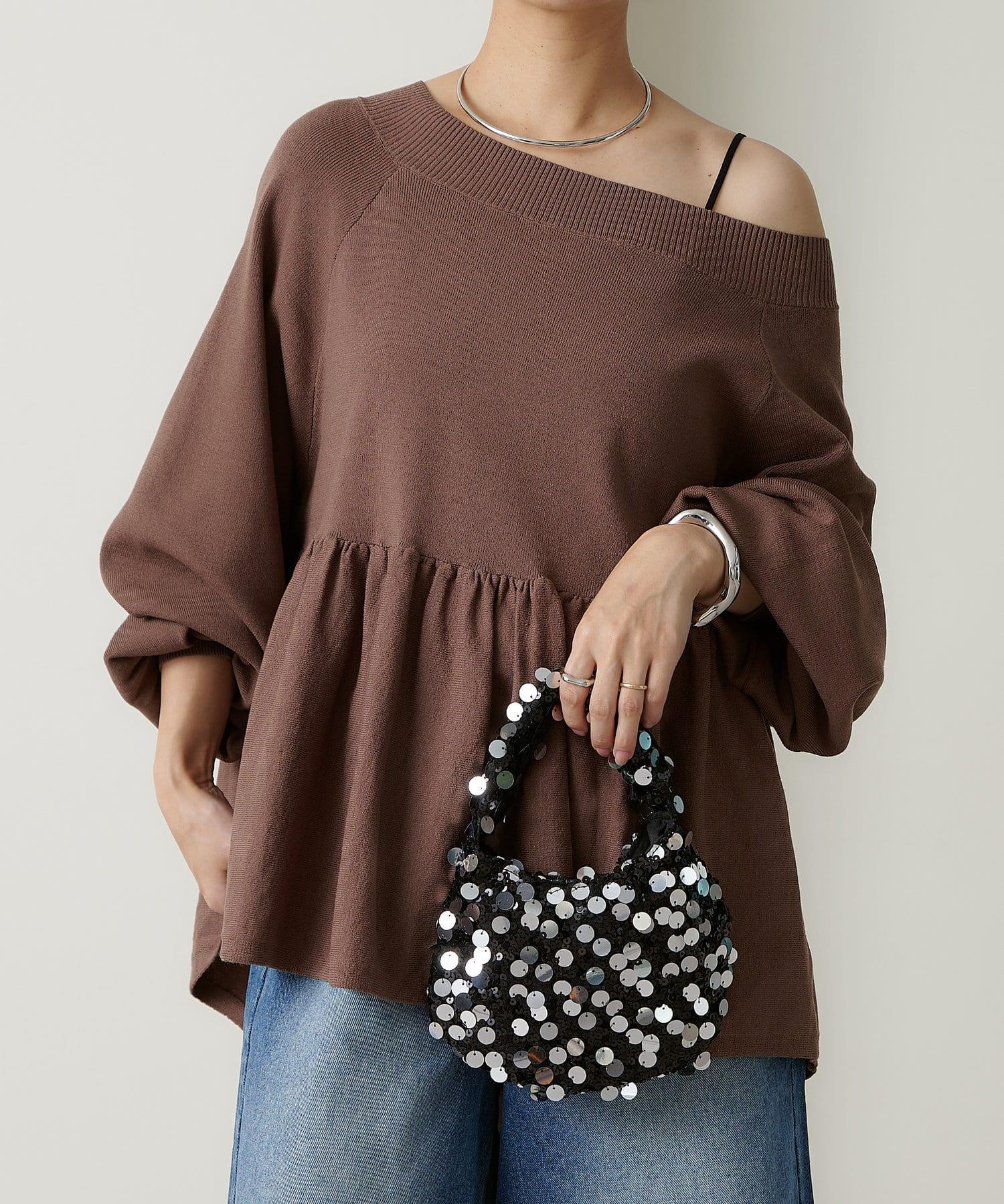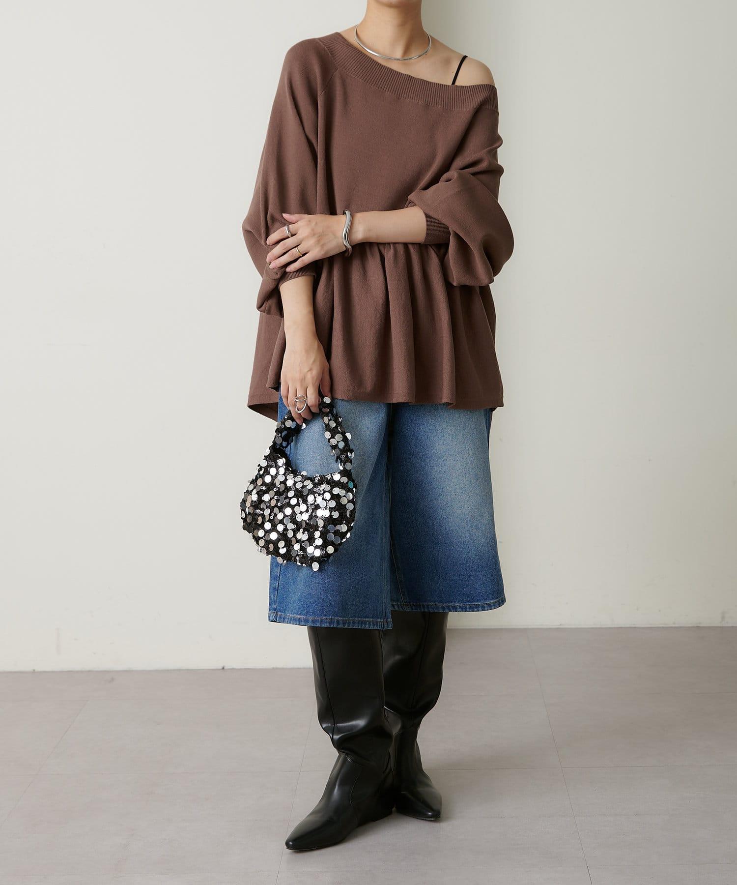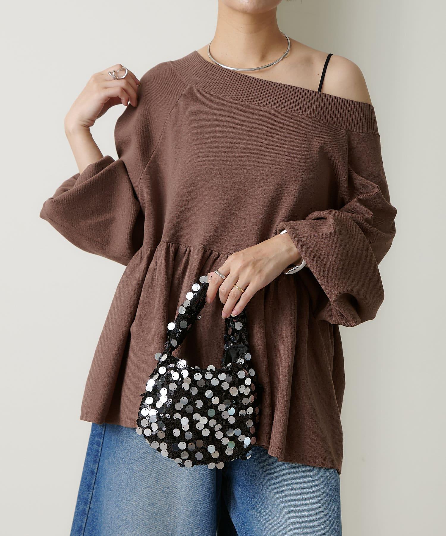 【Omekashi】全針織一字肩荷葉邊針織衫