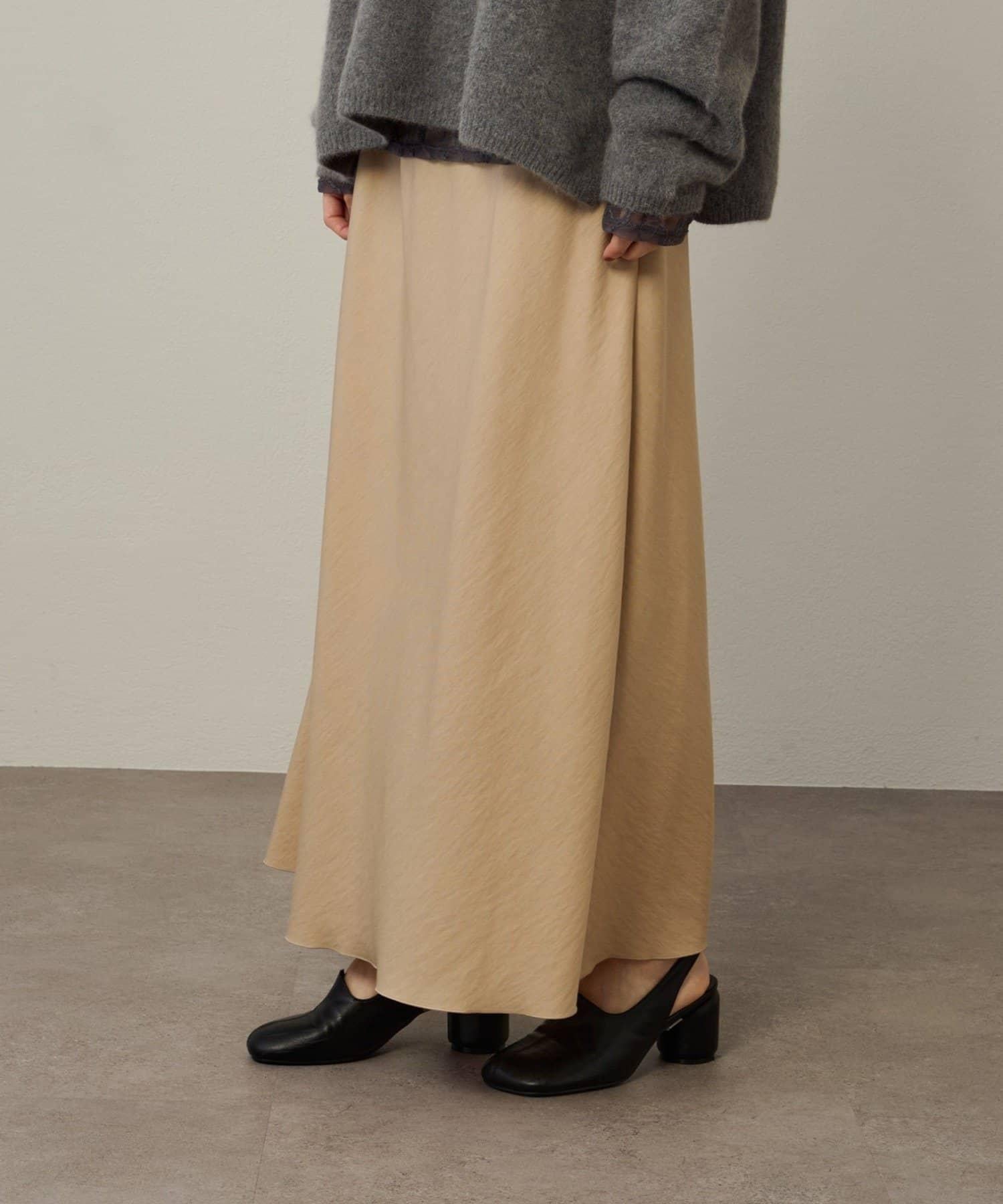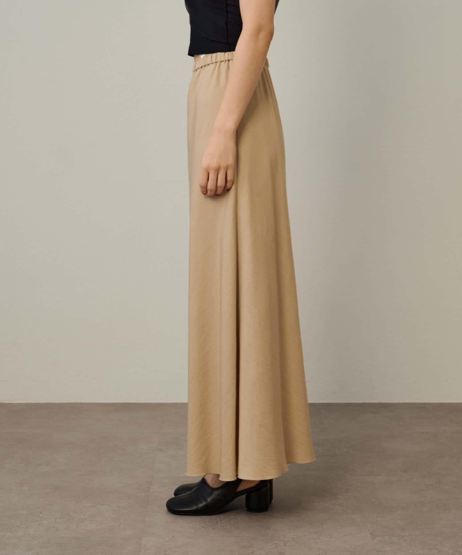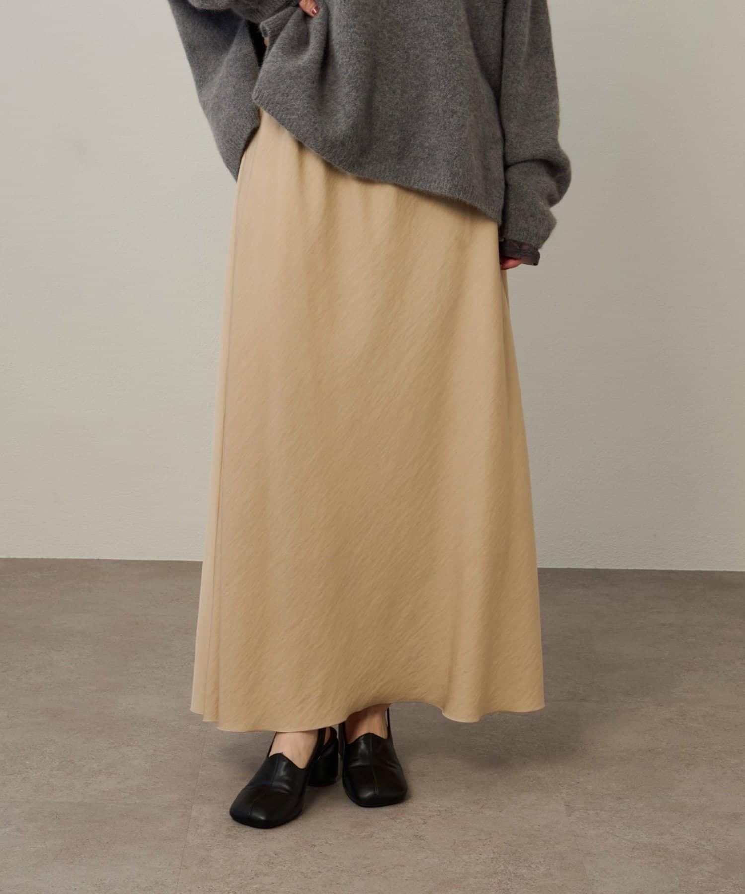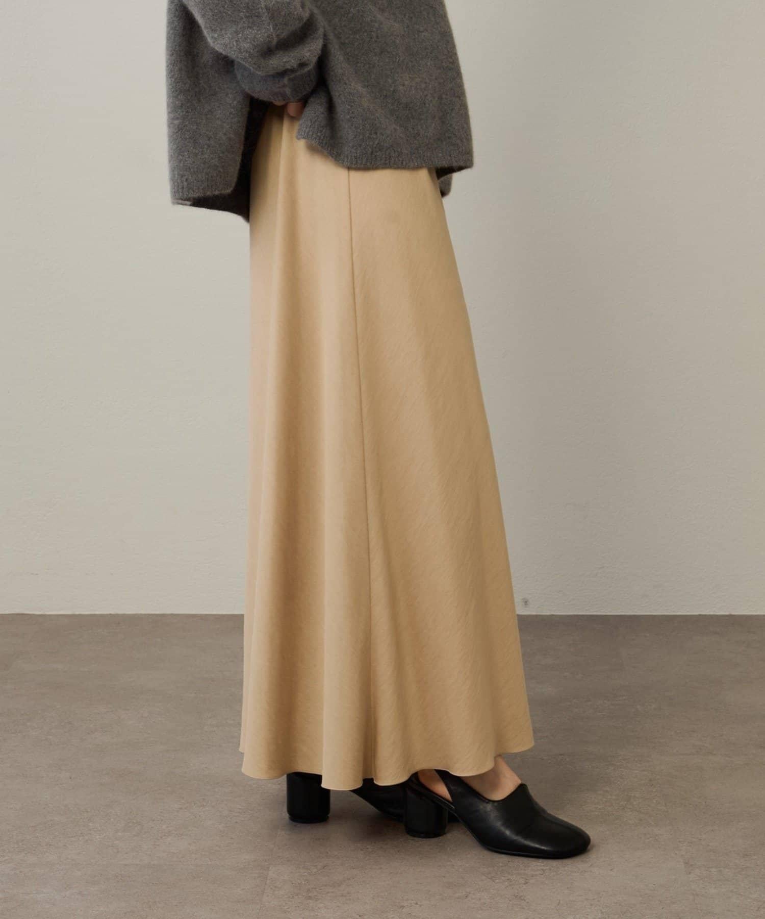 這款斜裙具有平滑、垂墜的感覺,並呈 A 字形展開,給人一種優美休閒的感覺。