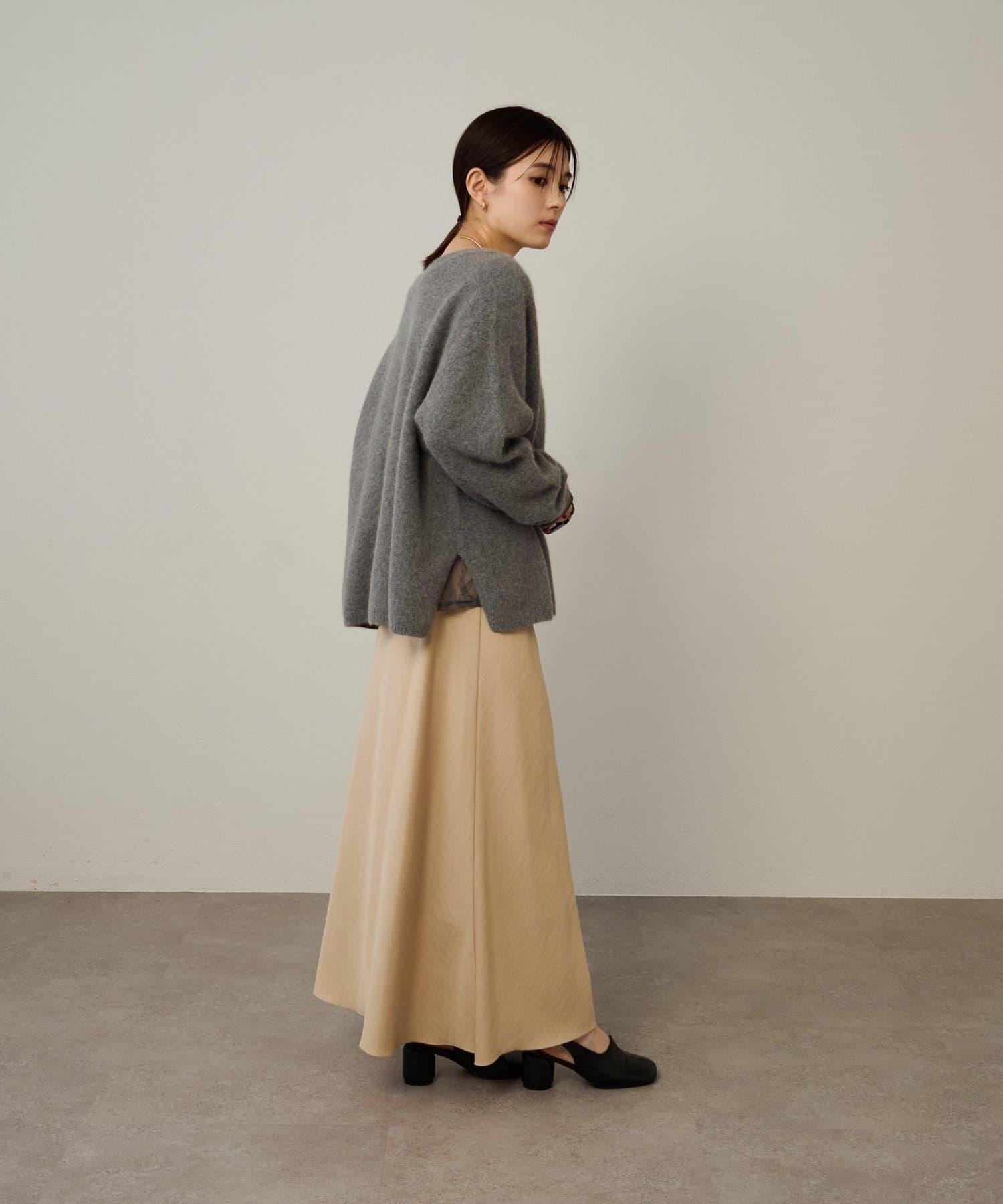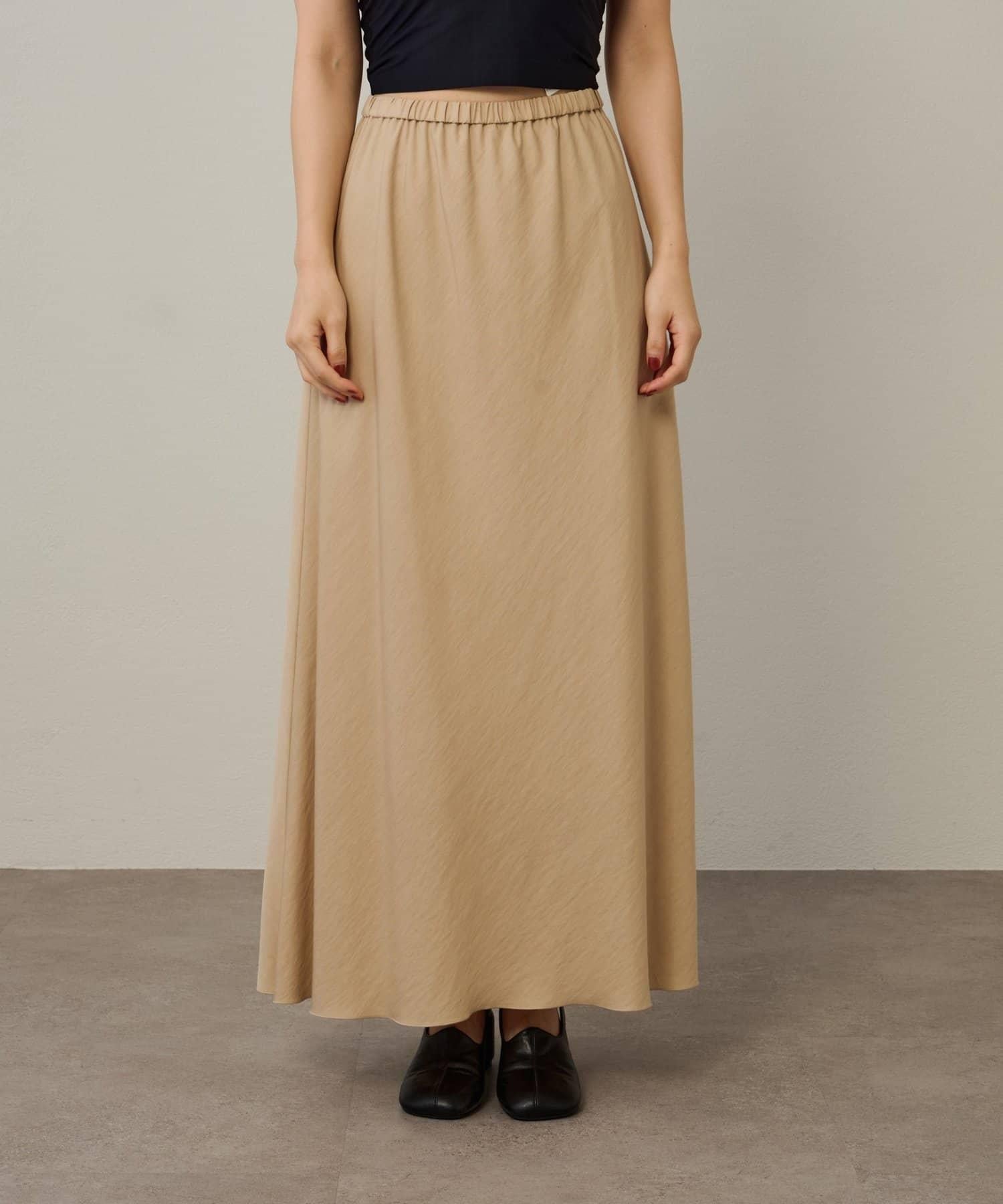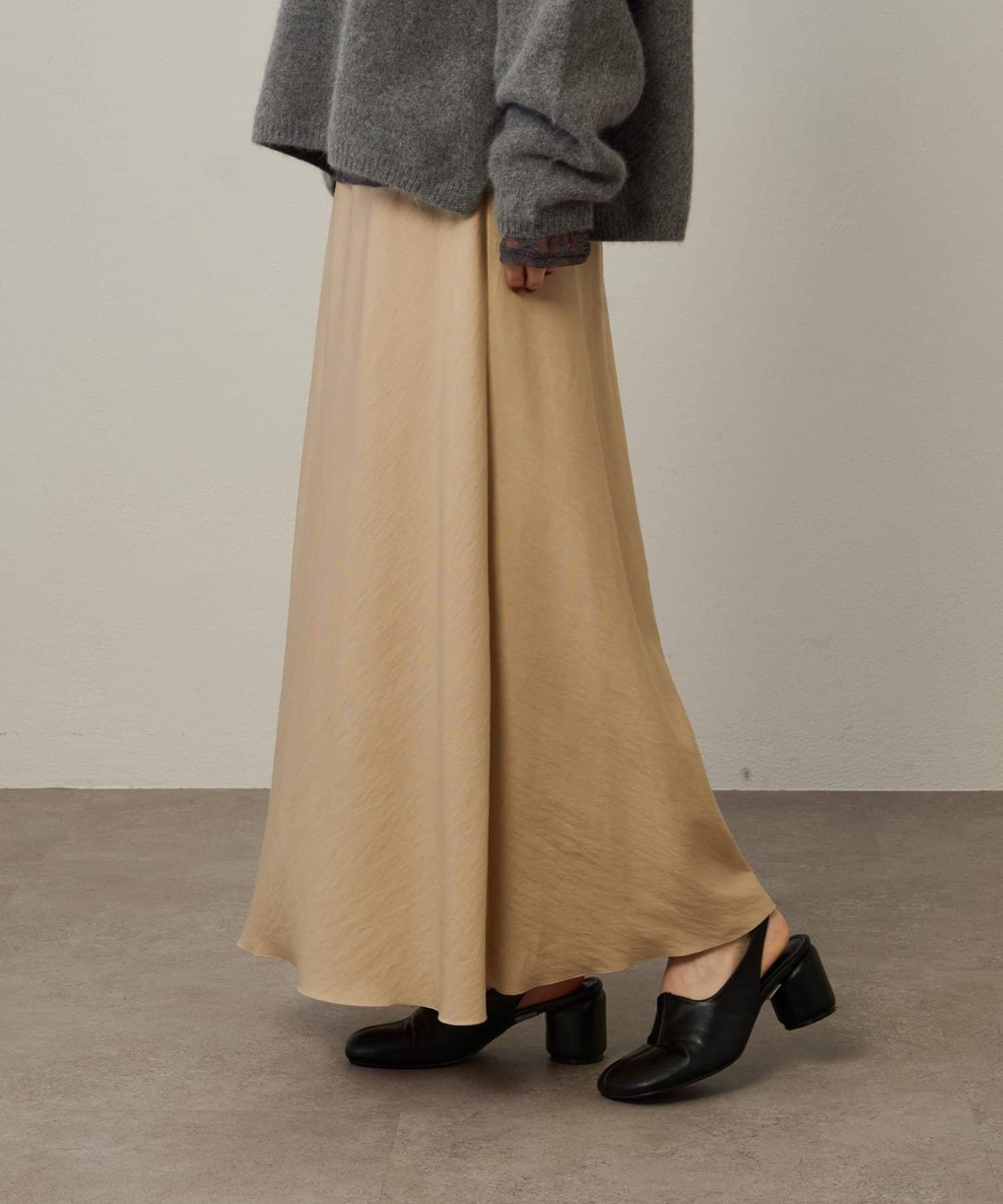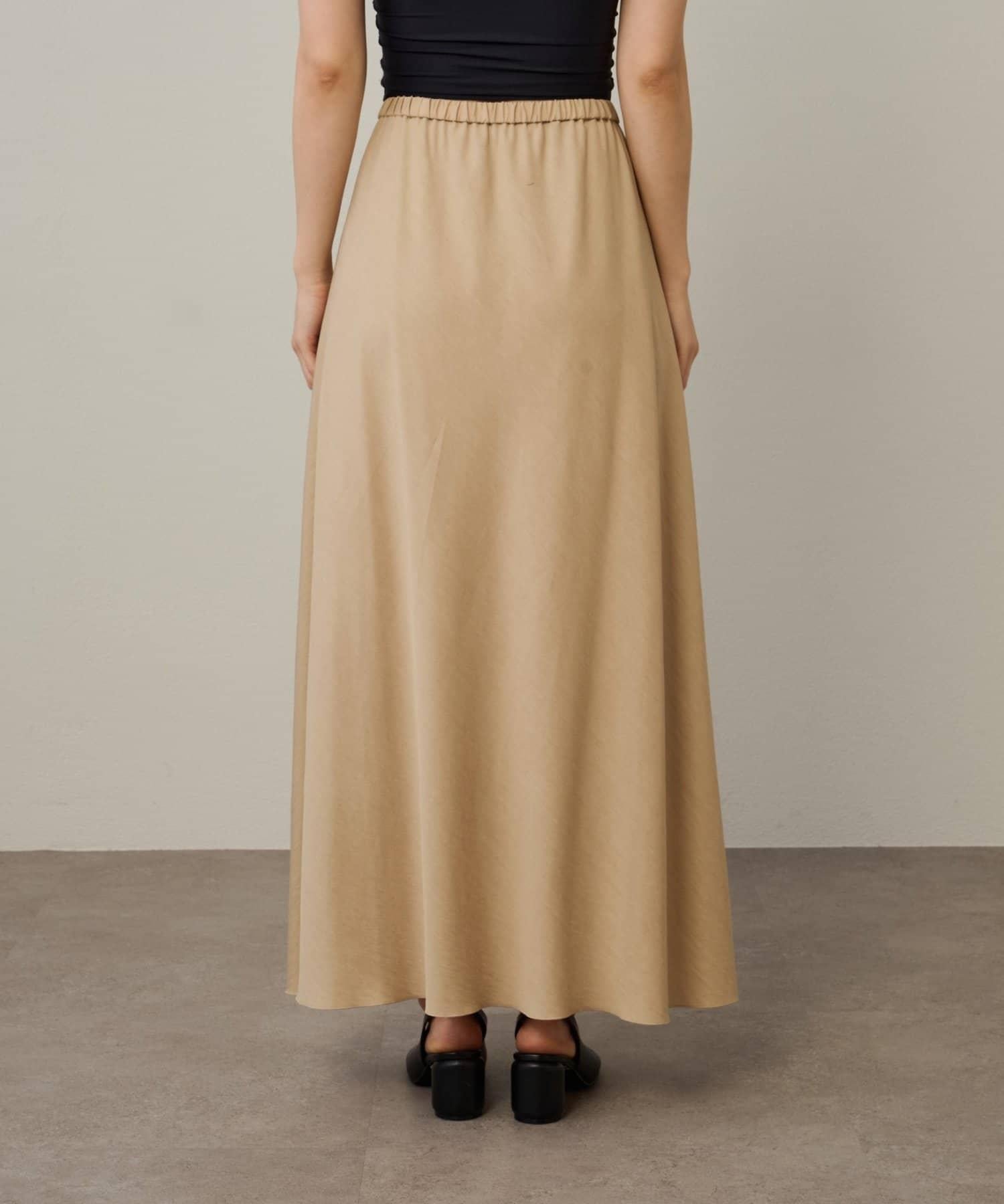 這款斜裙具有平滑、垂墜的感覺,並呈 A 字形展開,給人一種優美休閒的感覺。