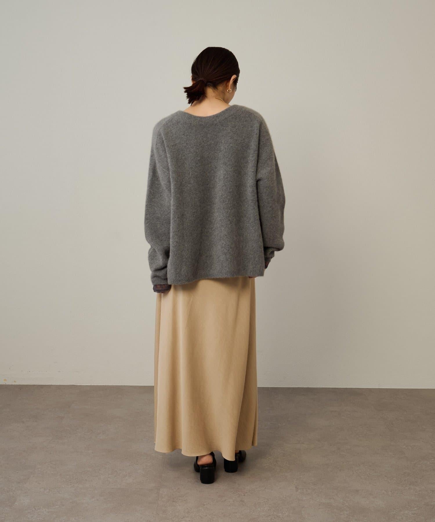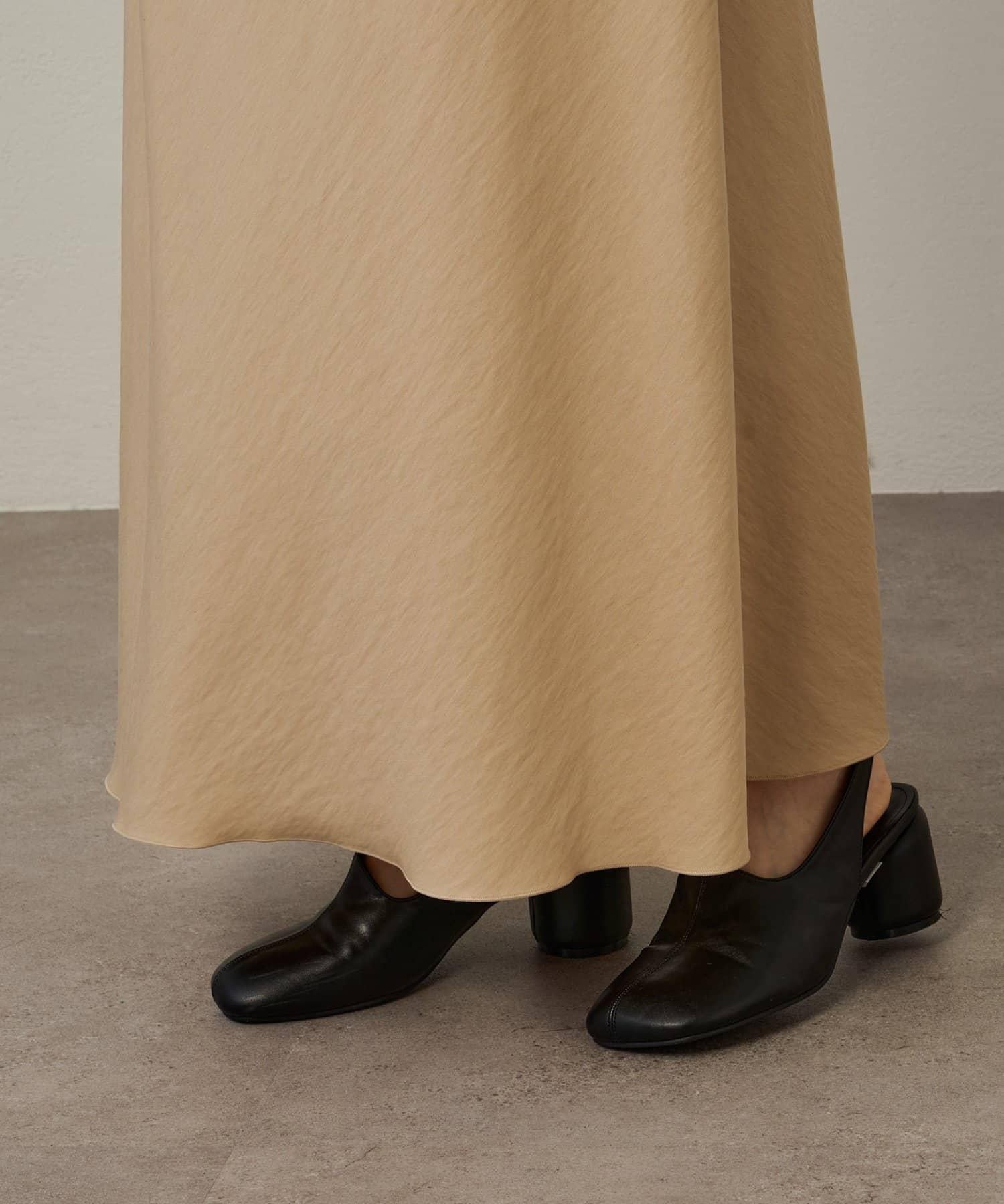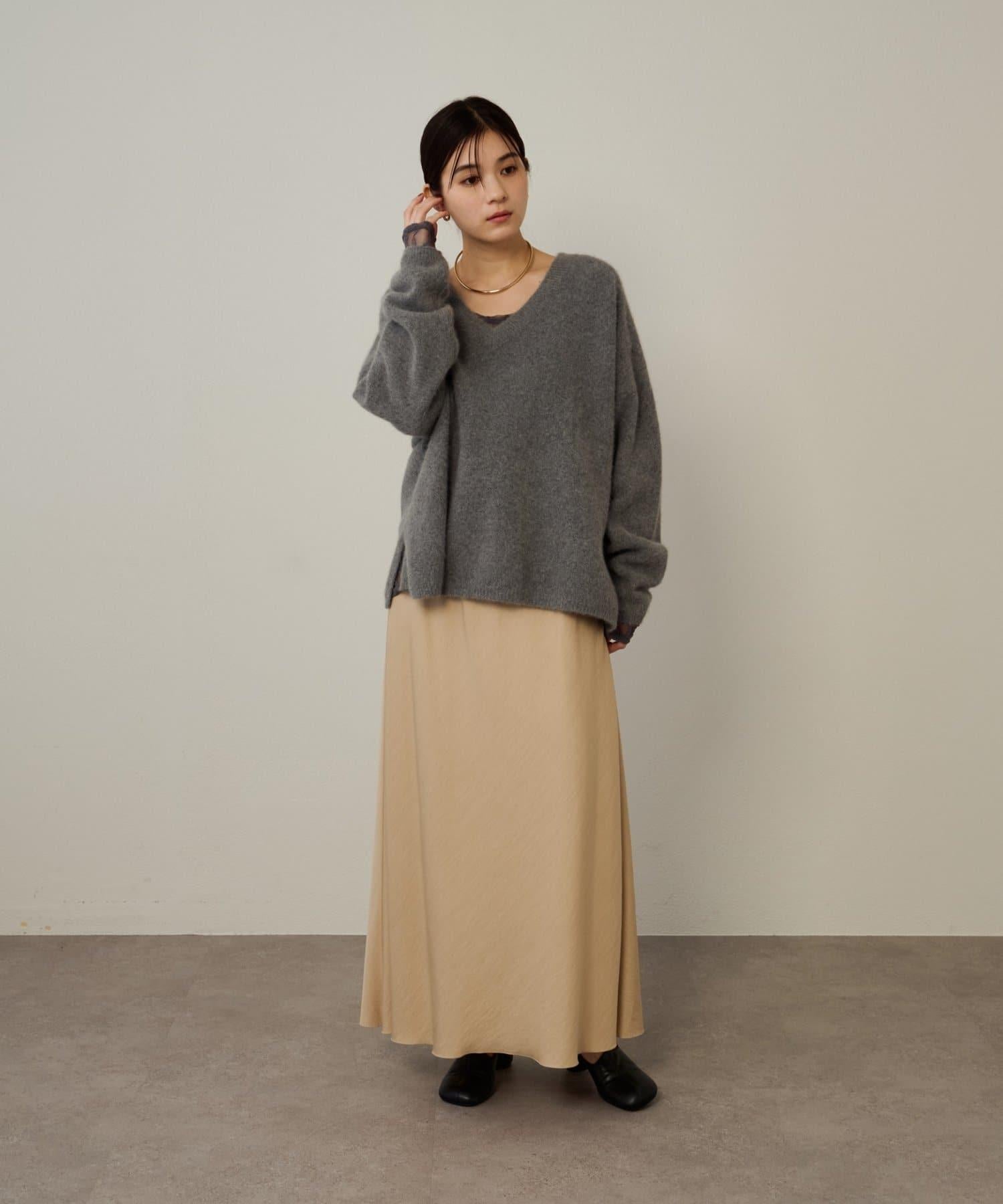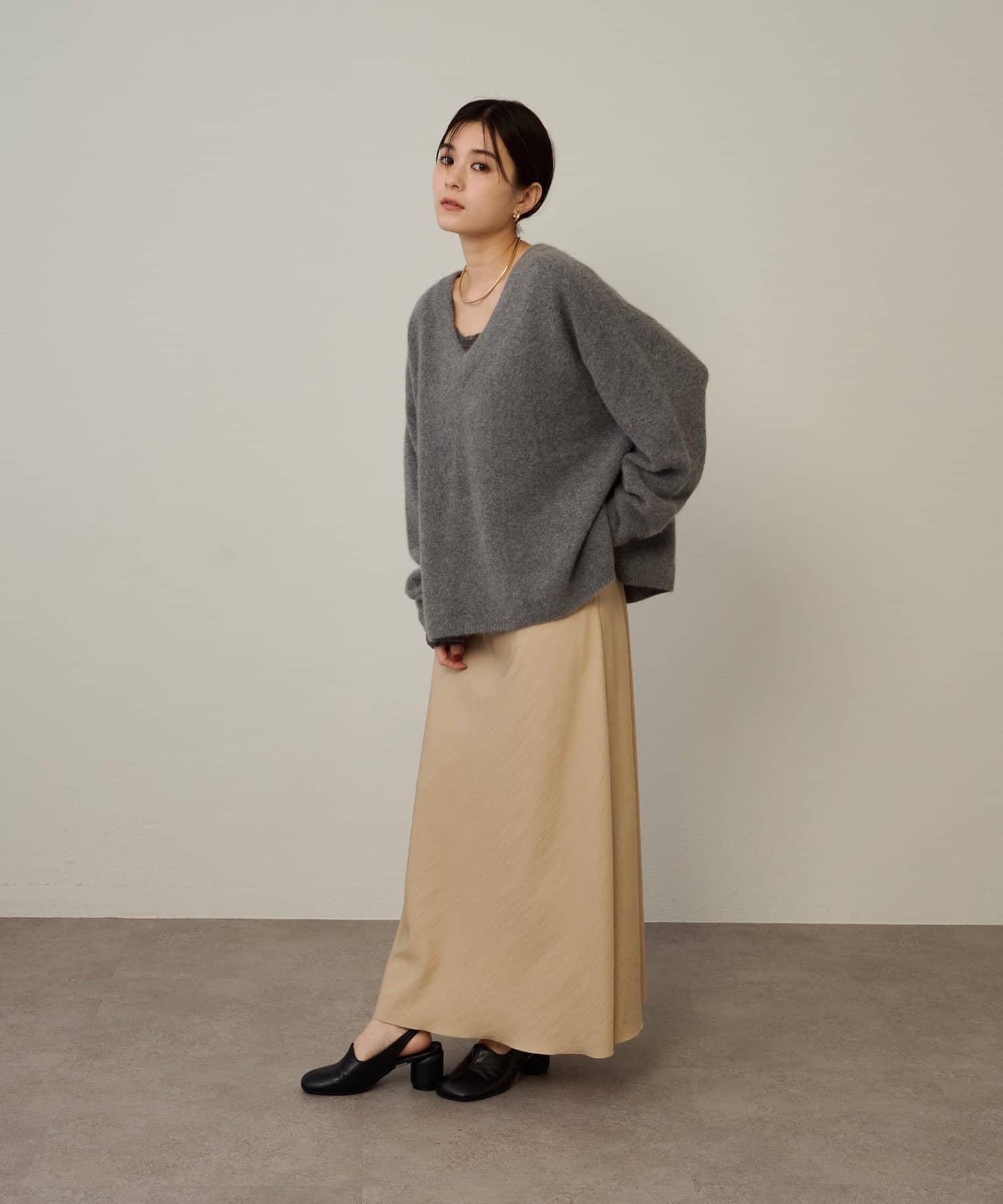 這款斜裙具有平滑、垂墜的感覺,並呈 A 字形展開,給人一種優美休閒的感覺。