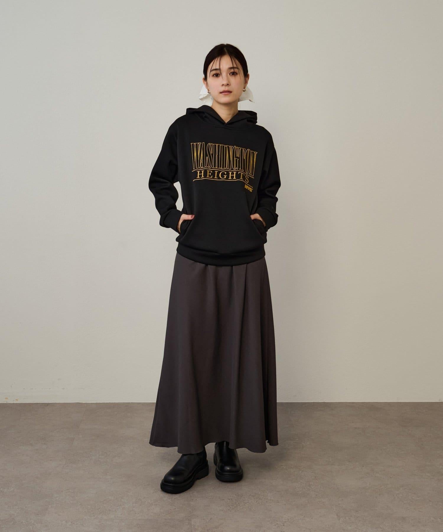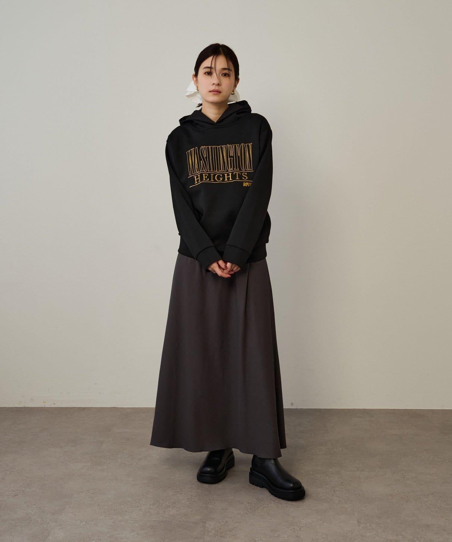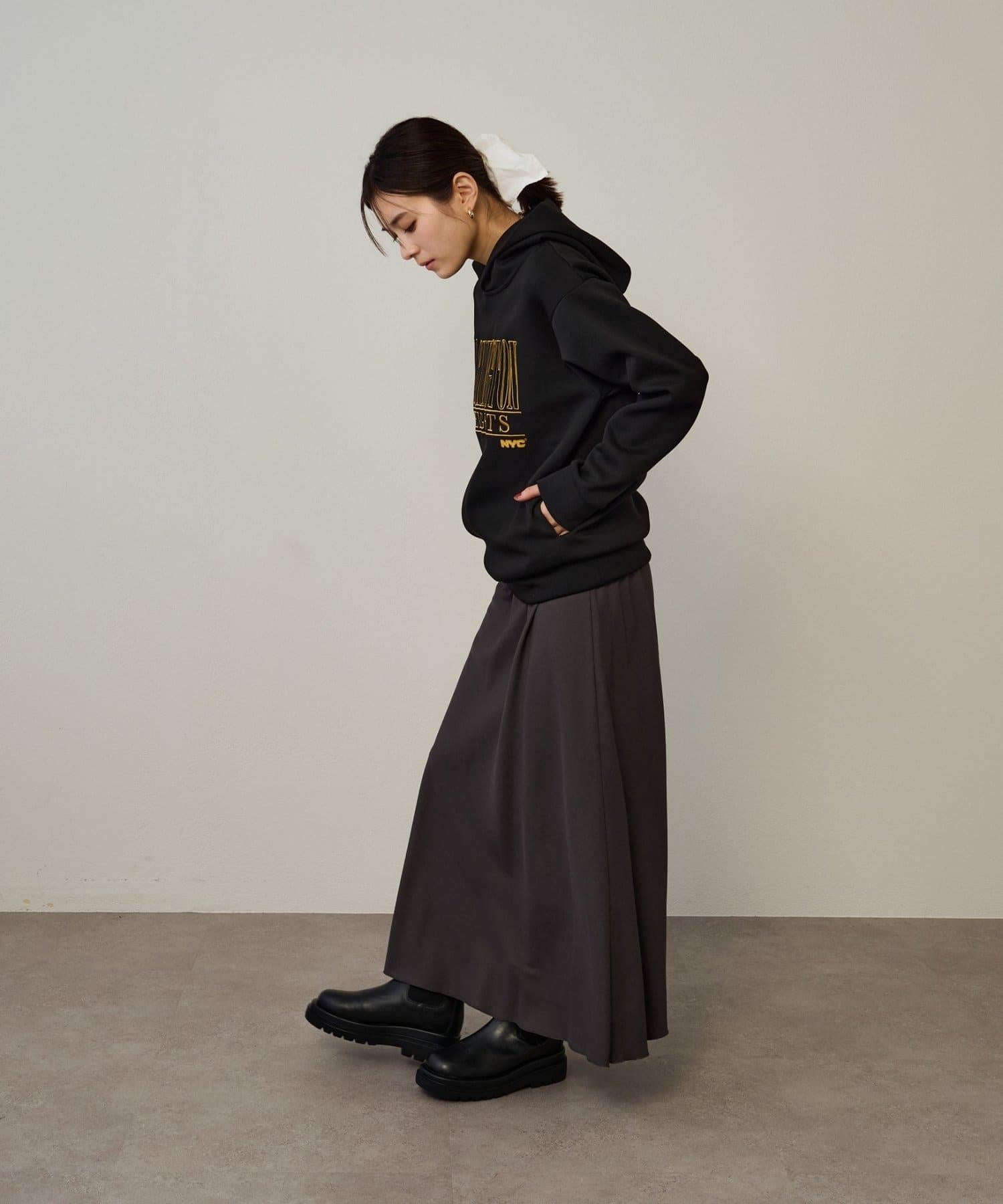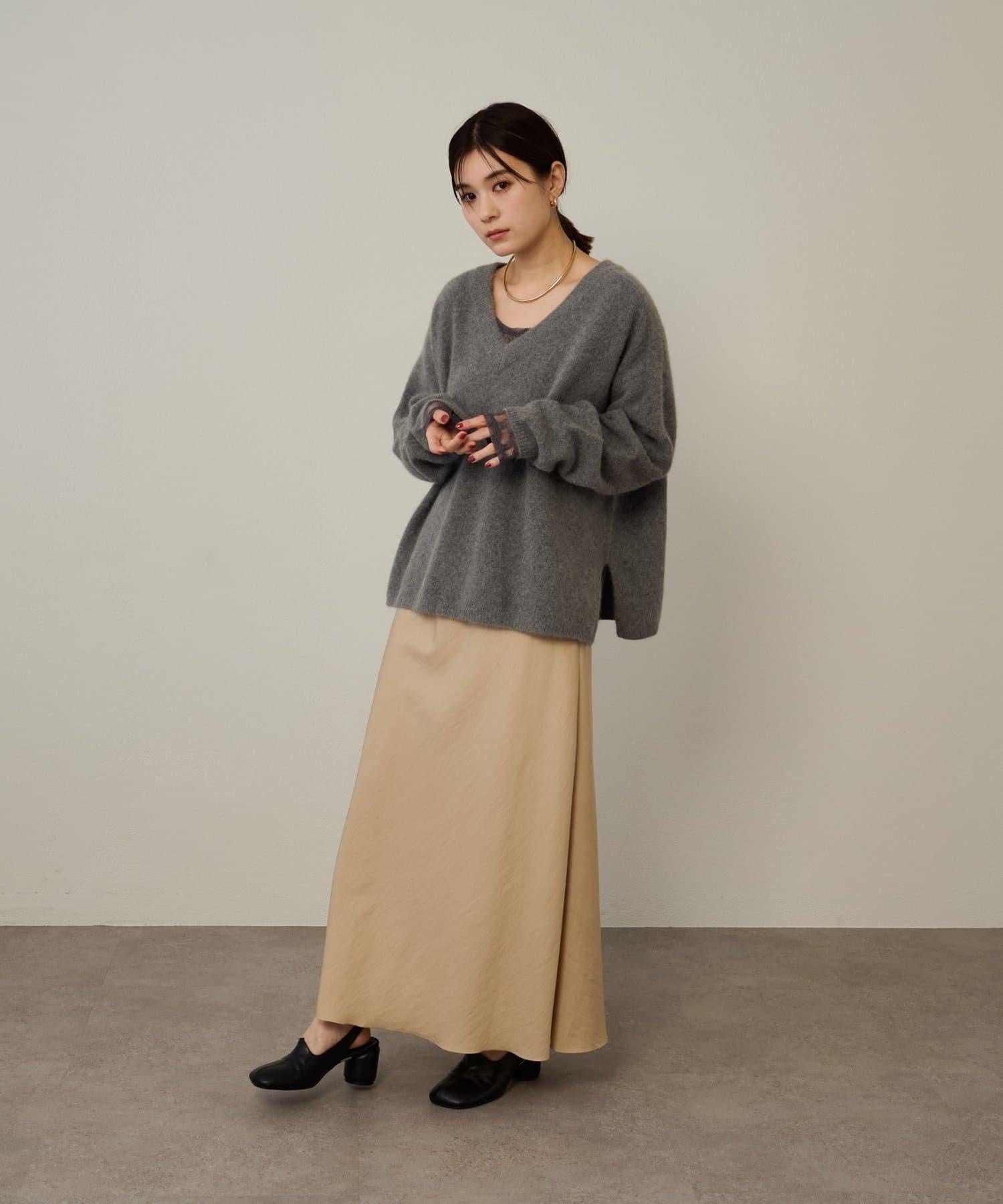 這款斜裙具有平滑、垂墜的感覺,並呈 A 字形展開,給人一種優美休閒的感覺。
