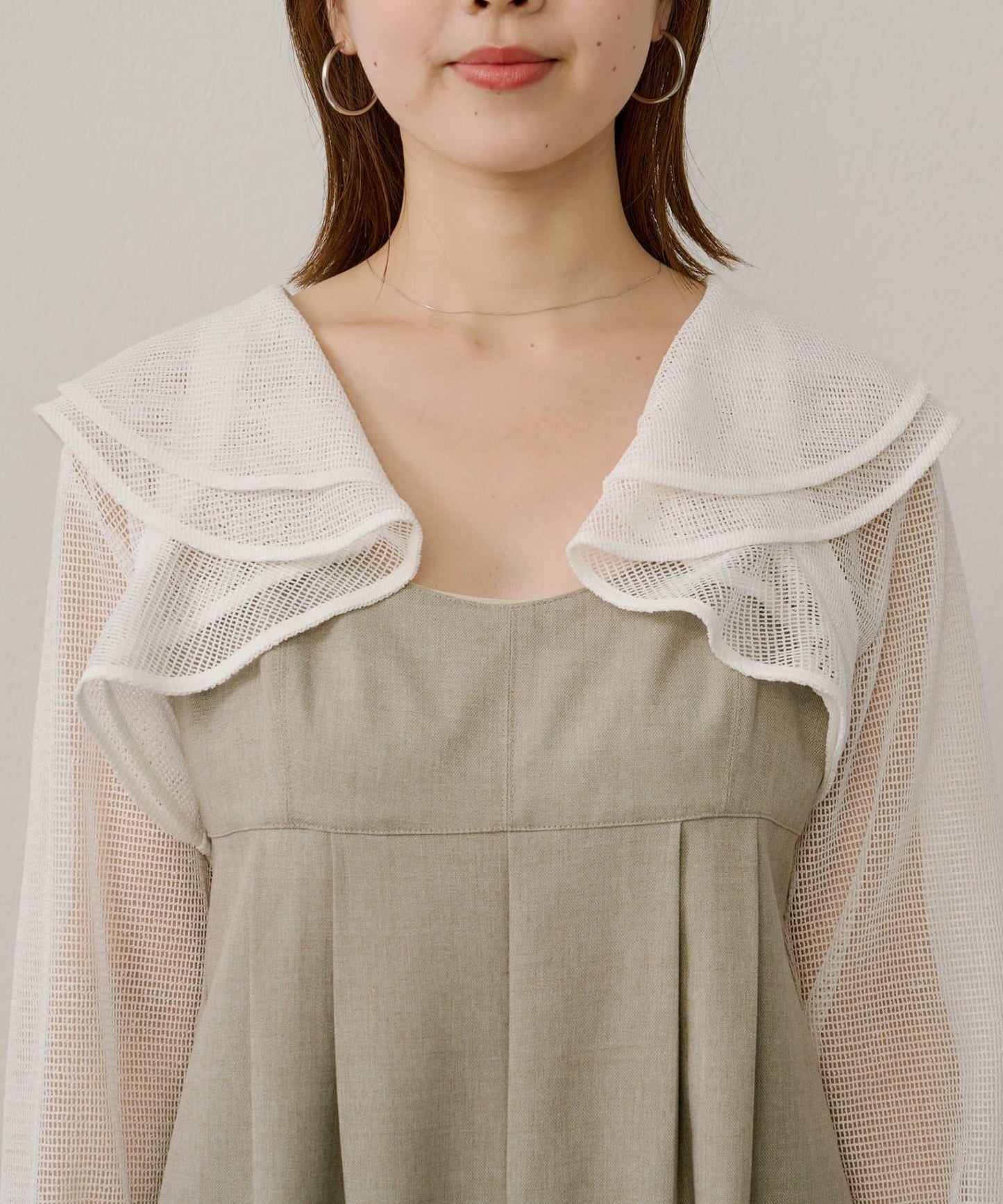 短款的長度和胸前的荷葉邊讓這款長裙看起來更有型。