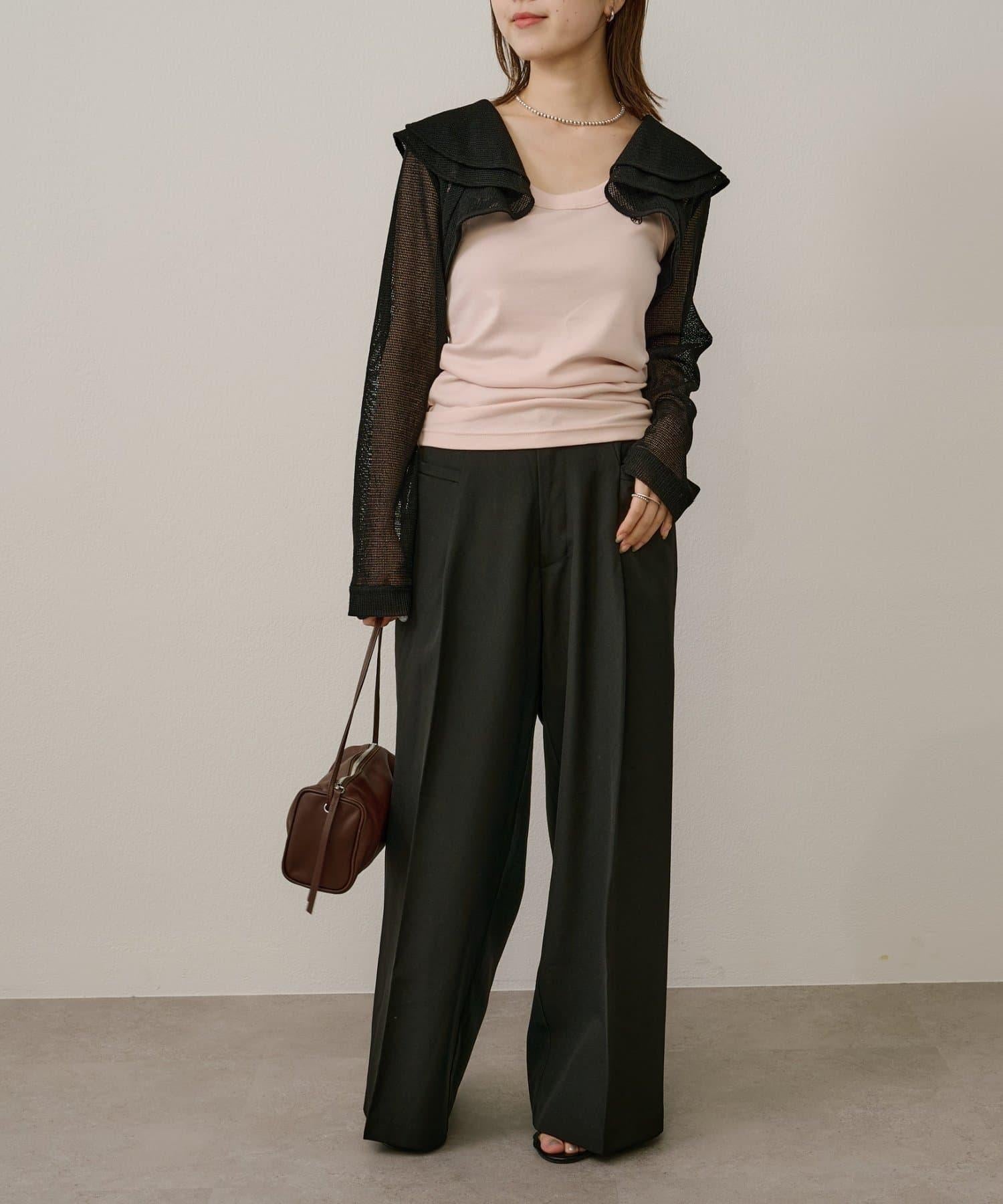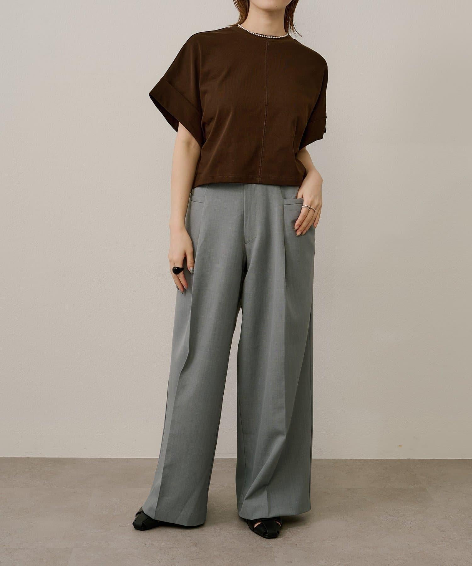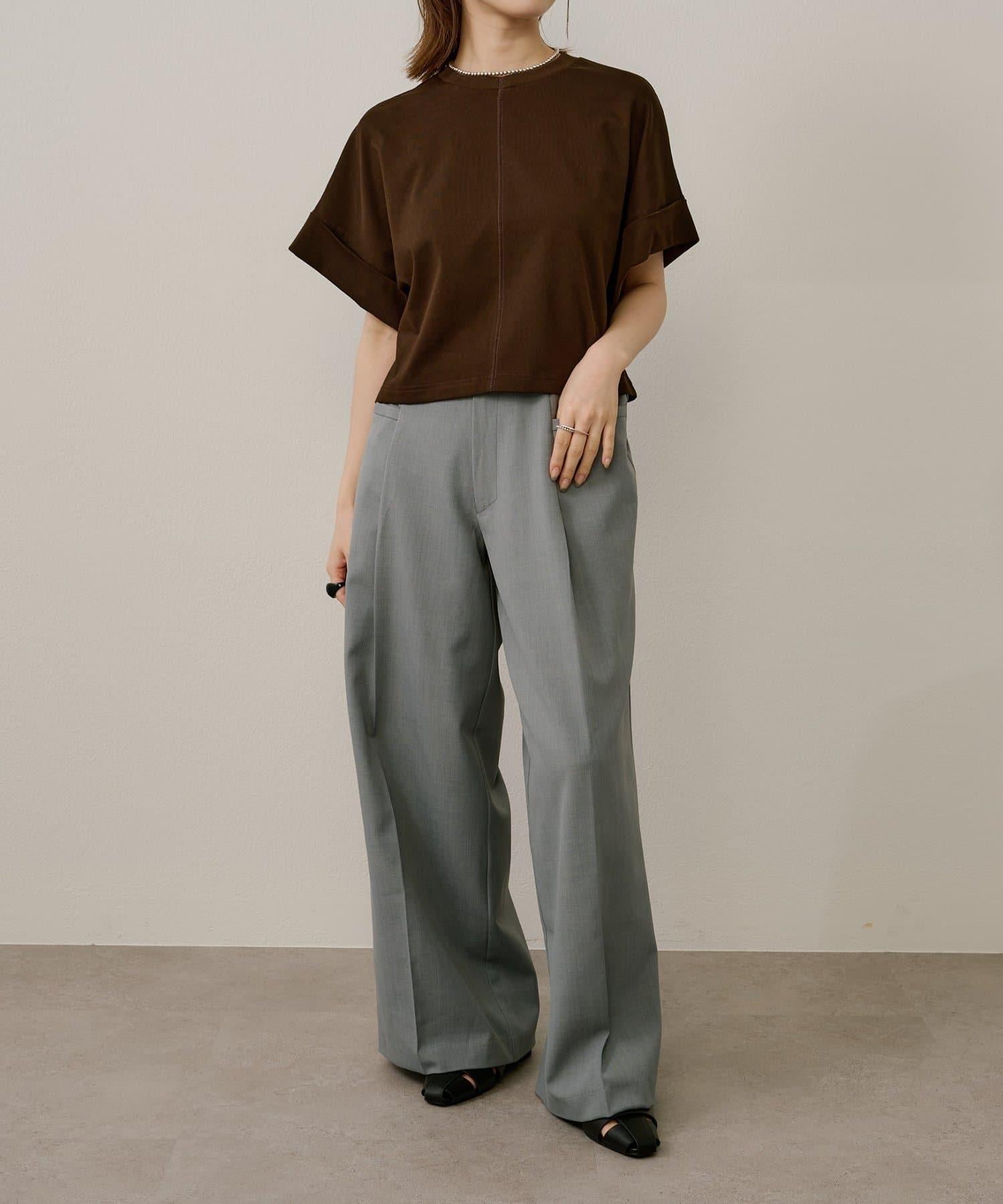 雙襉設計和寬鬆的輪廓覆蓋了大腿和腰部。