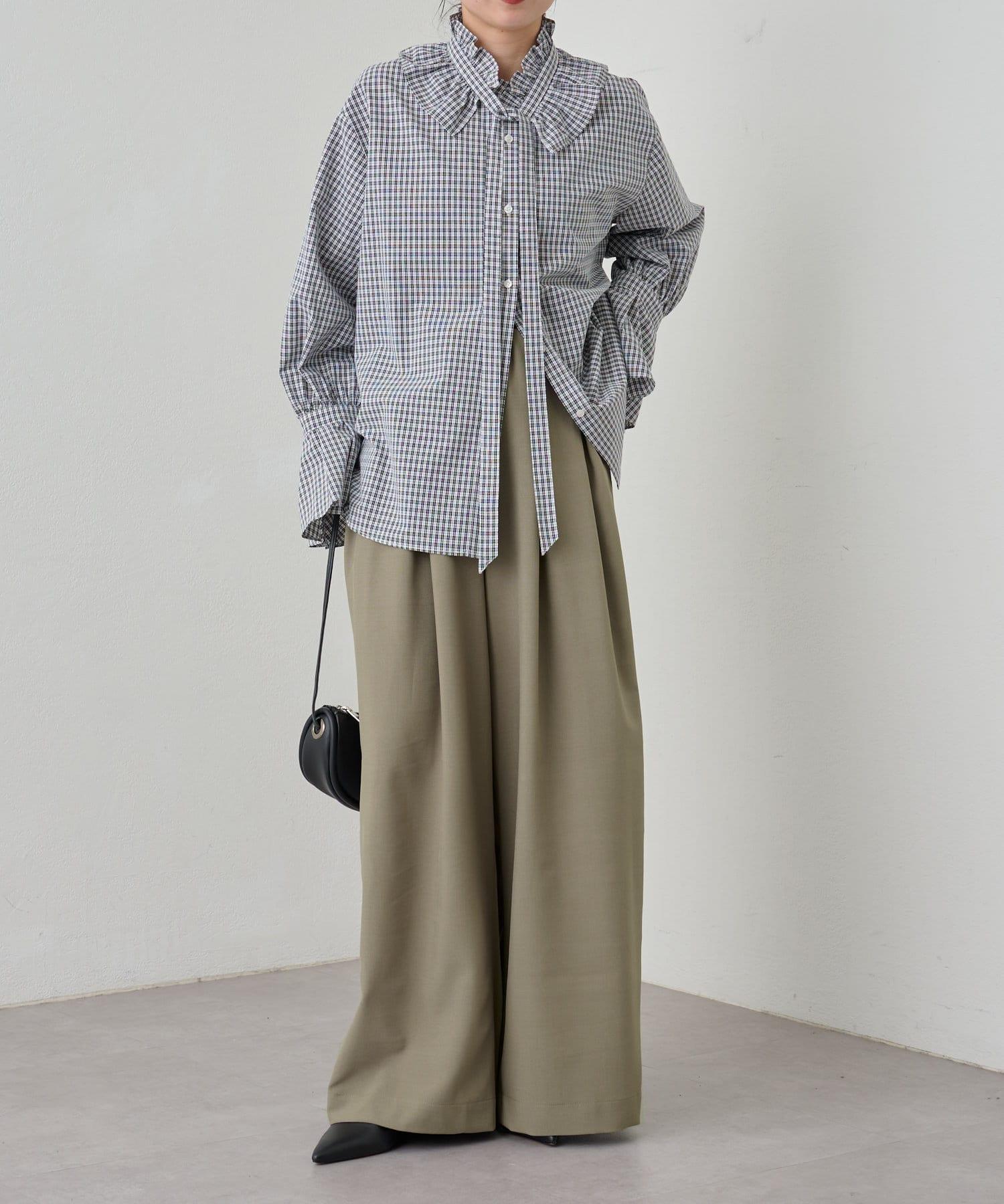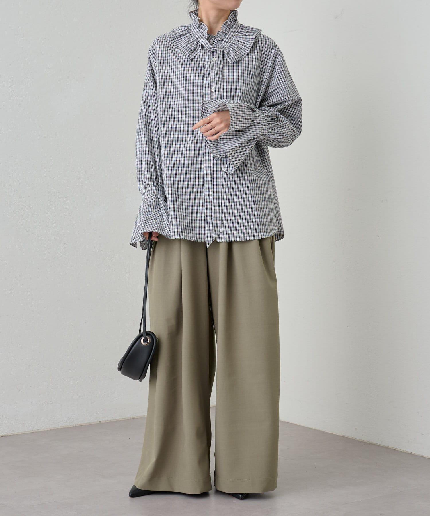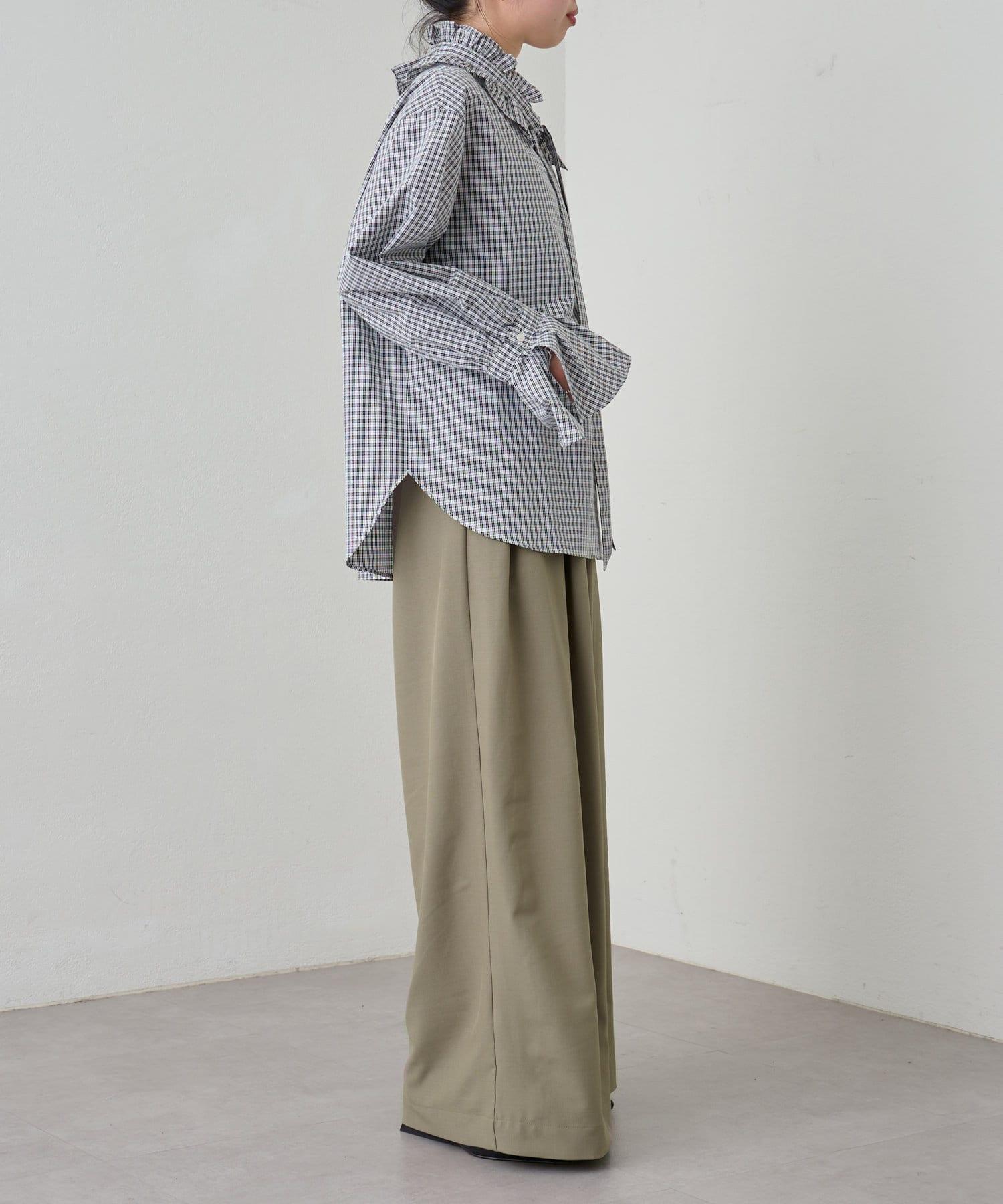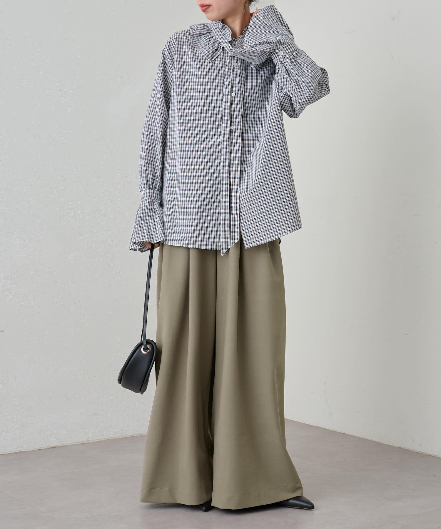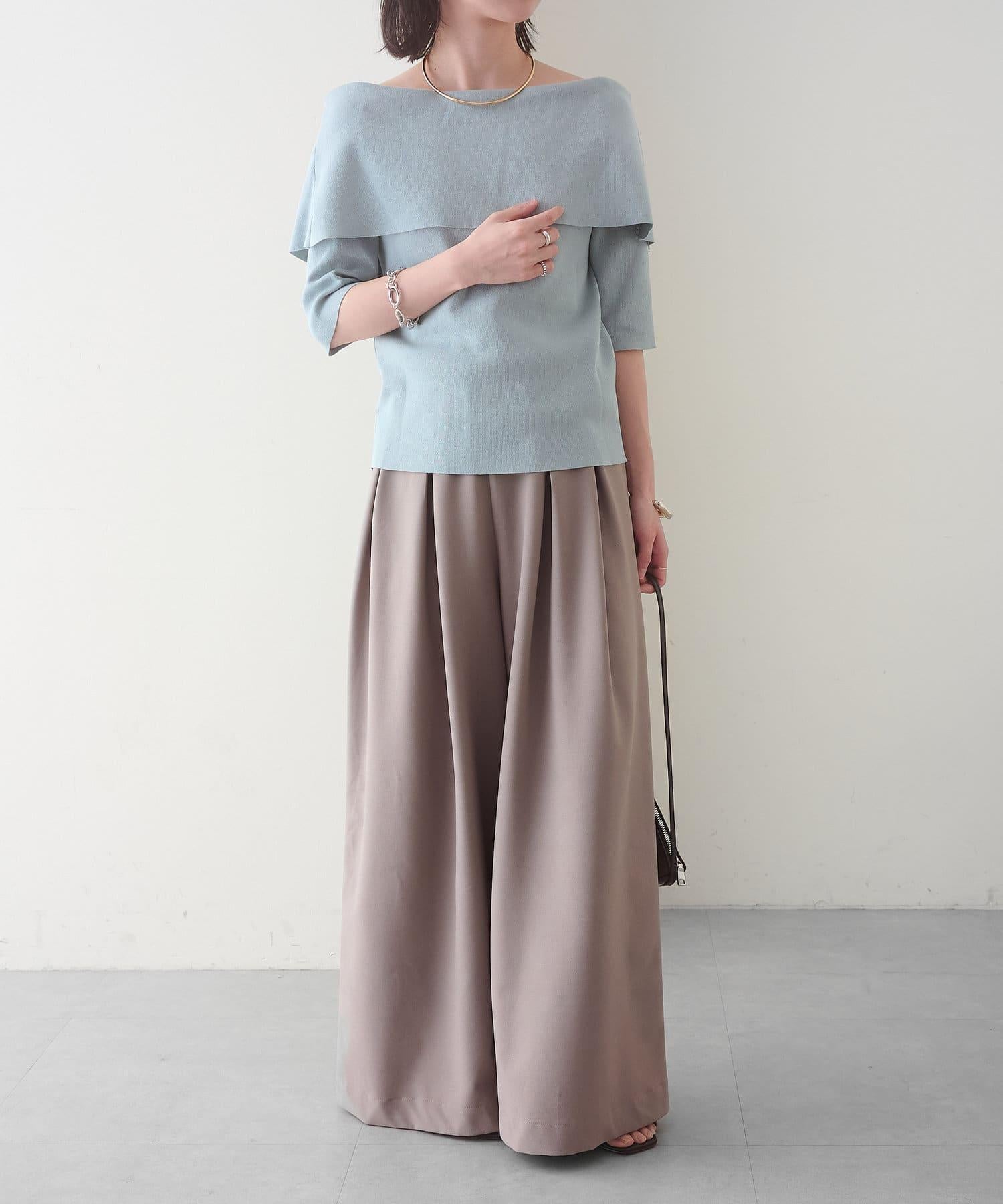 灰色款採用褶襉設計,具有拉長腿部線條的效果。