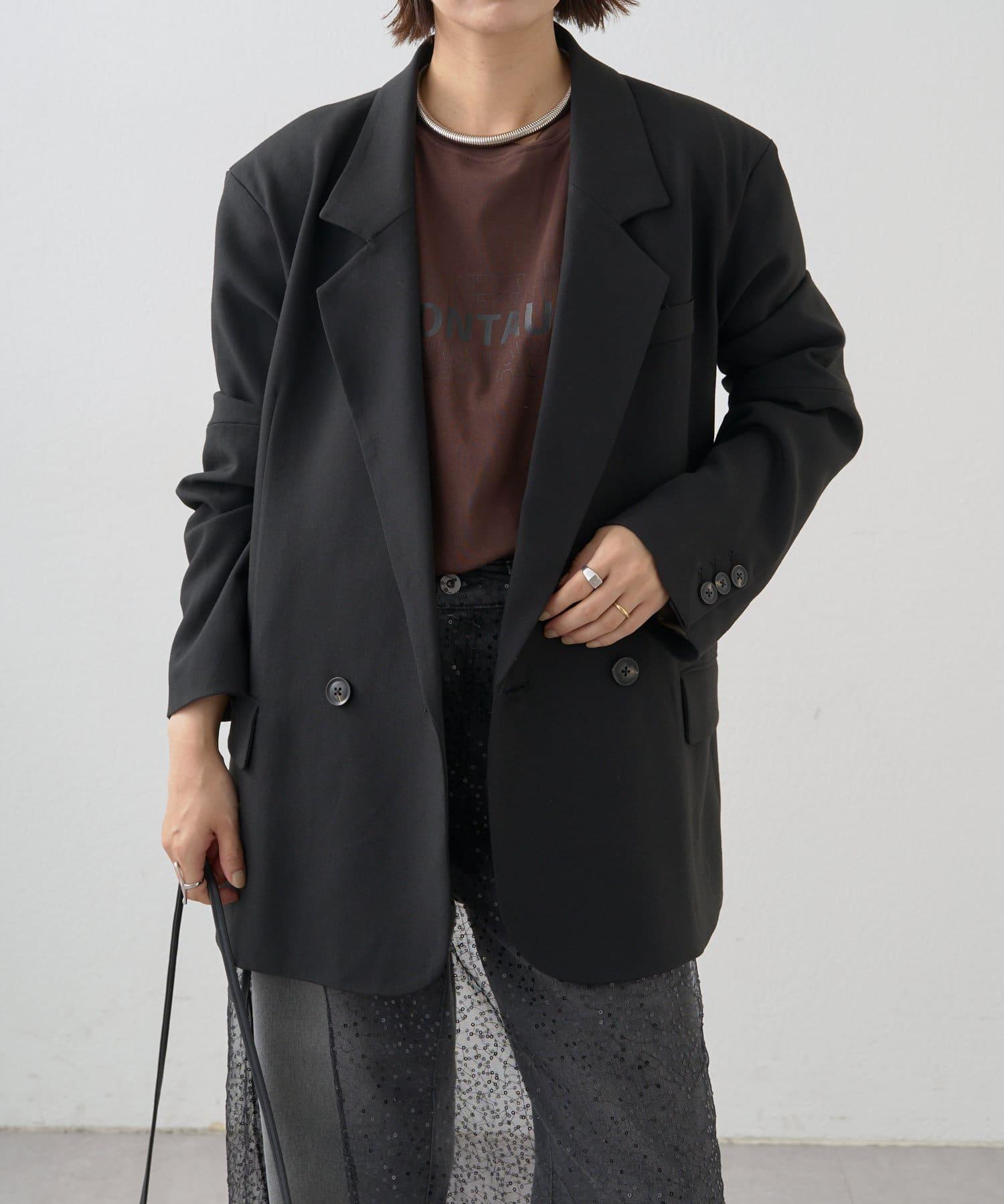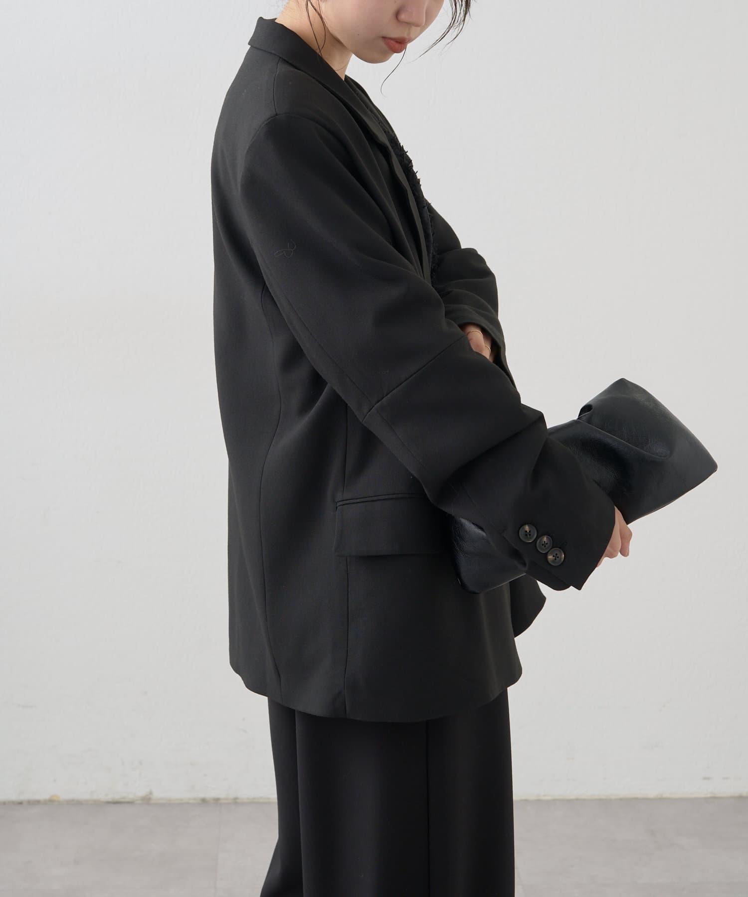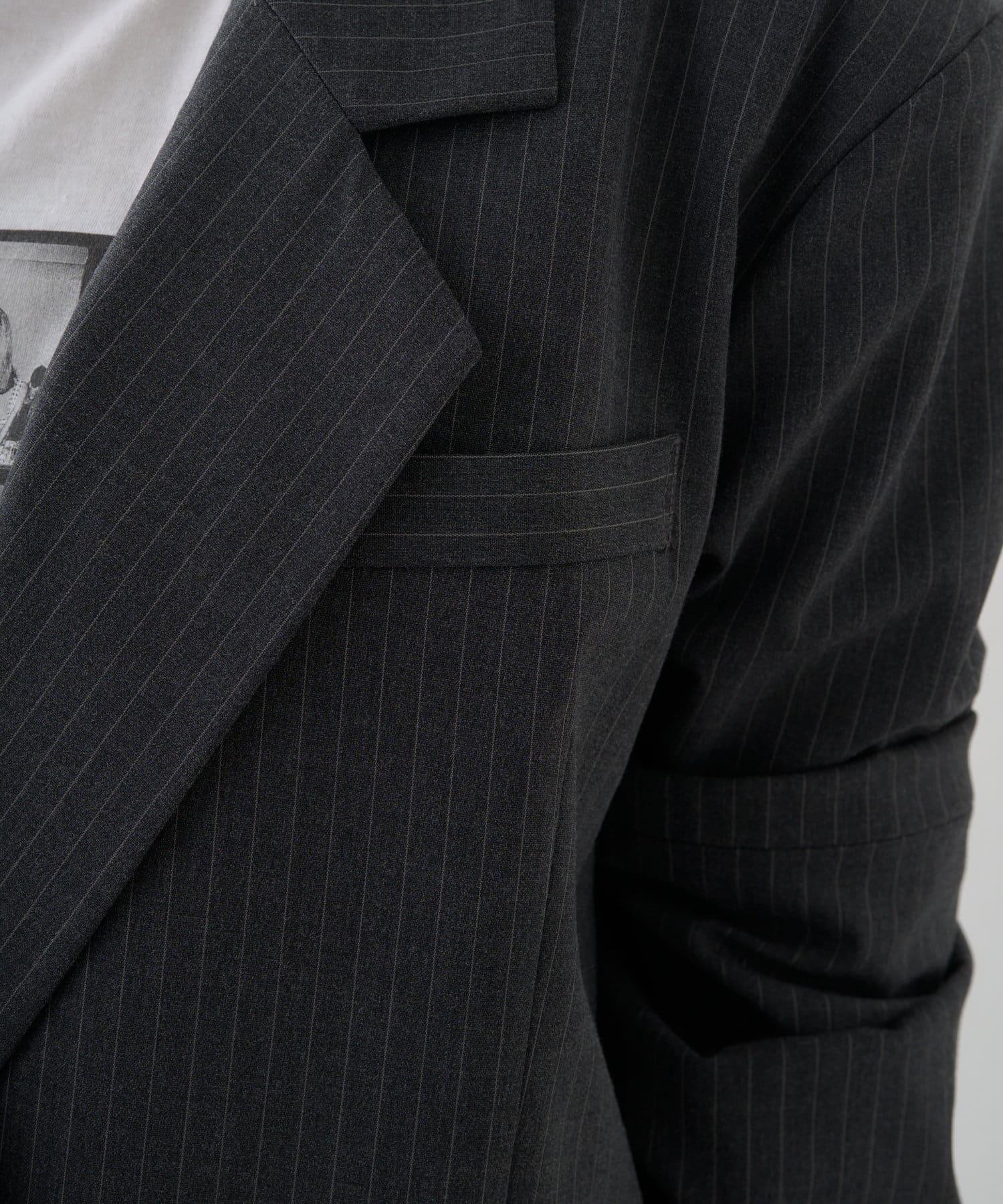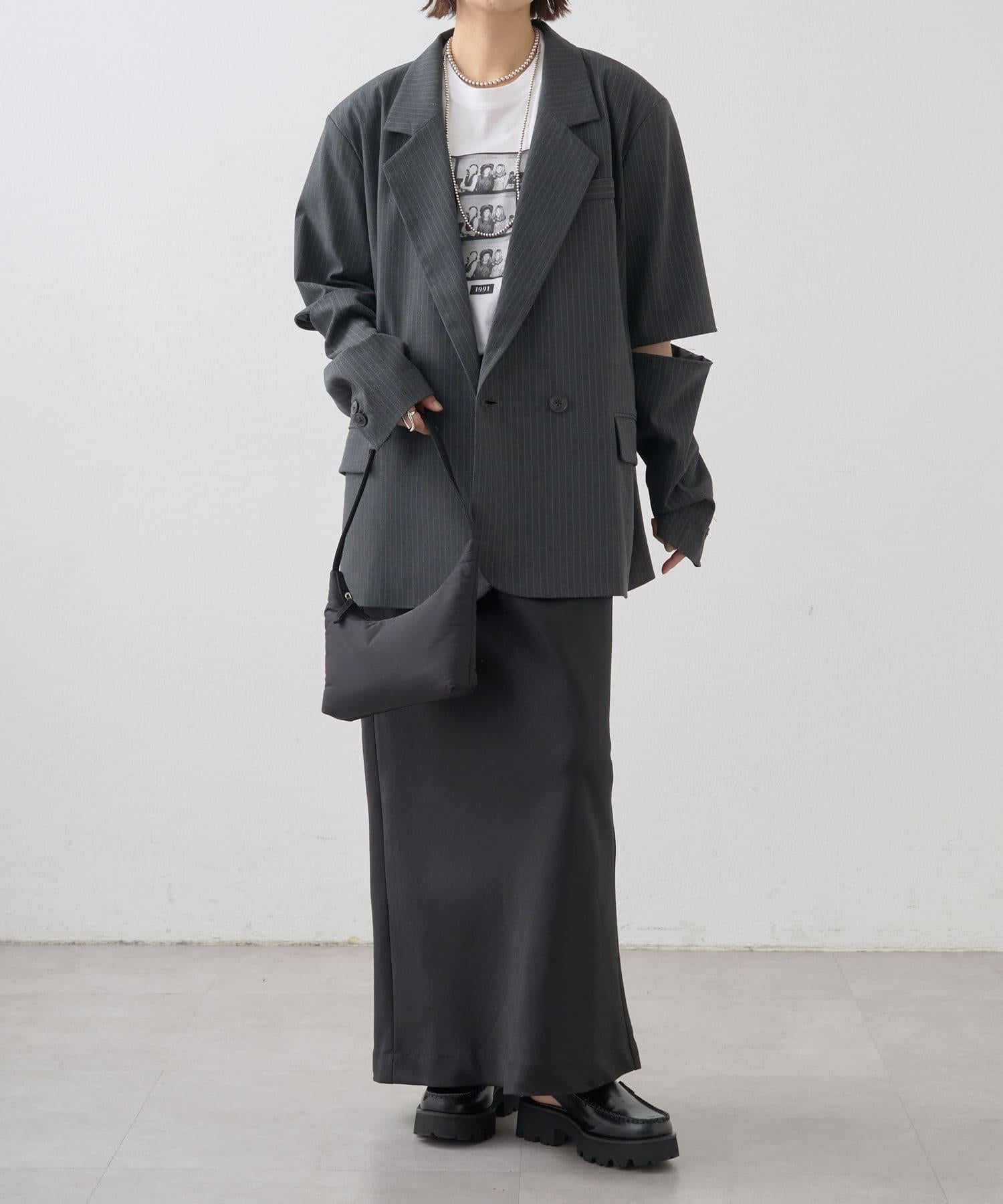 超大的剪裁加上墊肩,使其看起來更有男人味。
