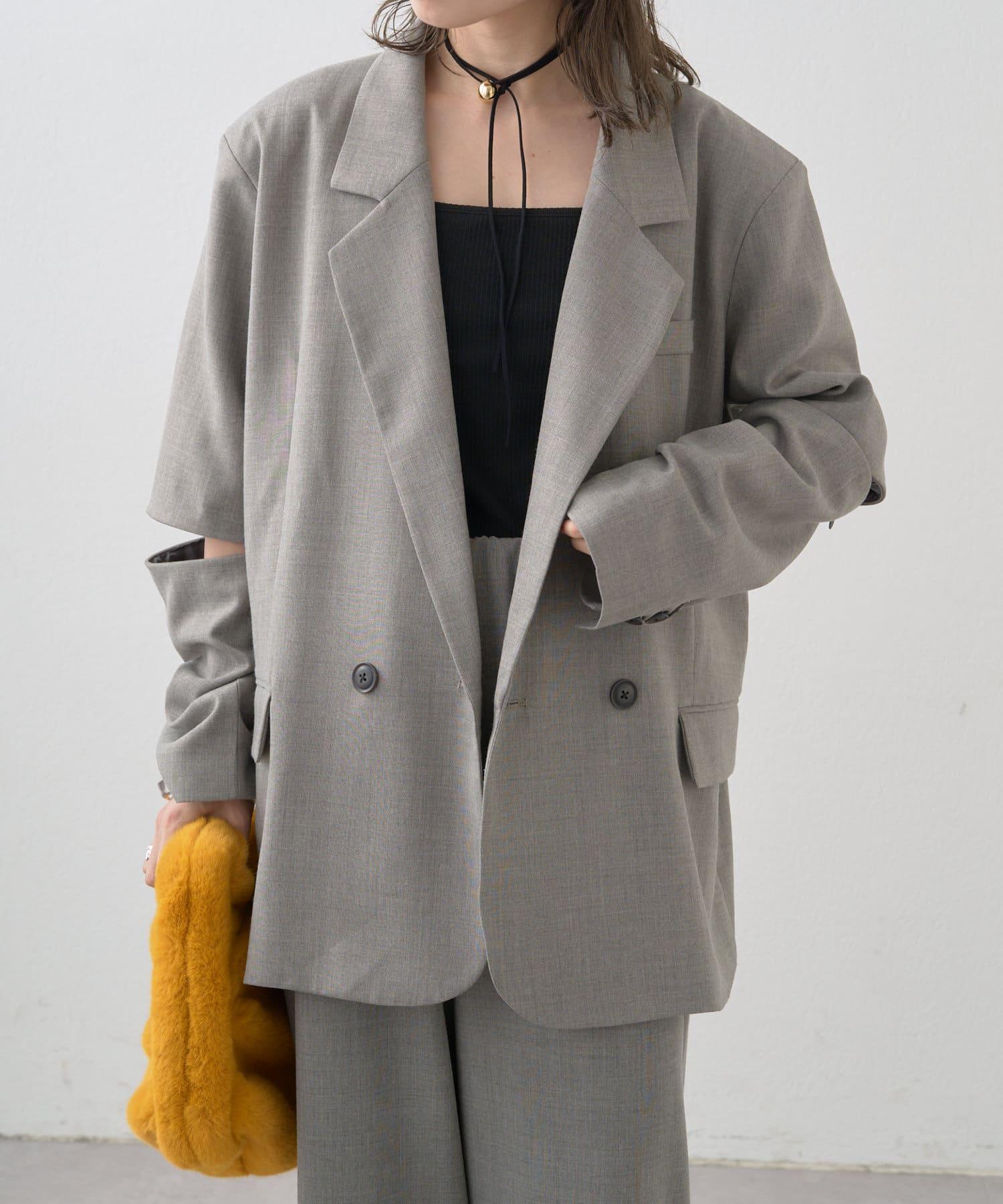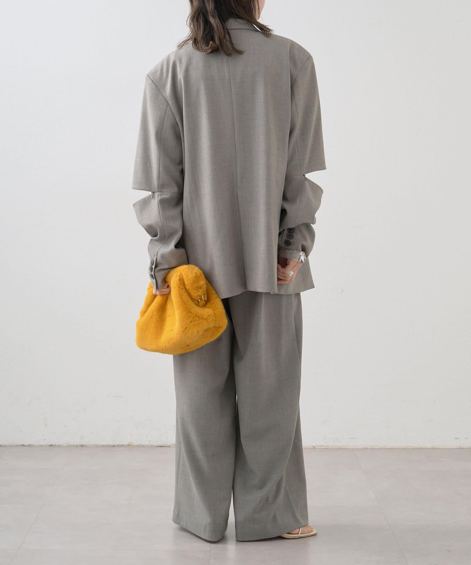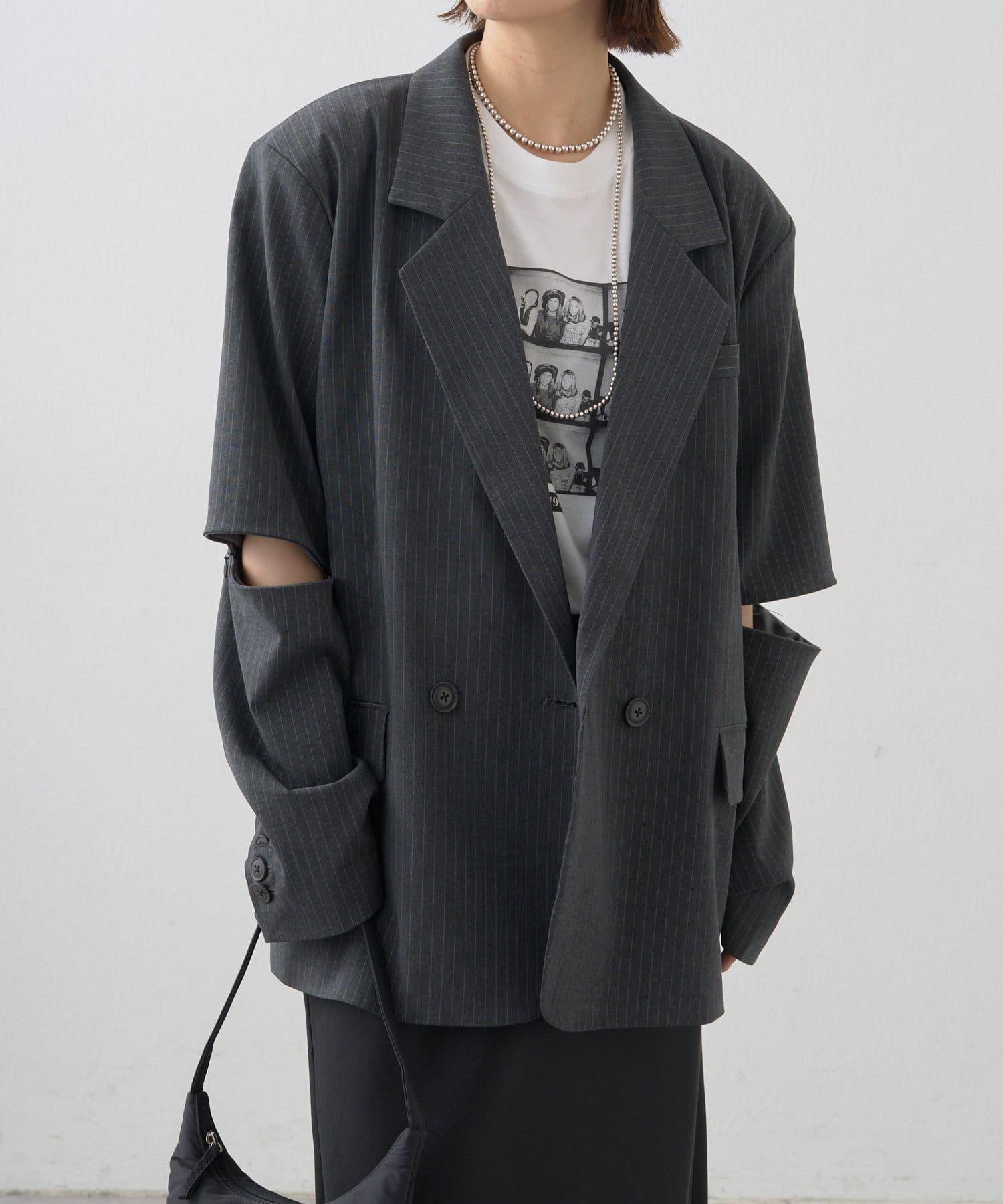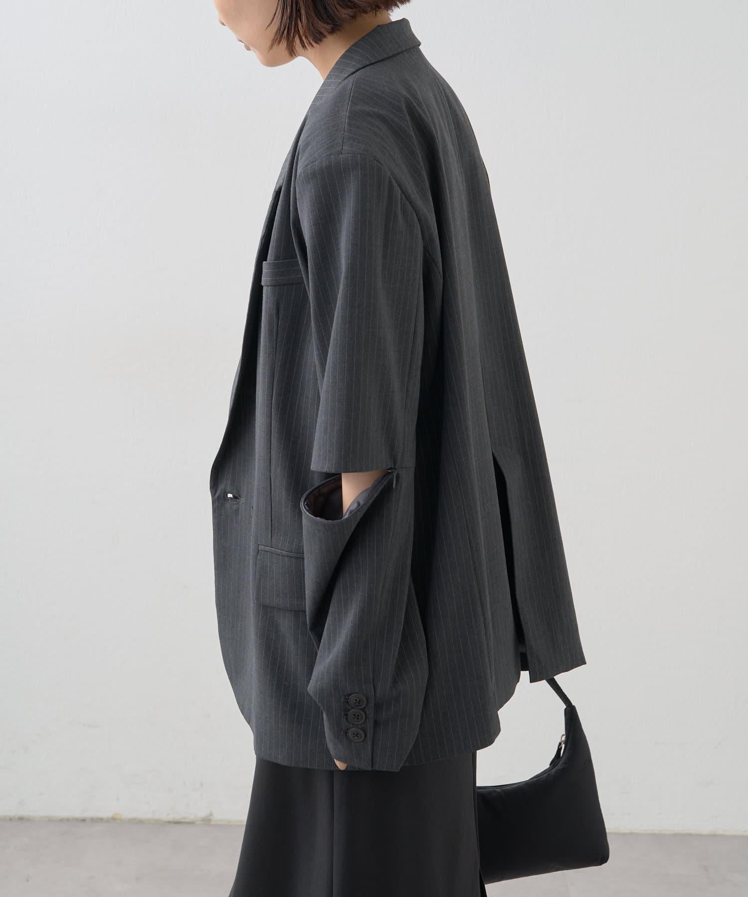 超大的剪裁加上墊肩,使其看起來更有男人味。