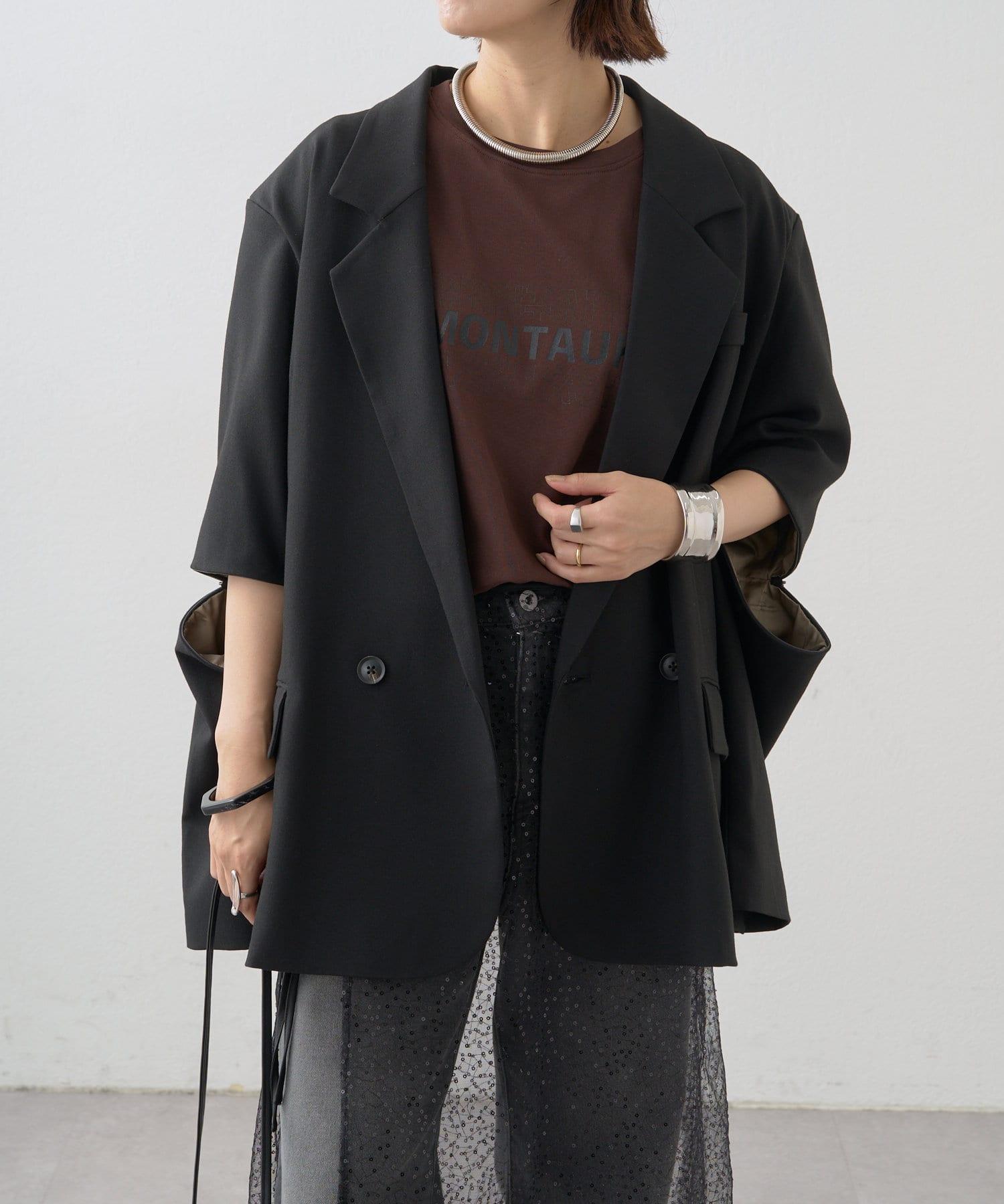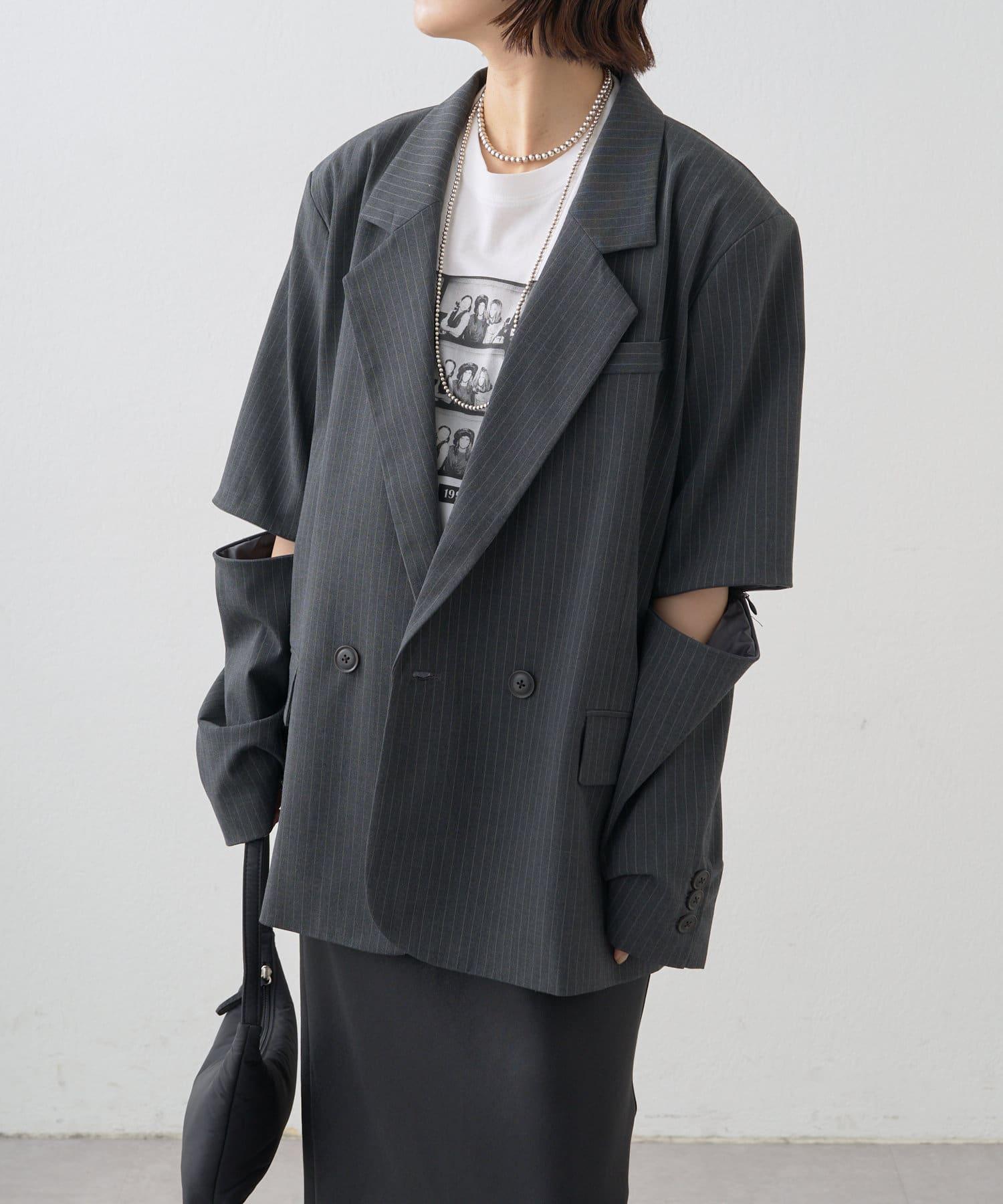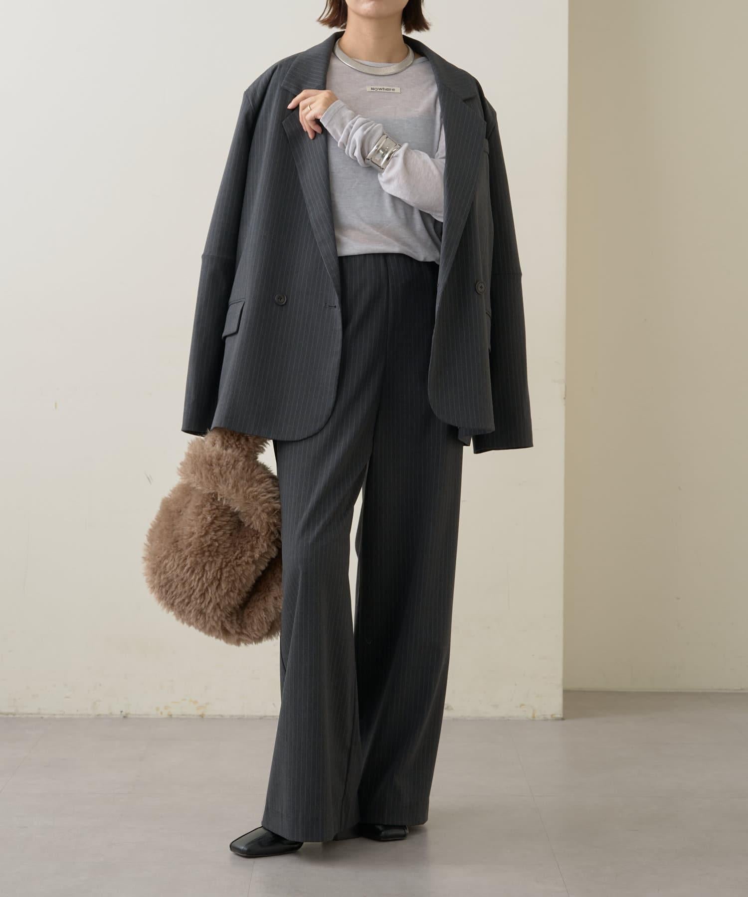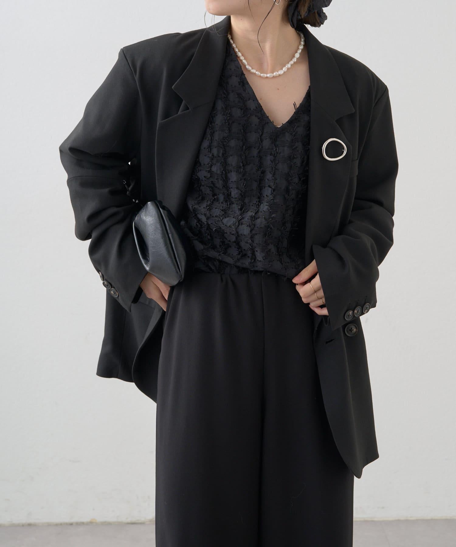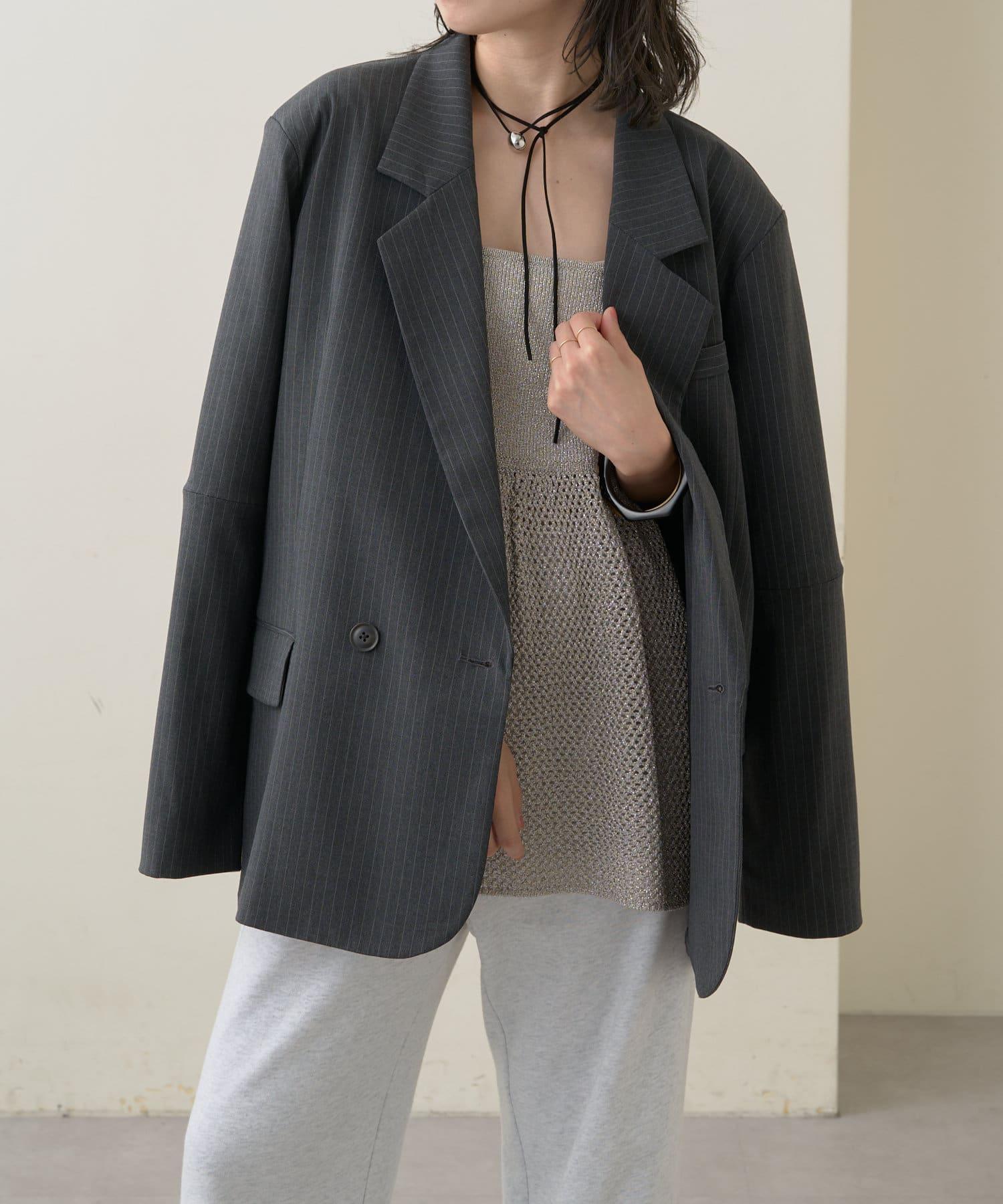 超大的剪裁加上墊肩,使其看起來更有男人味。