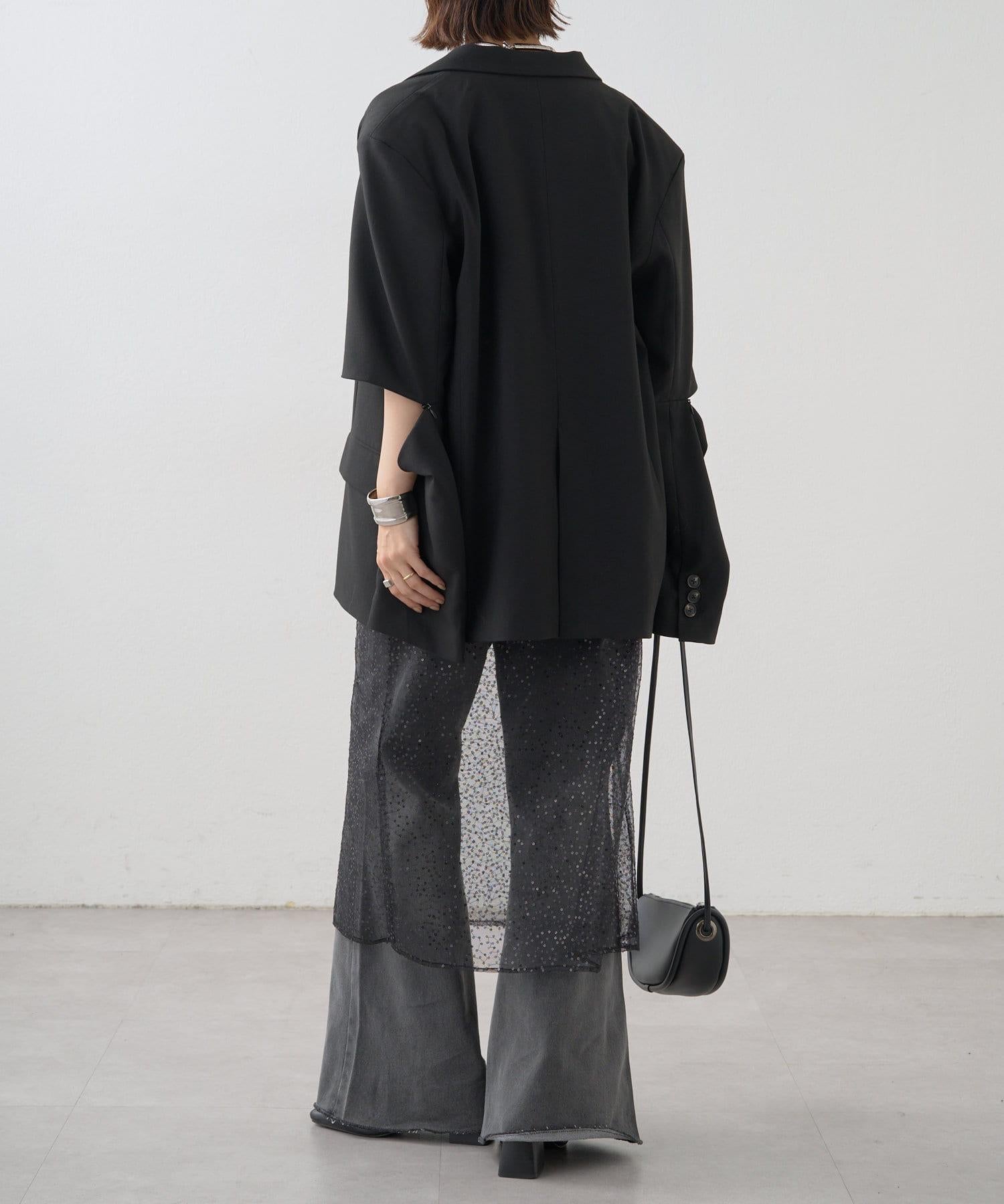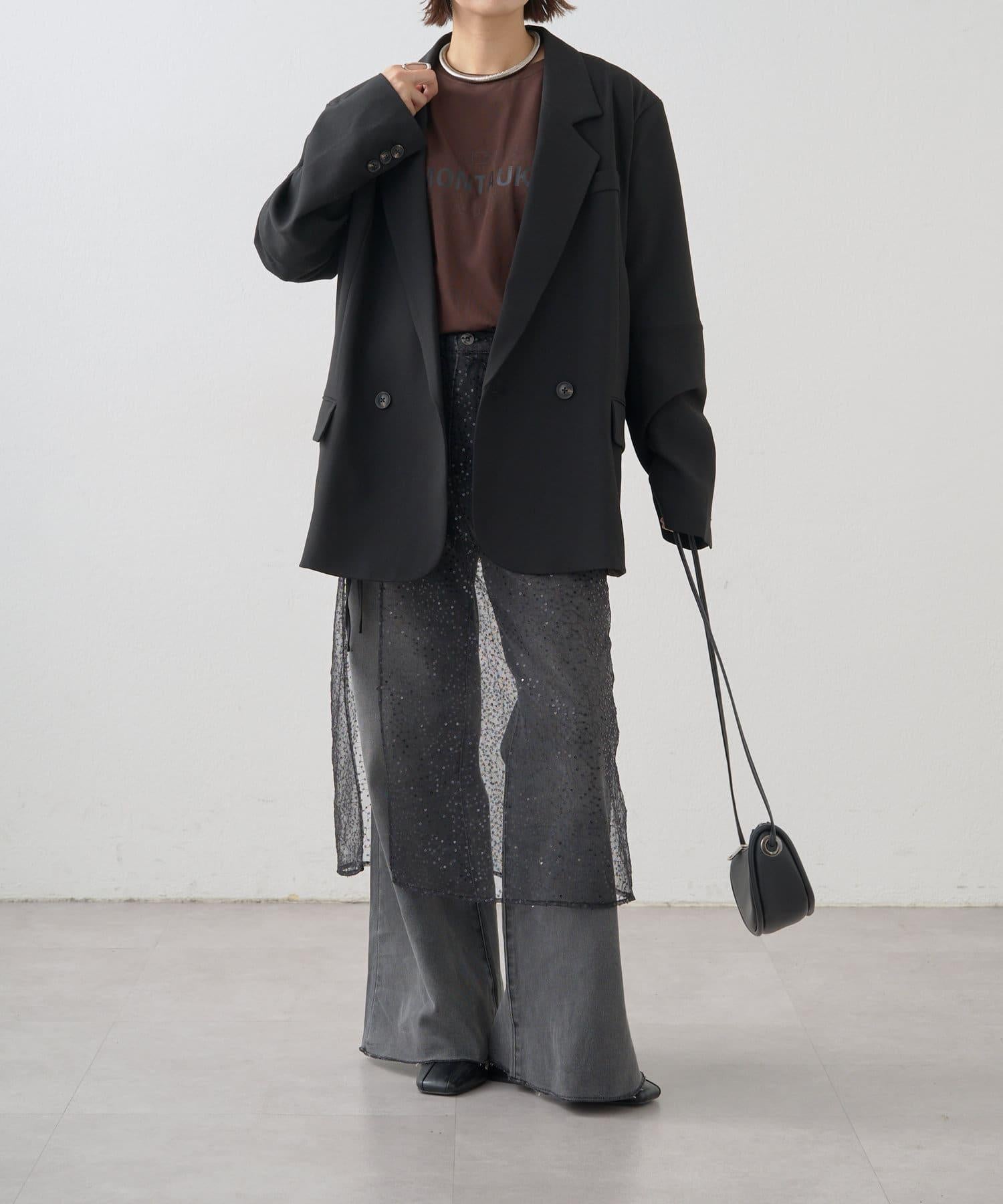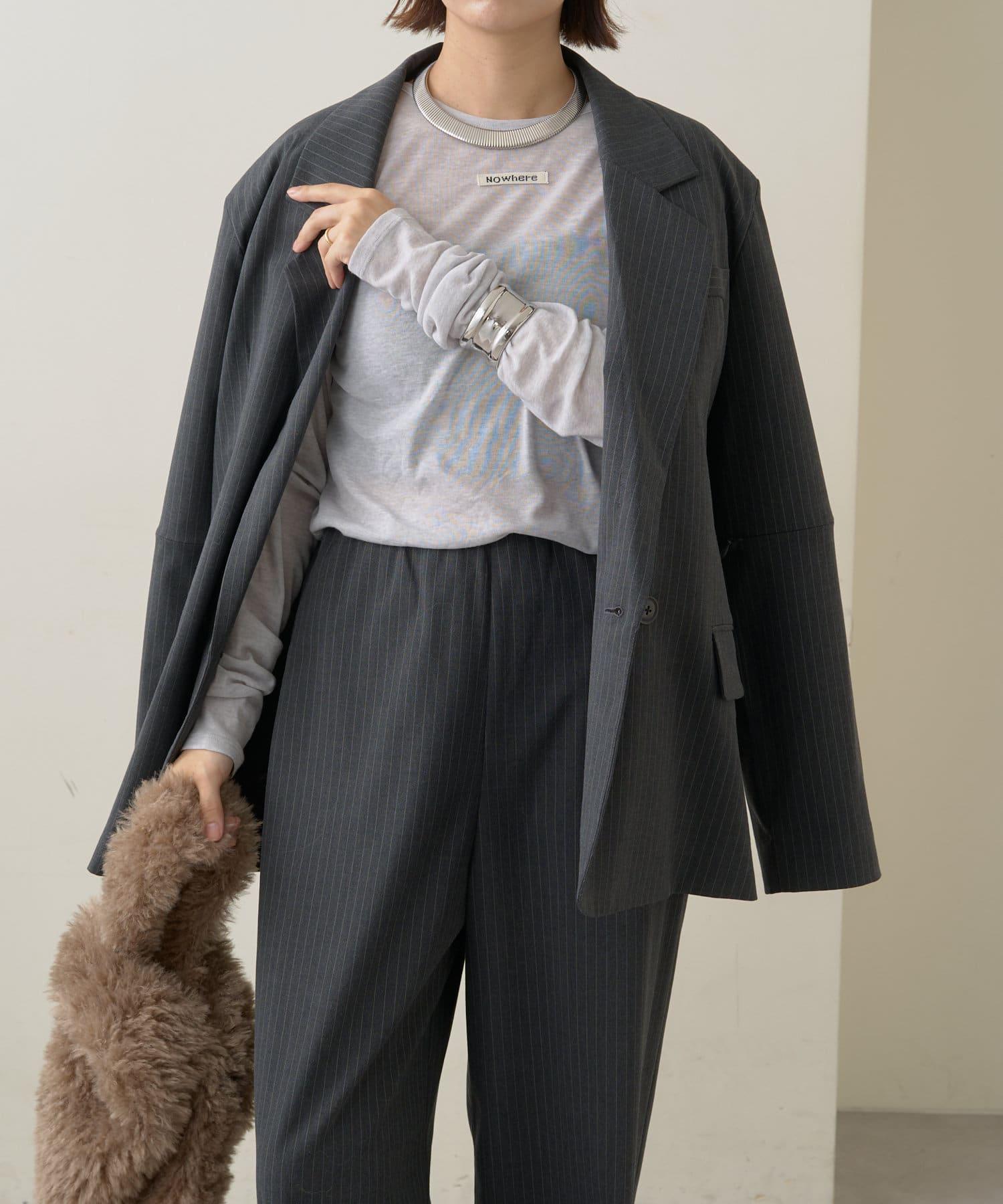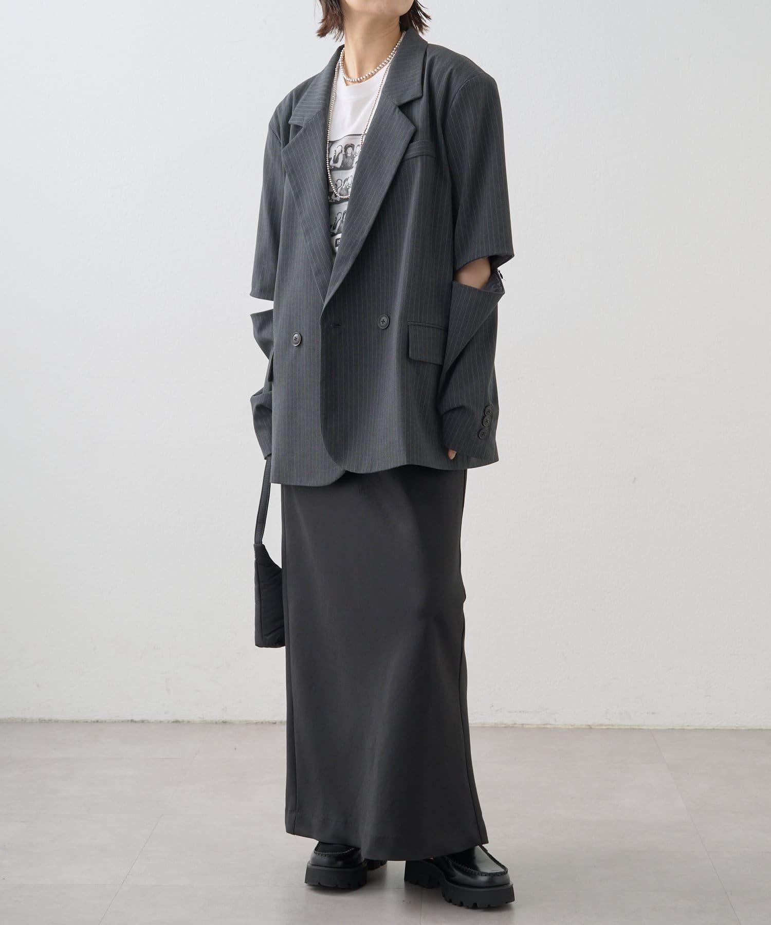 超大的剪裁加上墊肩,使其看起來更有男人味。