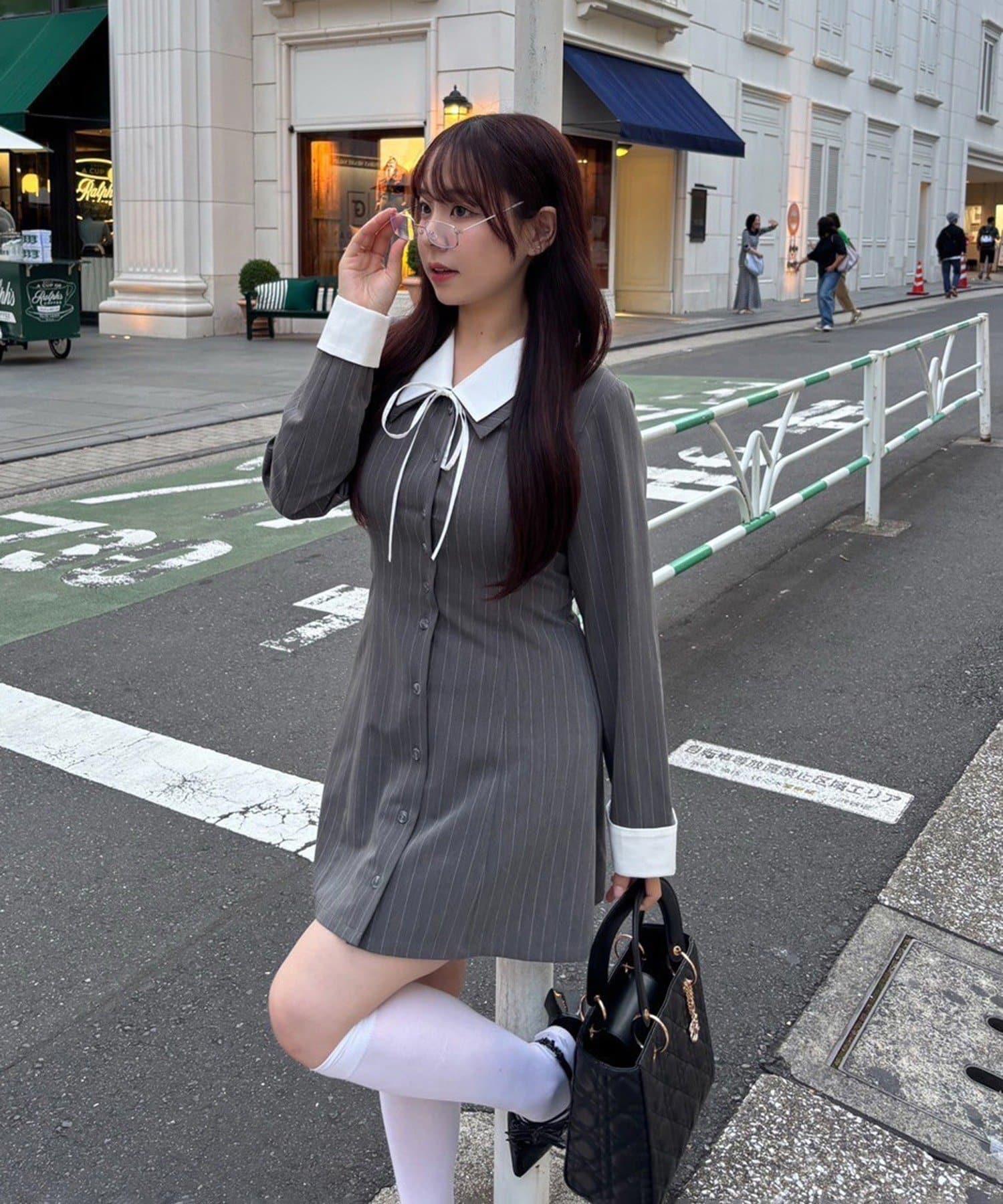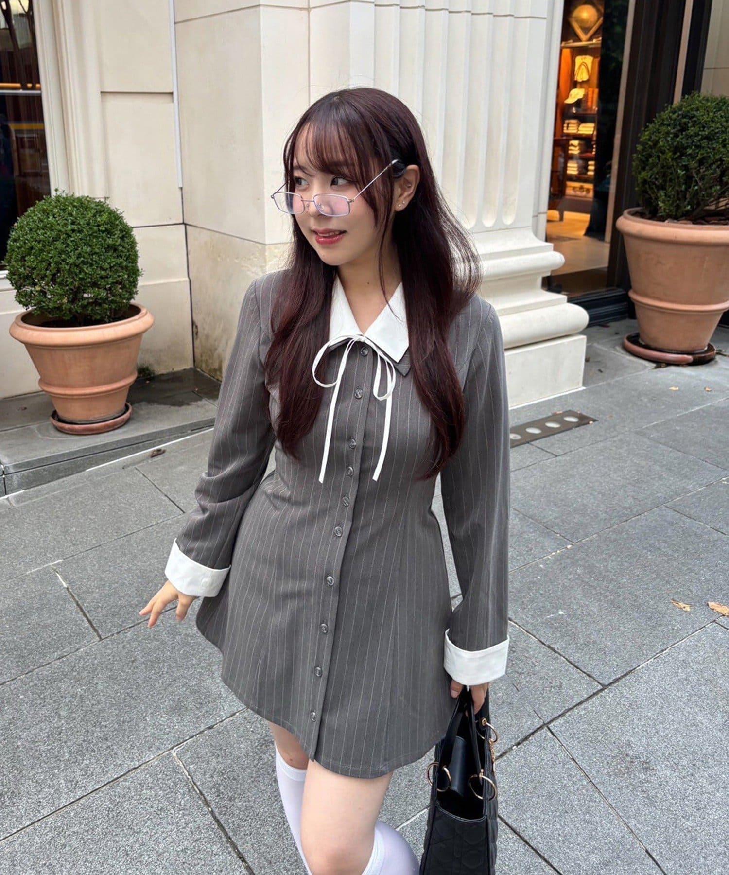 【omiyu企畫】背部繫帶襯衫連衣裙