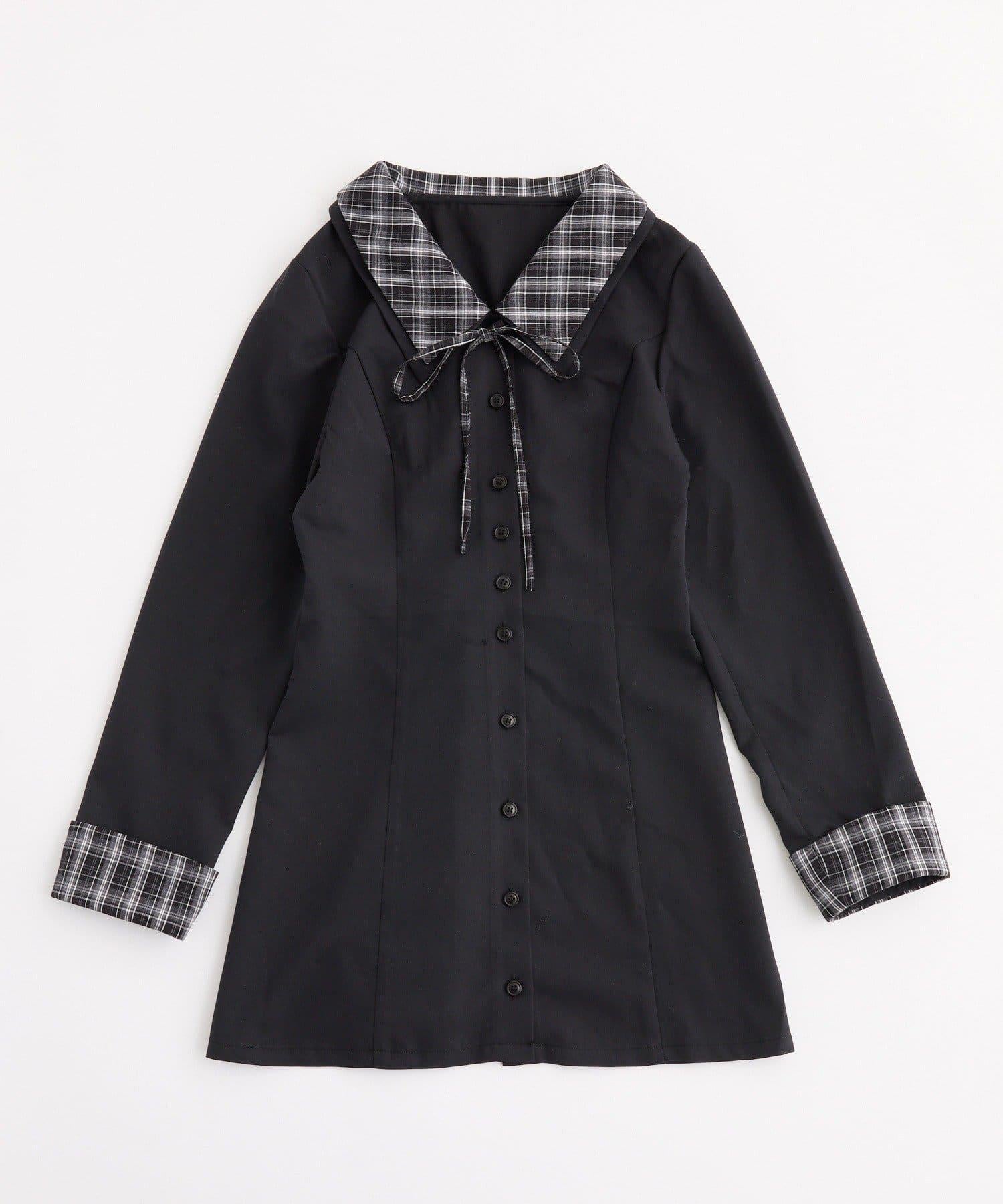 領子、袖子和絲帶的顏色協調統一,單件設計美觀大方。