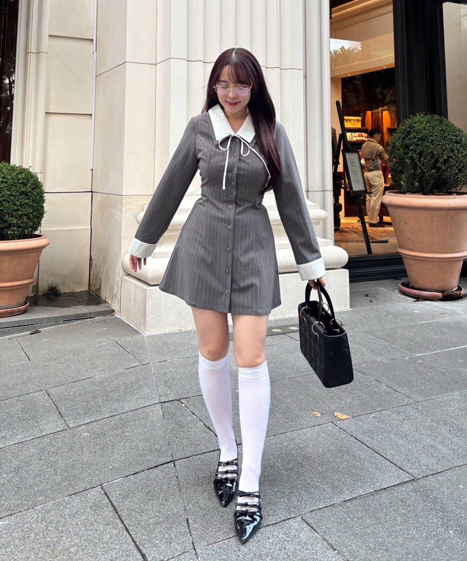 領子、袖子和絲帶的顏色協調統一,單件設計美觀大方。
