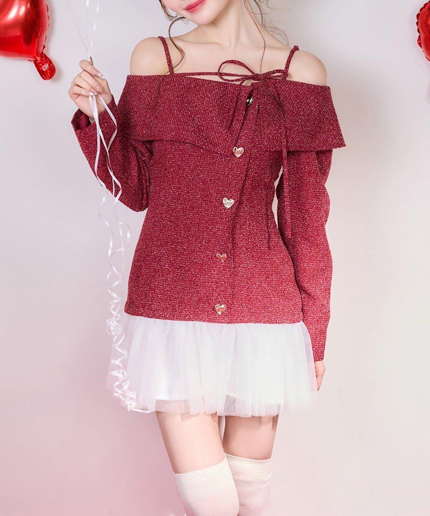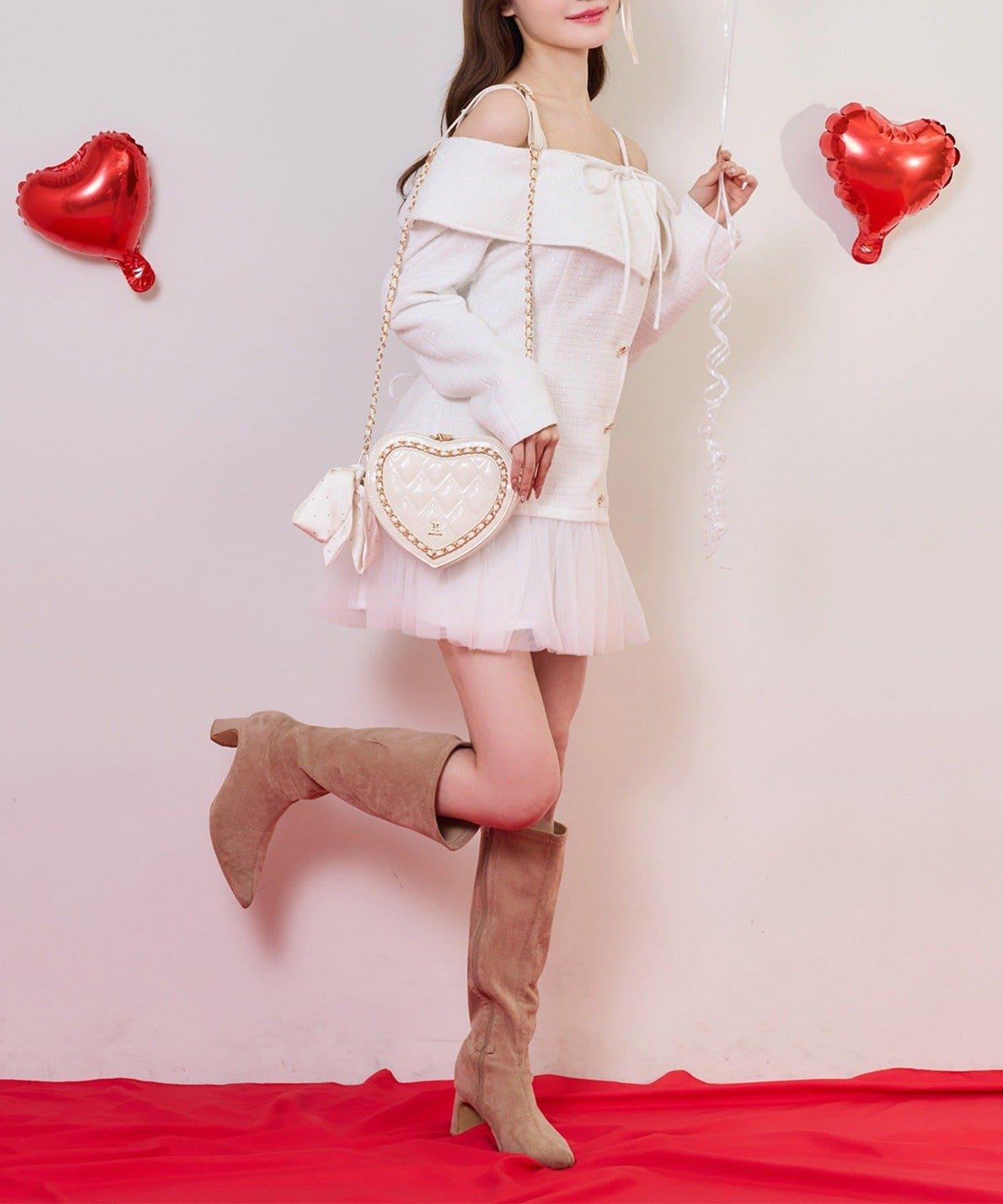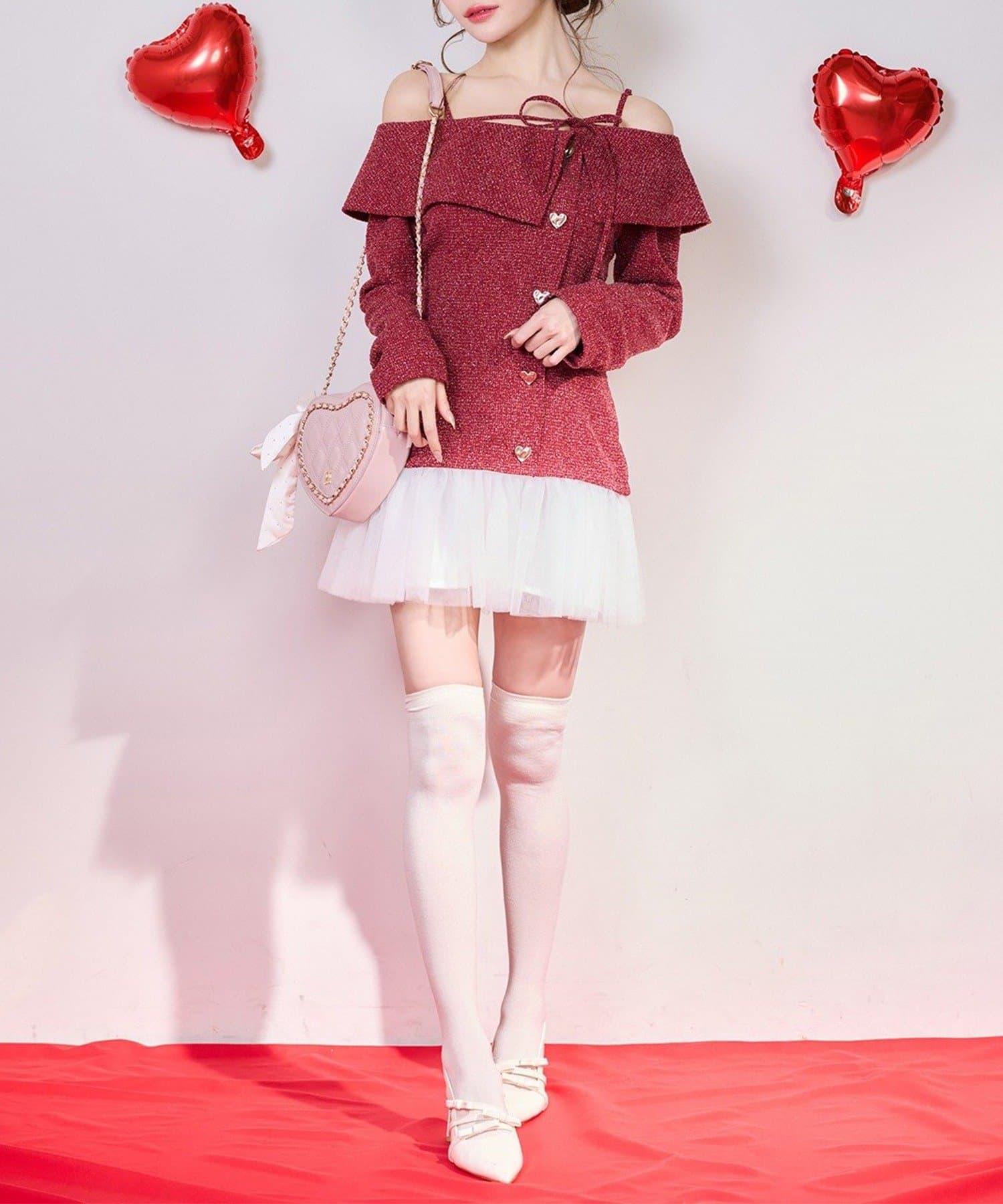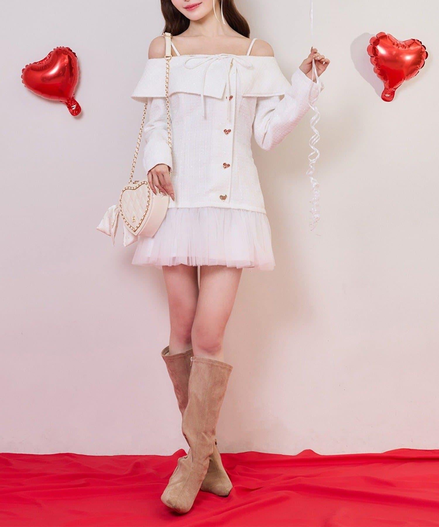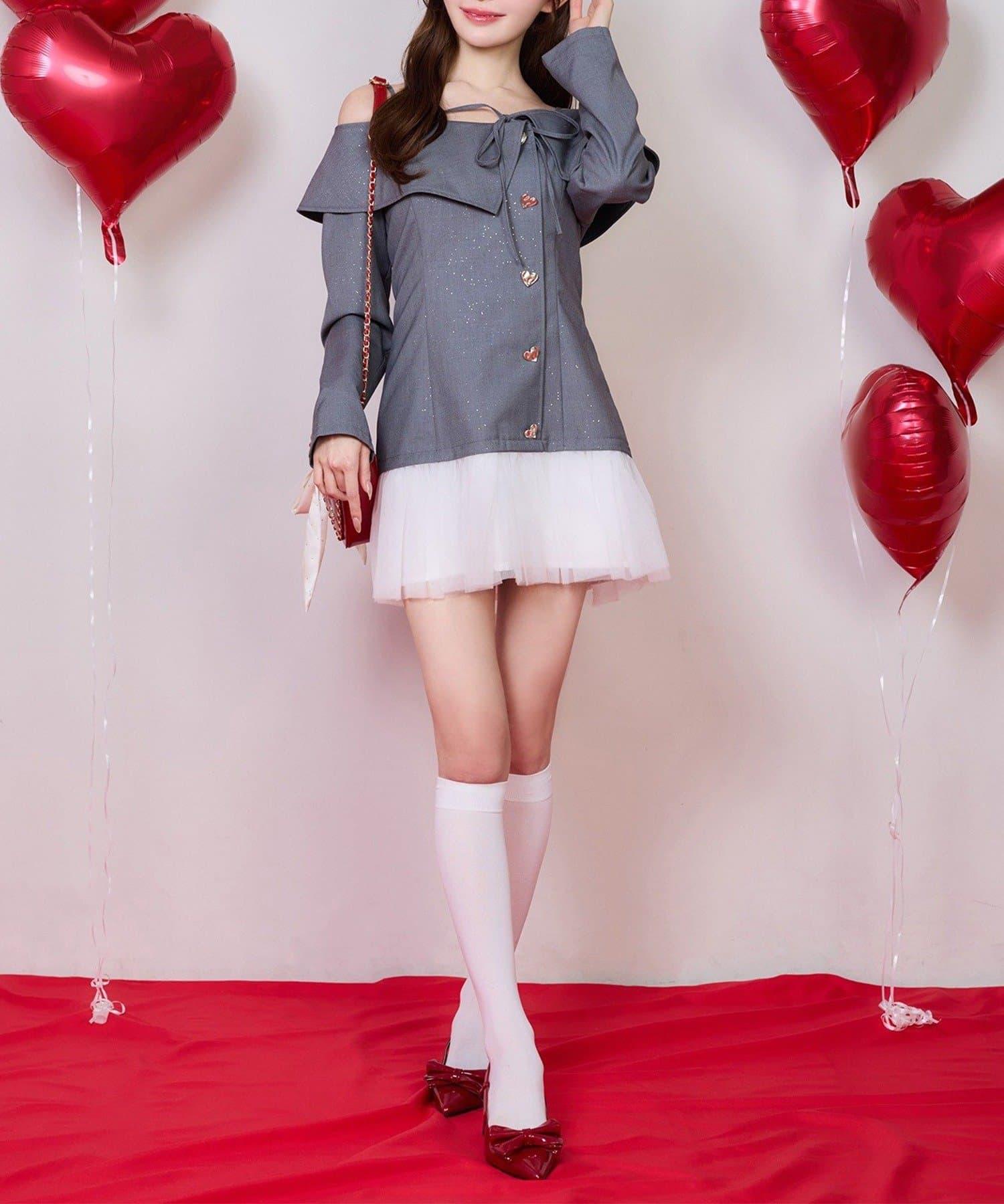 one after another 心形紐扣拼接 迷你連衣裙