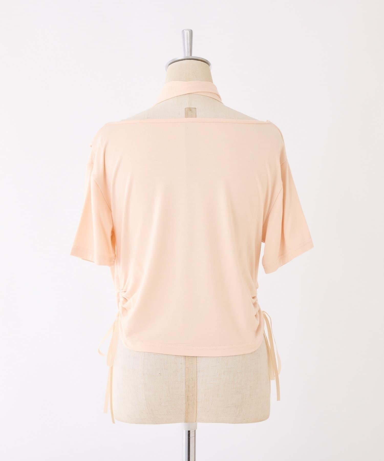 採用時尚側抽繩設計的 T 恤。