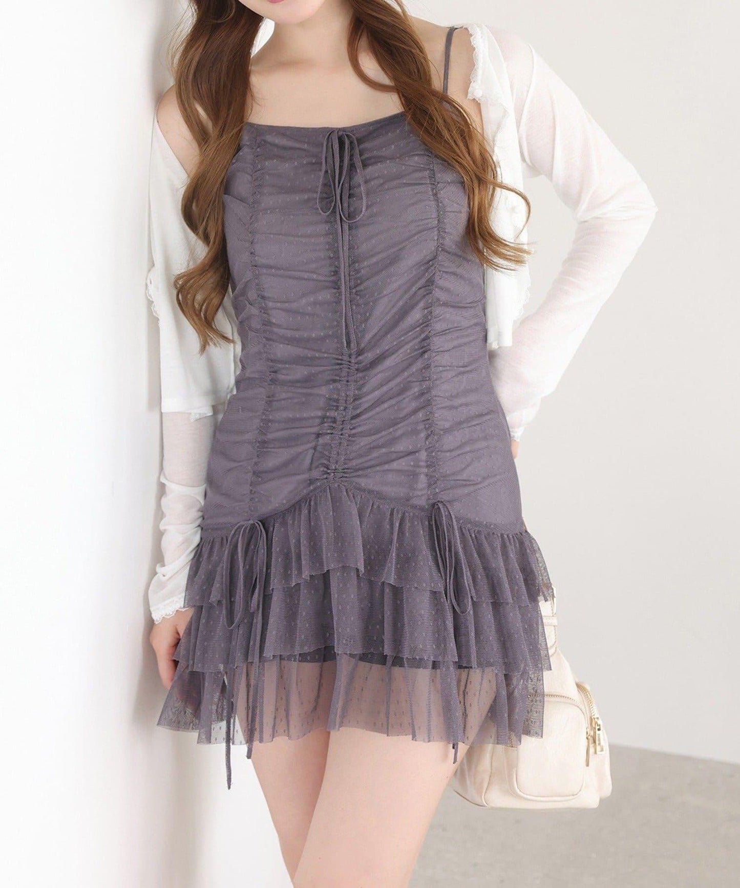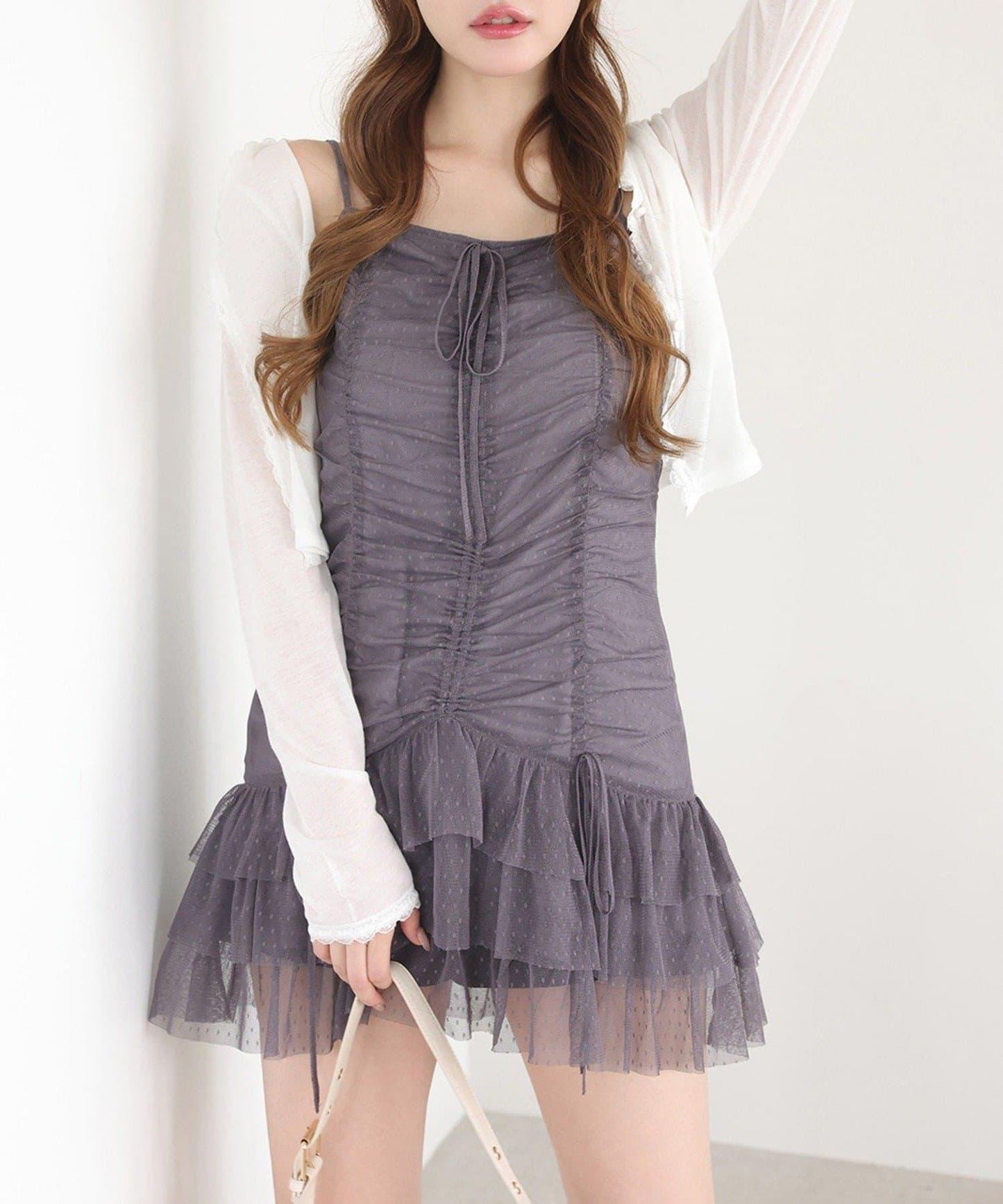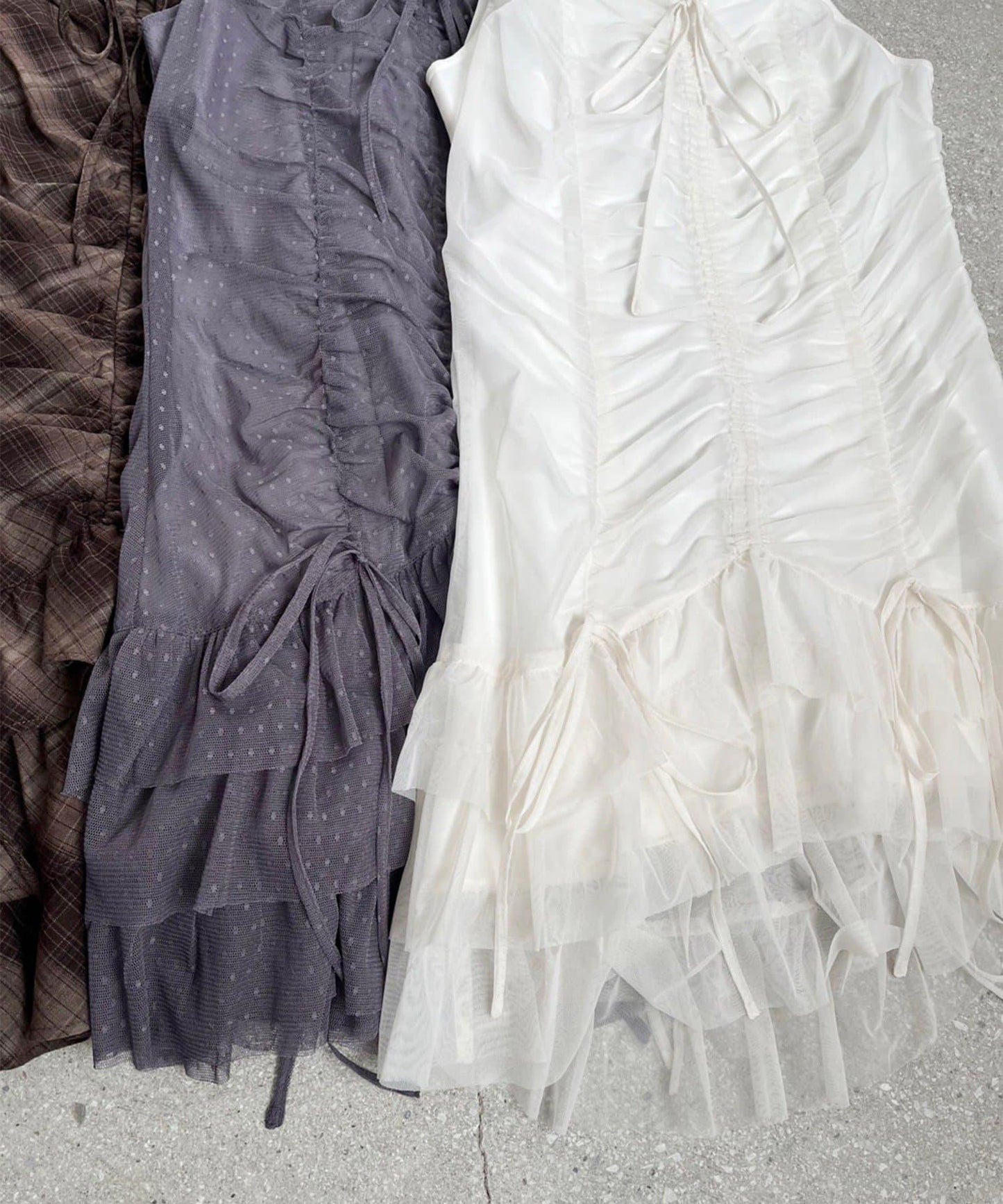 褶襉豐富的長衫連衣裙。