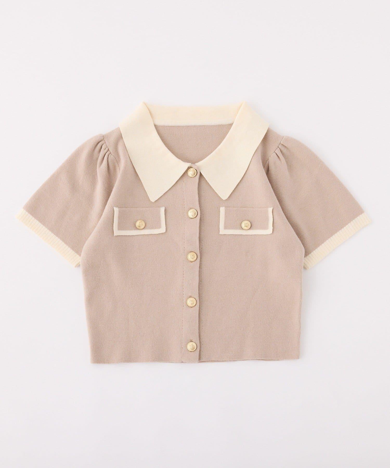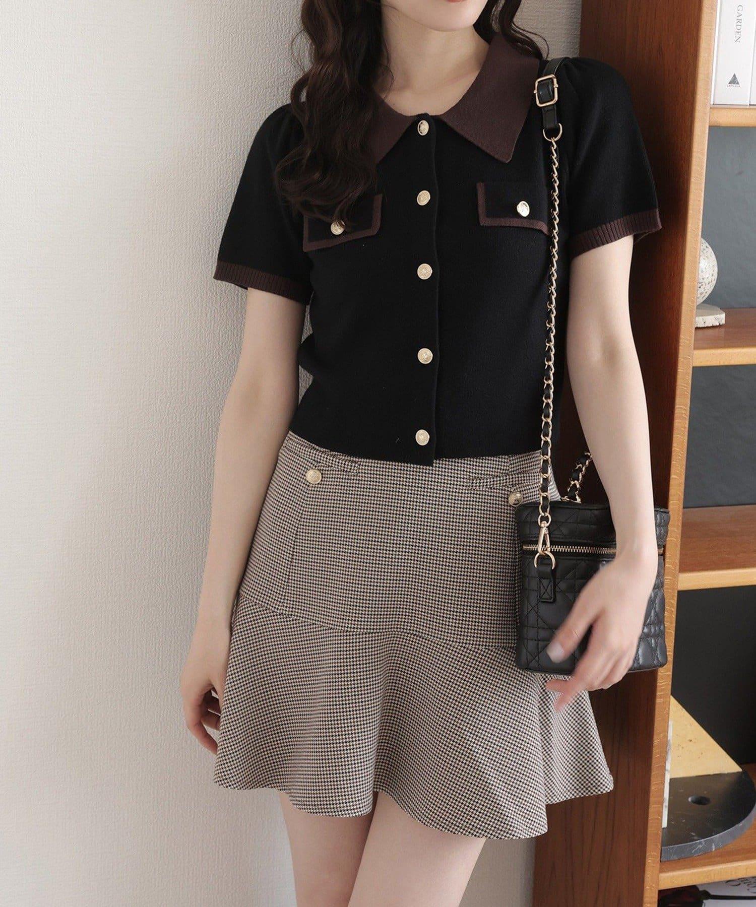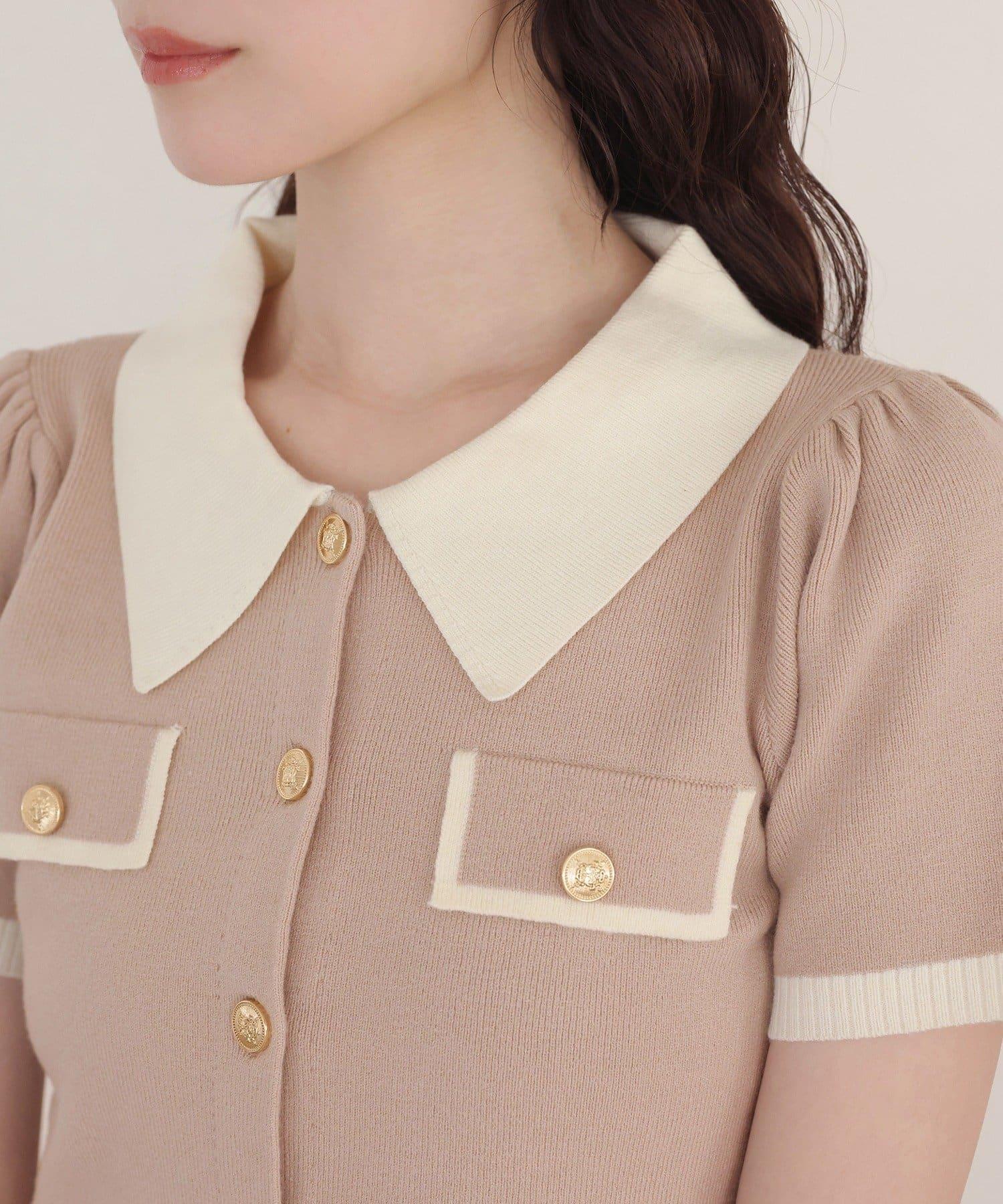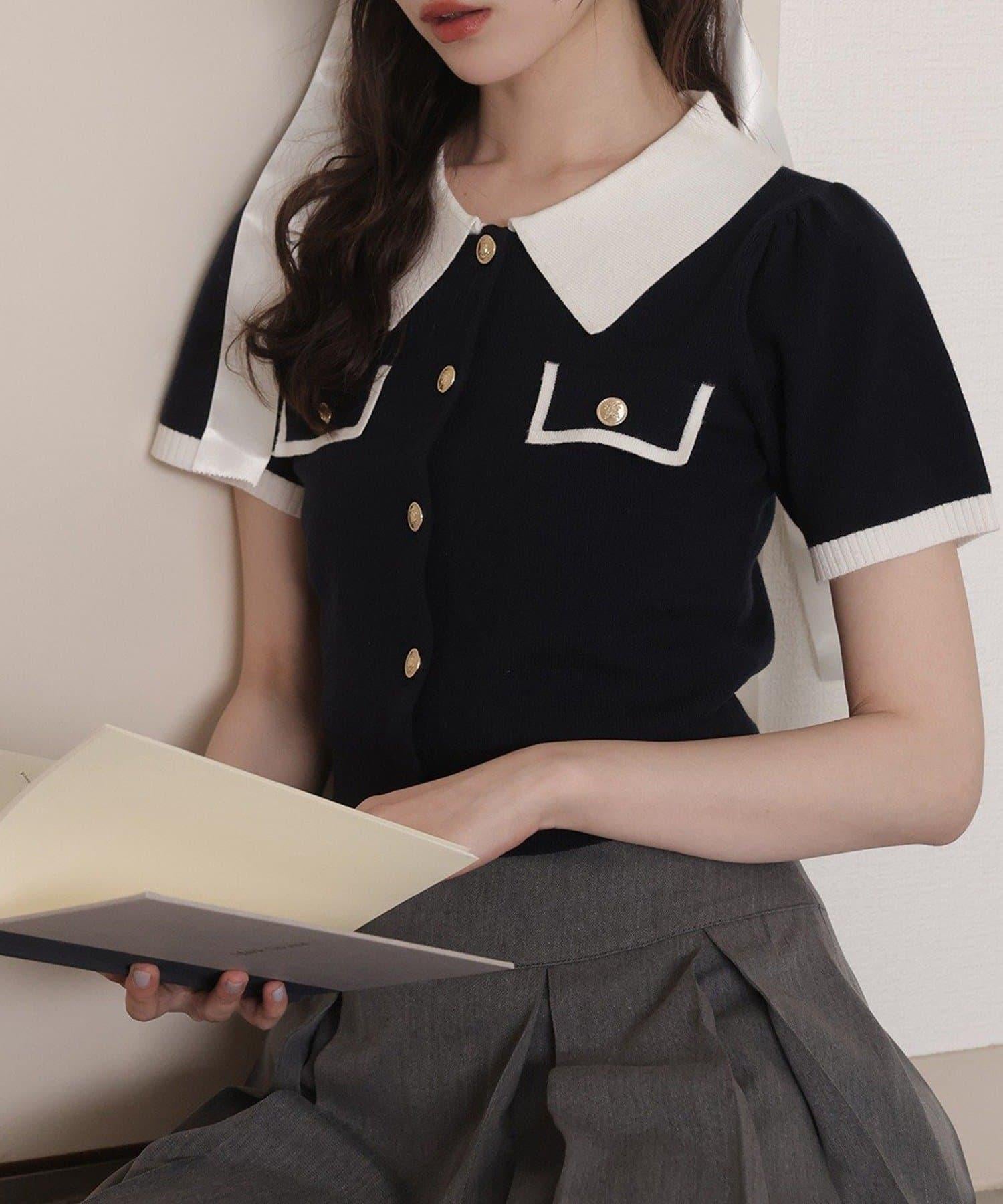 短袖針織上衣,領口設計,配色搶眼,彰顯經典氣質。
