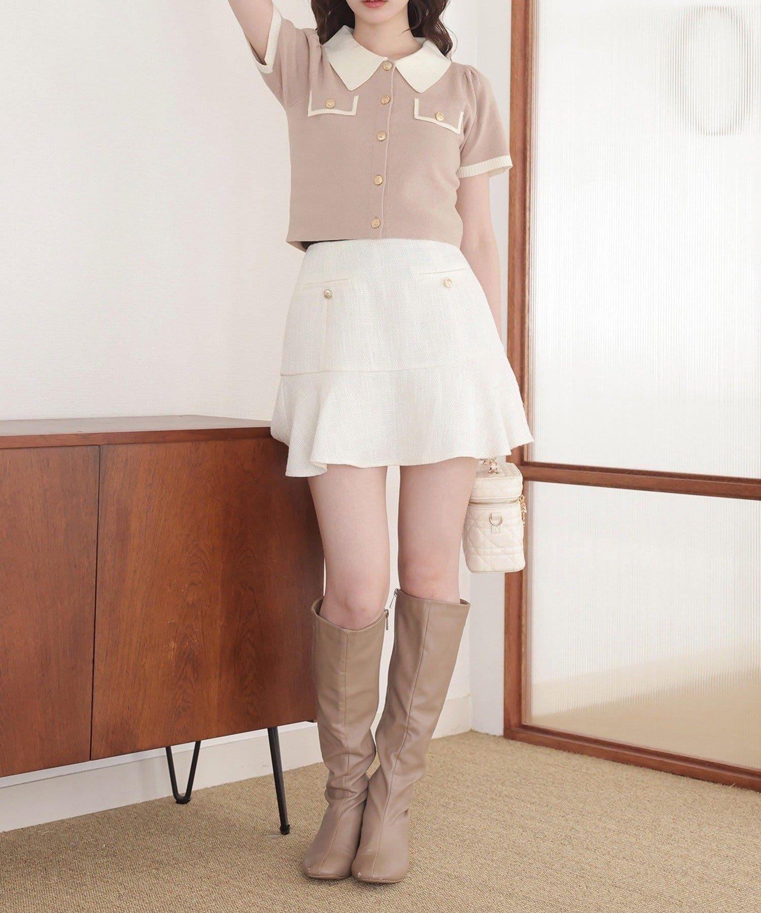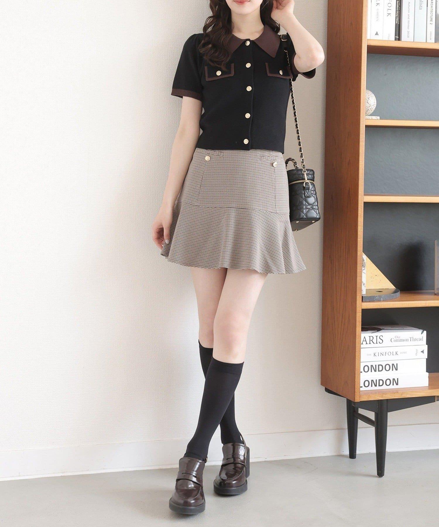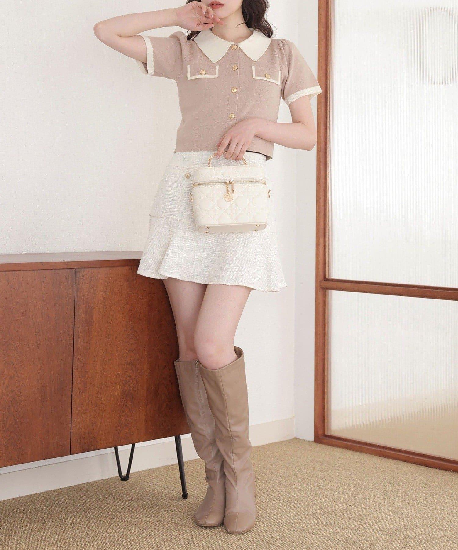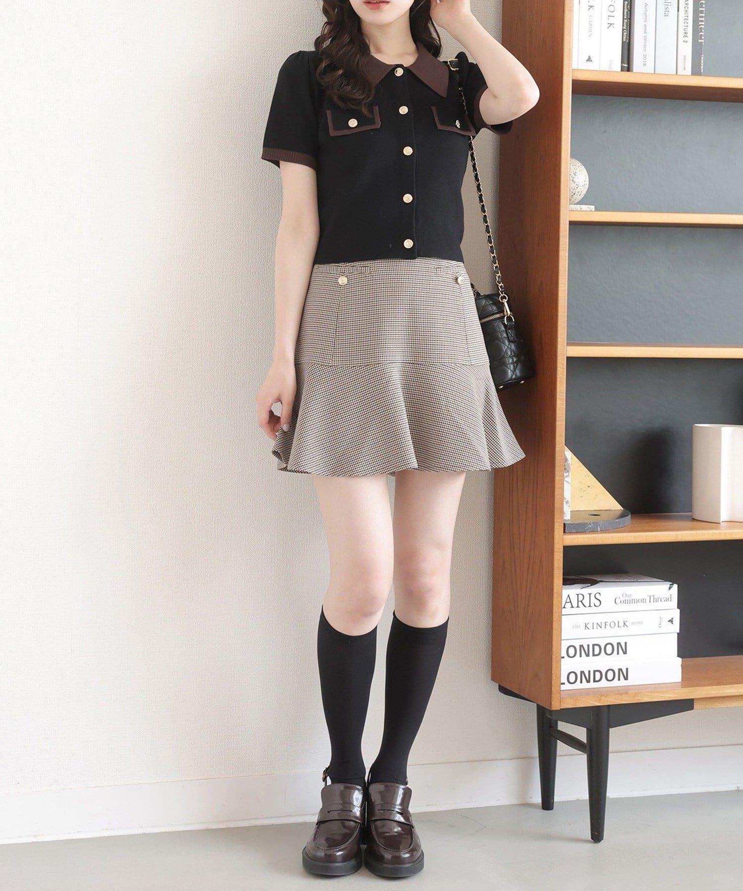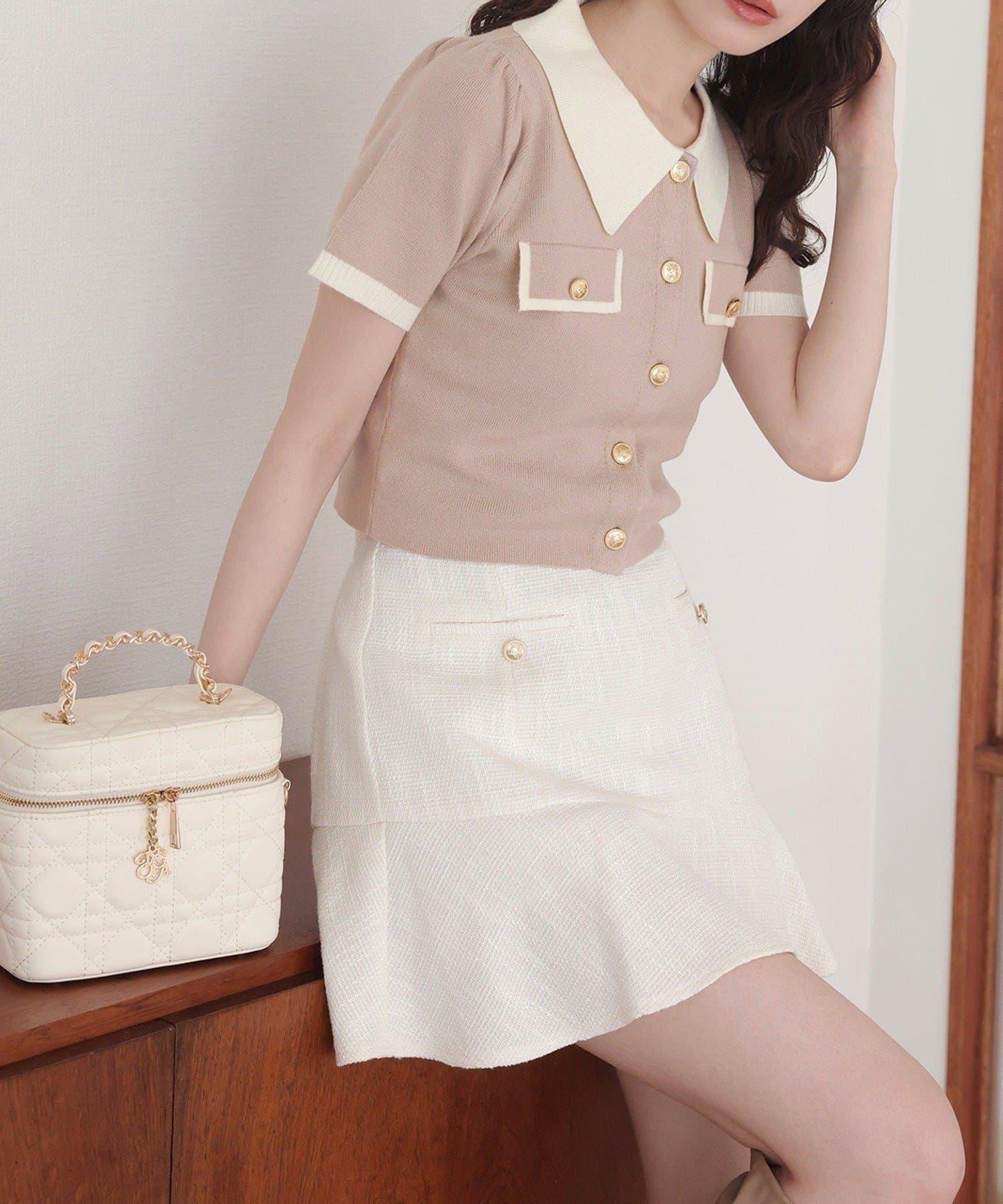 短袖針織上衣,領口設計,配色搶眼,彰顯經典氣質。
