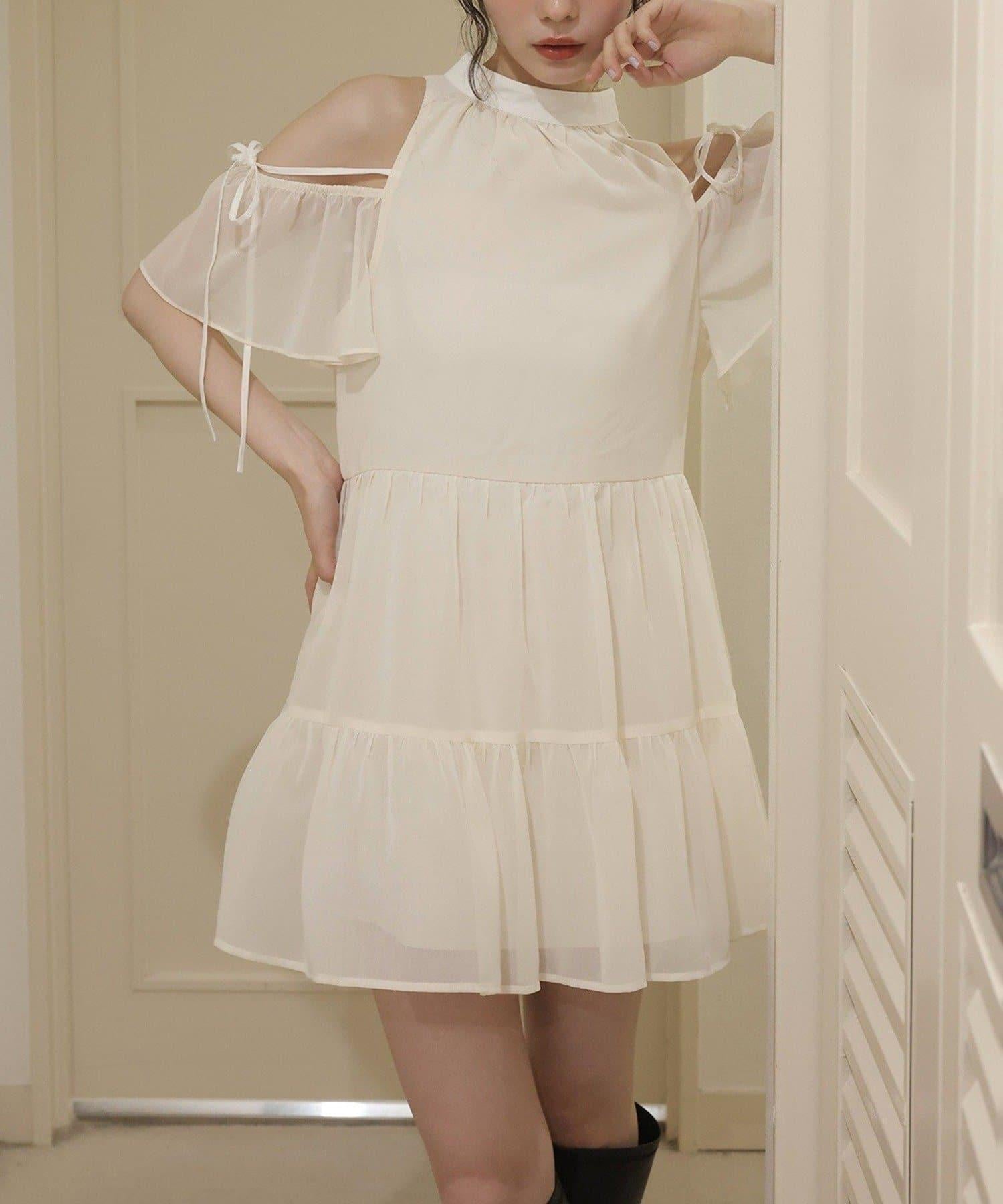 肩部的荷葉邊設計更顯女性柔美。