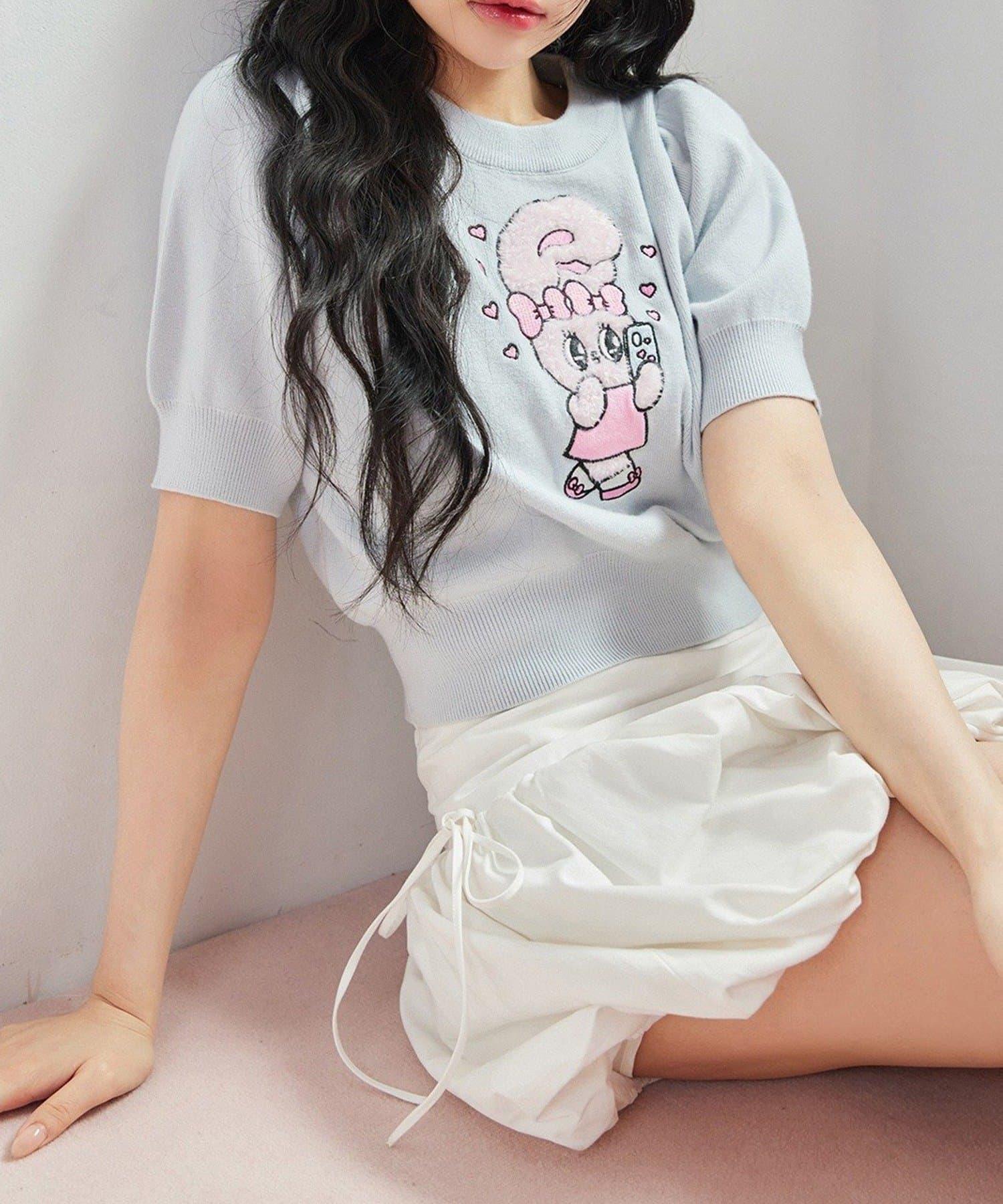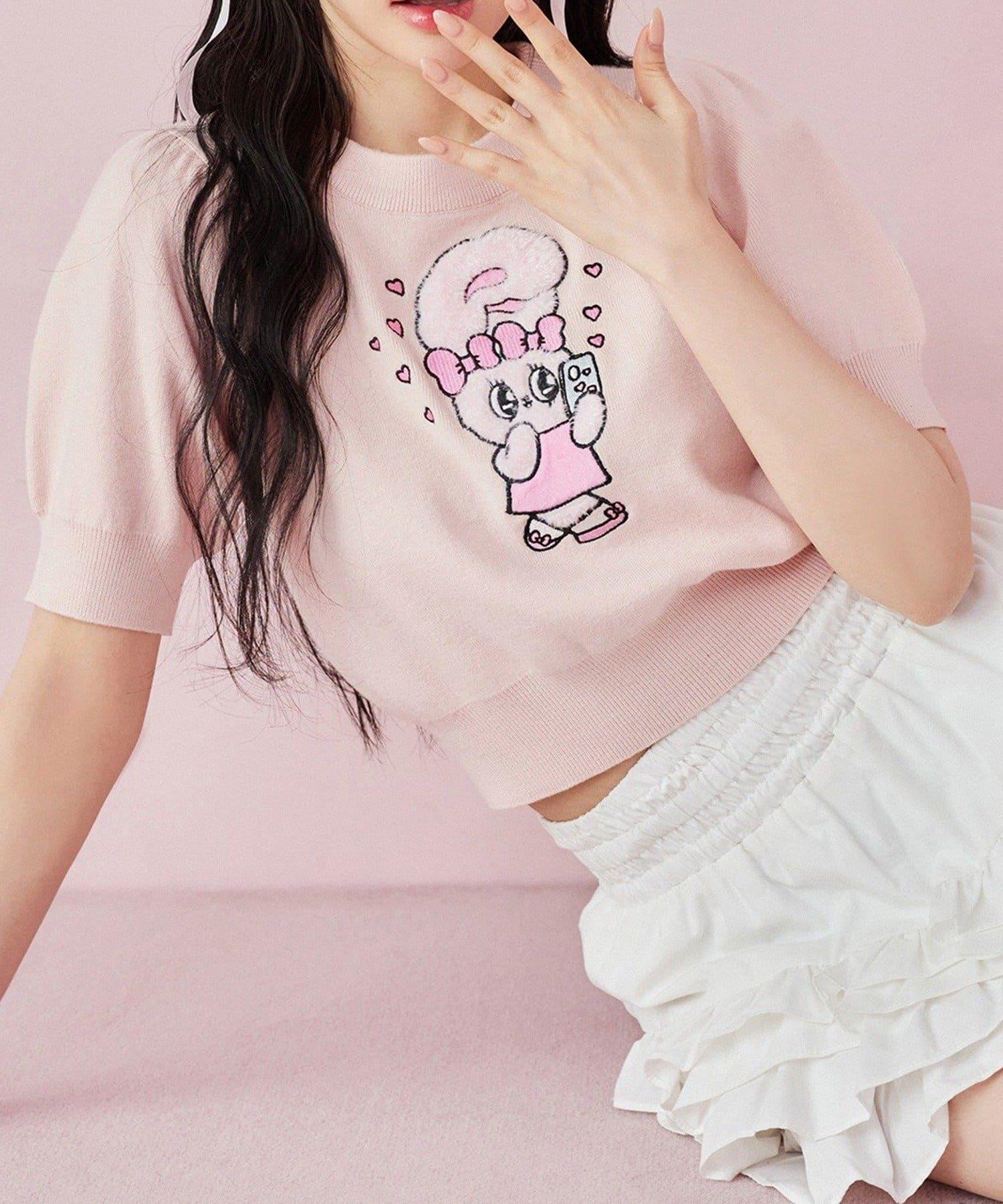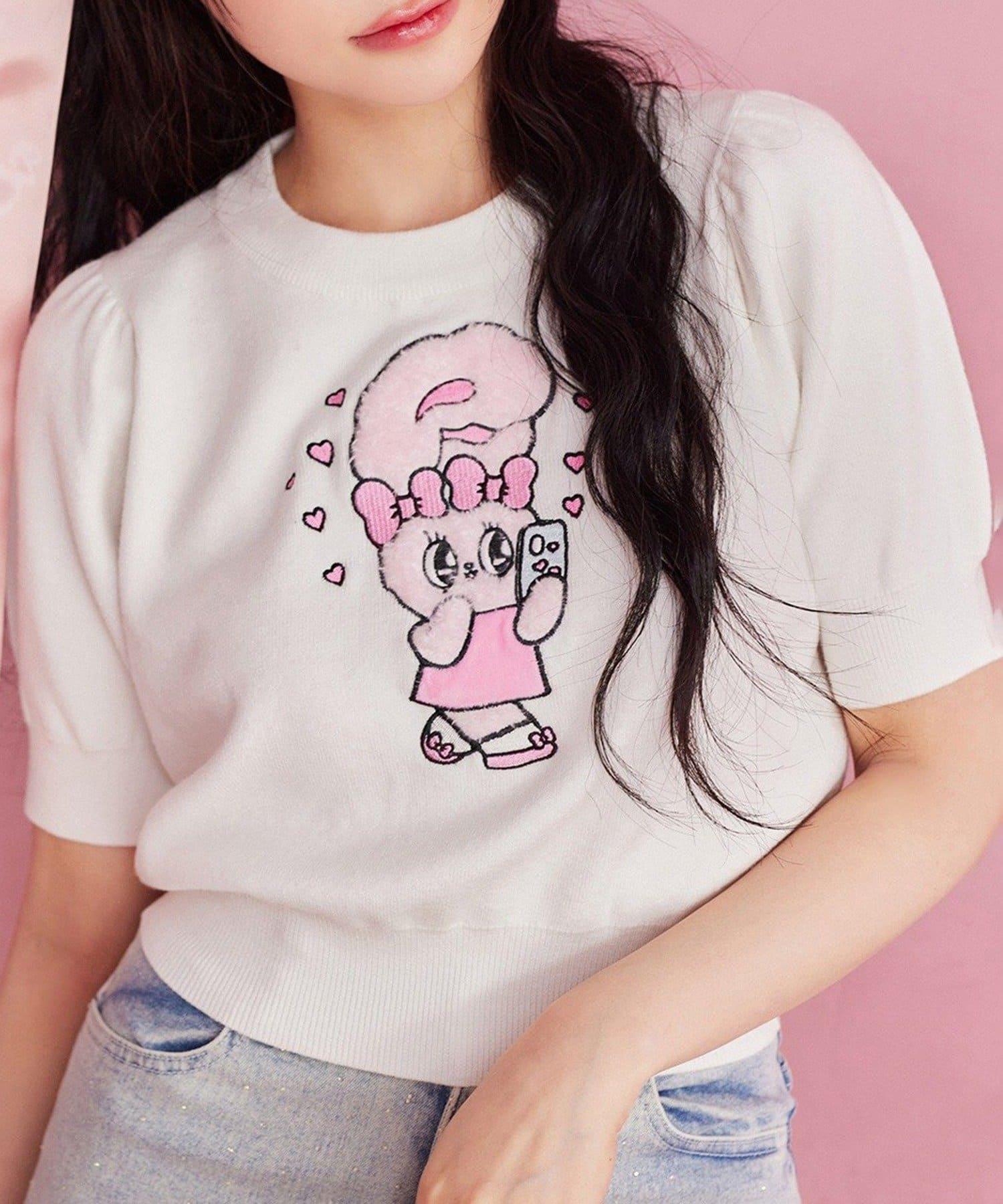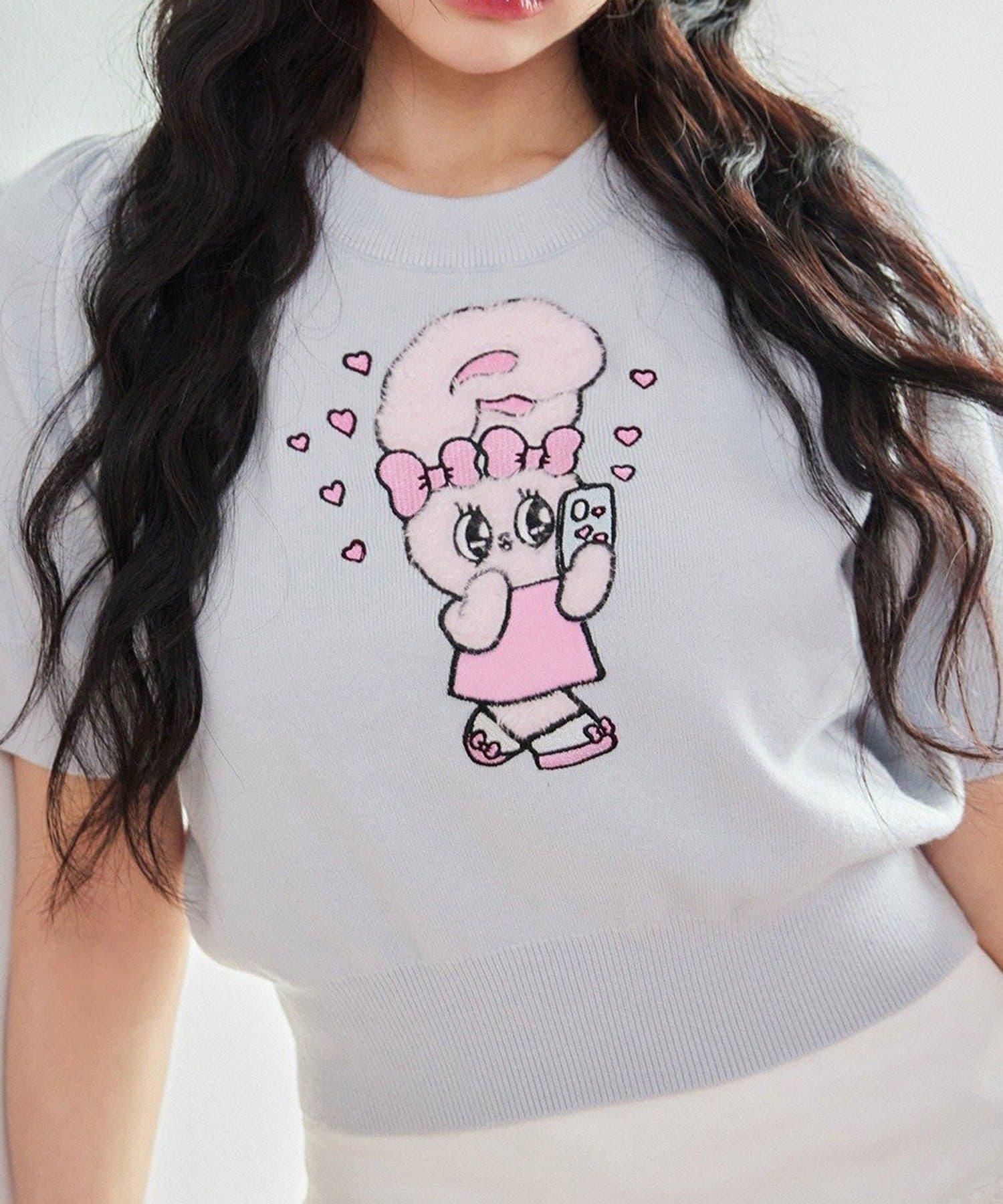短袖針織衫,以緞帶兔子貼花為設計點。
