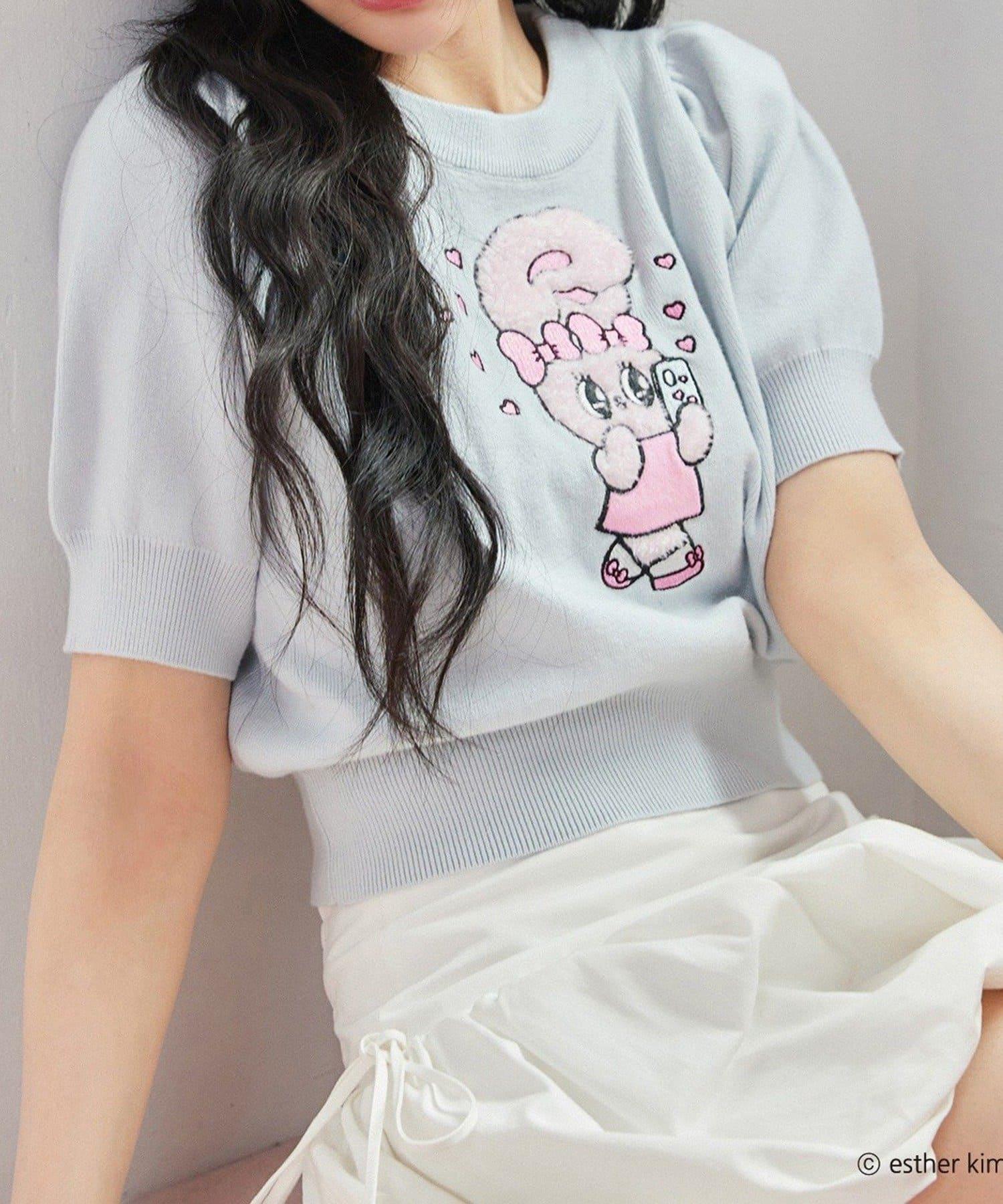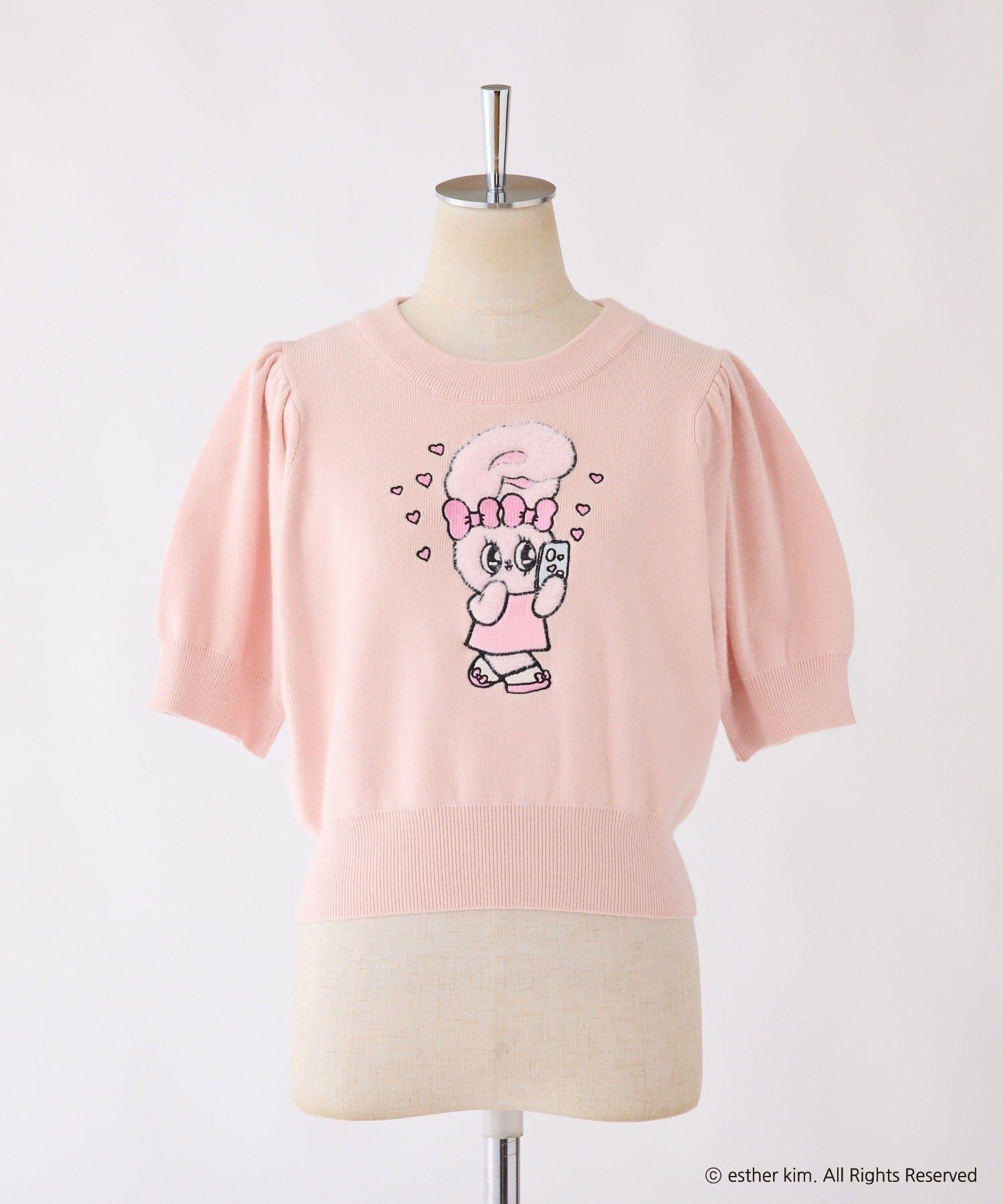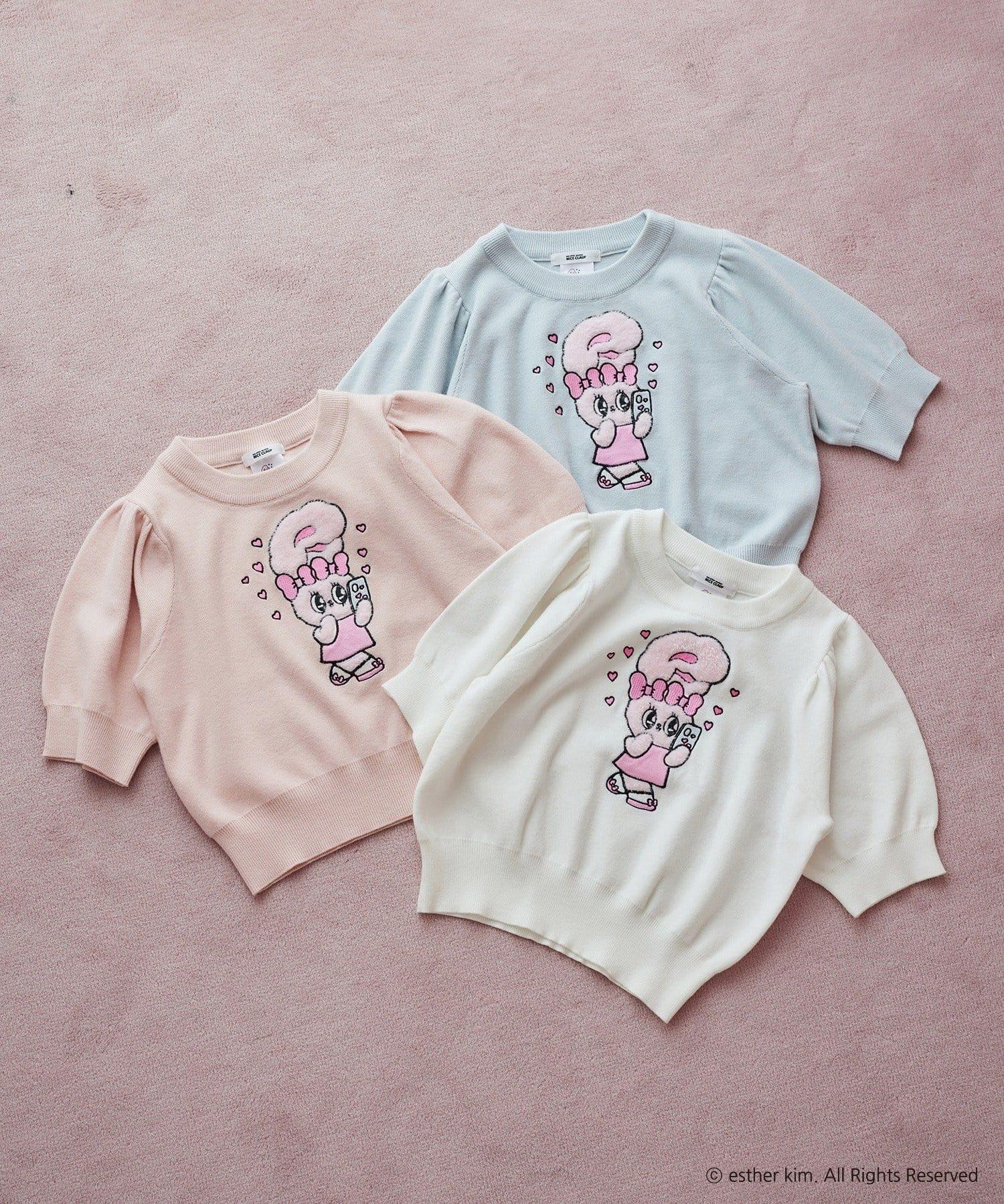 短袖針織衫,以緞帶兔子貼花為設計點。