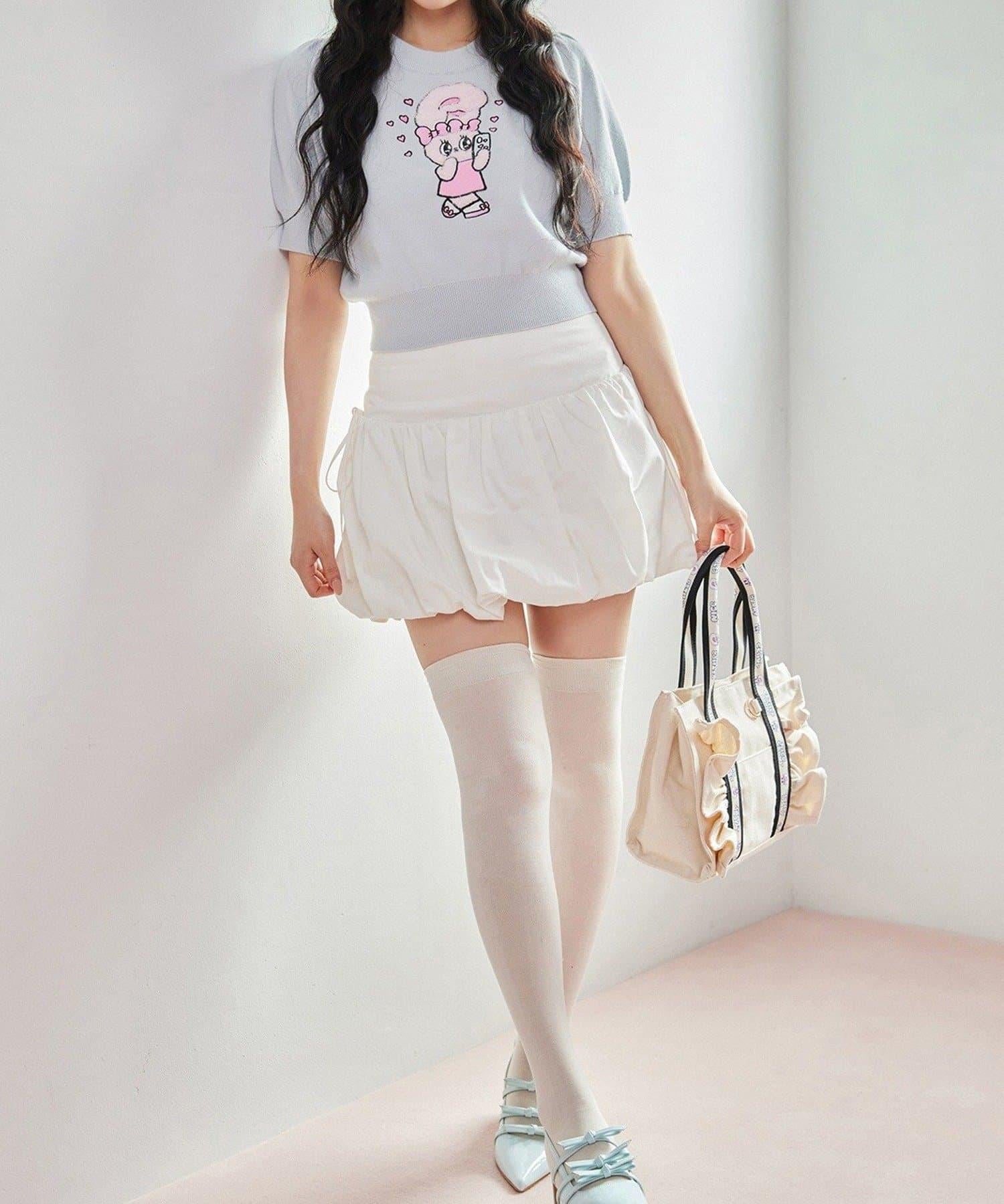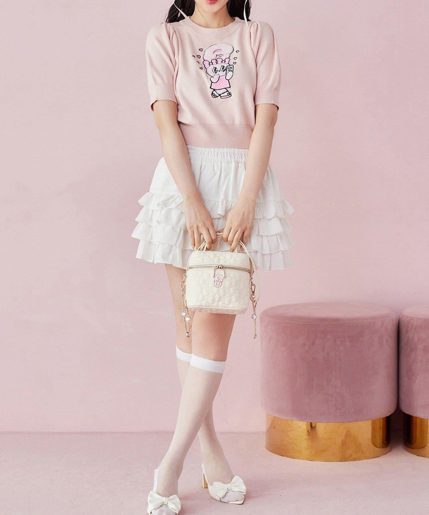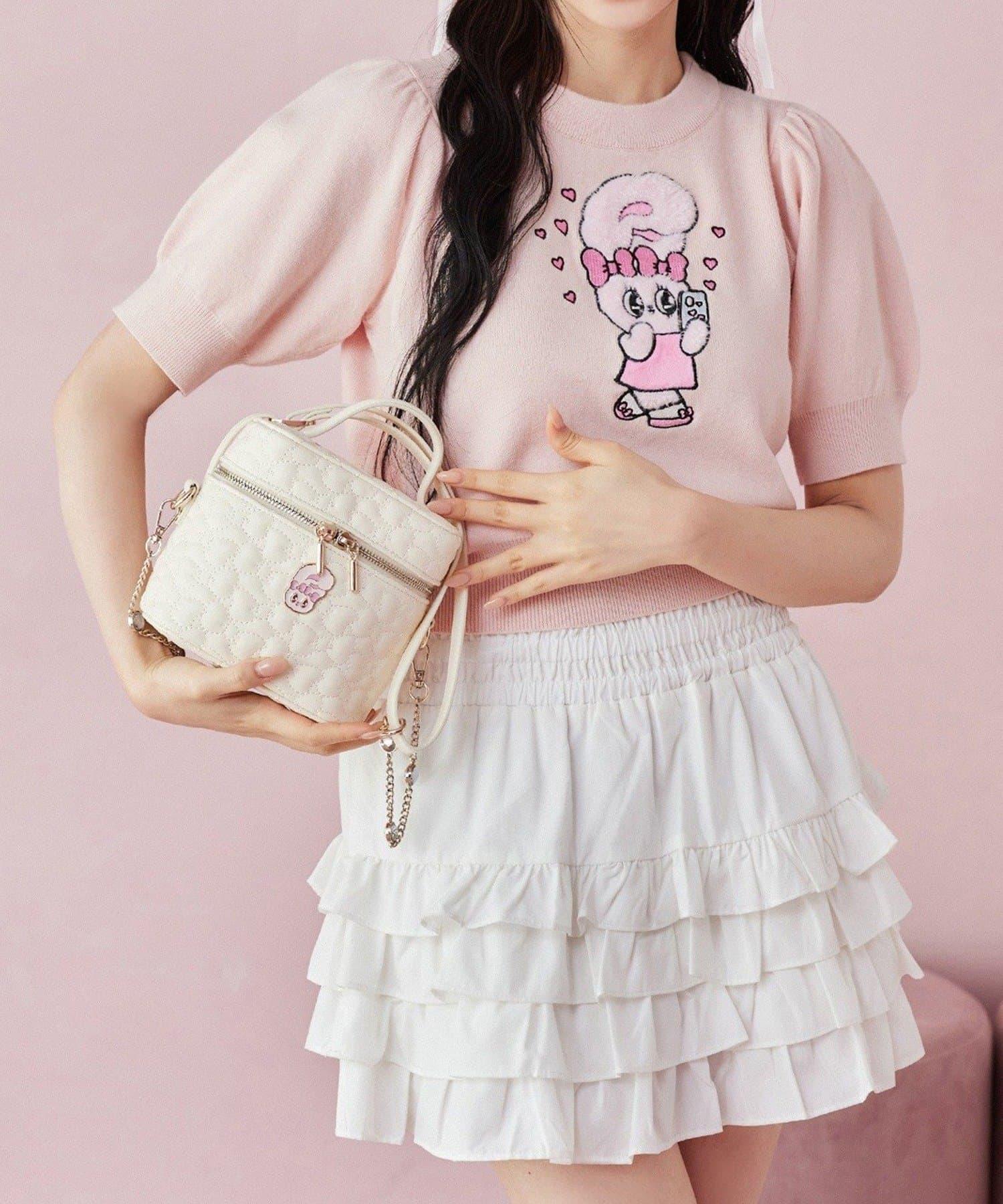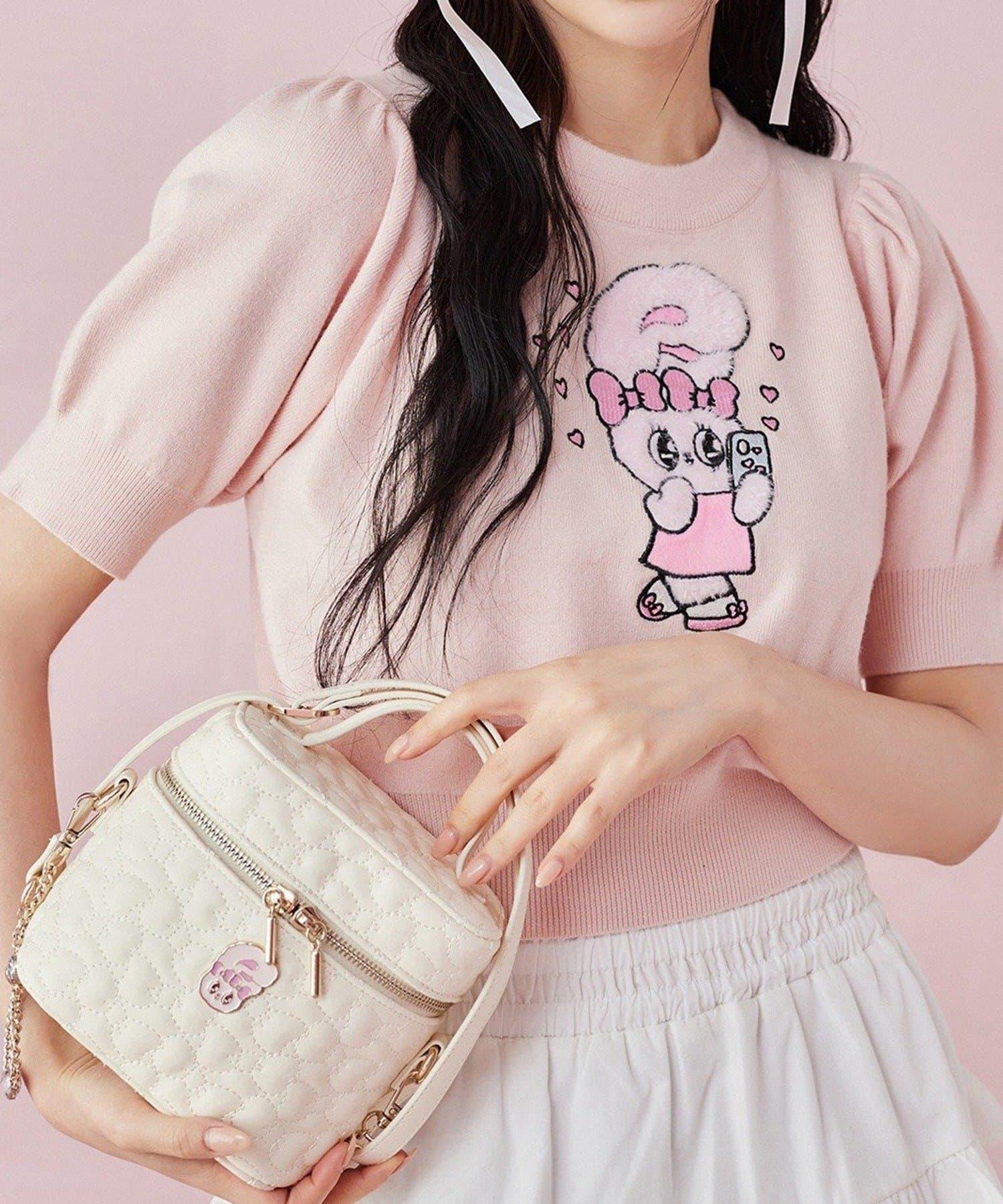 短袖針織衫,以緞帶兔子貼花為設計點。