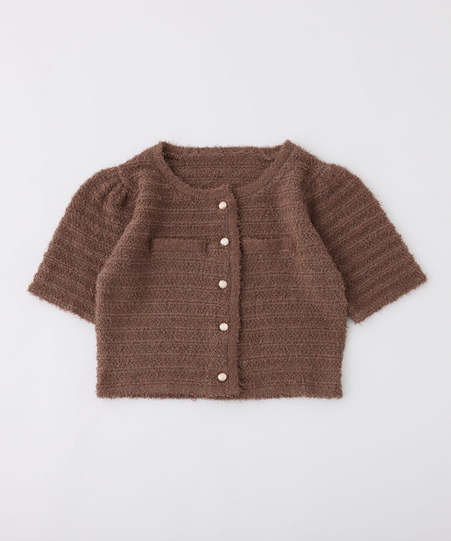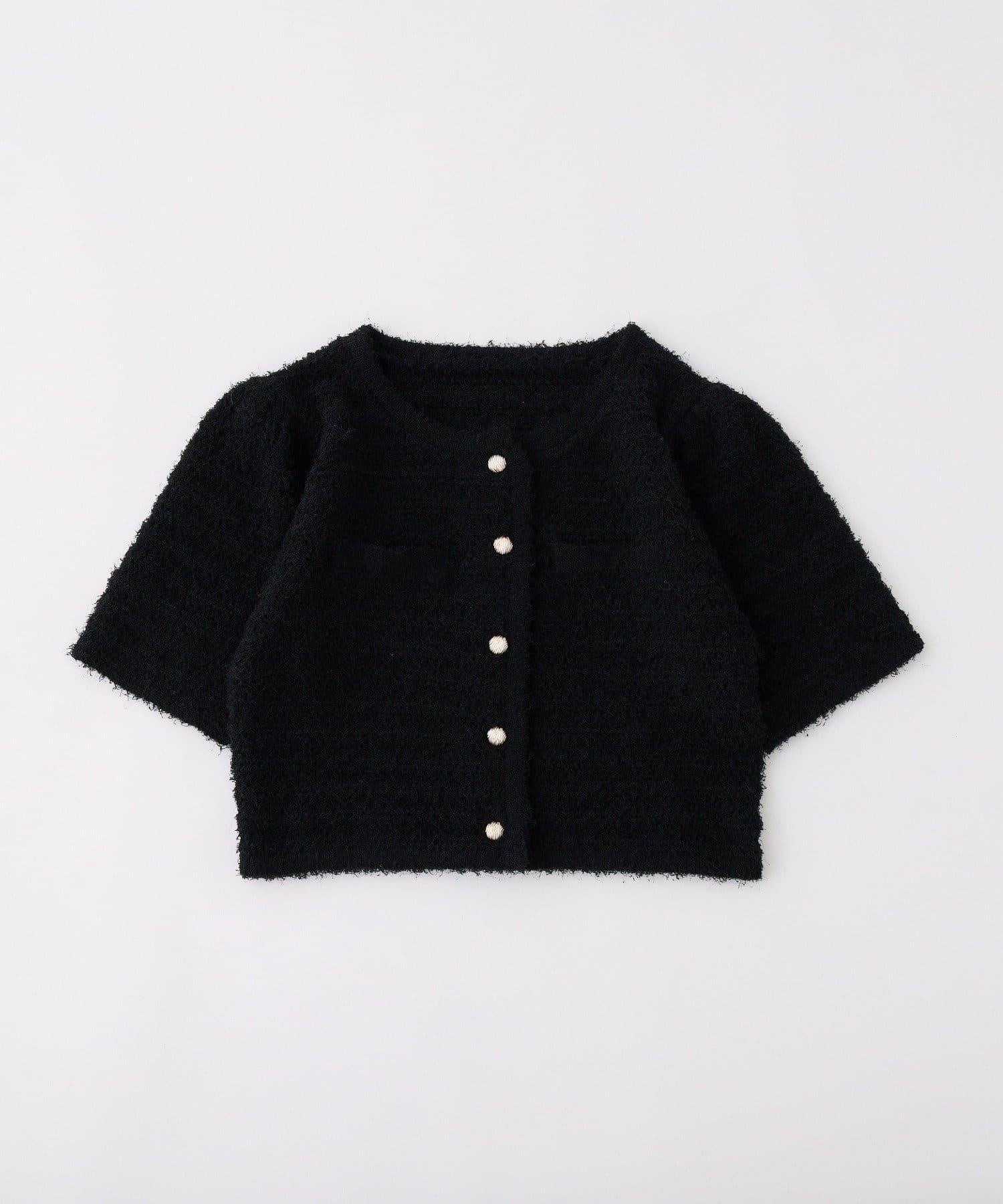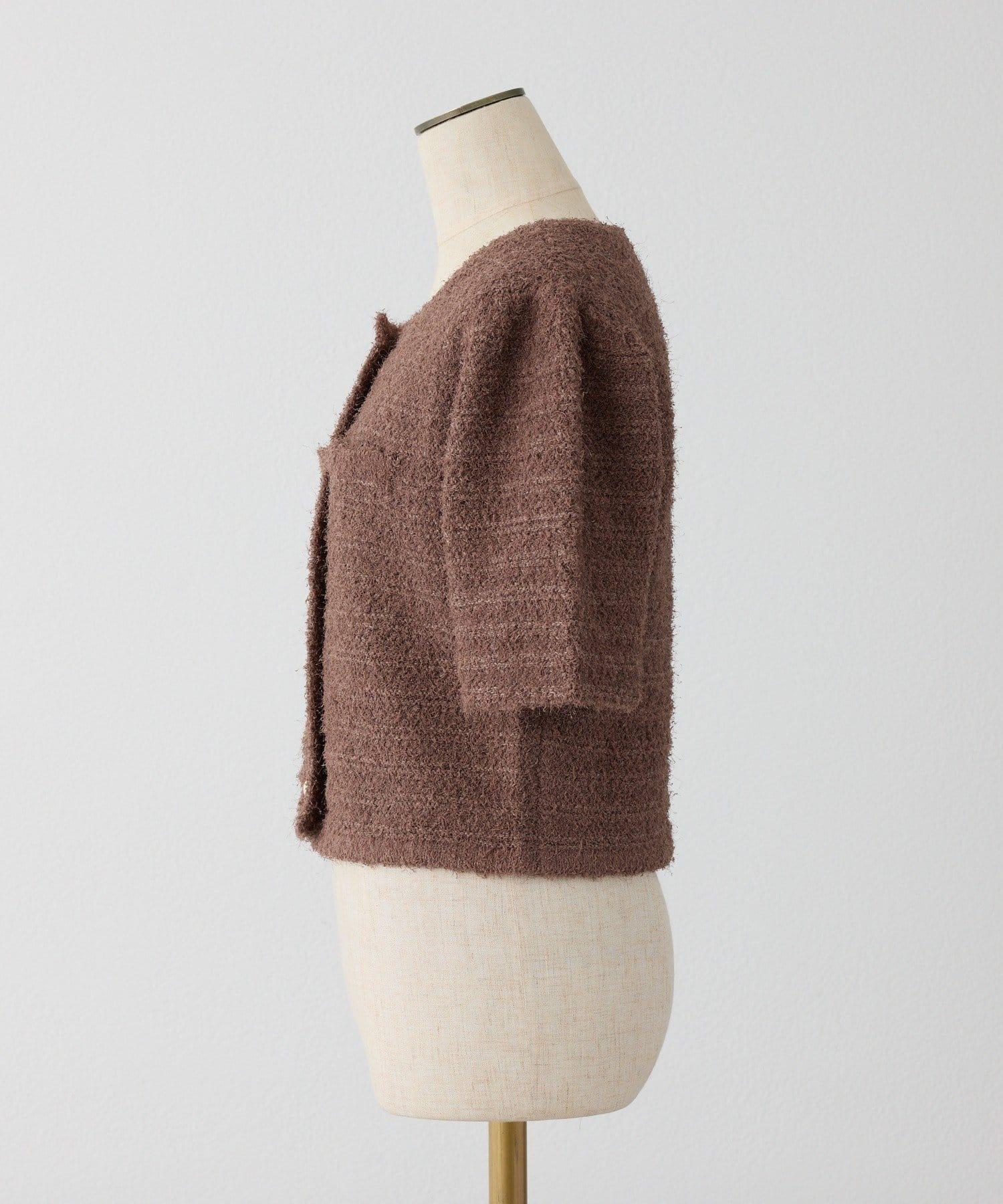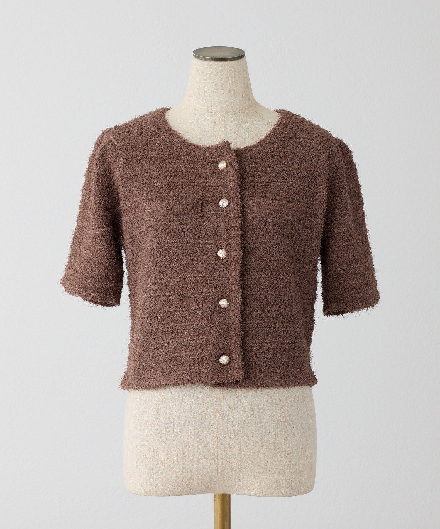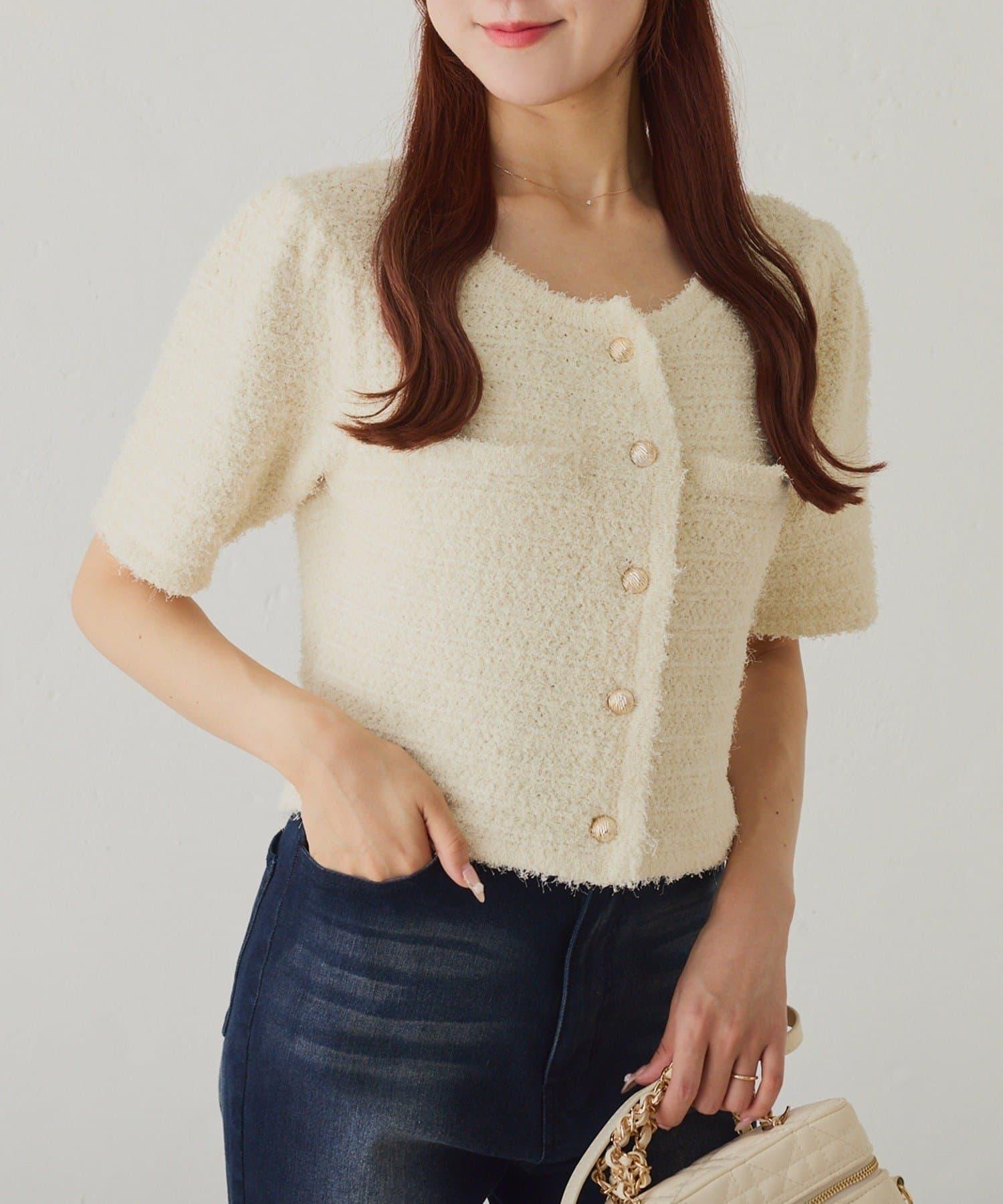 【one after another】金色紐扣短袖仿粗花呢開衫