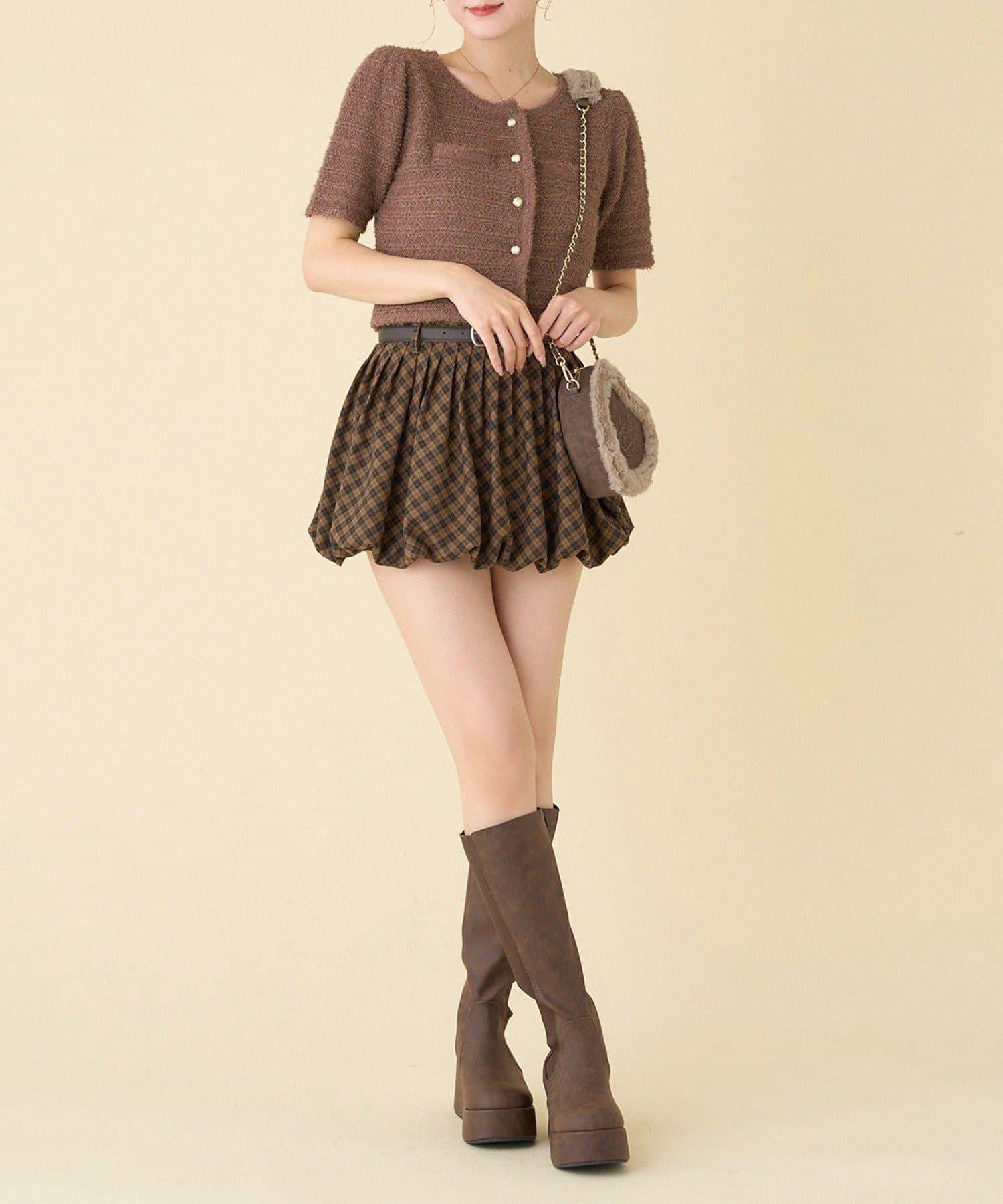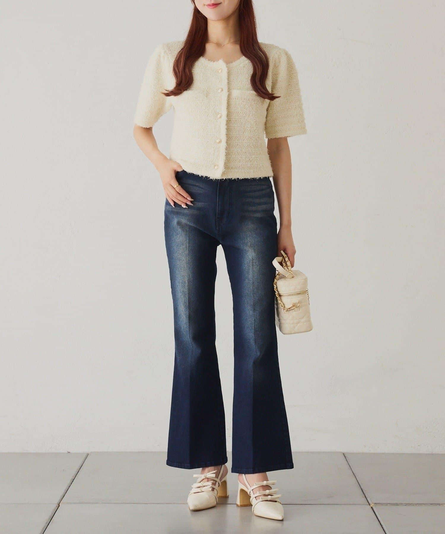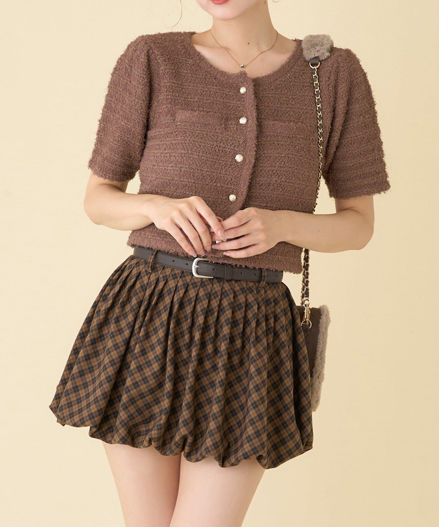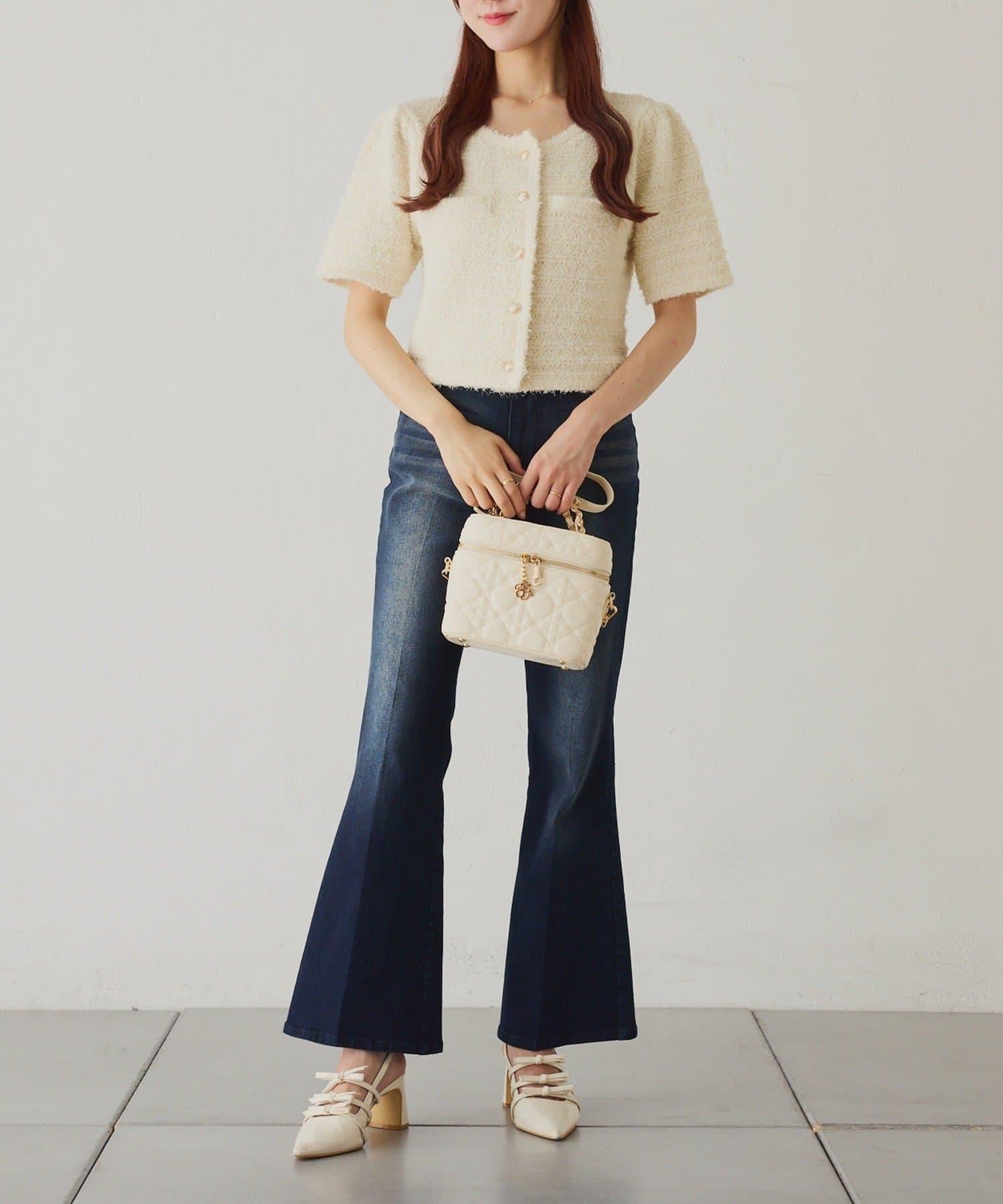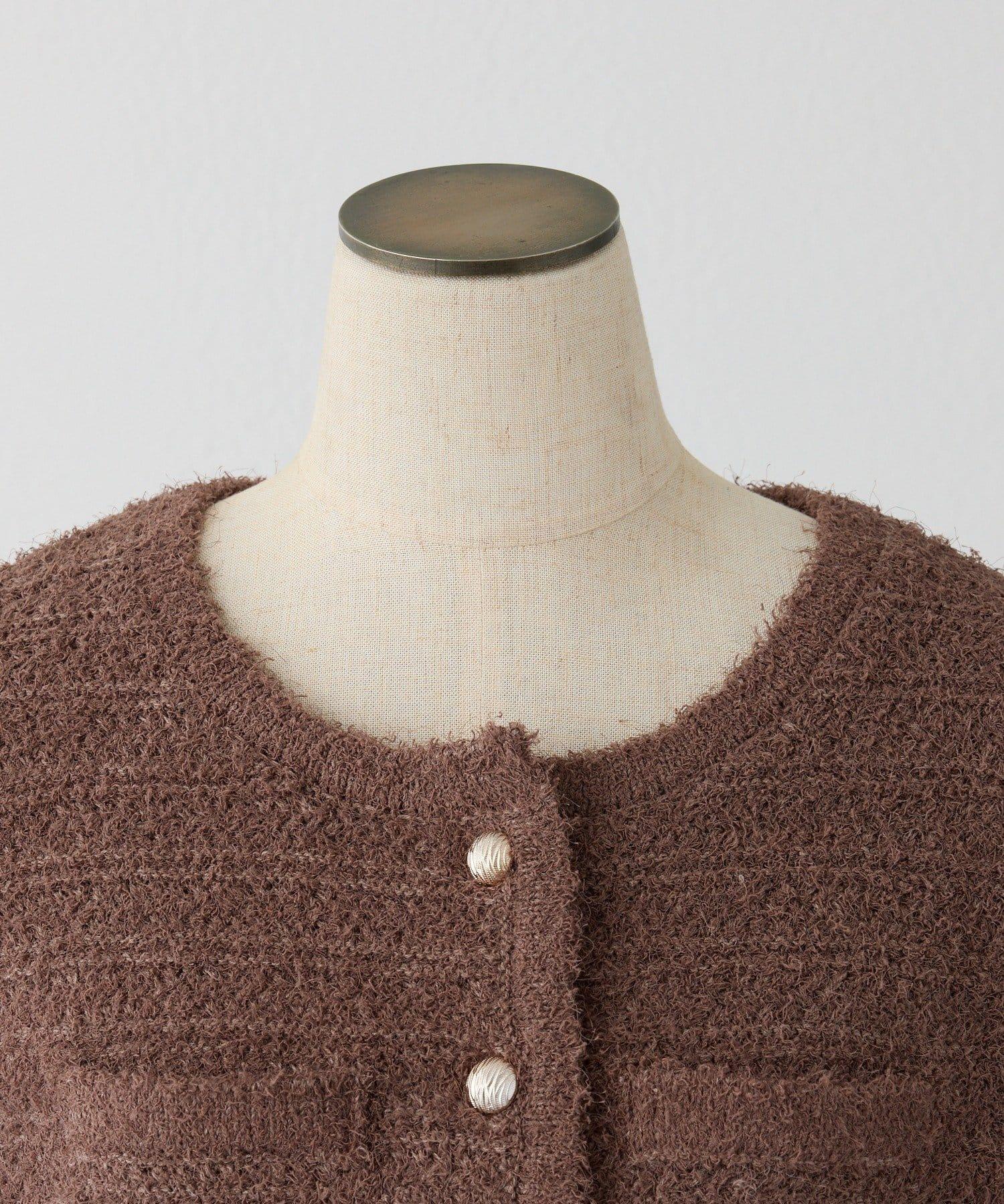 【one after another】金色紐扣短袖仿粗花呢開衫