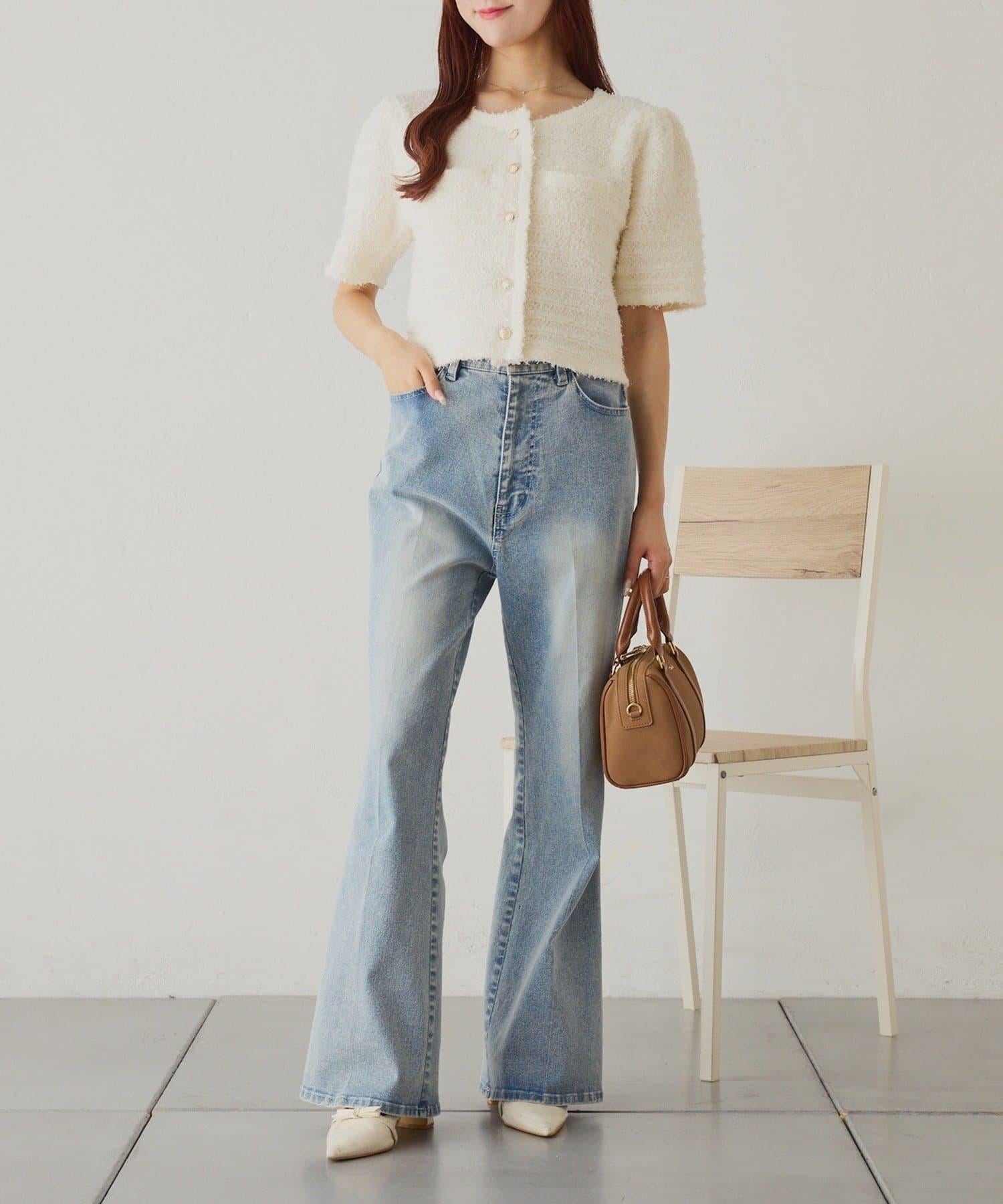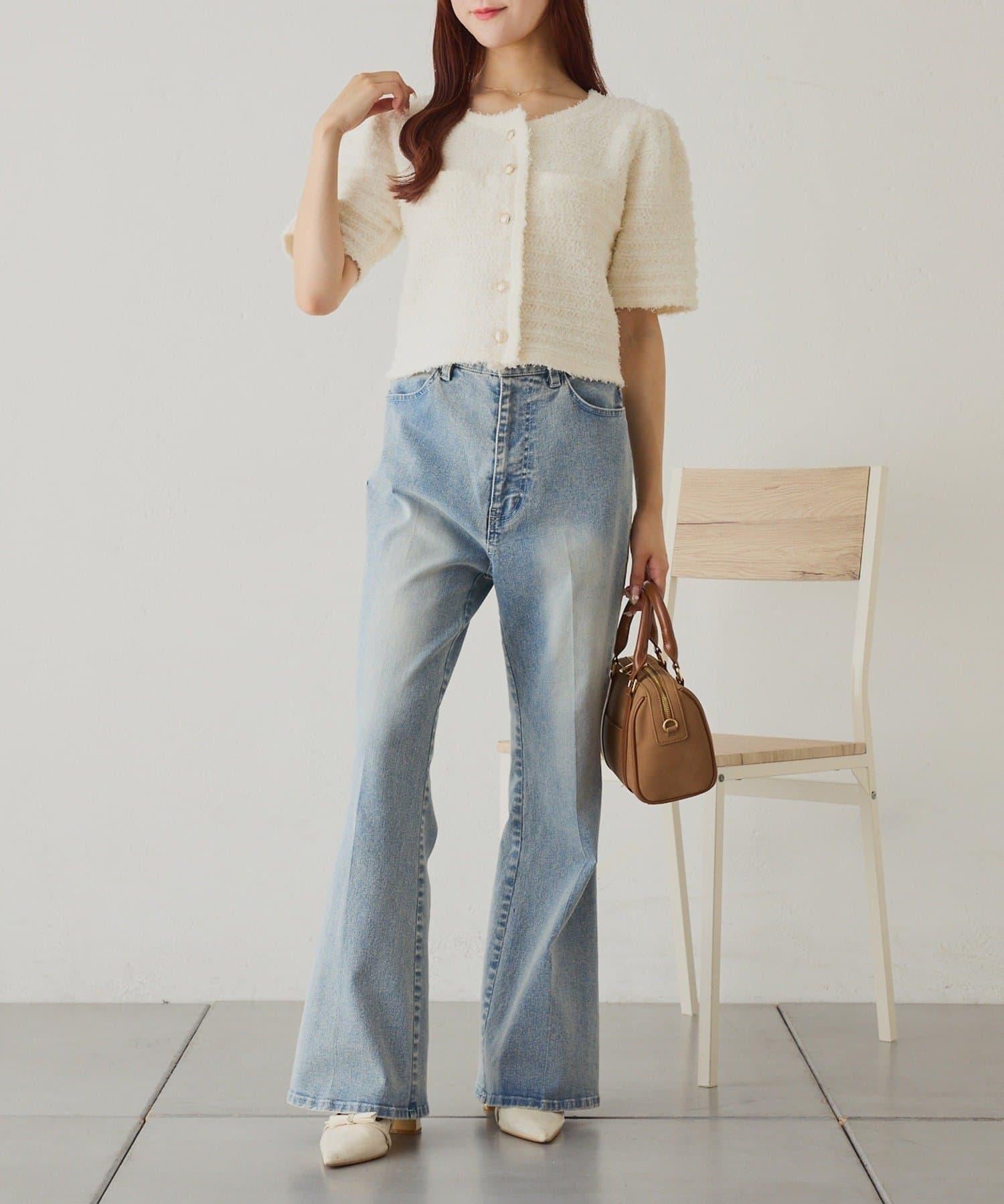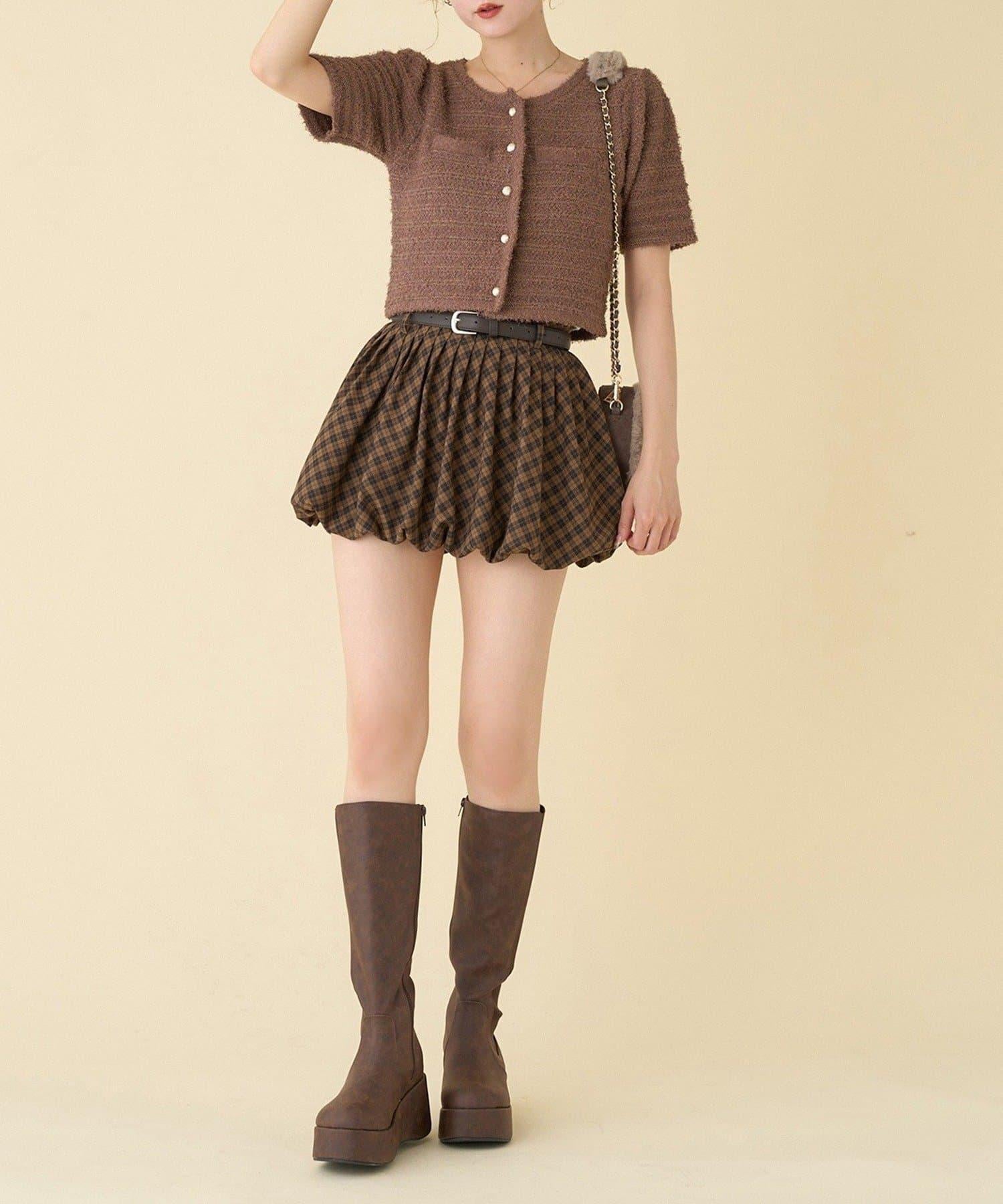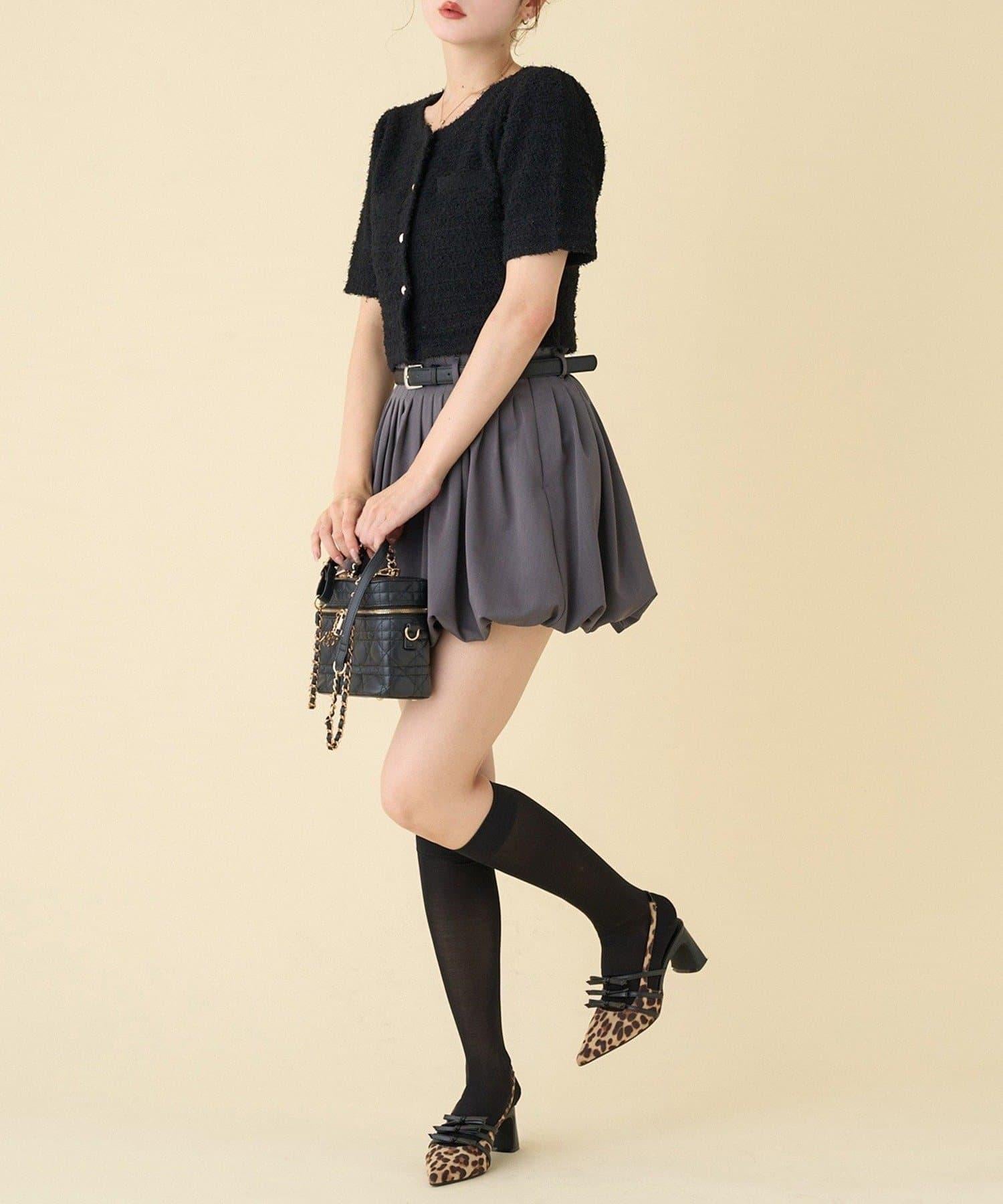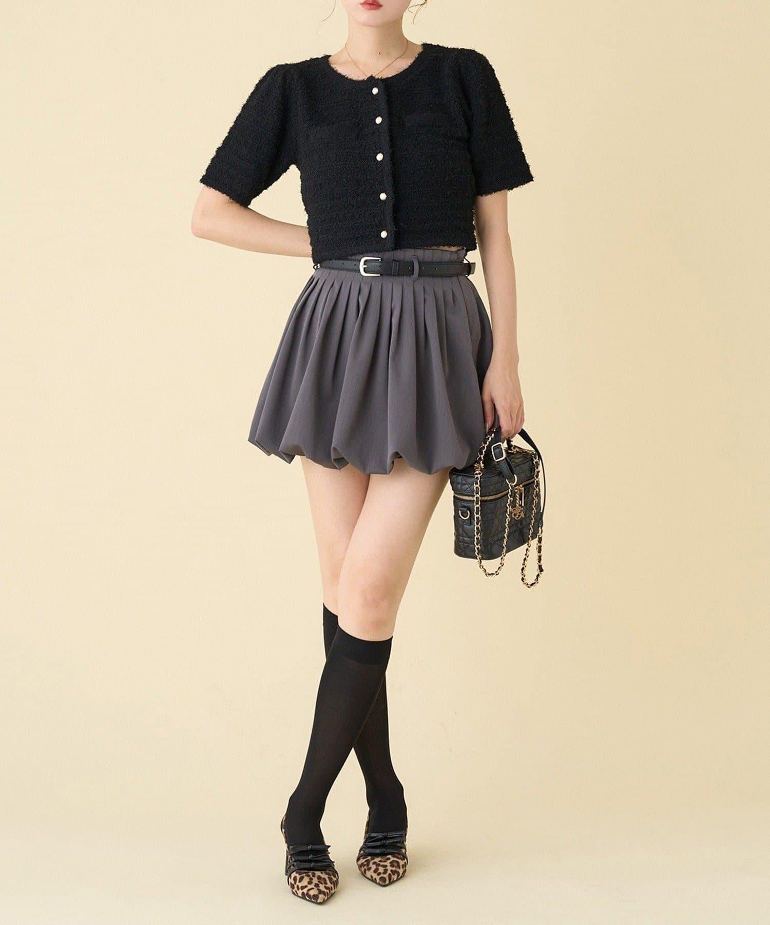 【one after another】金色紐扣短袖仿粗花呢開衫