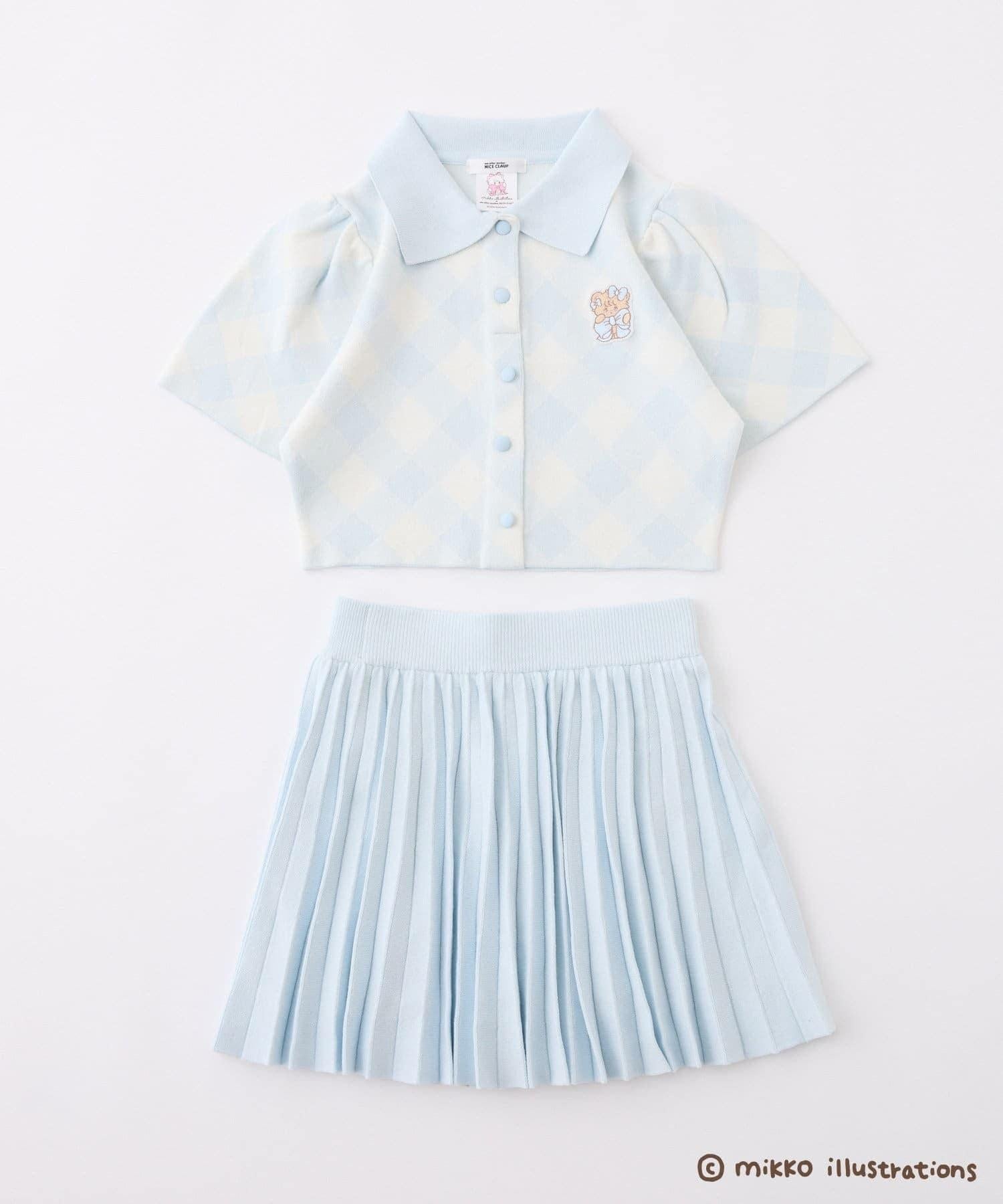 套裝由時尚的 polo 領針織衫和百褶裙組成。