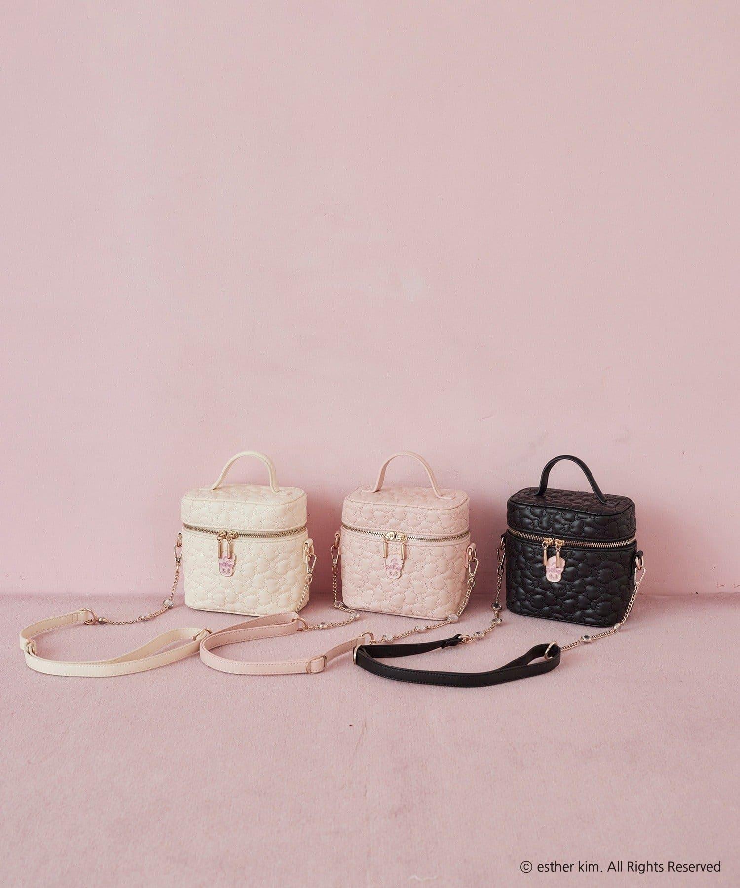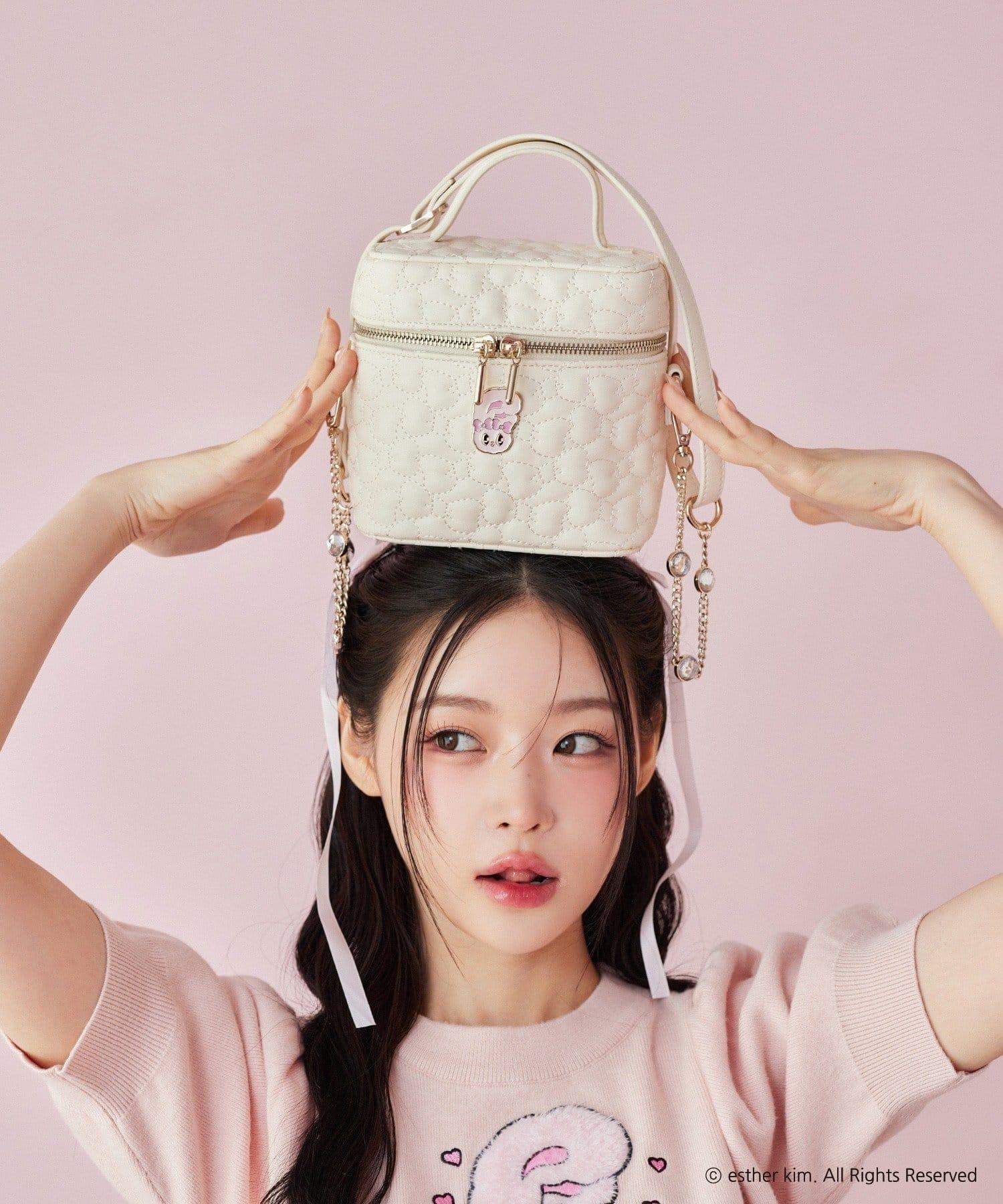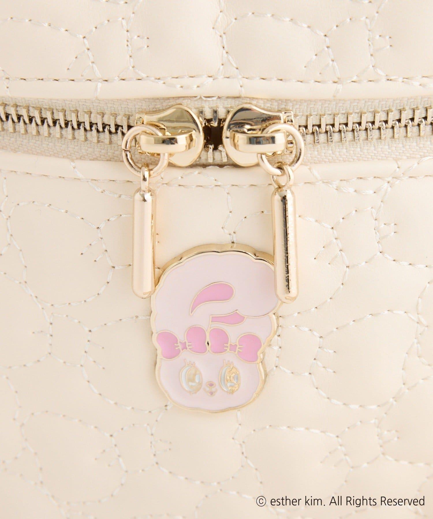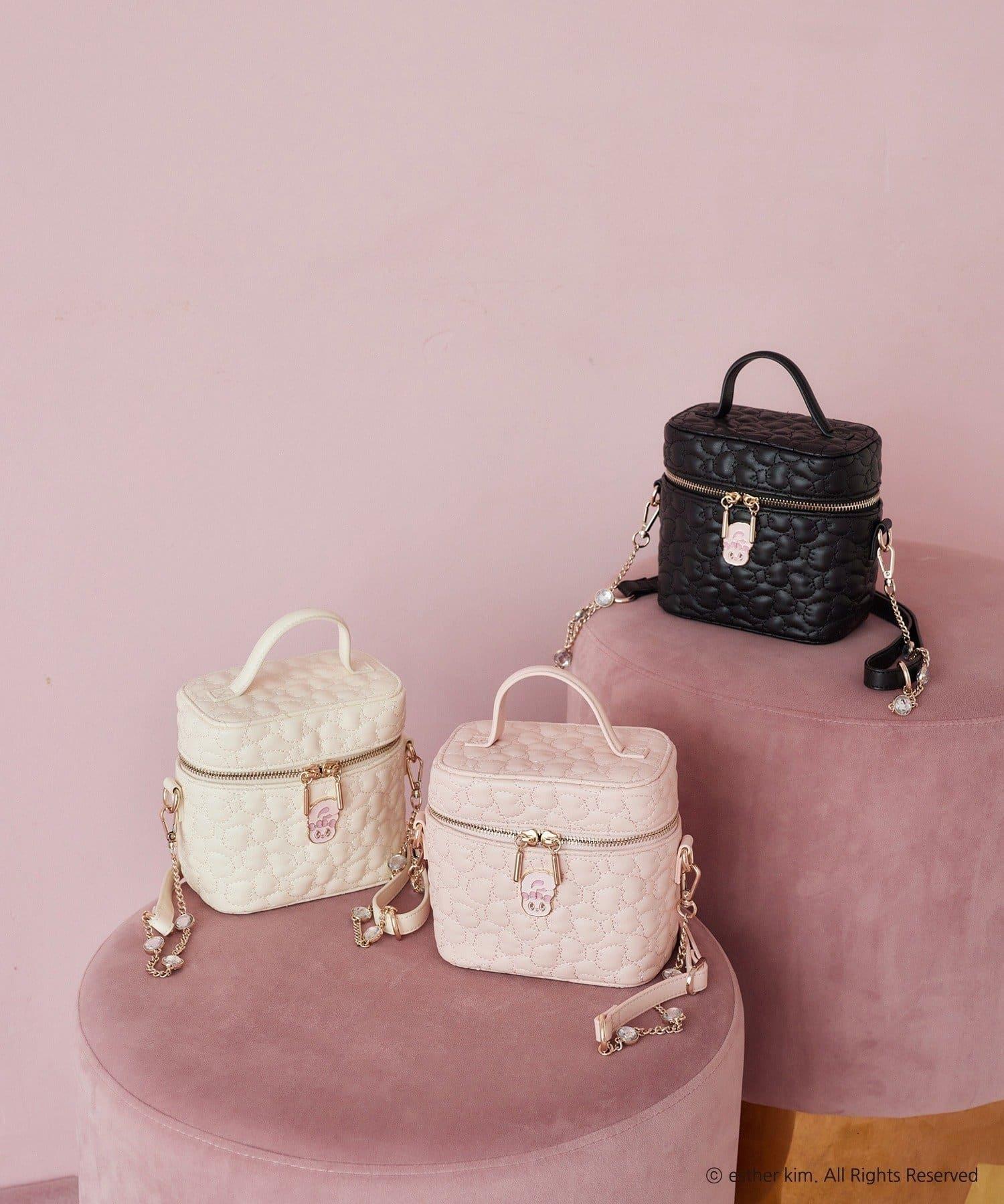 緞帶兔子徽章和緞帶絎縫圖案的帥氣小包。