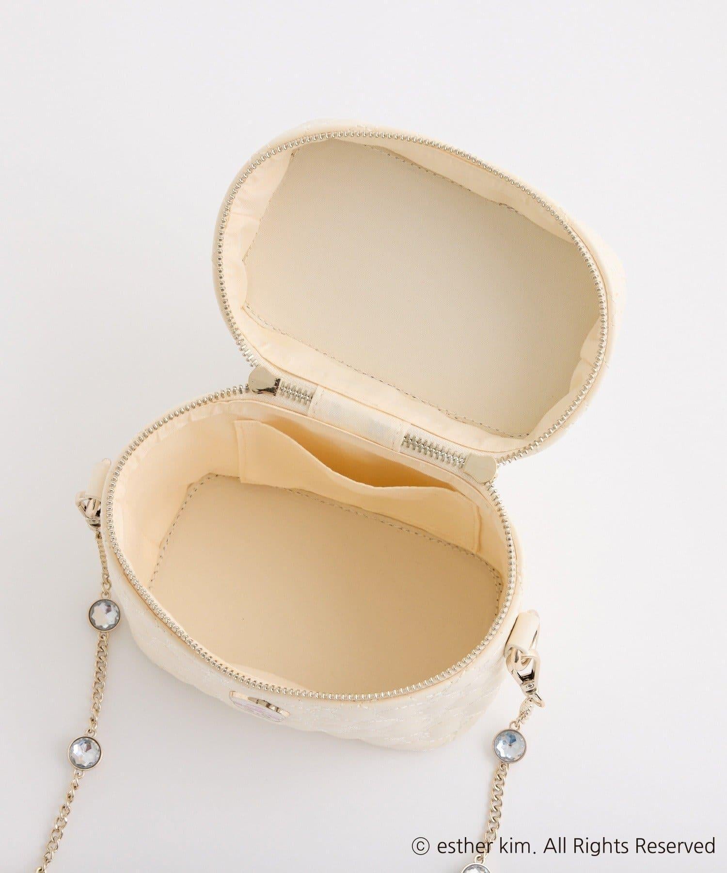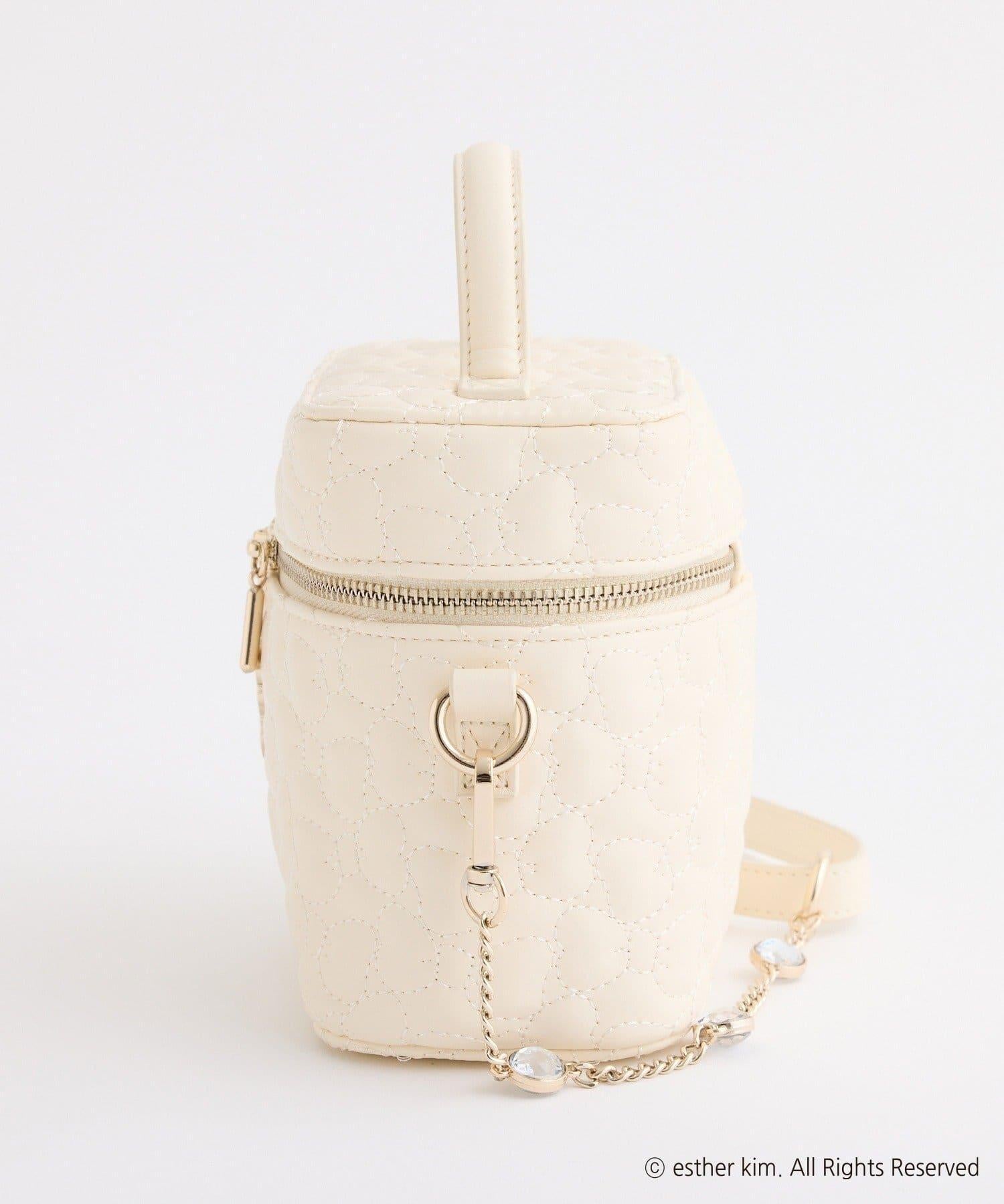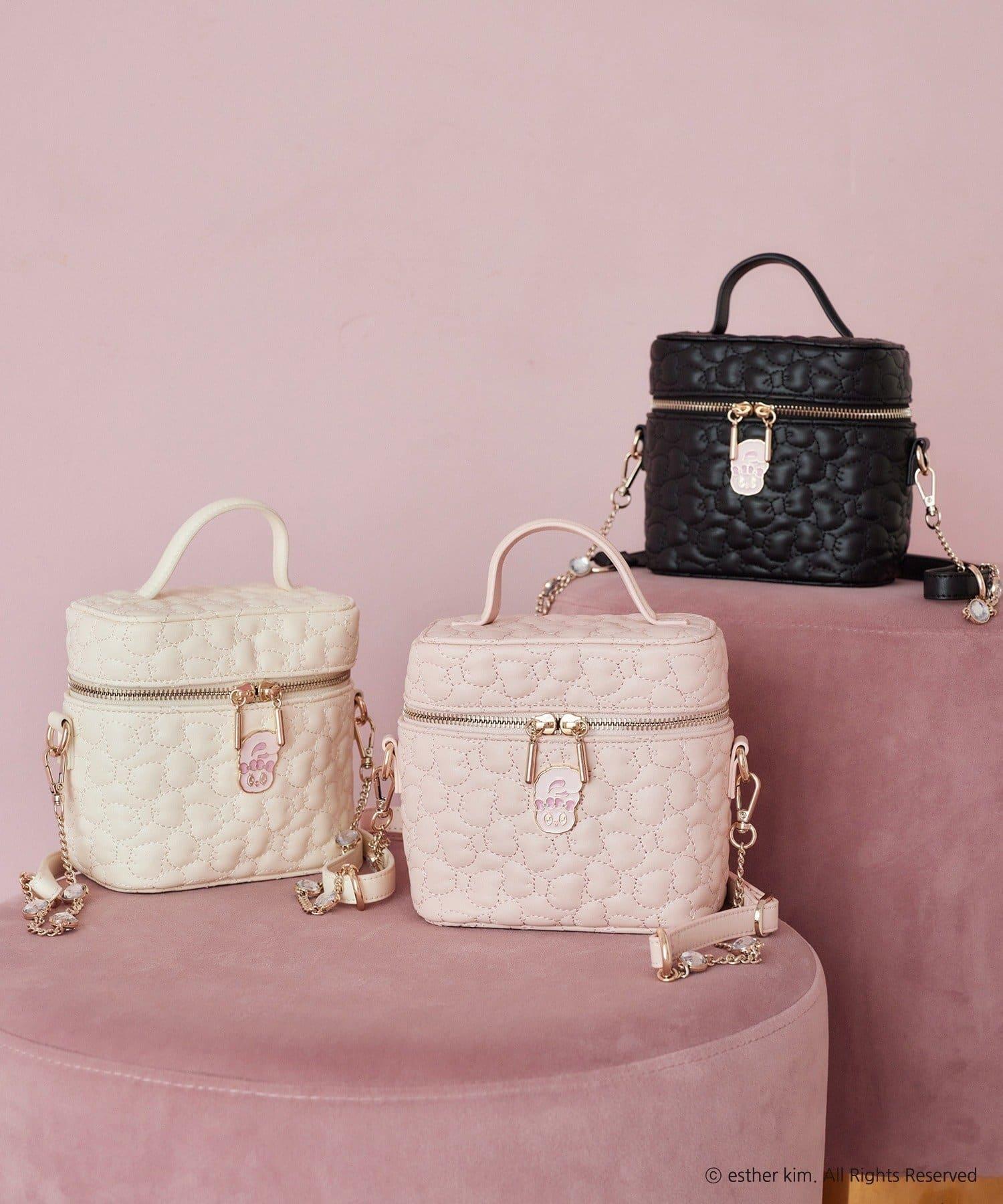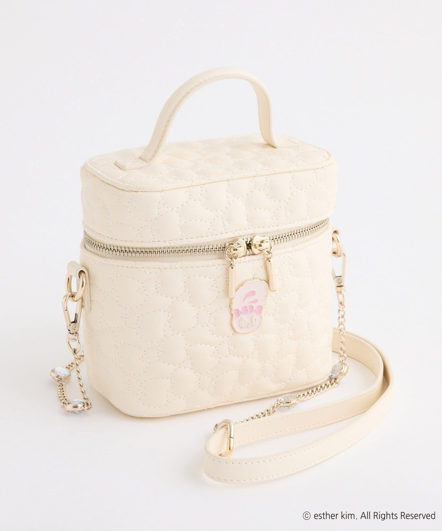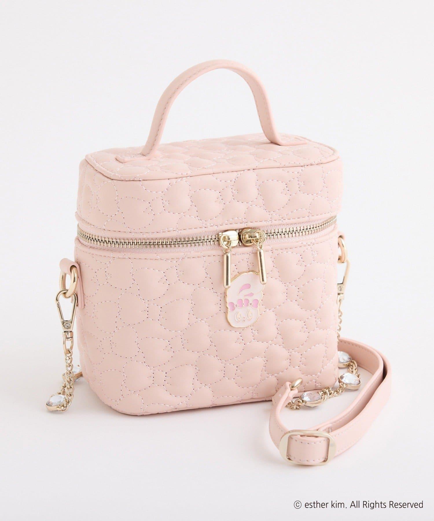 緞帶兔子徽章和緞帶絎縫圖案的帥氣小包。