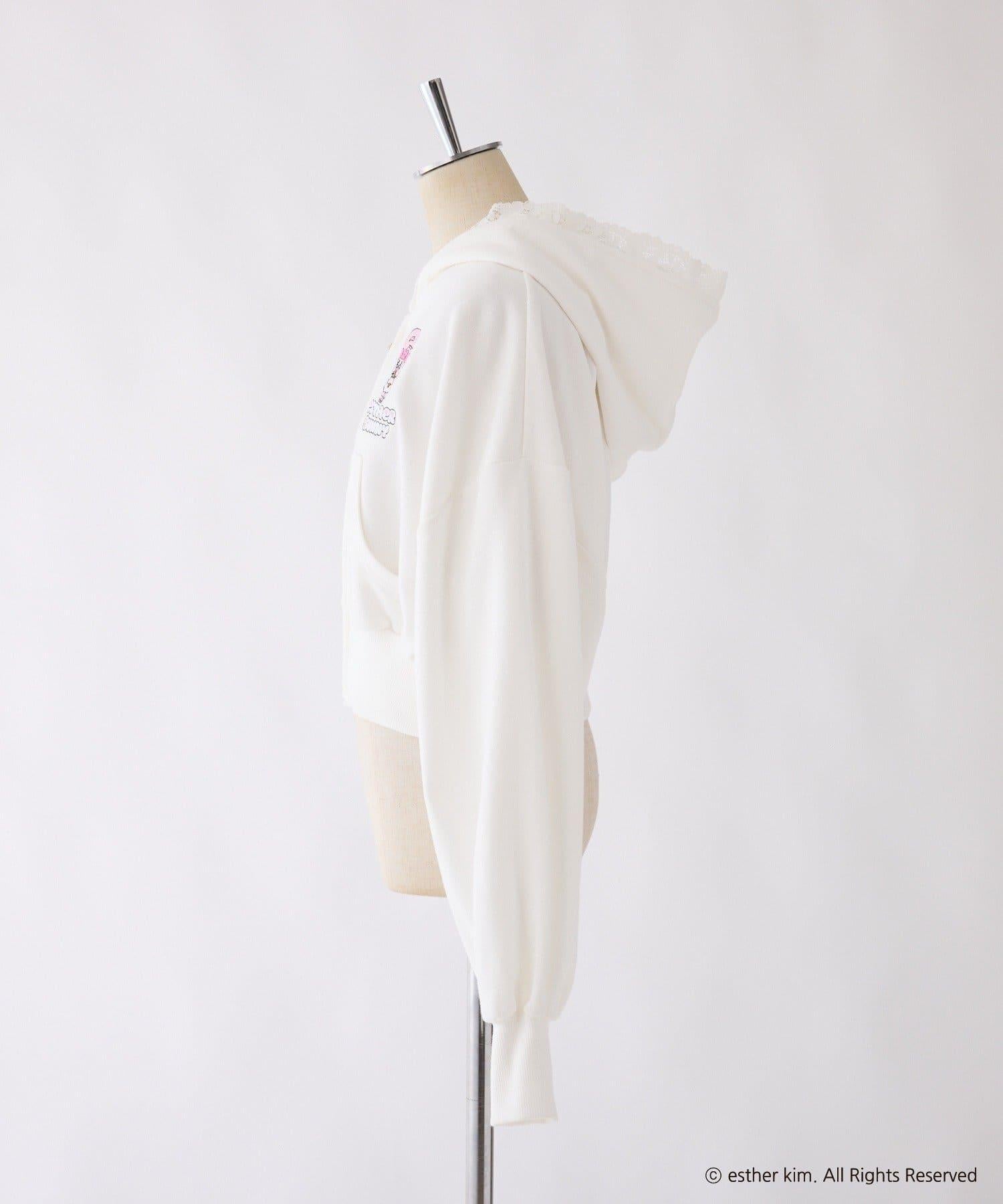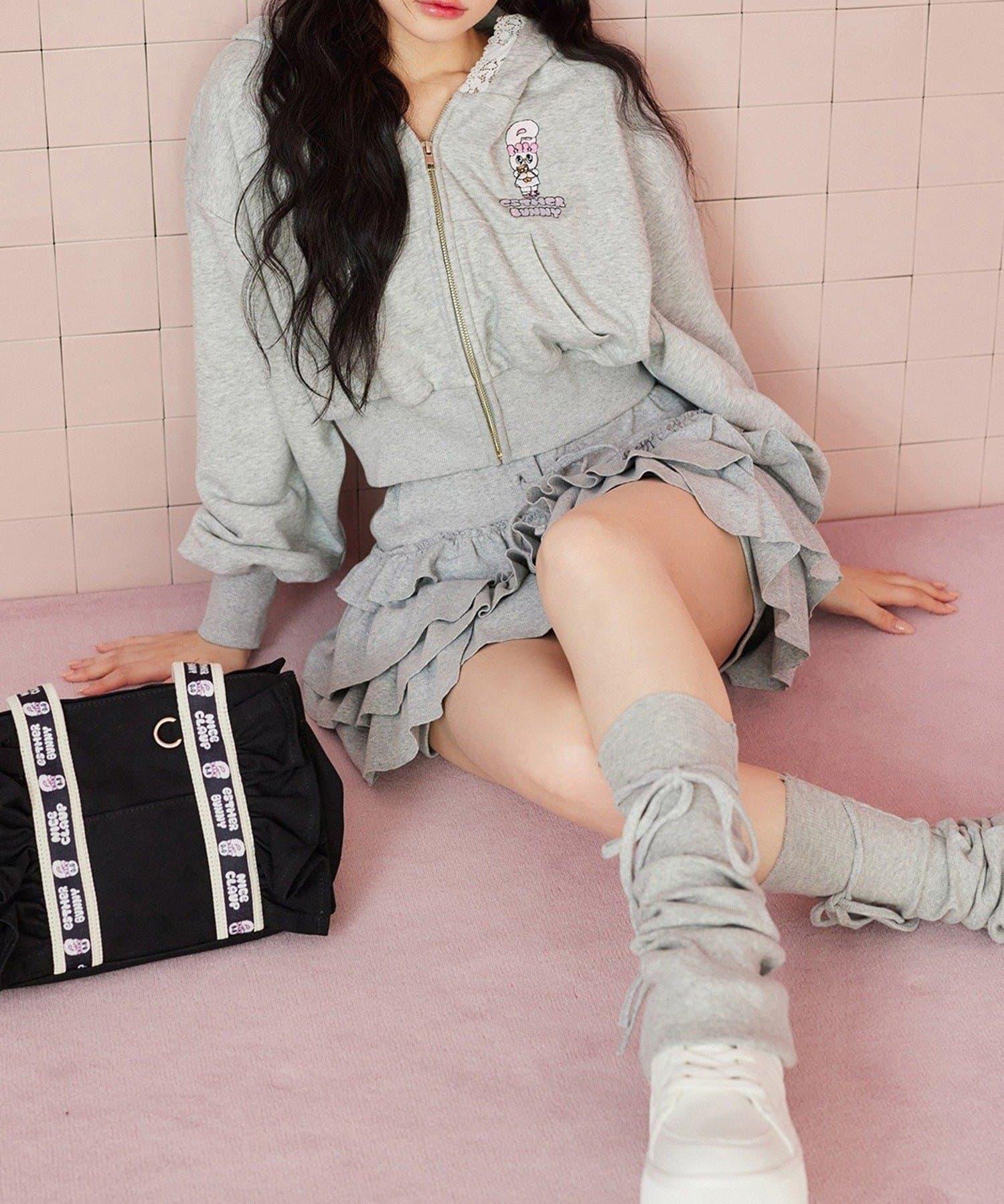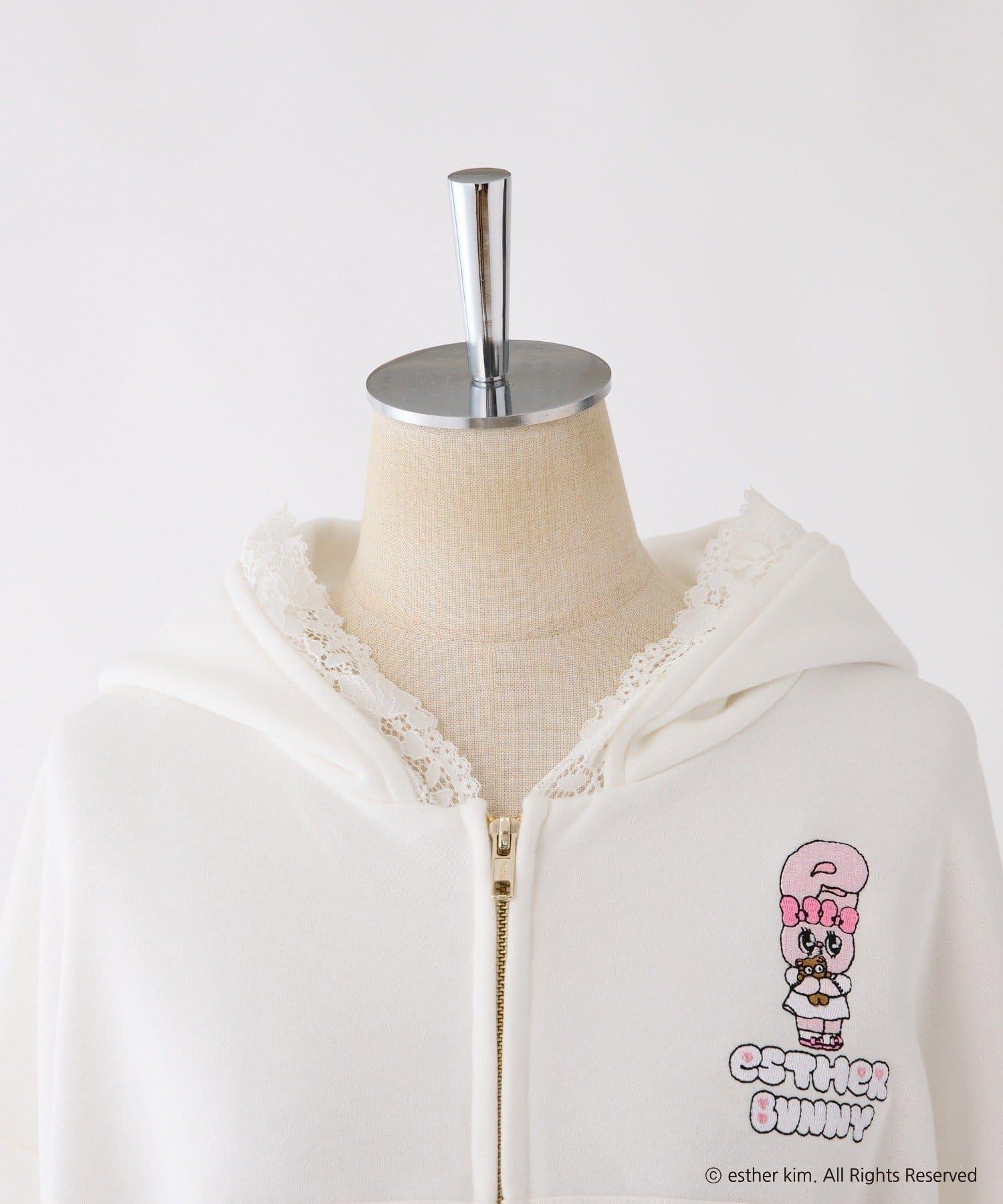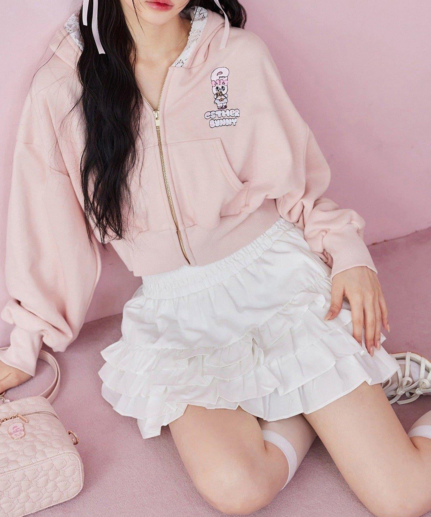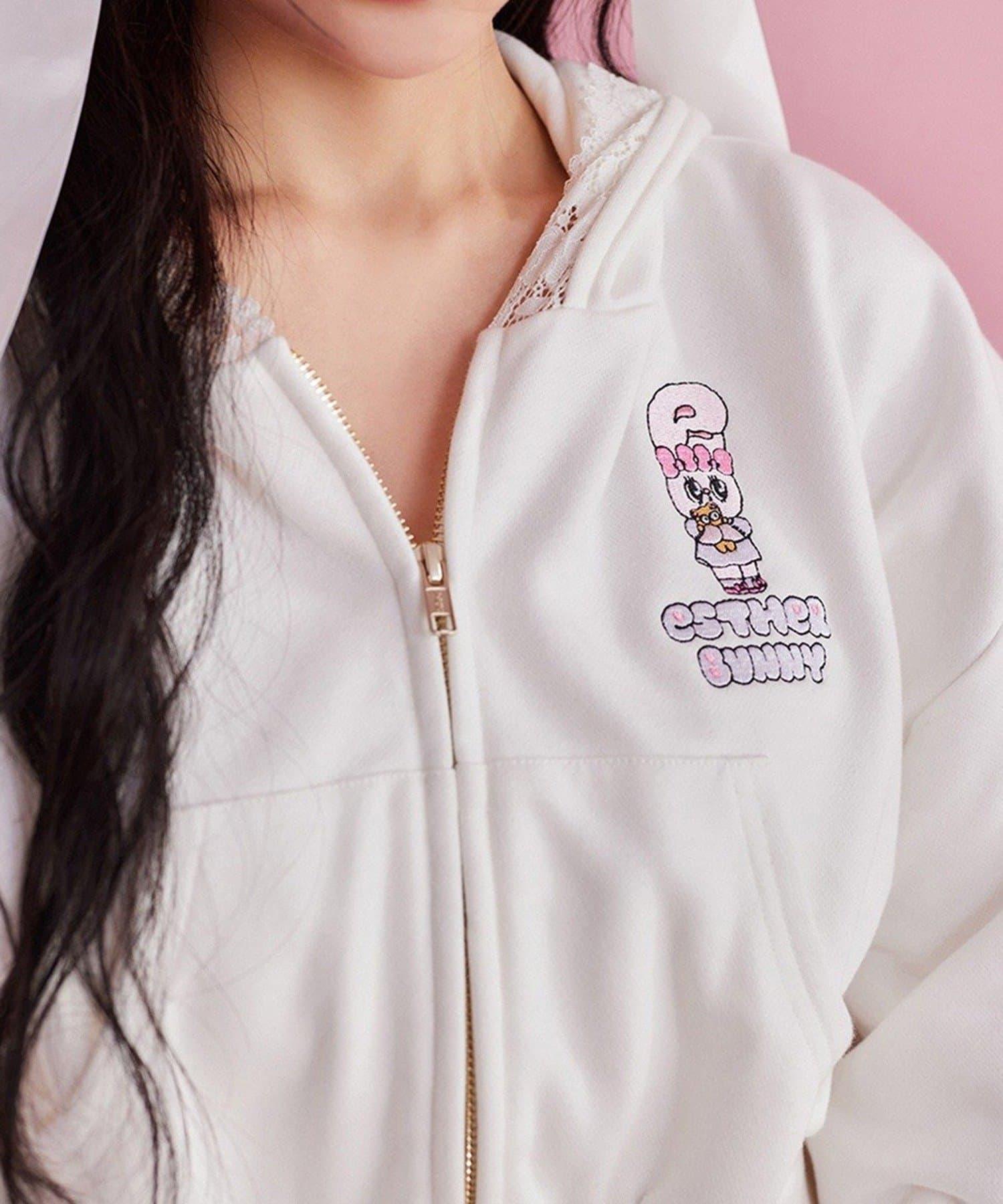 連帽上的蕾絲花邊為這款休閒單品增添了甜美氣息。
