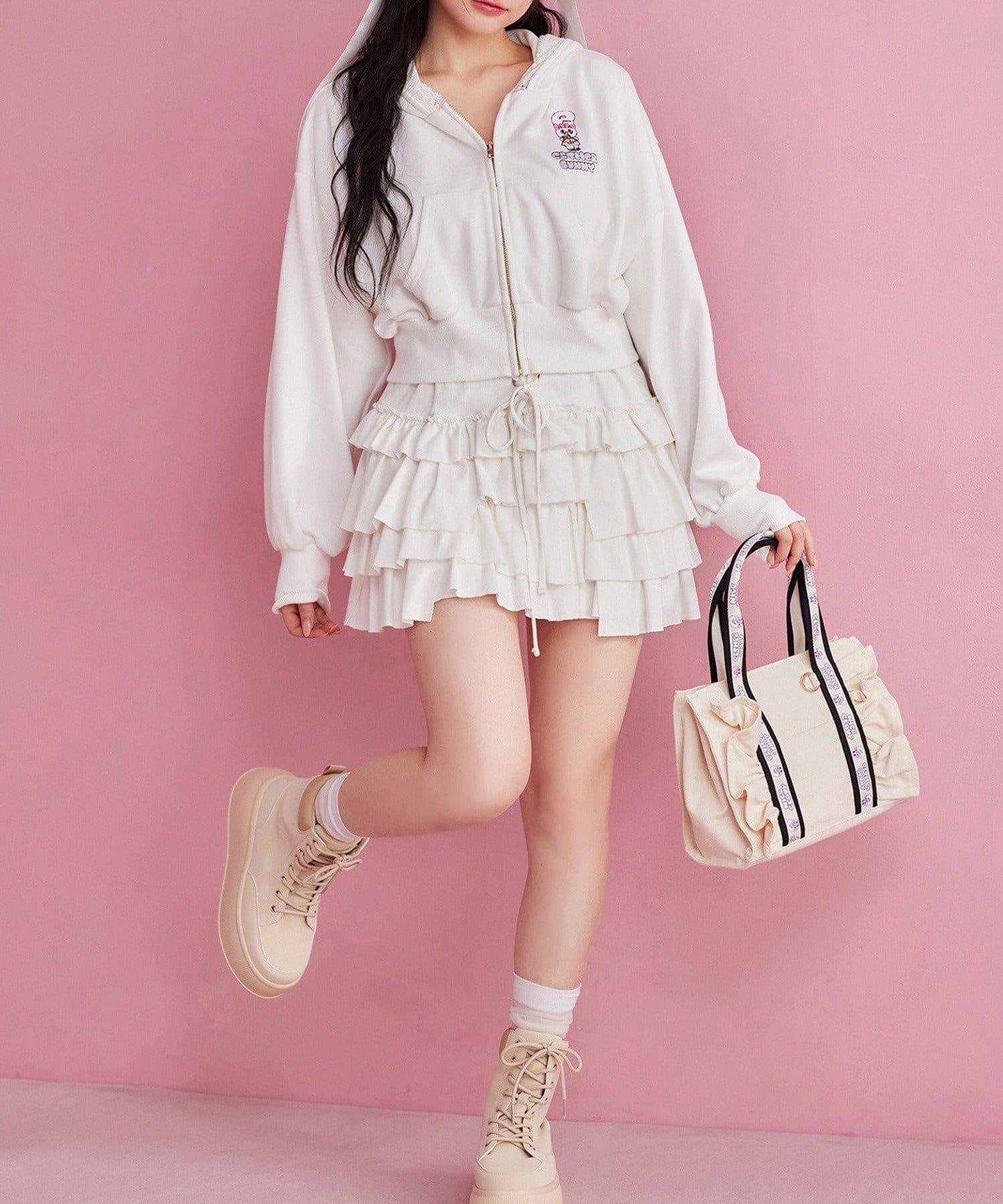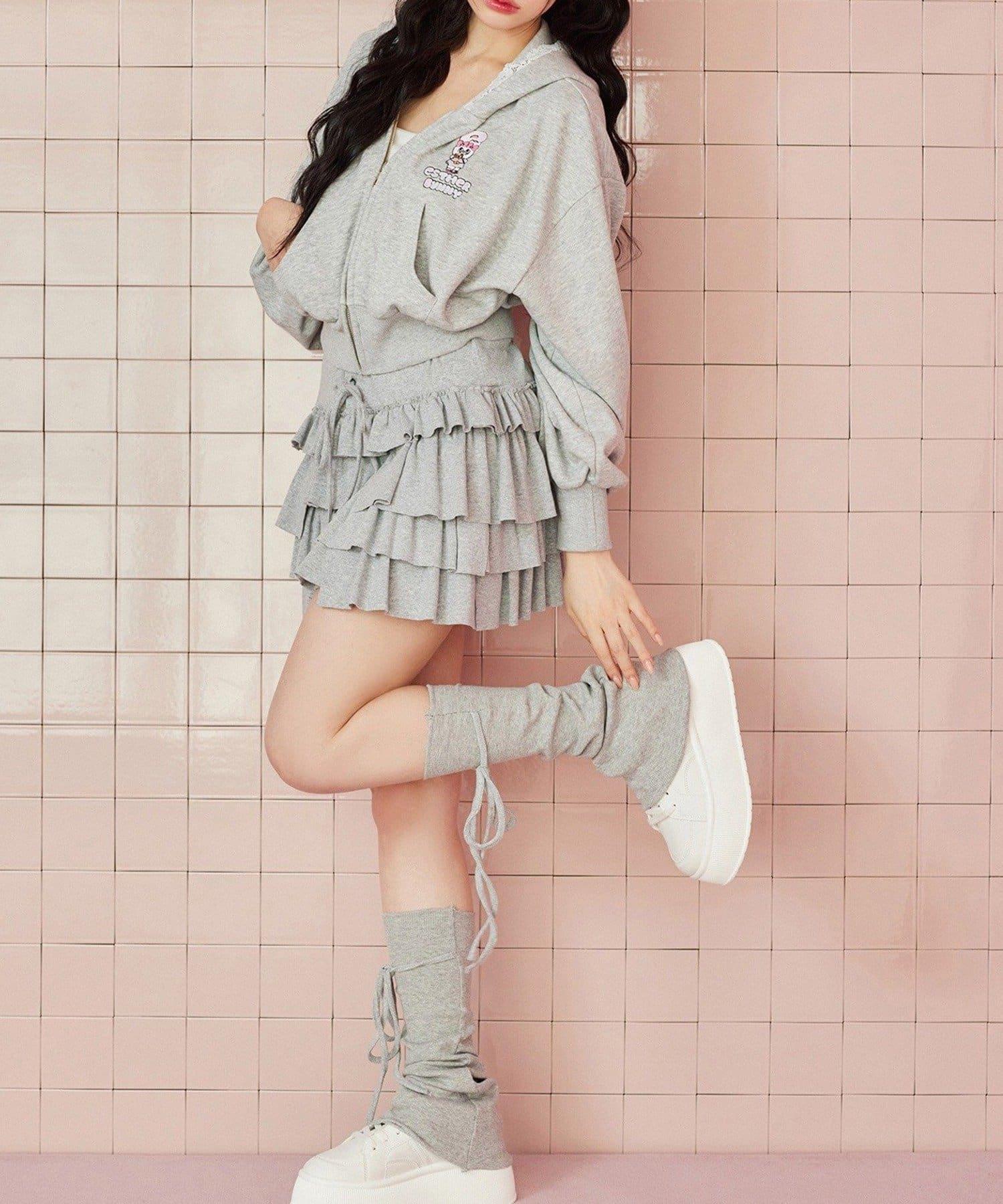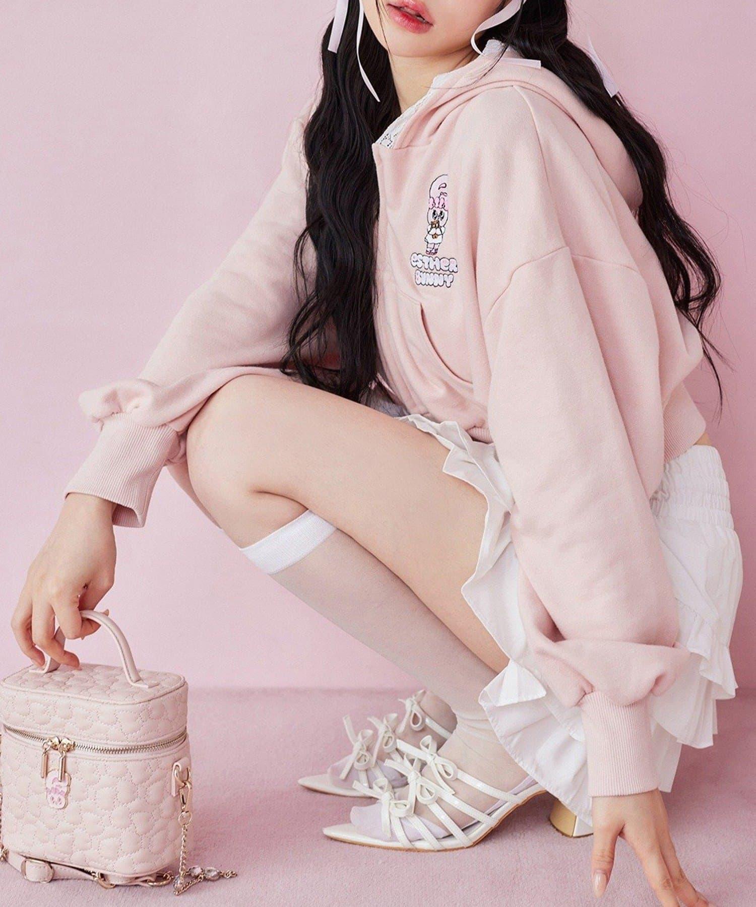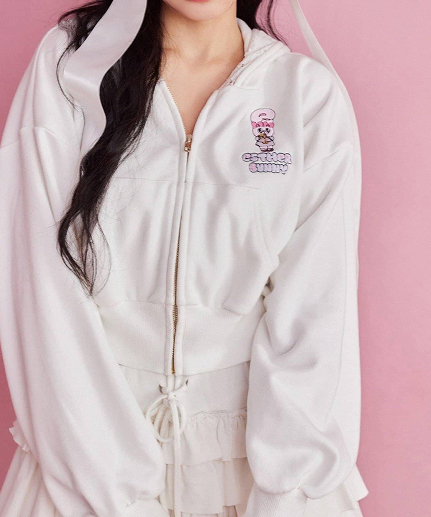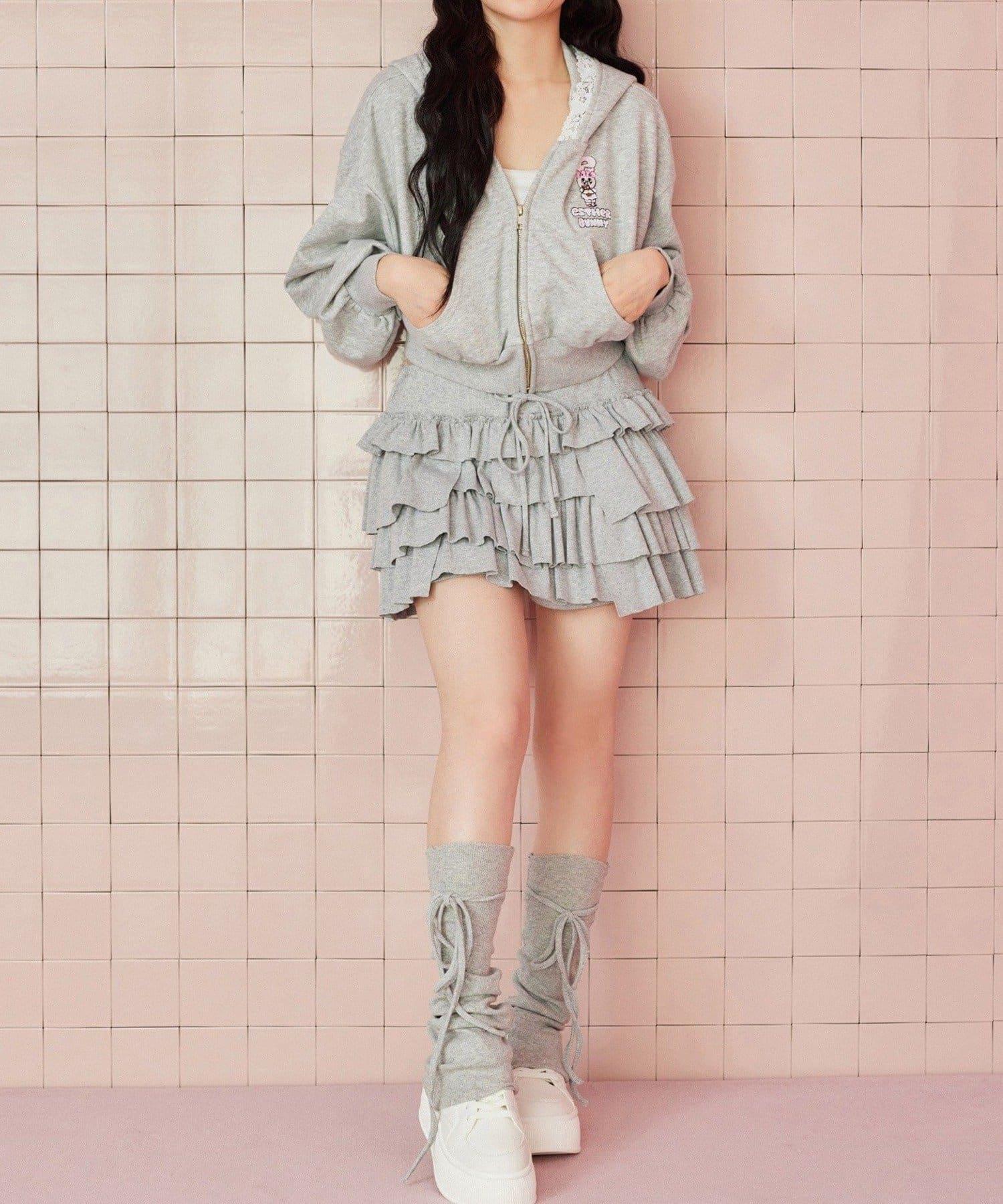 連帽上的蕾絲花邊為這款休閒單品增添了甜美氣息。