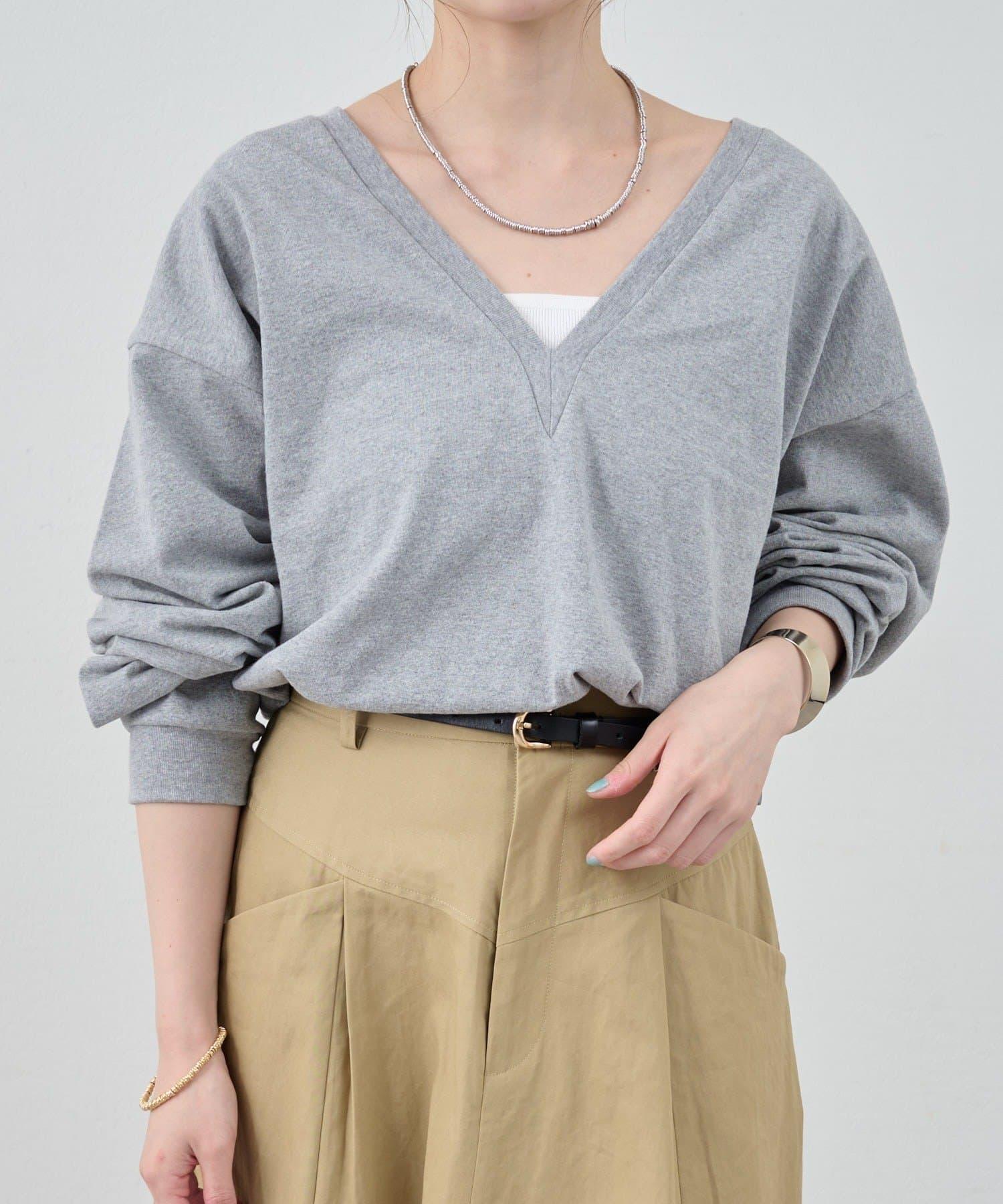 這款 T 恤採用寬 V 領設計。