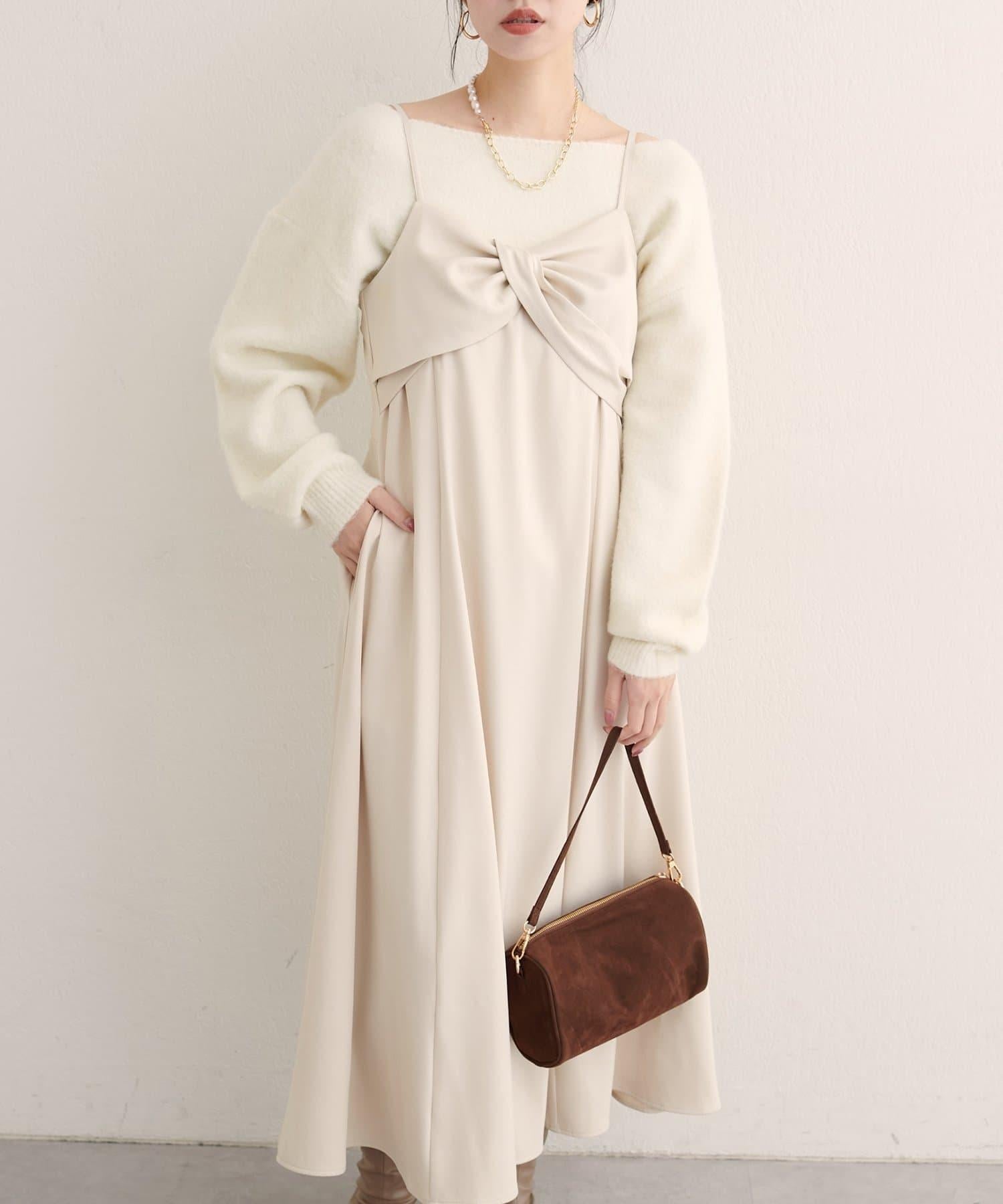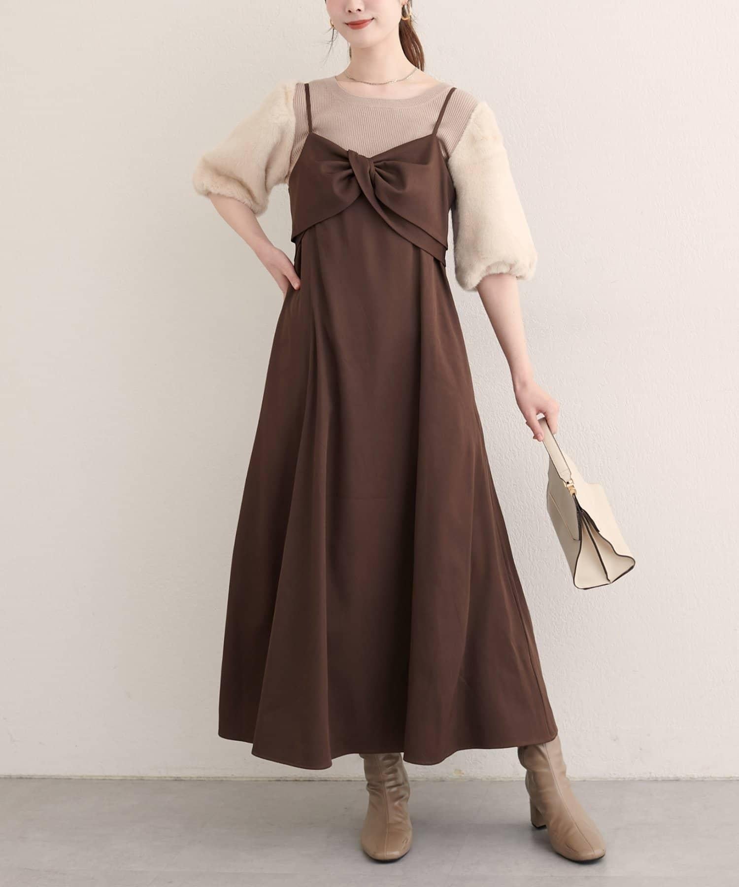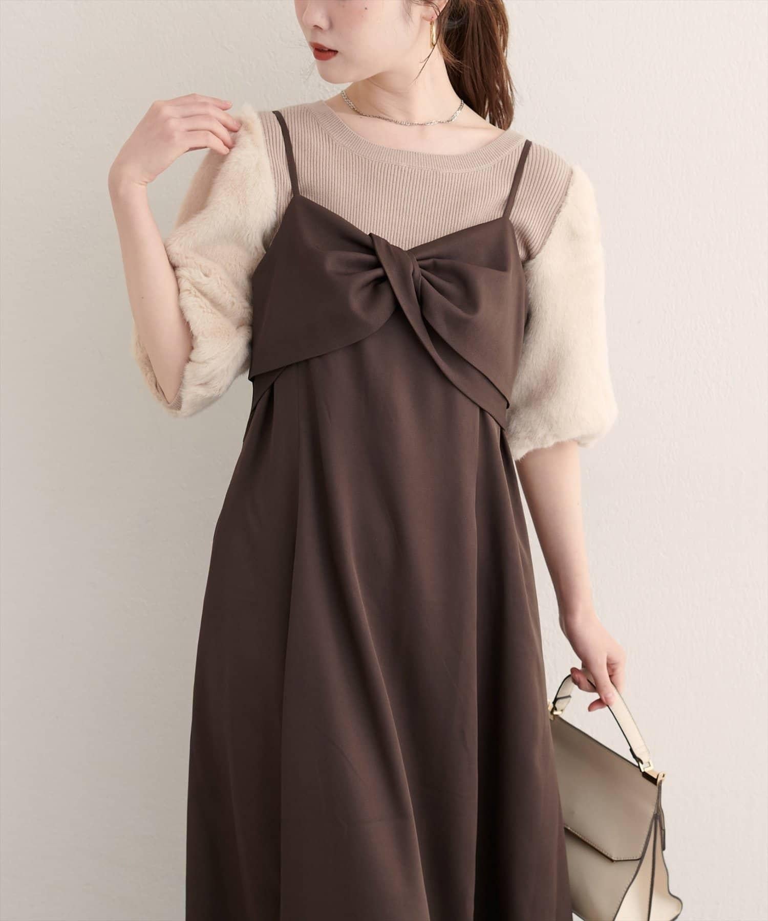 〈osono〉扭結蝴蝶結吊帶連衣裙