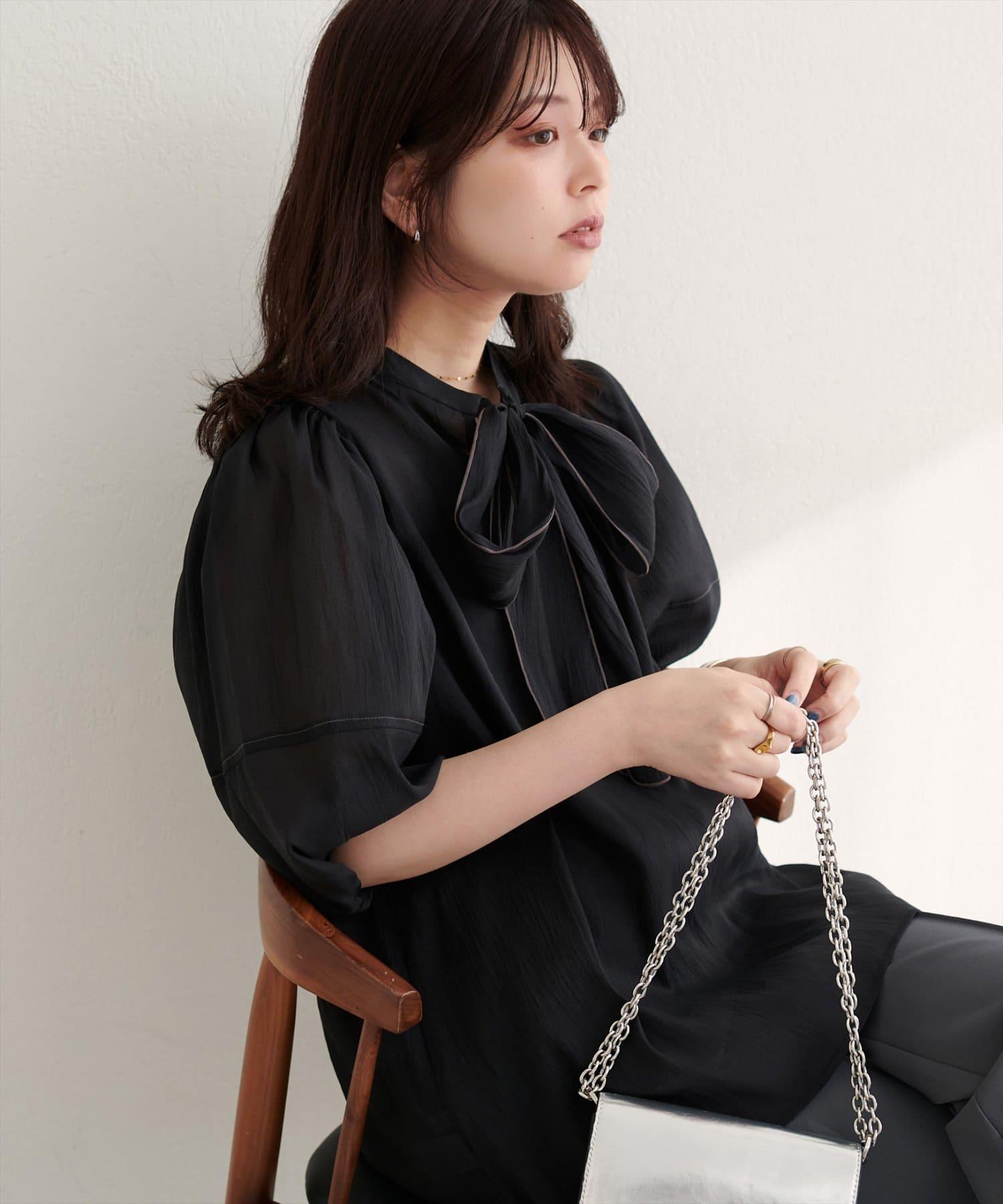 透明面料上衣,呈現優雅的透明感。易於搭配長褲款式。