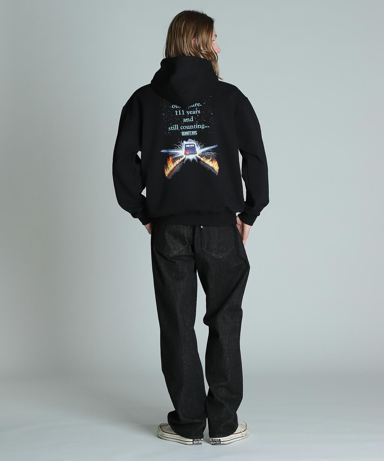 其面料--12.5 盎司重磅連帽衫--具有袼褙厚度和乾爽觸感,是一款可以品嚐到美國味道的連帽衫。該款單品穿著舒適,尺寸寬鬆,超大廓形新潮,是典型的美國品牌。肖特的衣身從常規的衣身、肩部和衣身的寬度、袖子的寬度進一步完成了寬大的廓形。肖特是騎手夾克的代名詞,其歷史始於 1913 年,由歐文-肖特(Irving Schott)和傑克-肖特(Jack Schott)兄弟在紐約創立。👍初,工廠生產雨衣,但在 1928 年