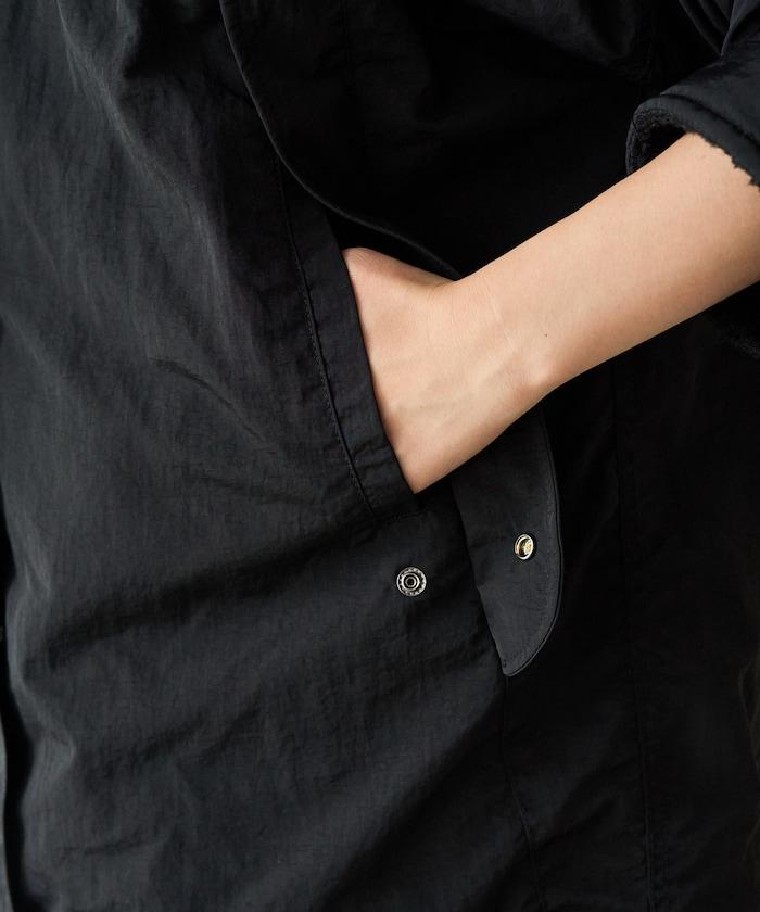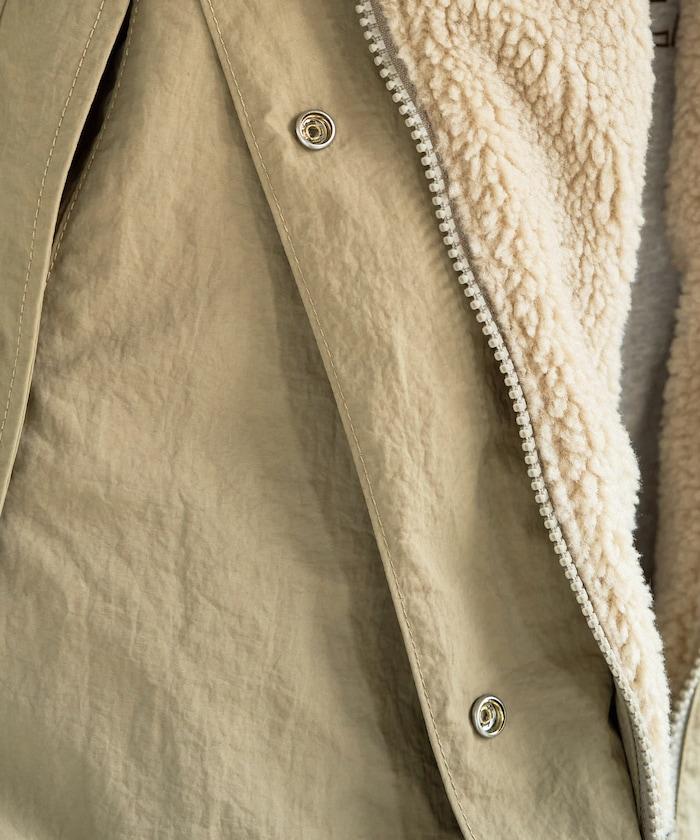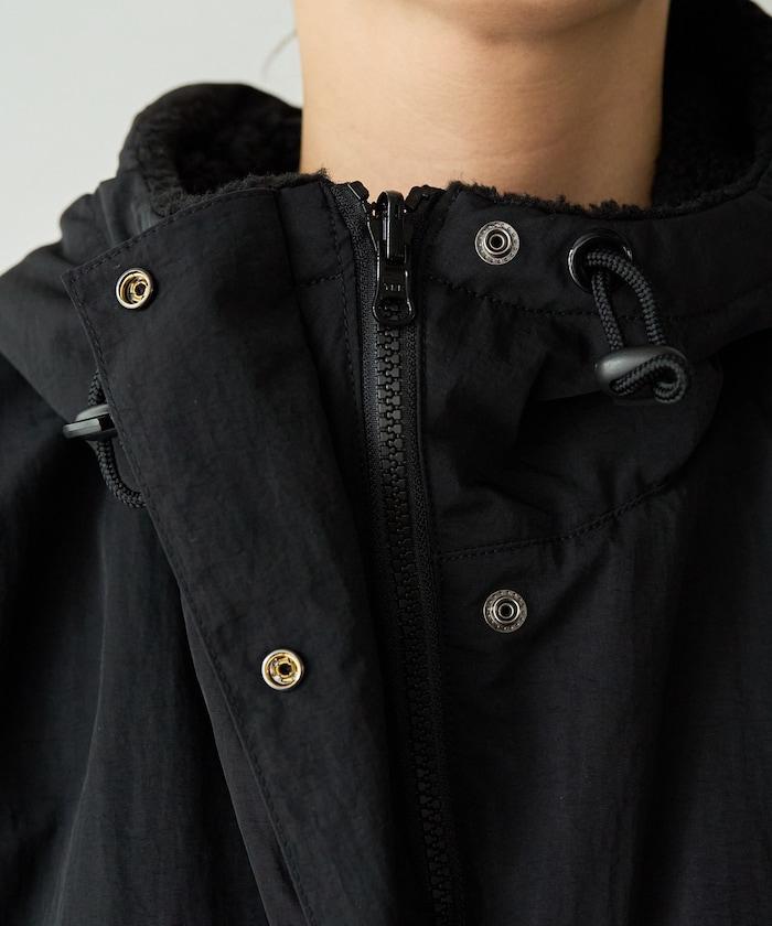 這是一款可在蓬鬆保暖的蟒毛和男裝風格的尼龍之間進行雙面翻轉的外套。