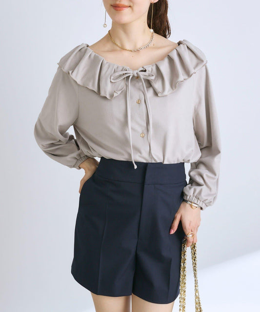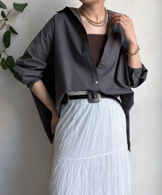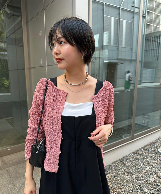 面料採用 100%醋酸纖維,具有漂亮的網狀結構。穿上後,透明感適中,輕盈舒適。在夏天,它可以作為遮陽傘,在室內,它可以作為防空調用品,用途廣泛。即使有領子,也不會太硬,是日常使用的單品。