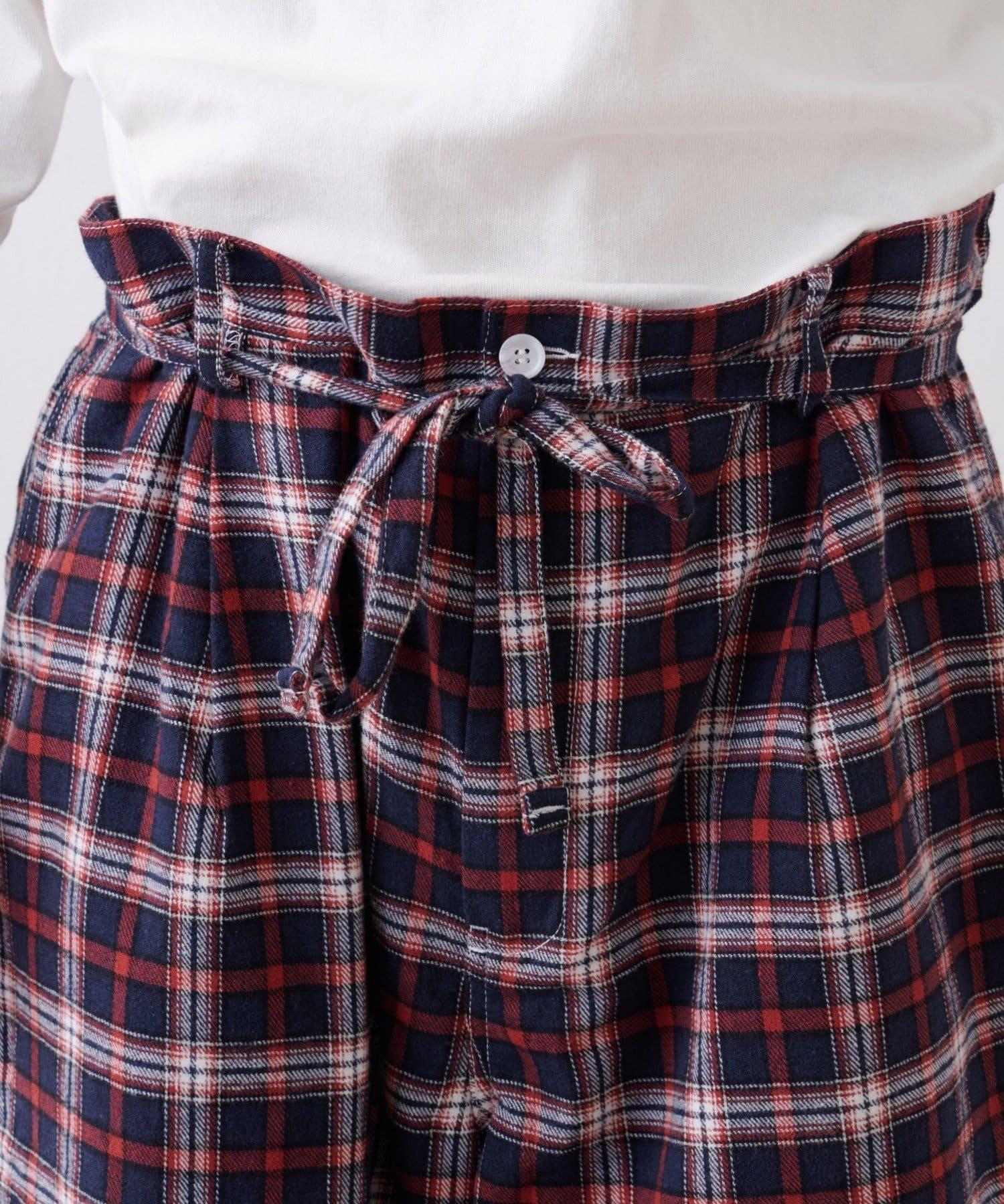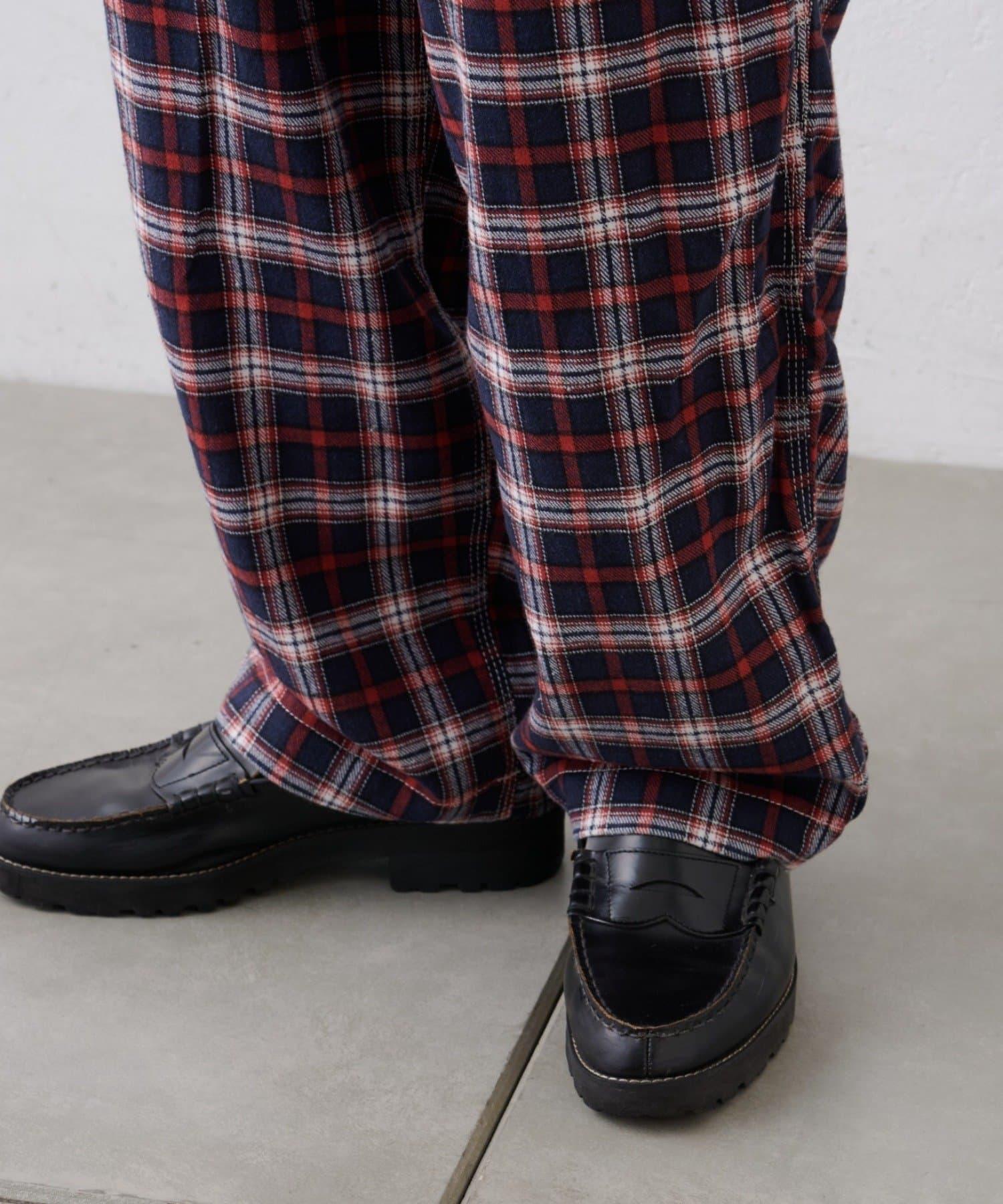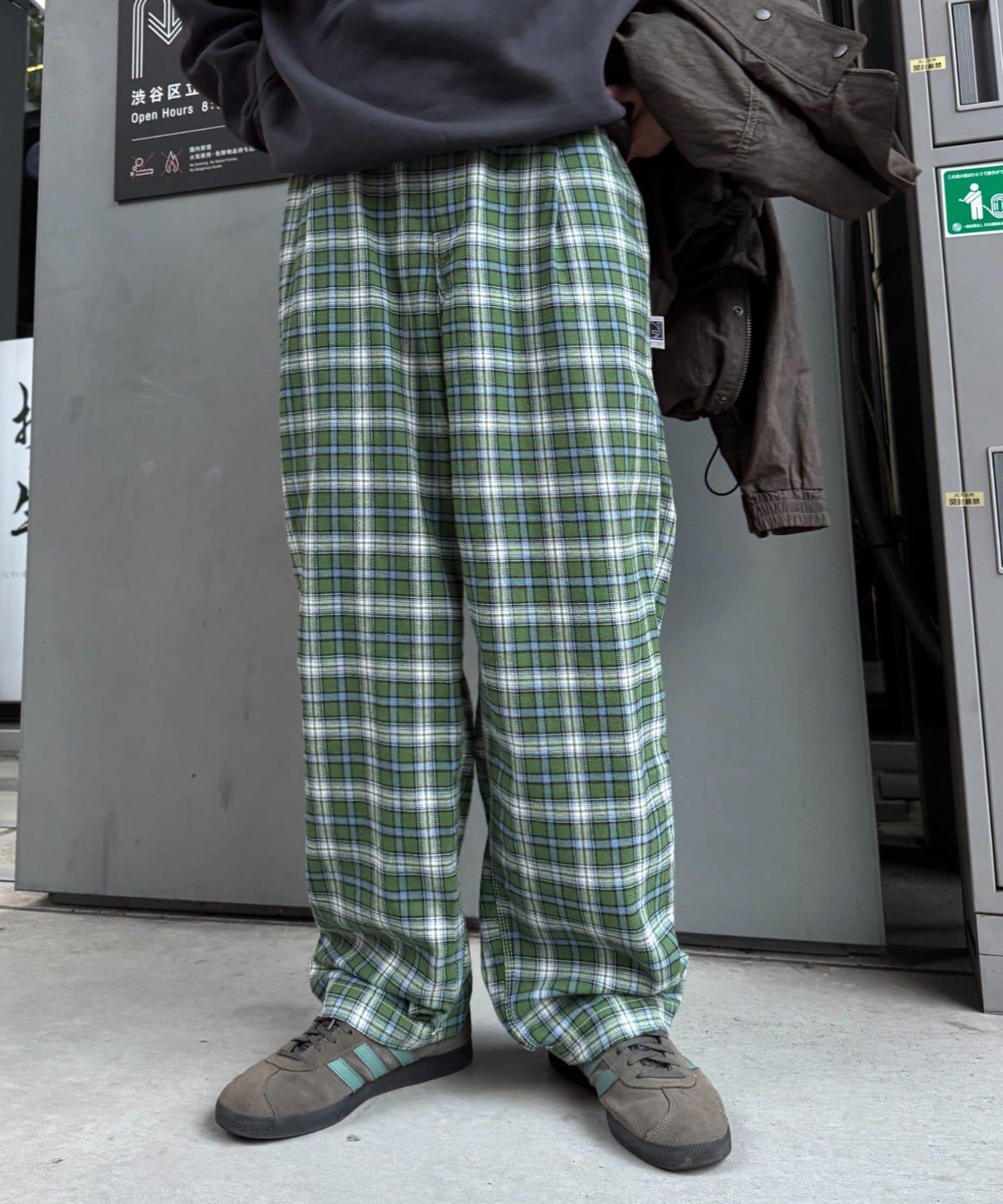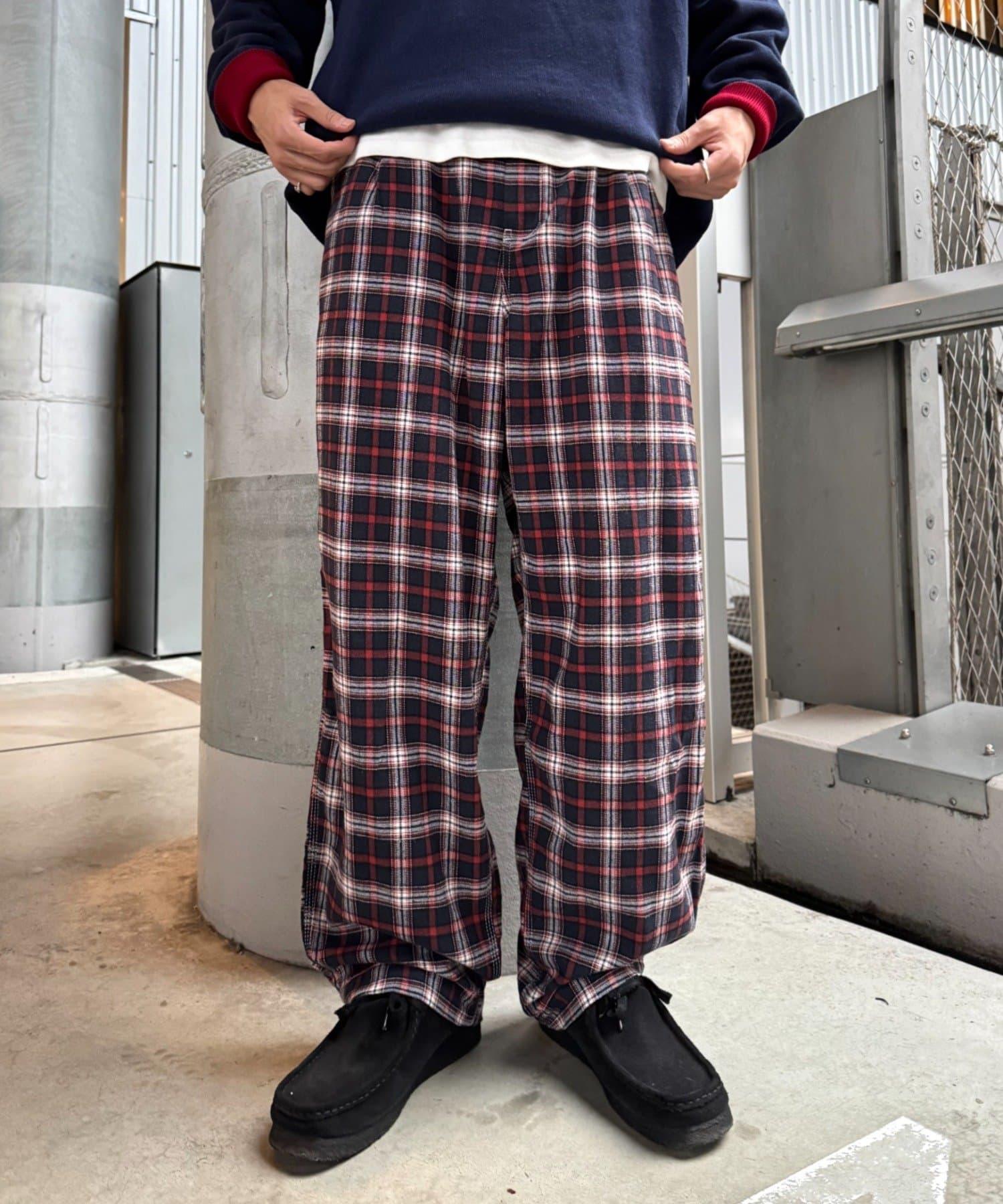 這款格紋長褲採用蓬鬆的毛毯面料製成。