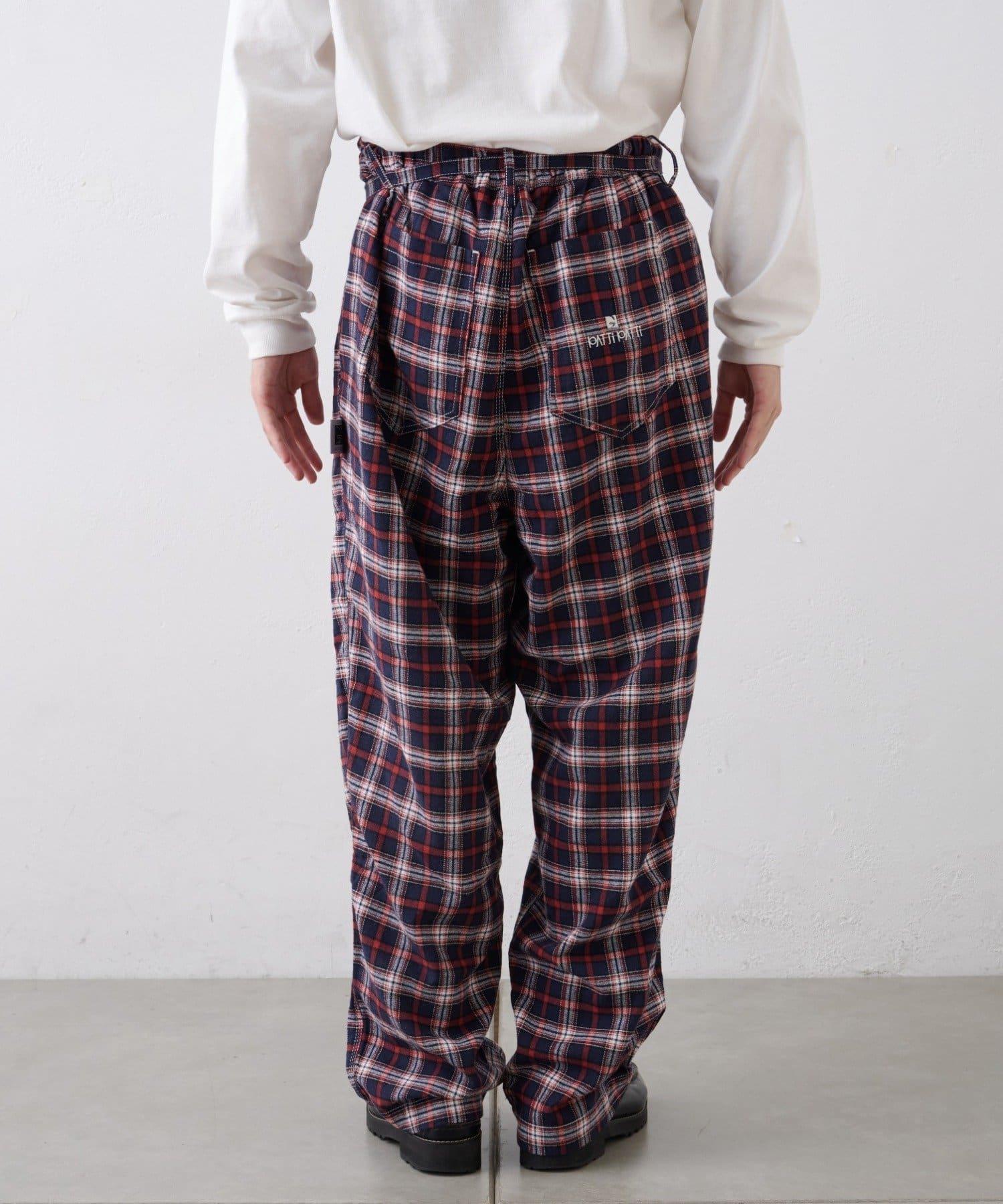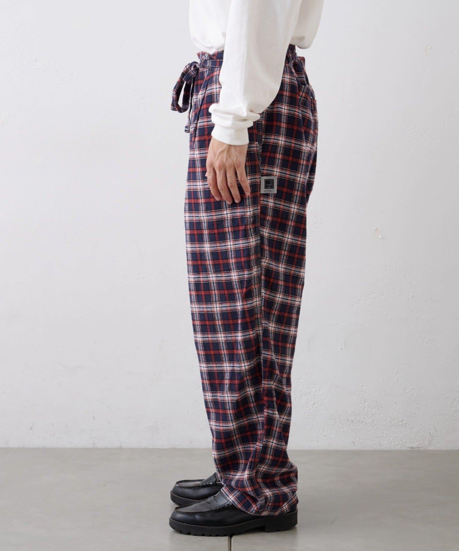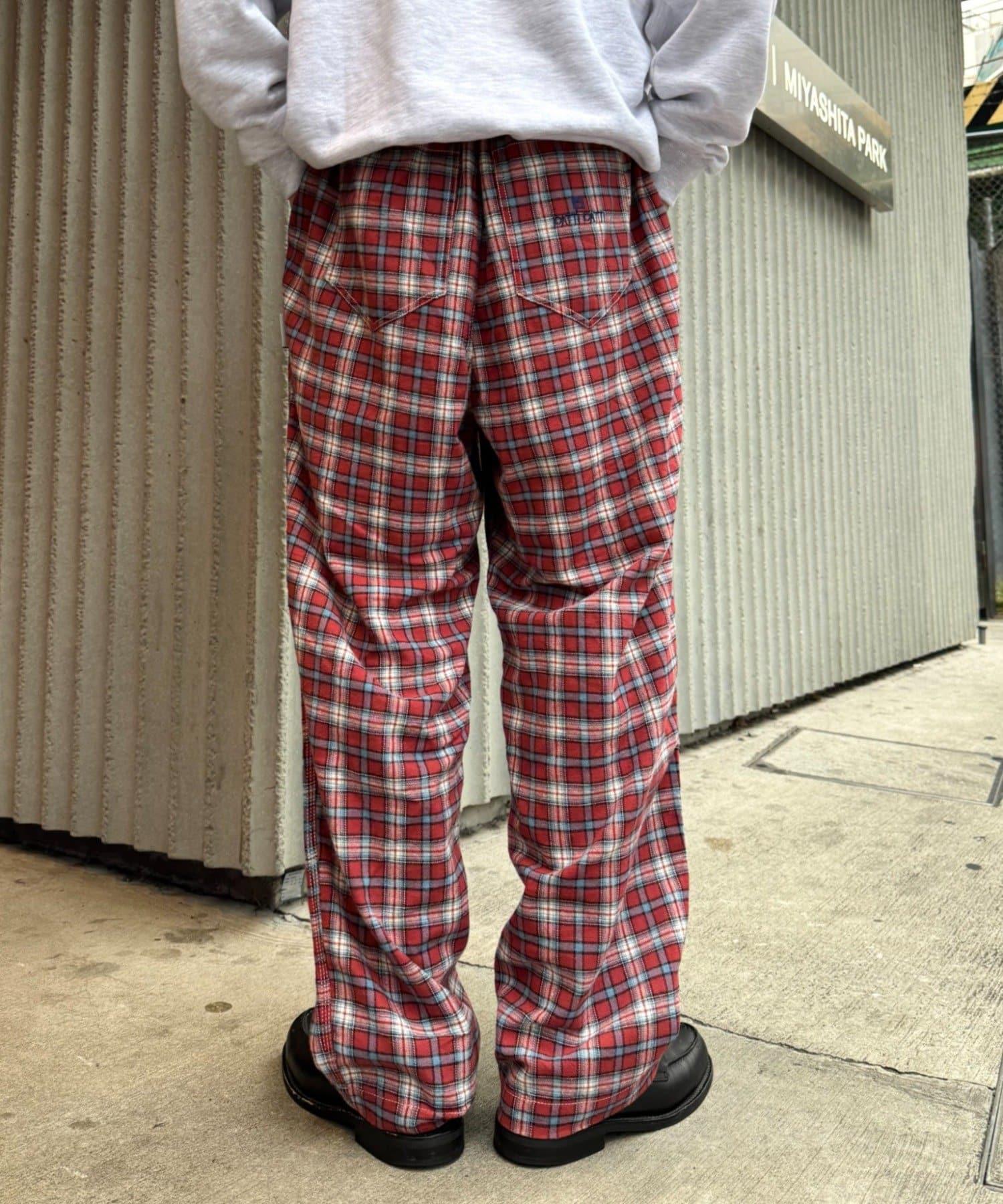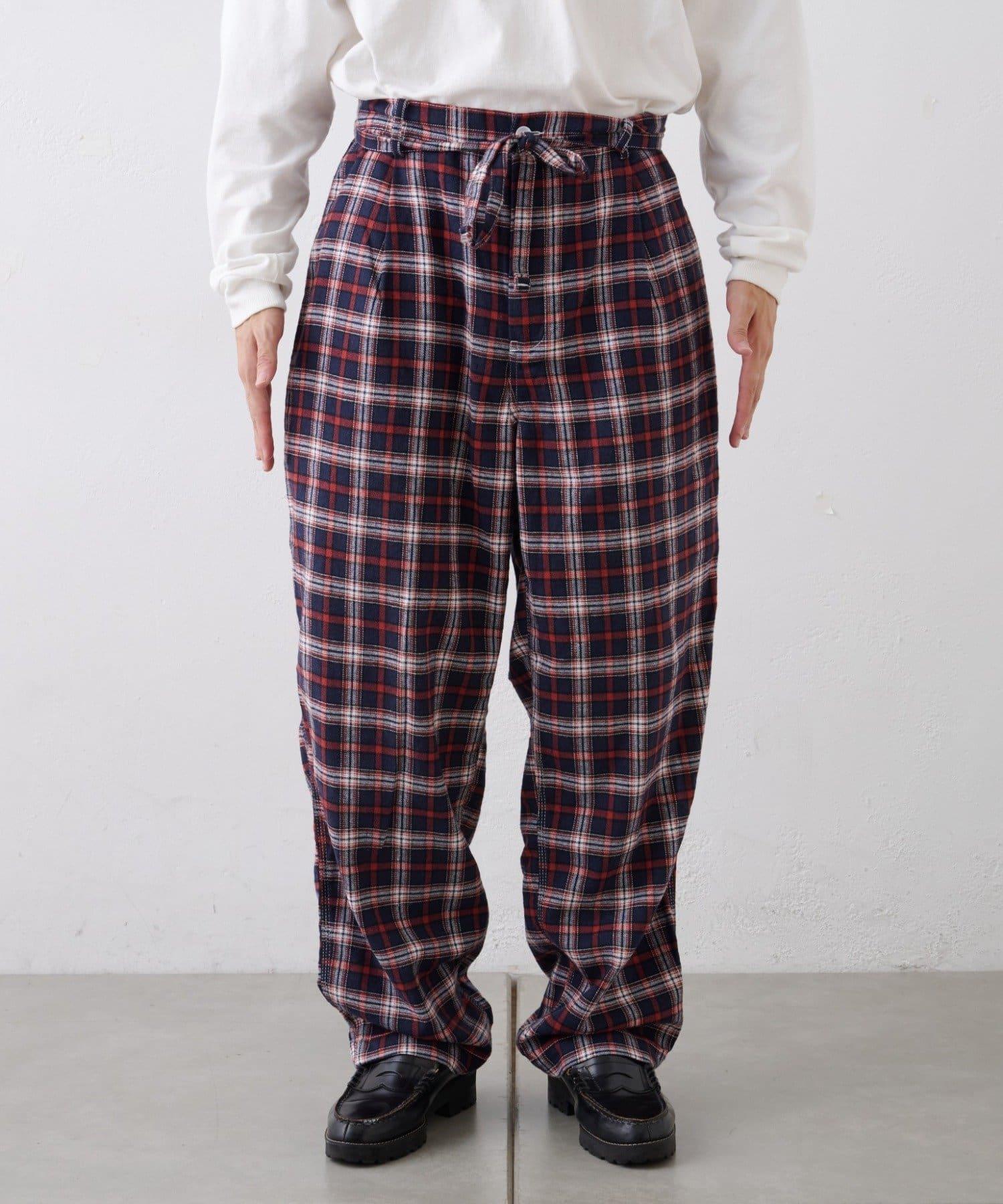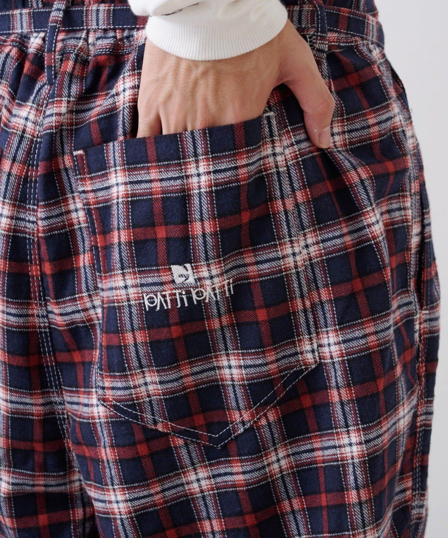 這款格紋長褲採用蓬鬆的毛毯面料製成。